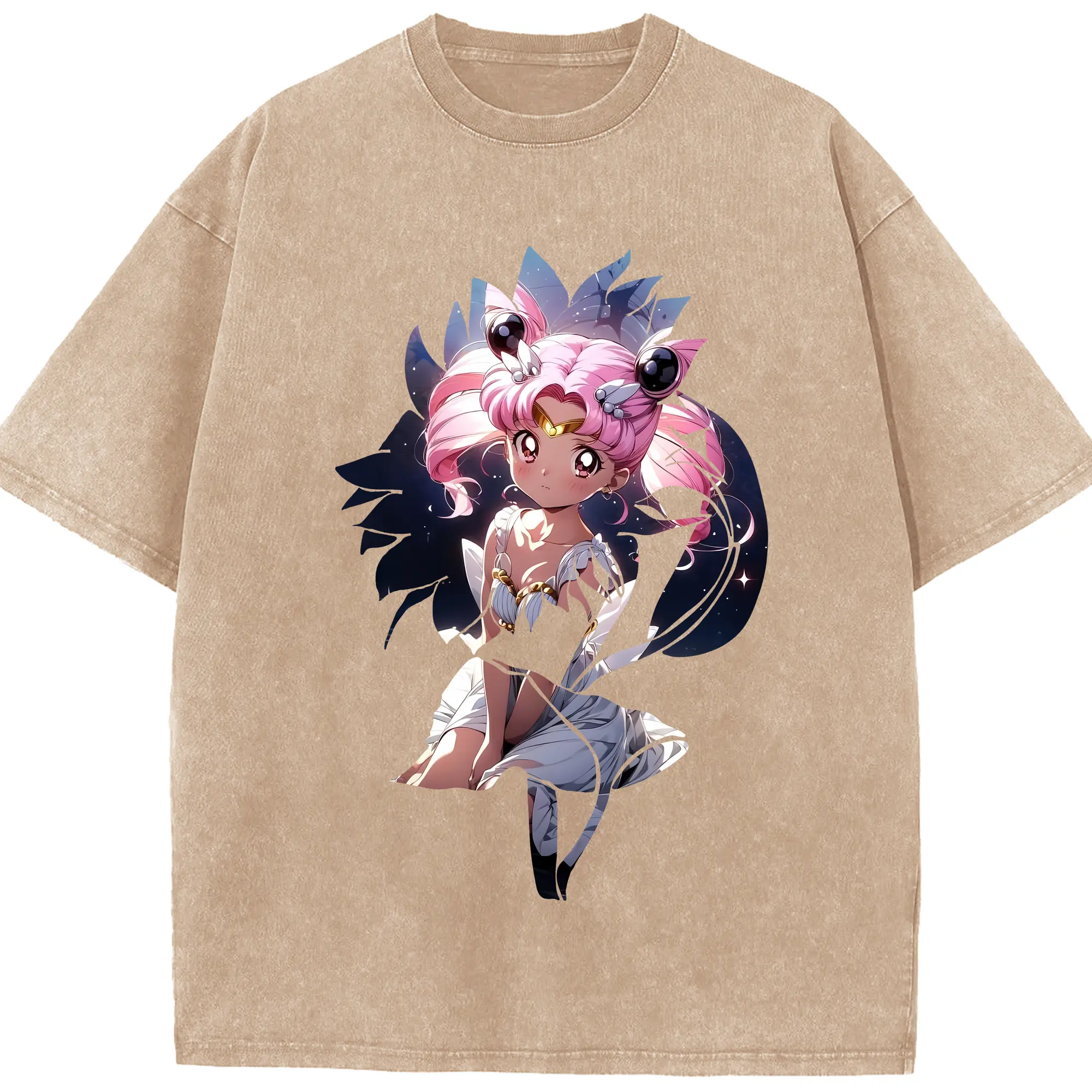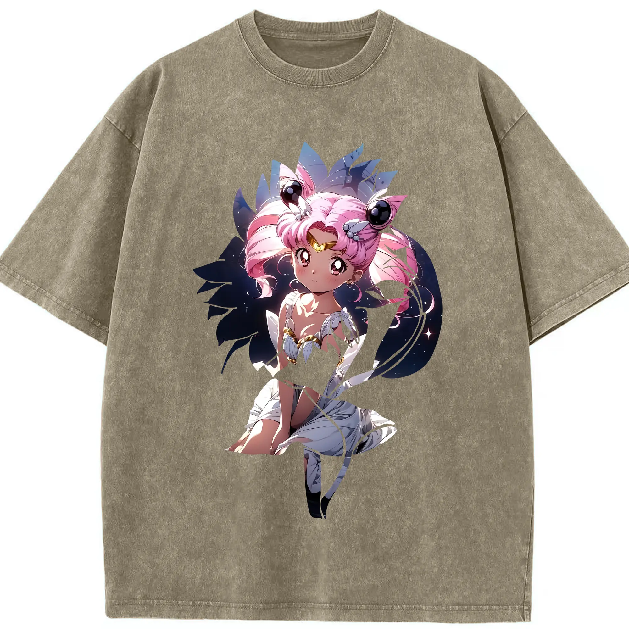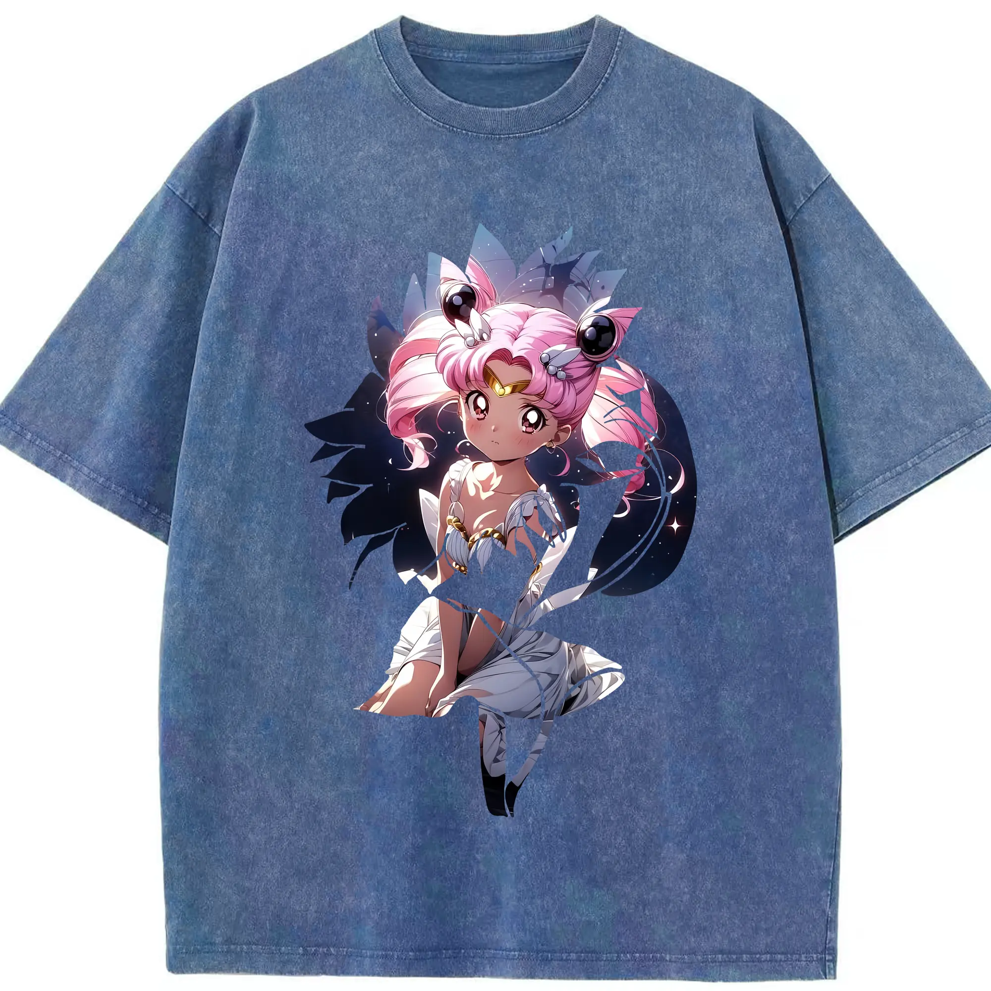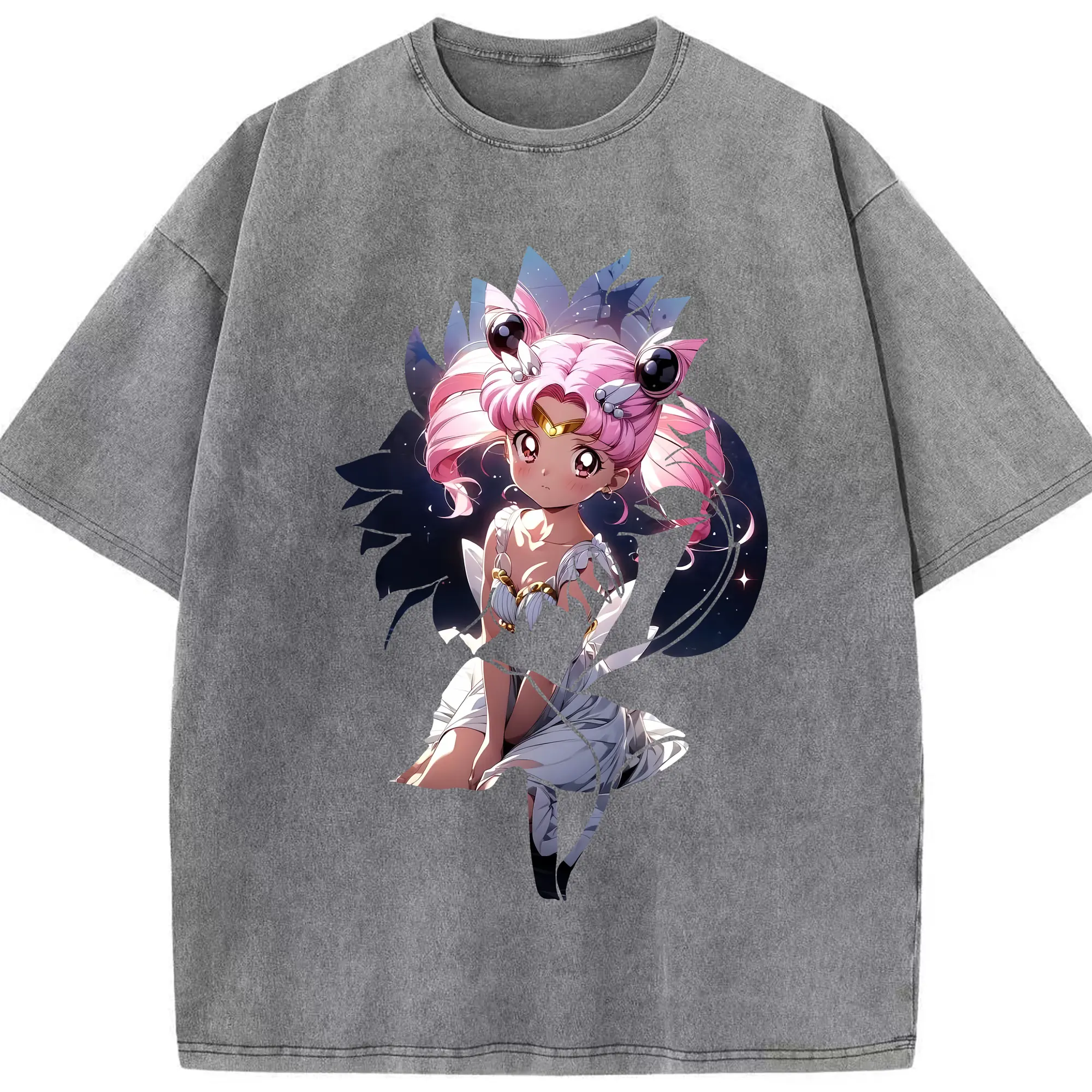 美少女戦士セーラームーン グッズ,ちびうさ - 綿100% ヴィンテージ風 半袖Tシャツ ・ 背面プリント ・ 柔らか肌触り ・ 通気性 快適 ・ スポーツ カジュアル 外出用