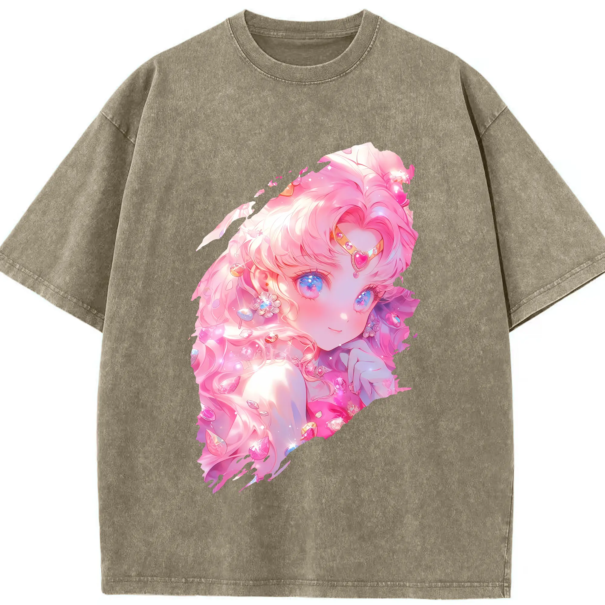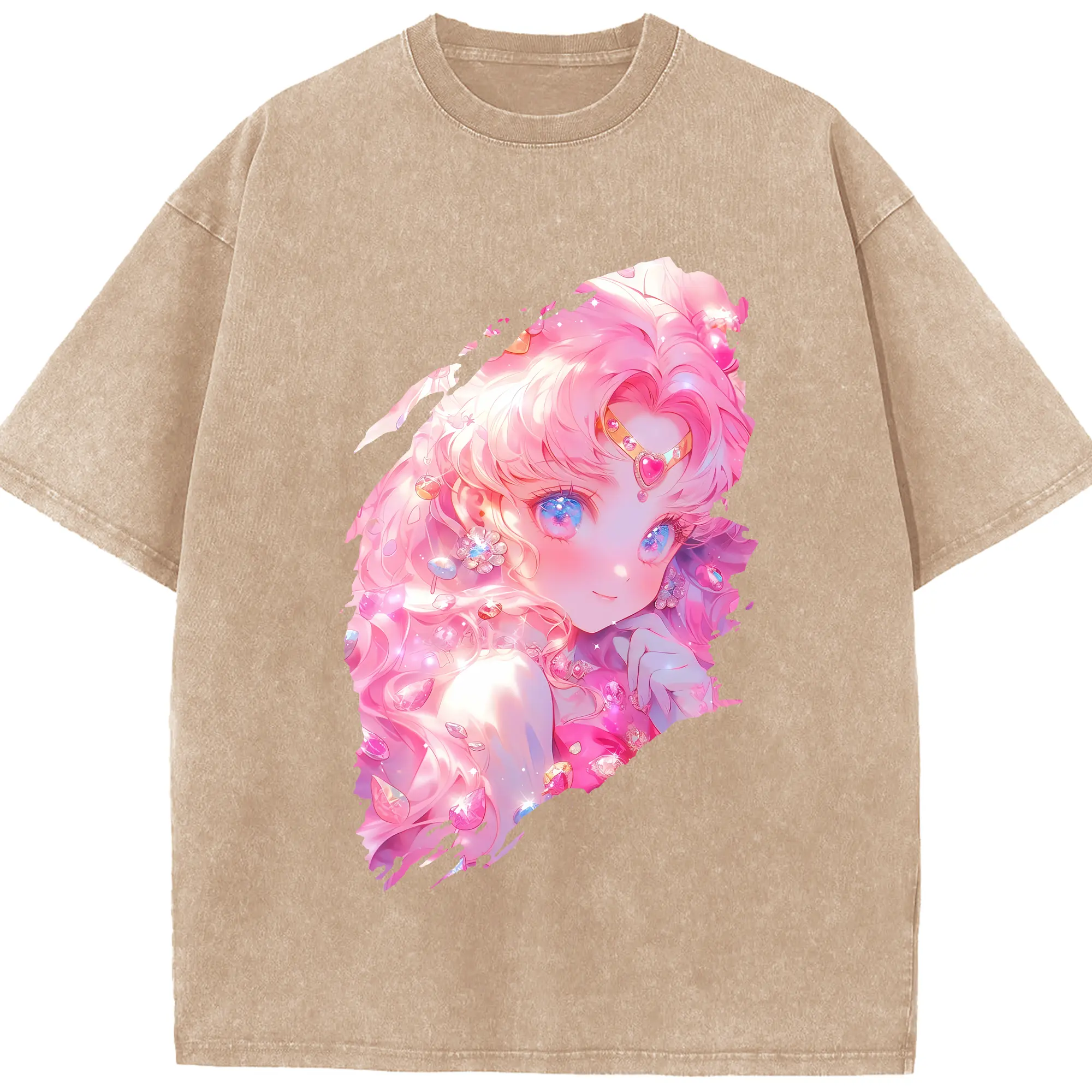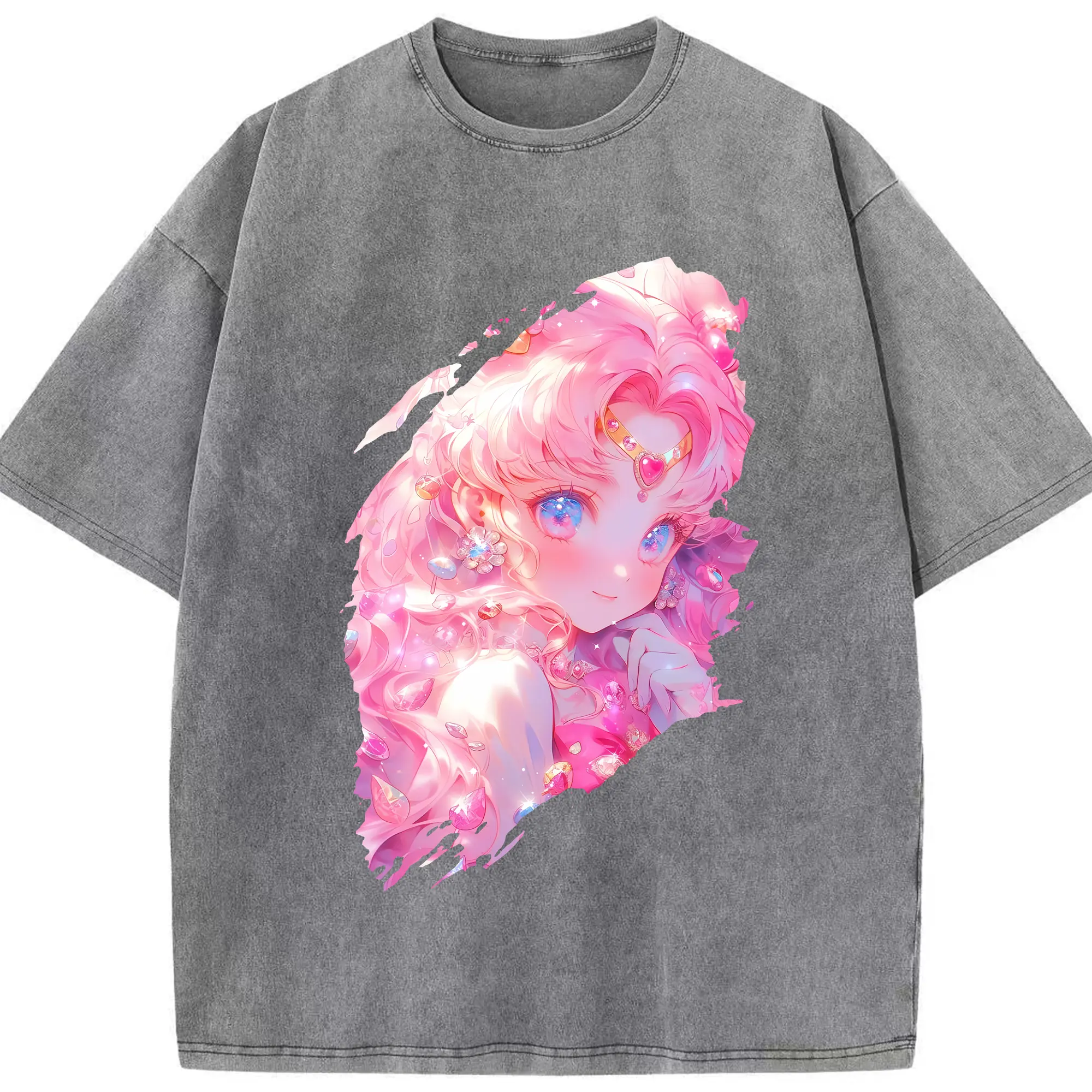 美少女戦士セーラームーン グッズ,ちびうさ - 綿100% ヴィンテージ風 半袖Tシャツ ・ 背面プリント ・ 柔らか肌触り ・ 通気性 快適 ・ スポーツ カジュアル 外出用