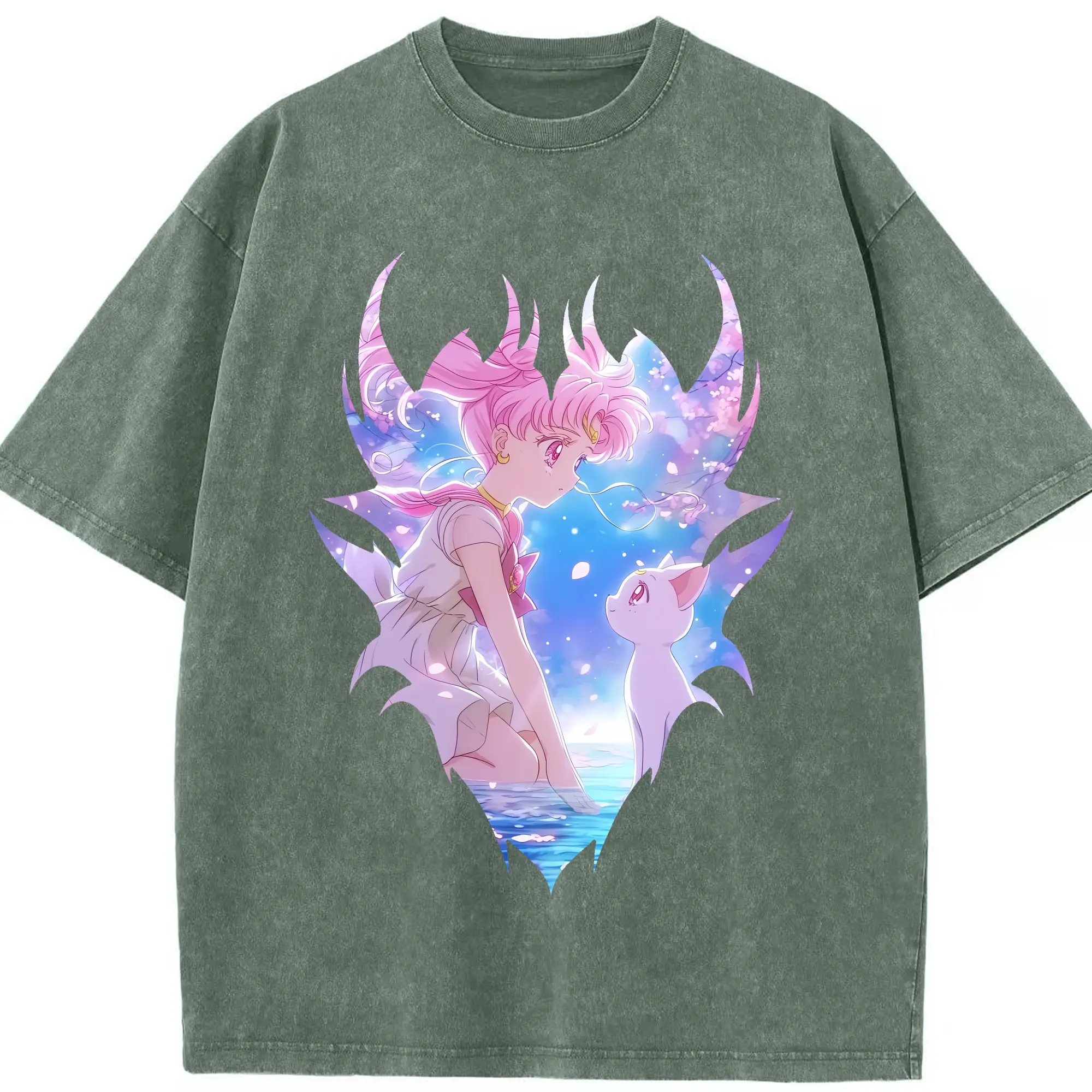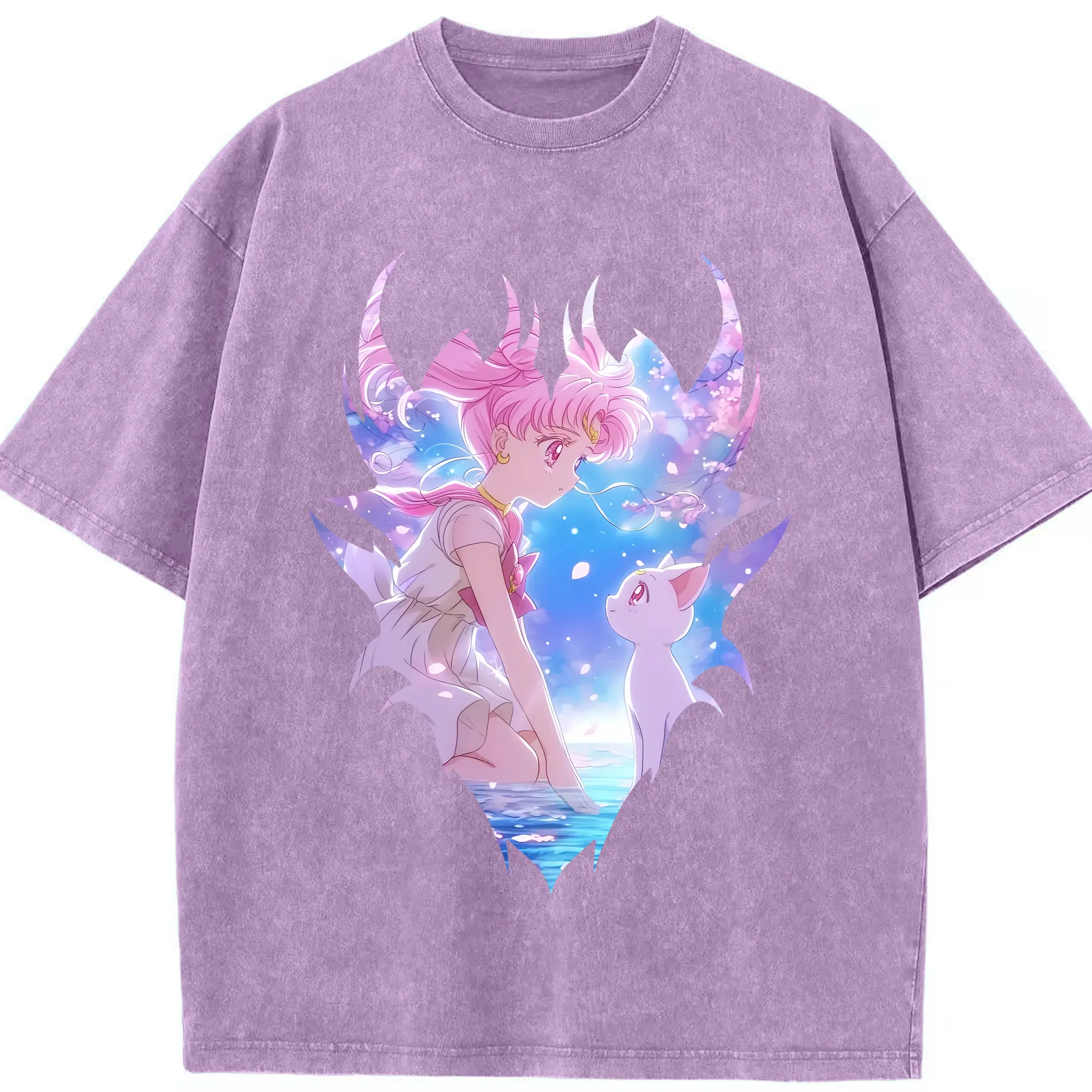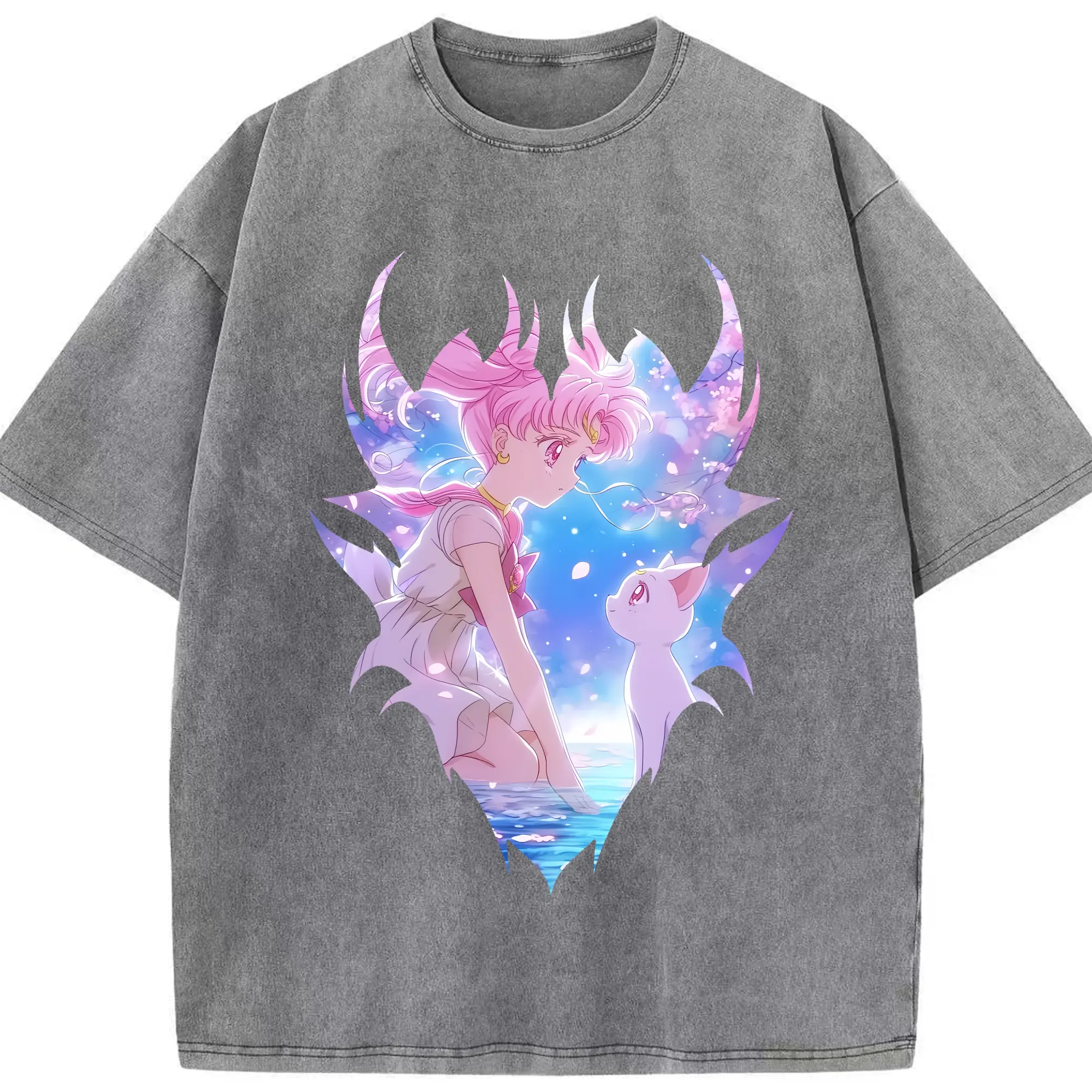 美少女戦士セーラームーン グッズ,ちびうさ - 綿100% ヴィンテージ風 半袖Tシャツ ・ 背面プリント ・ 柔らか肌触り ・ 通気性 快適 ・ スポーツ カジュアル 外出用