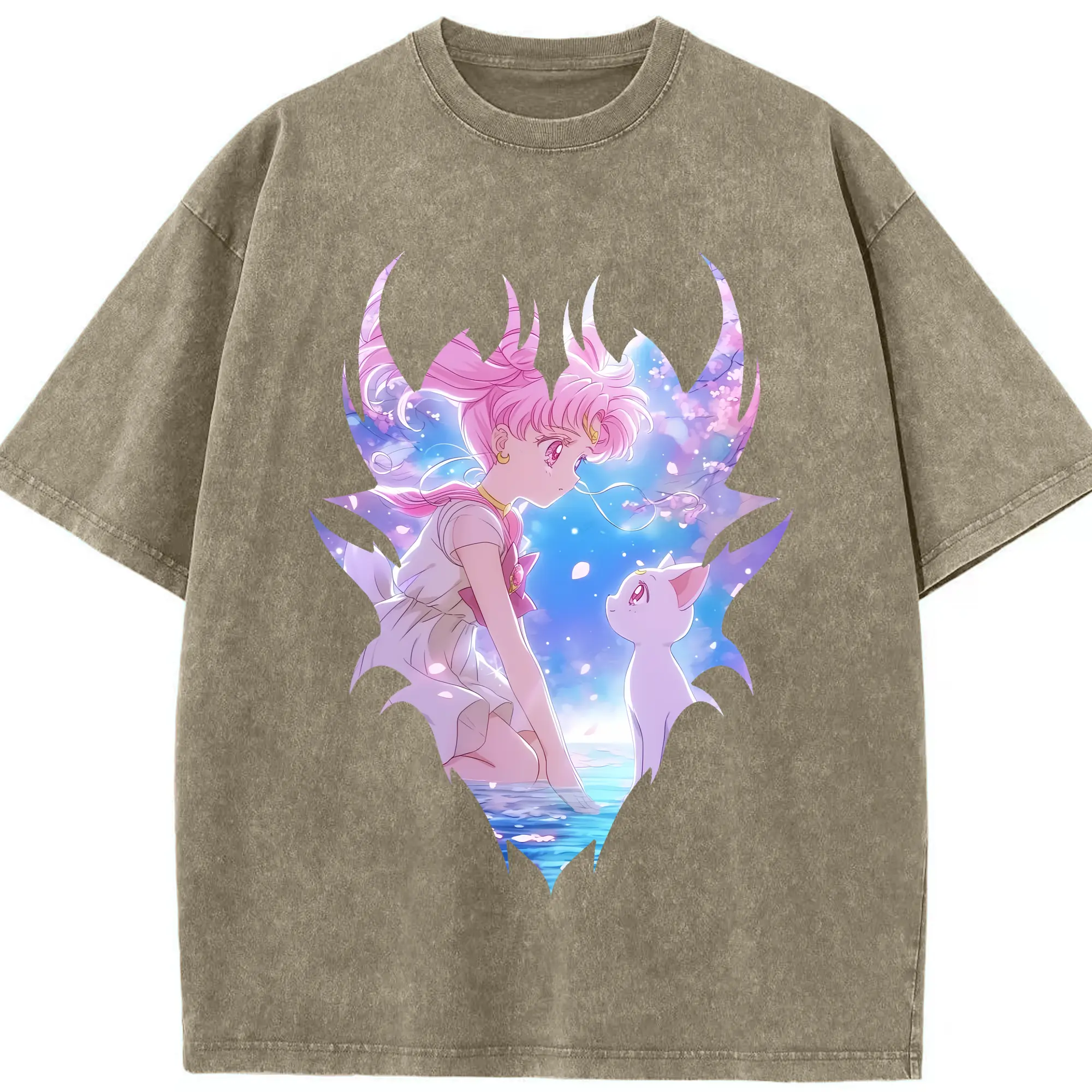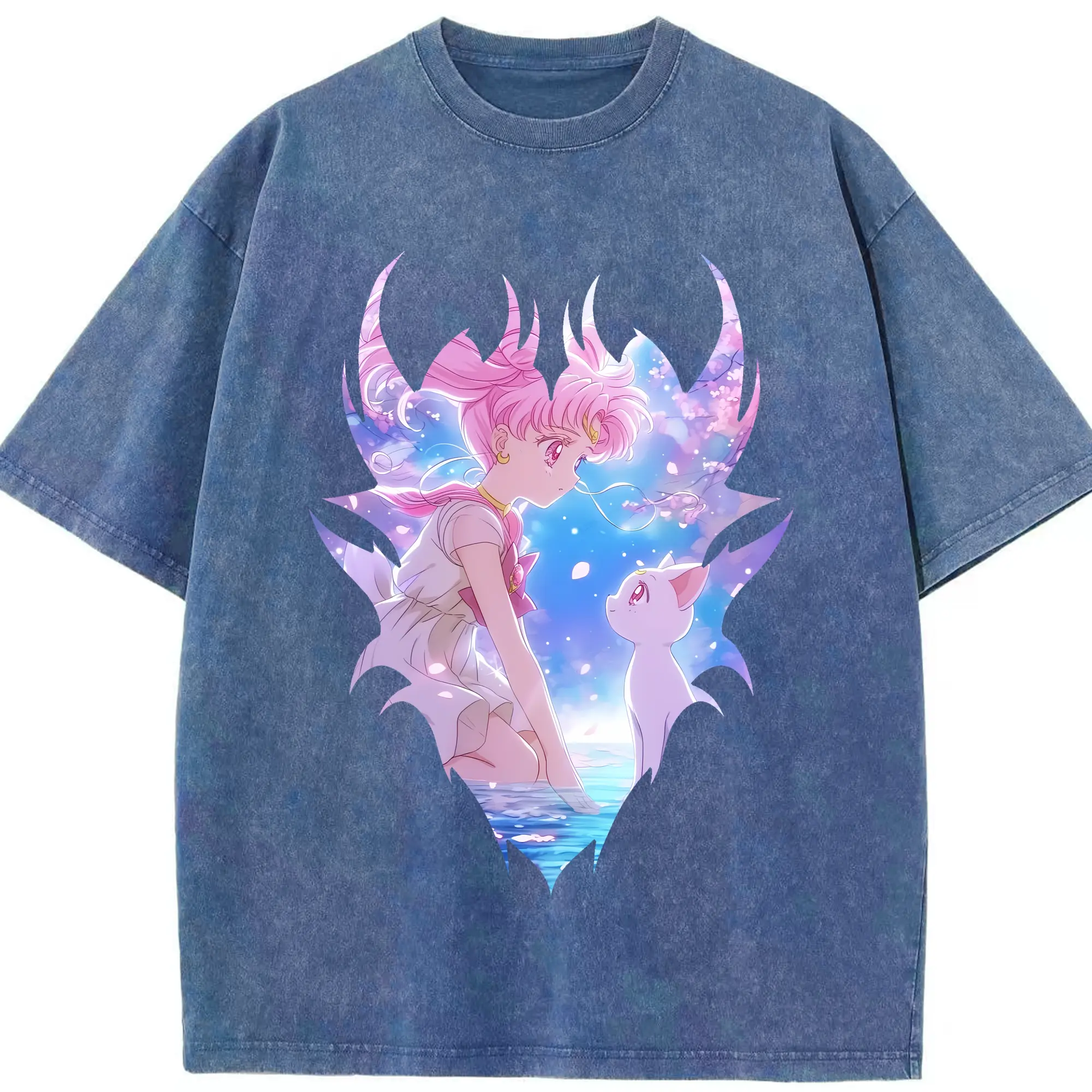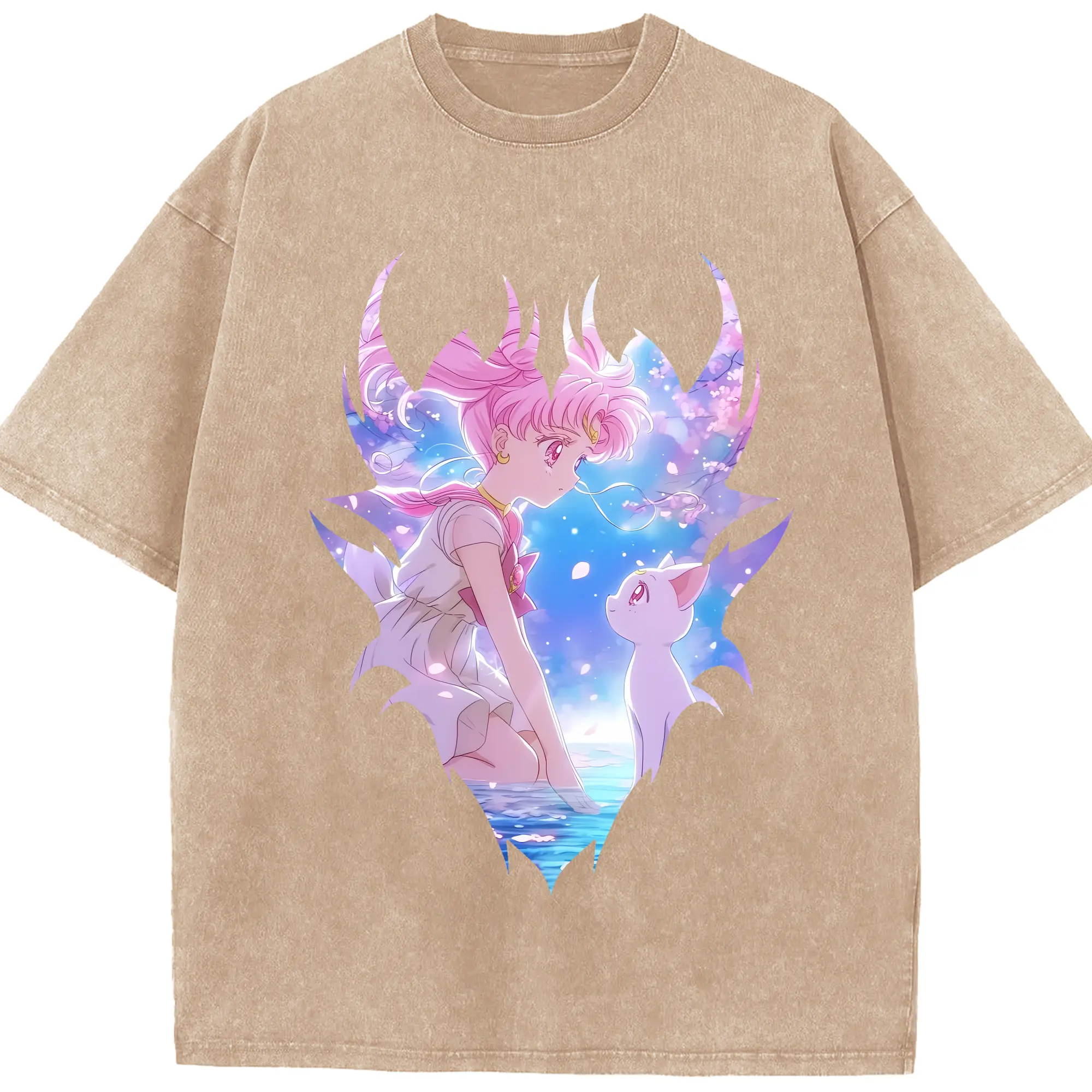 美少女戦士セーラームーン グッズ,ちびうさ - 綿100% ヴィンテージ風 半袖Tシャツ ・ 背面プリント ・ 柔らか肌触り ・ 通気性 快適 ・ スポーツ カジュアル 外出用