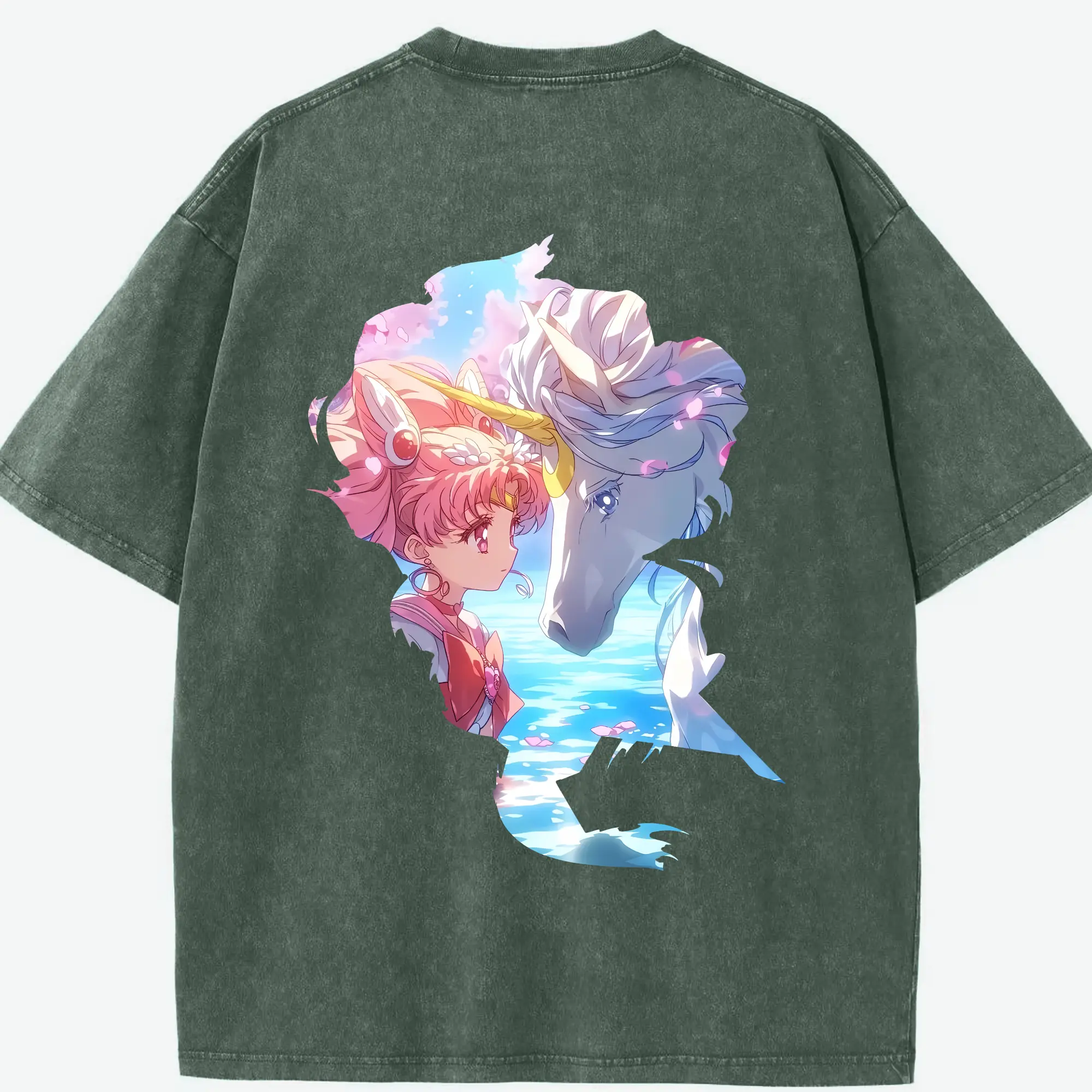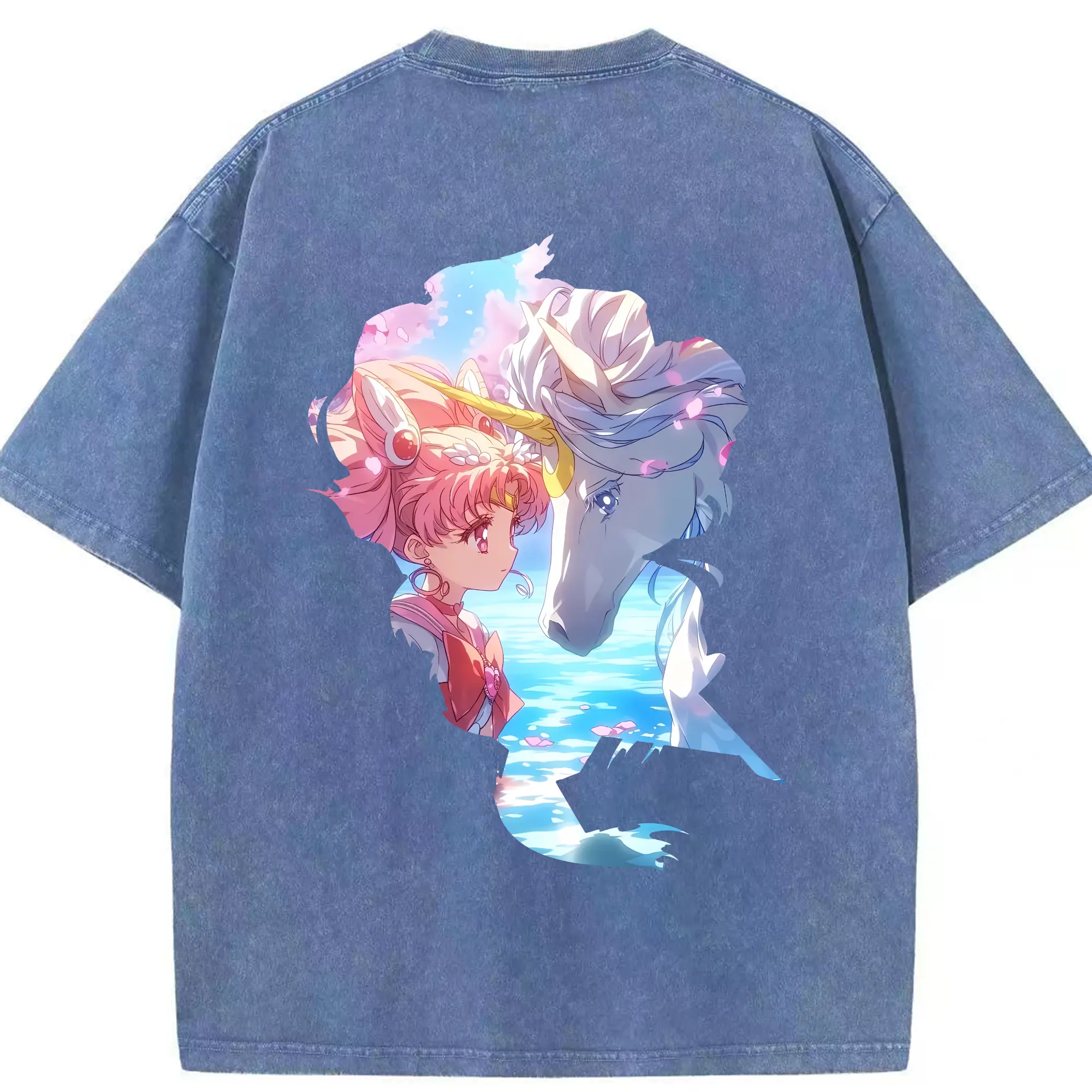美少女戦士セーラームーン グッズ,ちびうさ - 綿100% ヴィンテージ風 半袖Tシャツ ・ フロントプリント ・ 柔らか肌触り ・ 通気性 快適 ・ スポーツ カジュアル 外出用