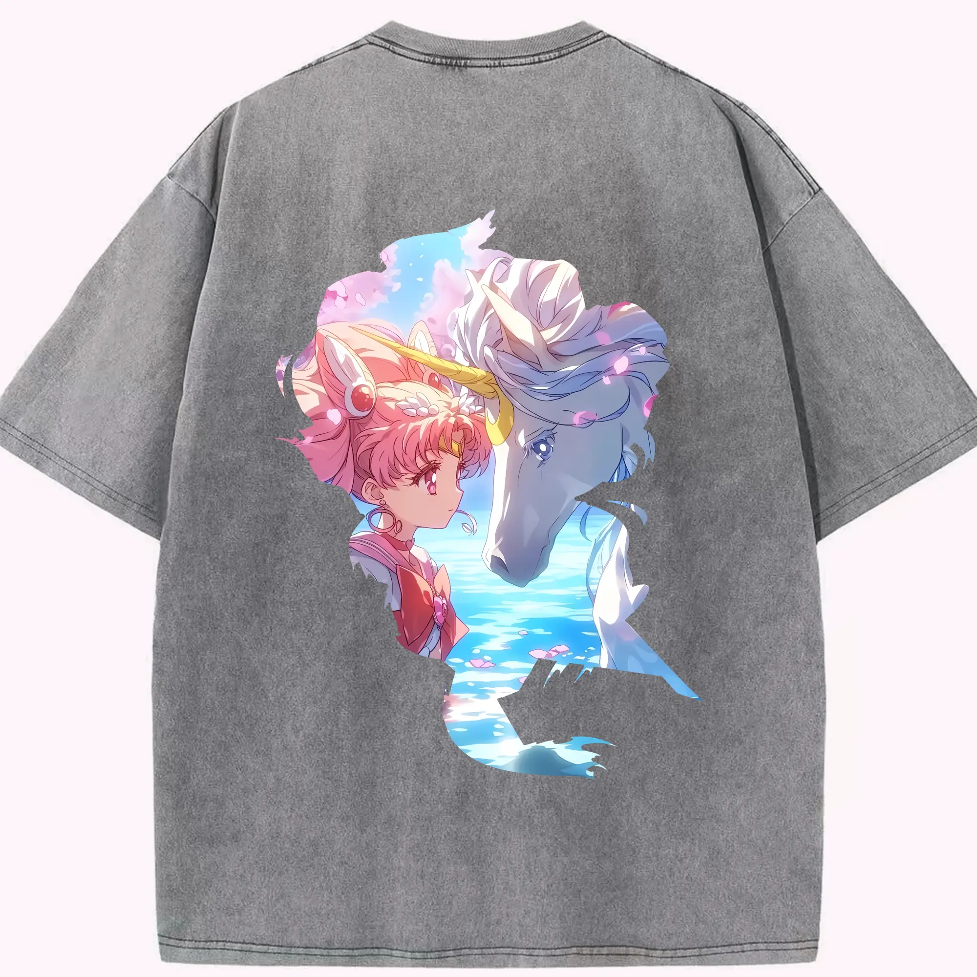 美少女戦士セーラームーン グッズ,ちびうさ - 綿100% 半袖Tシャツ ・ バックプリント ・ 快適 通気性 ・ 日常使い 散歩 スポーツ用