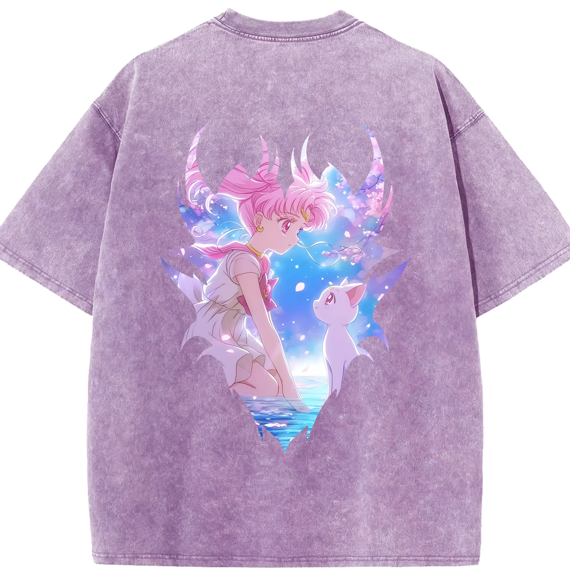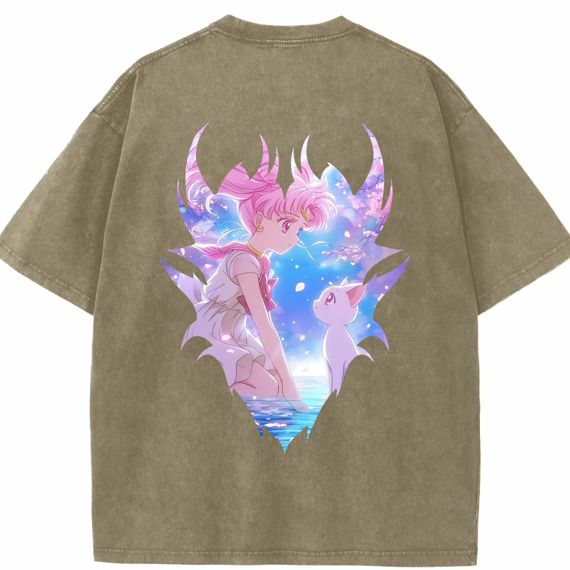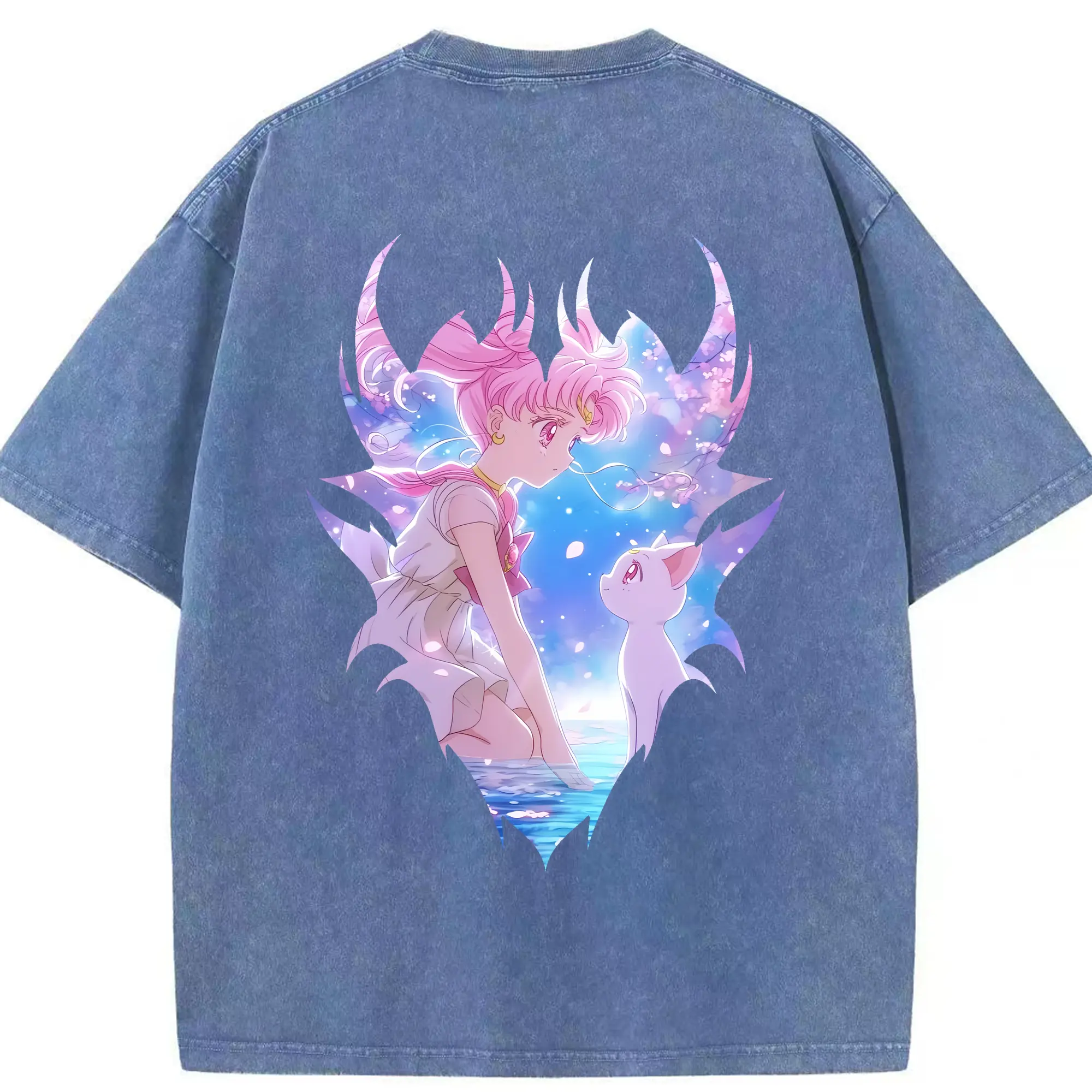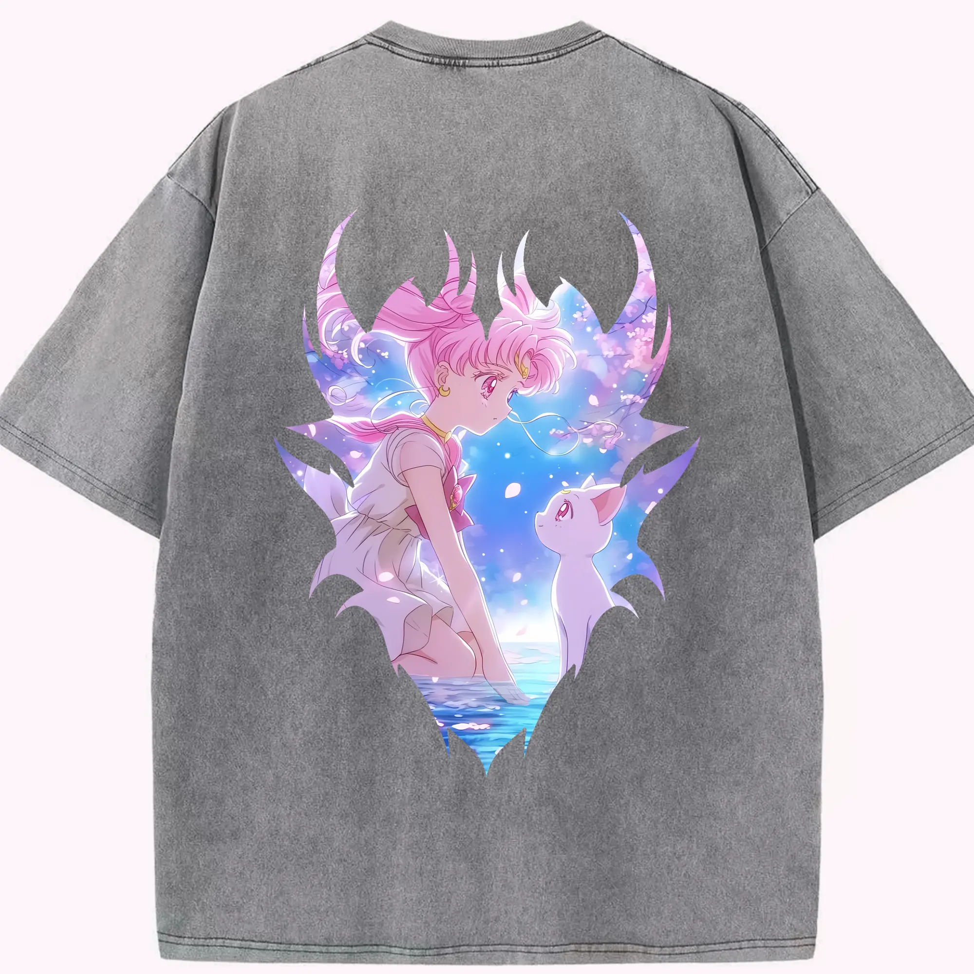 美少女戦士セーラームーン グッズ,ちびうさ - 綿100% ヴィンテージ風 半袖Tシャツ ・ フロントプリント ・ 柔らか肌触り ・ 通気性 快適 ・ スポーツ カジュアル 外出用