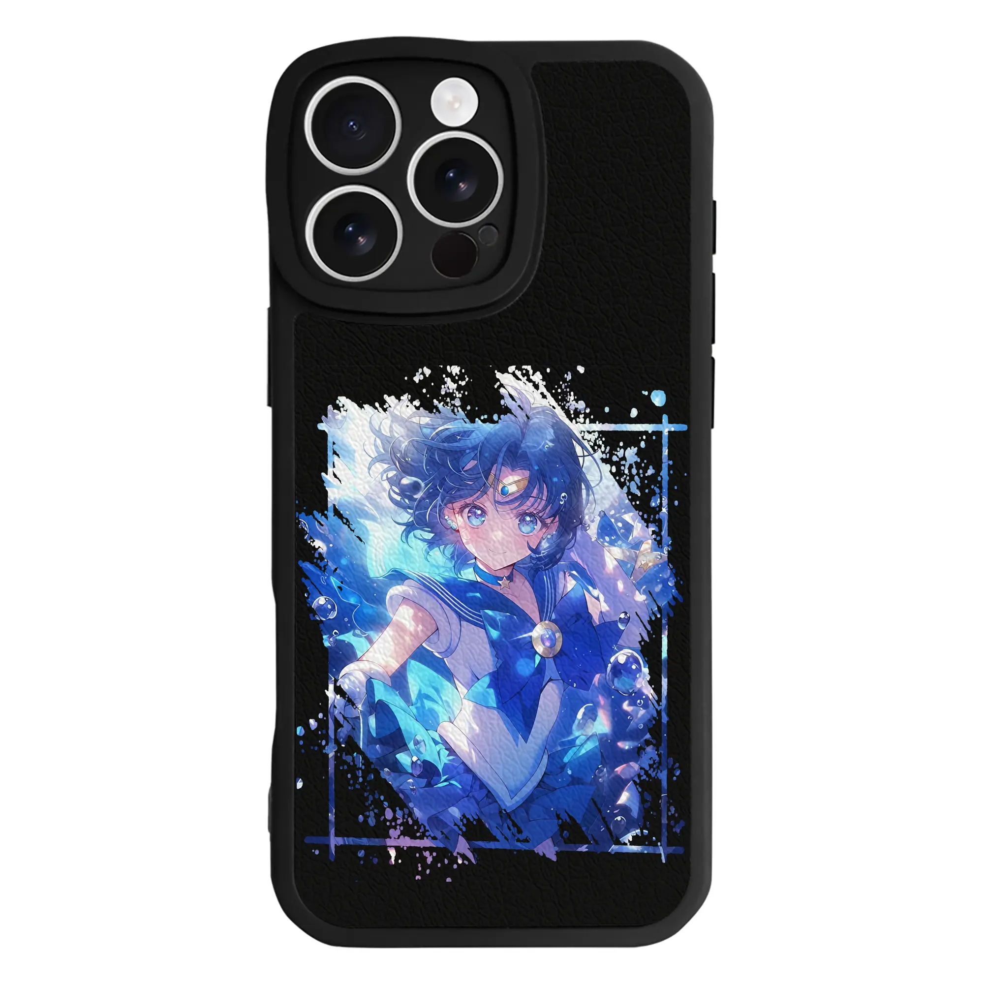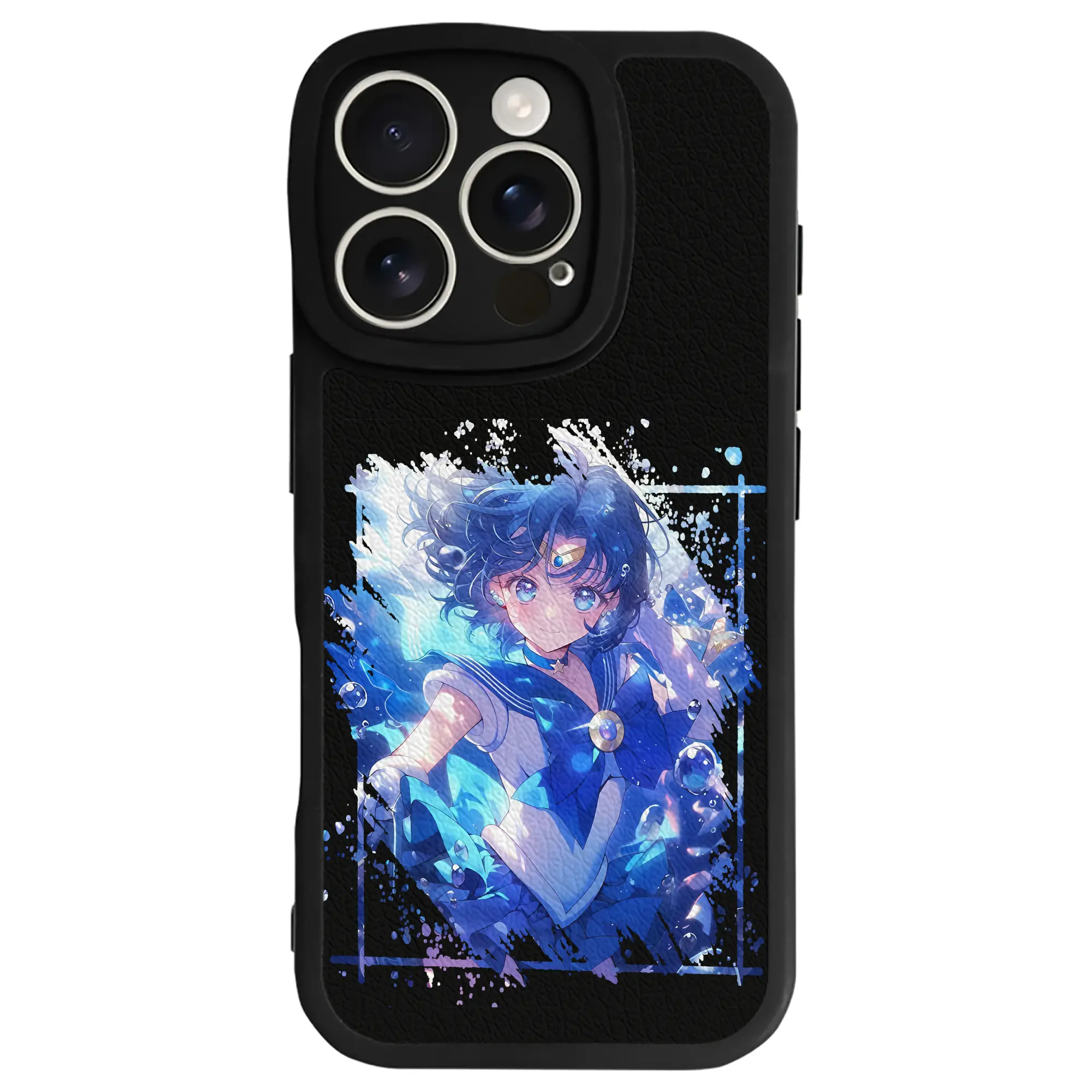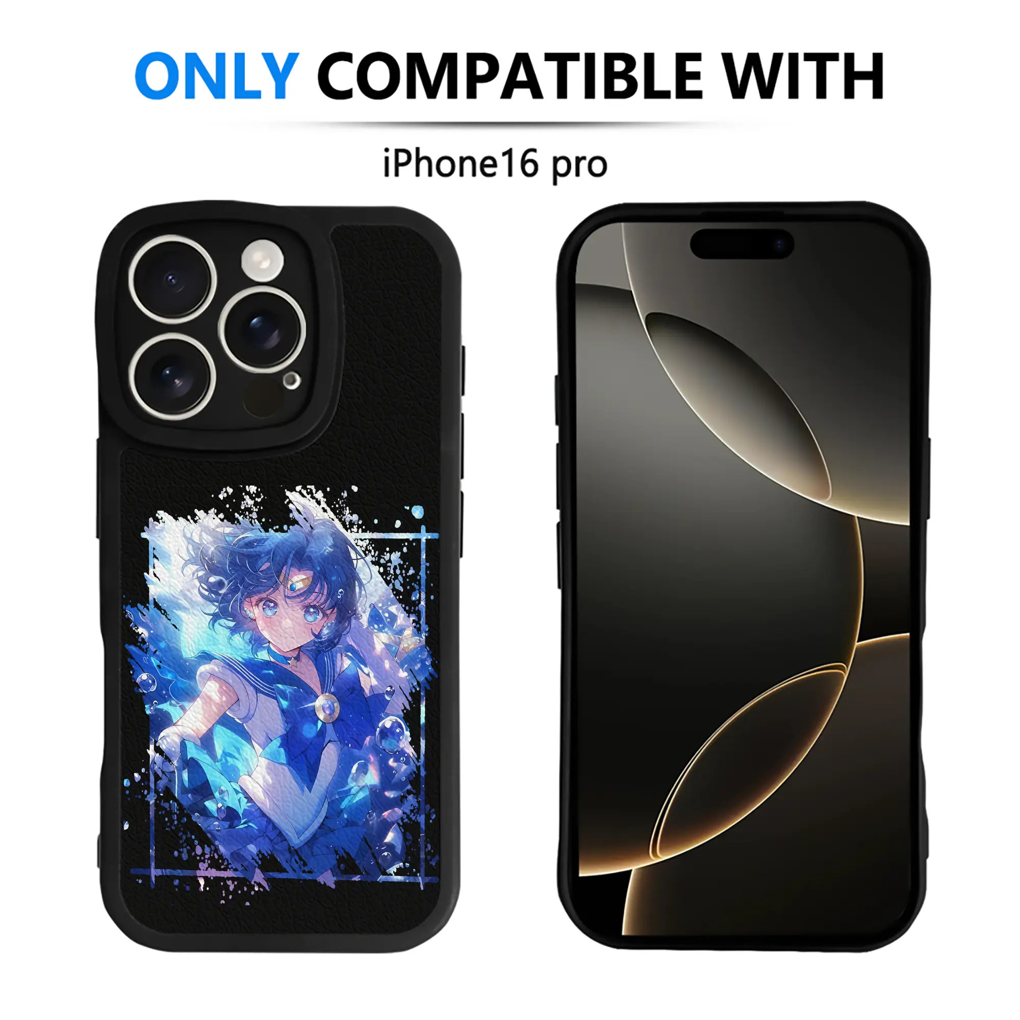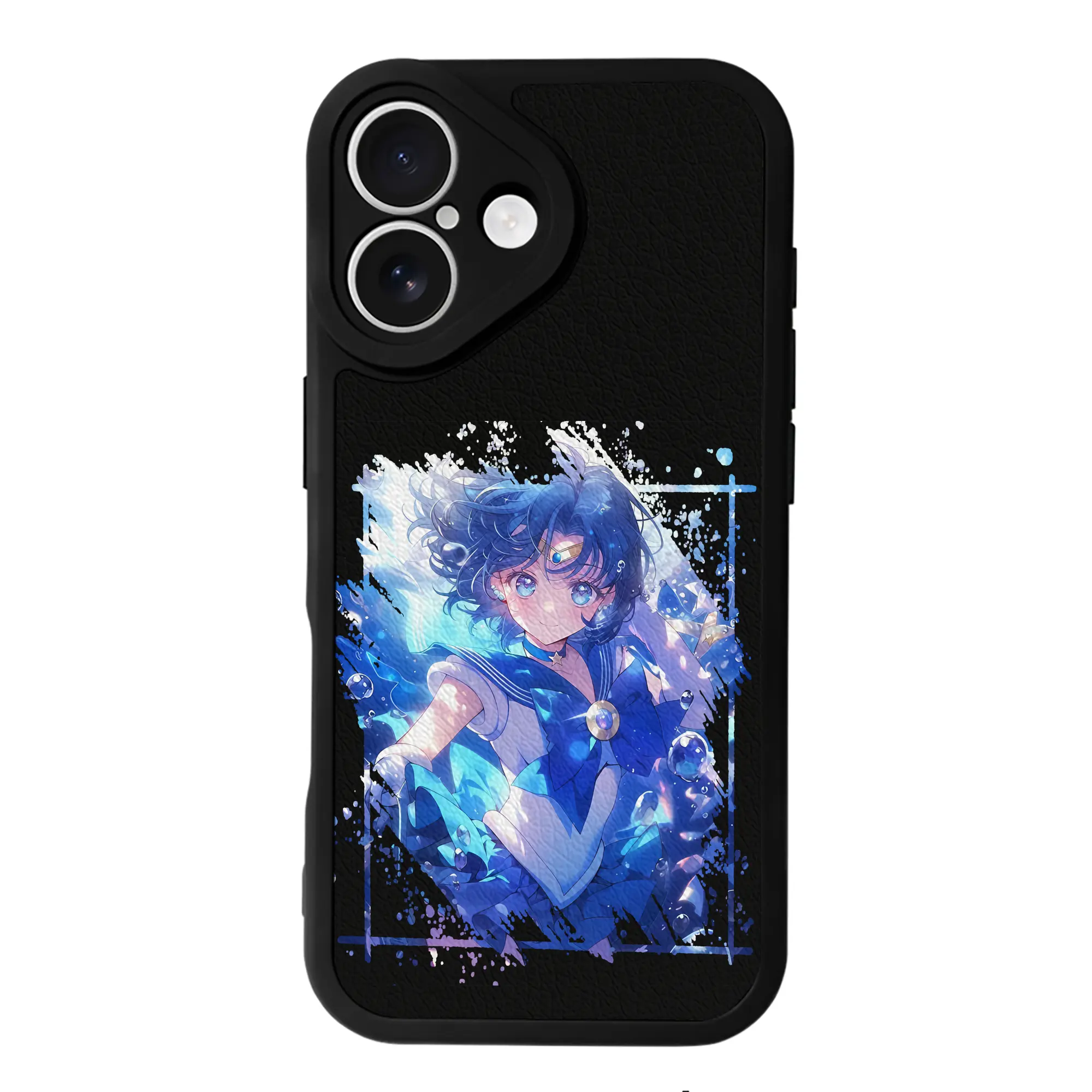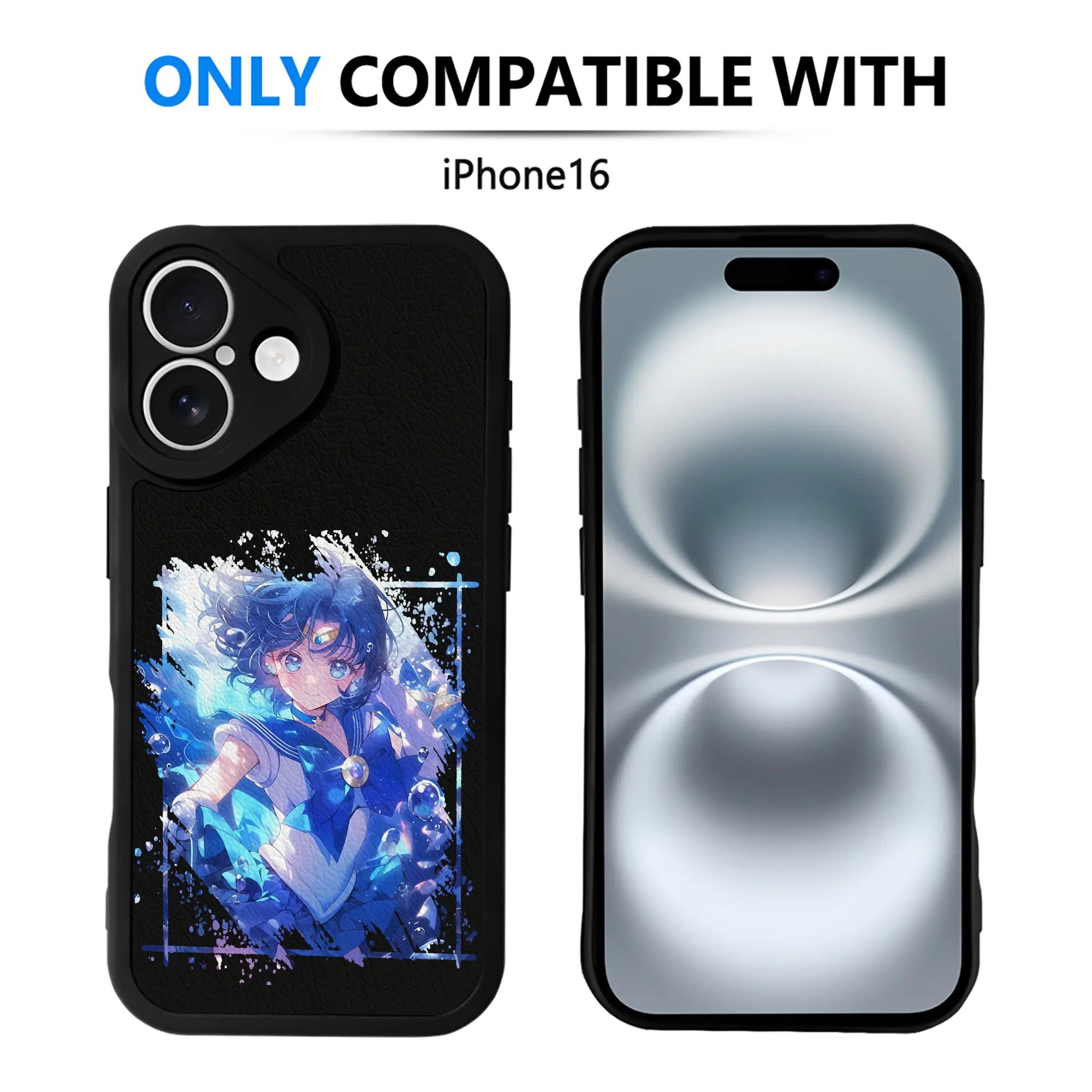 美少女戦士セーラームーン グッズ 水野 亜美 - IPhone 16シリーズ対応 ・ シリコンスマホケース ・ レザー調 ・ 高精度フィット ・ 耐衝撃 ・ ワイヤレス充電対応 ・ 精密カット