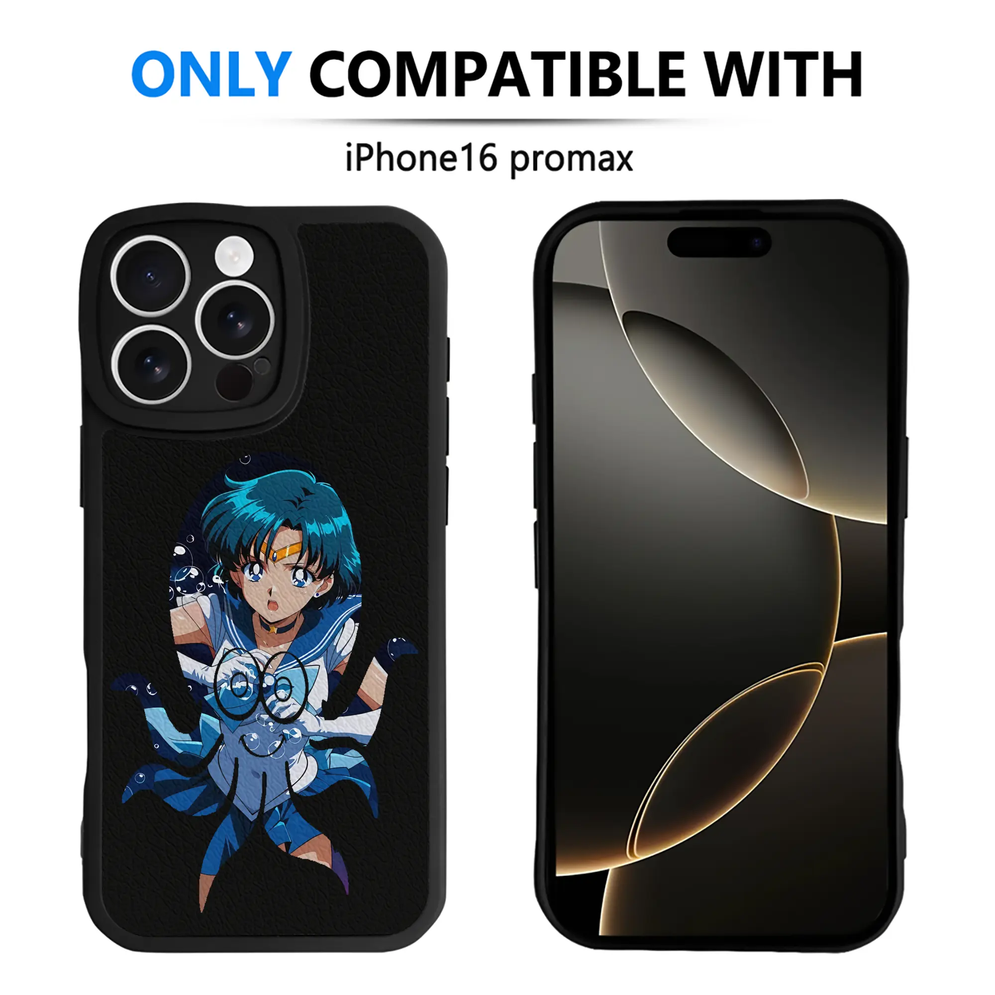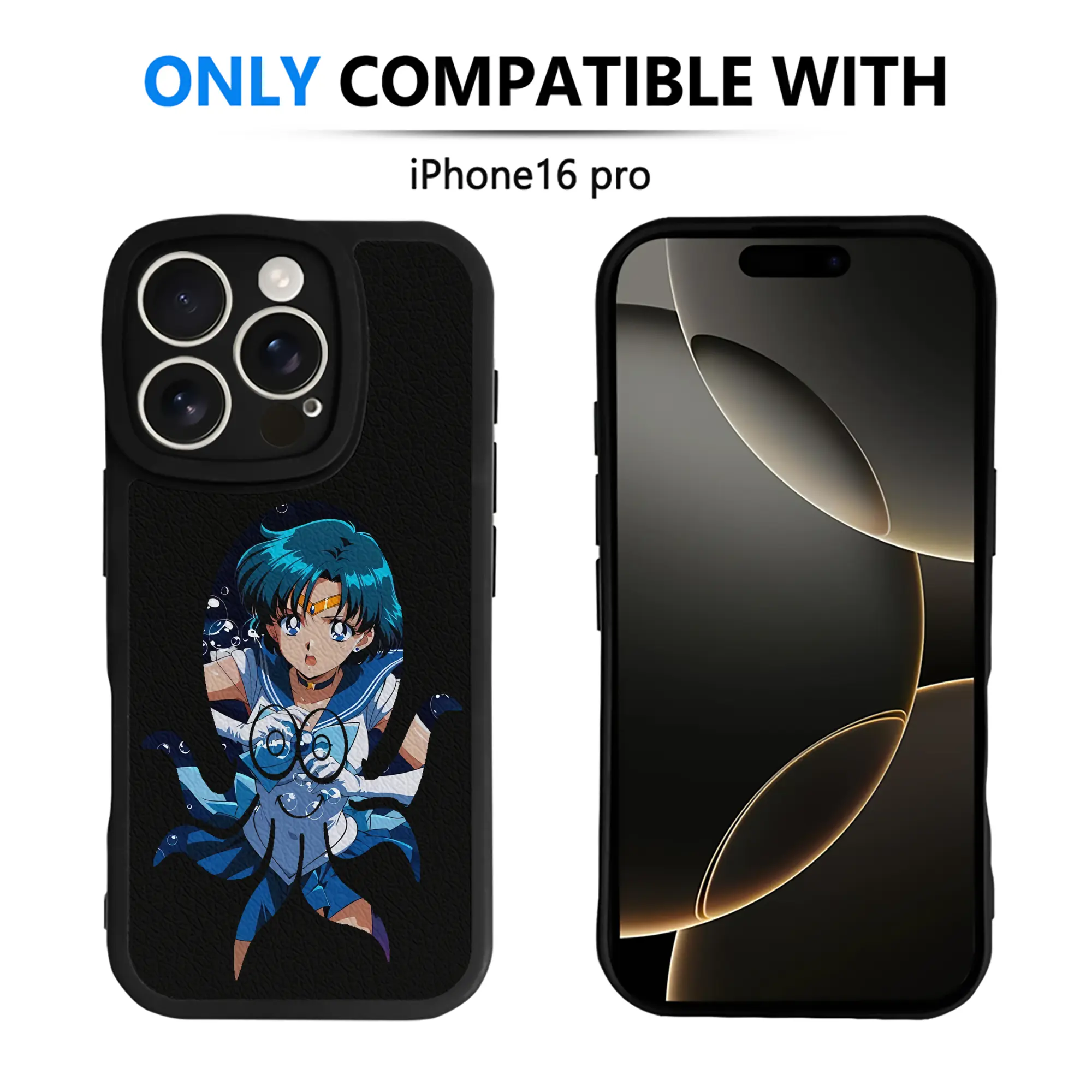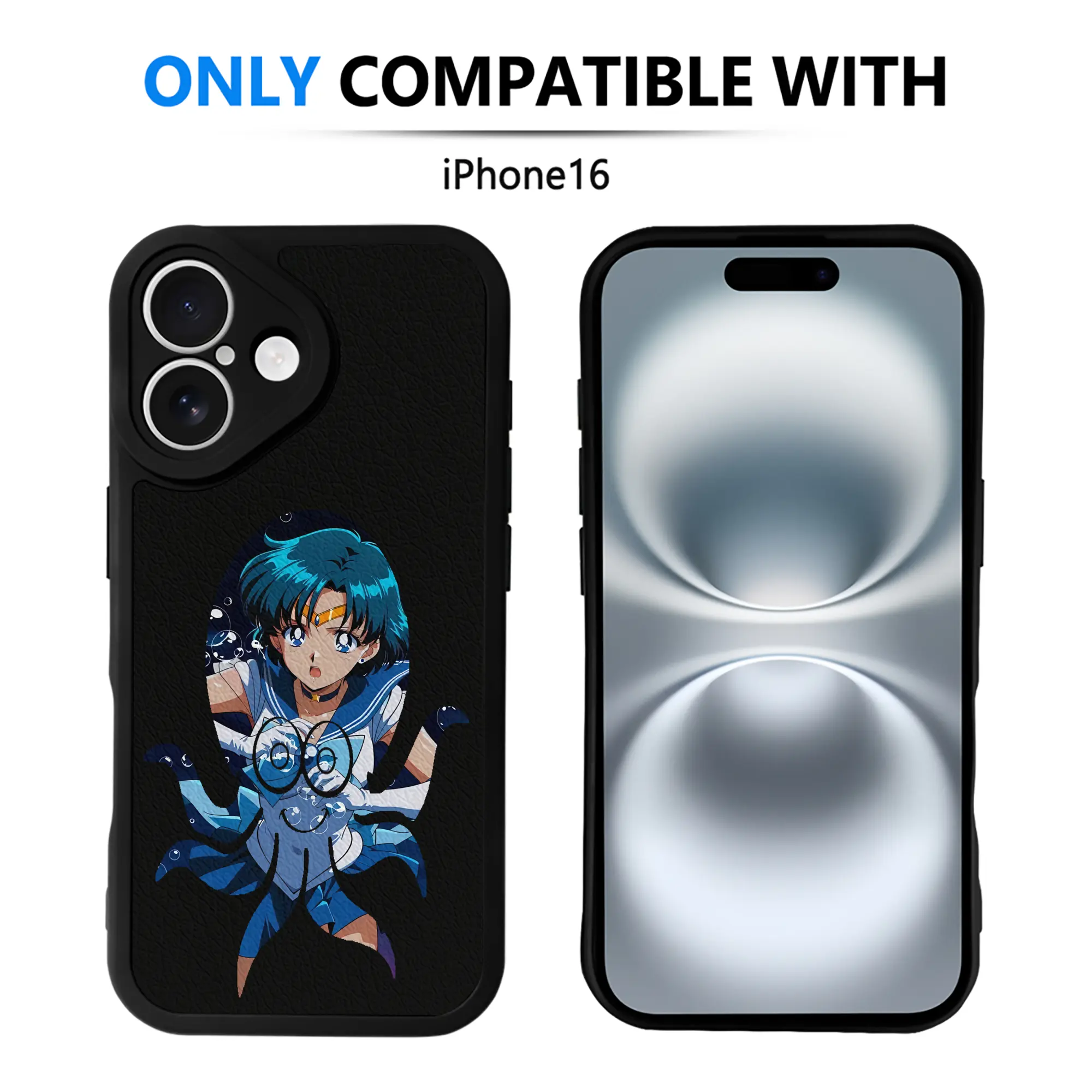 美少女戦士セーラームーン グッズ 水野 亜美 - IPhone 16シリーズ対応 ・ シリコンスマホケース ・ レザー調 ・ 高精度フィット ・ 耐衝撃 ・ ワイヤレス充電対応 ・ 精密カット
