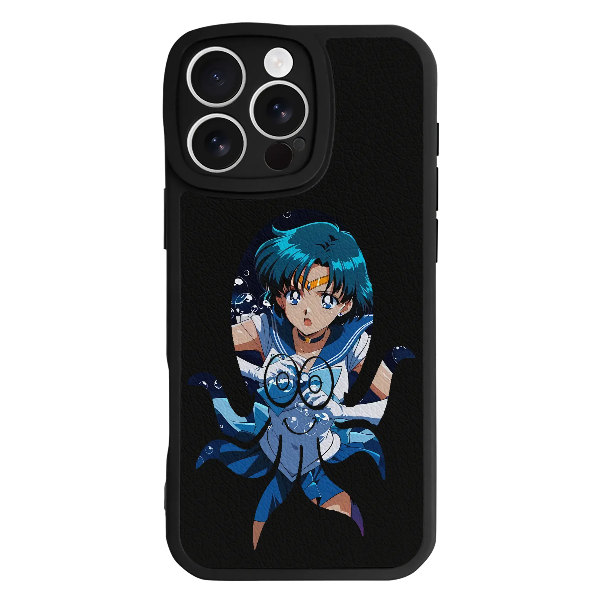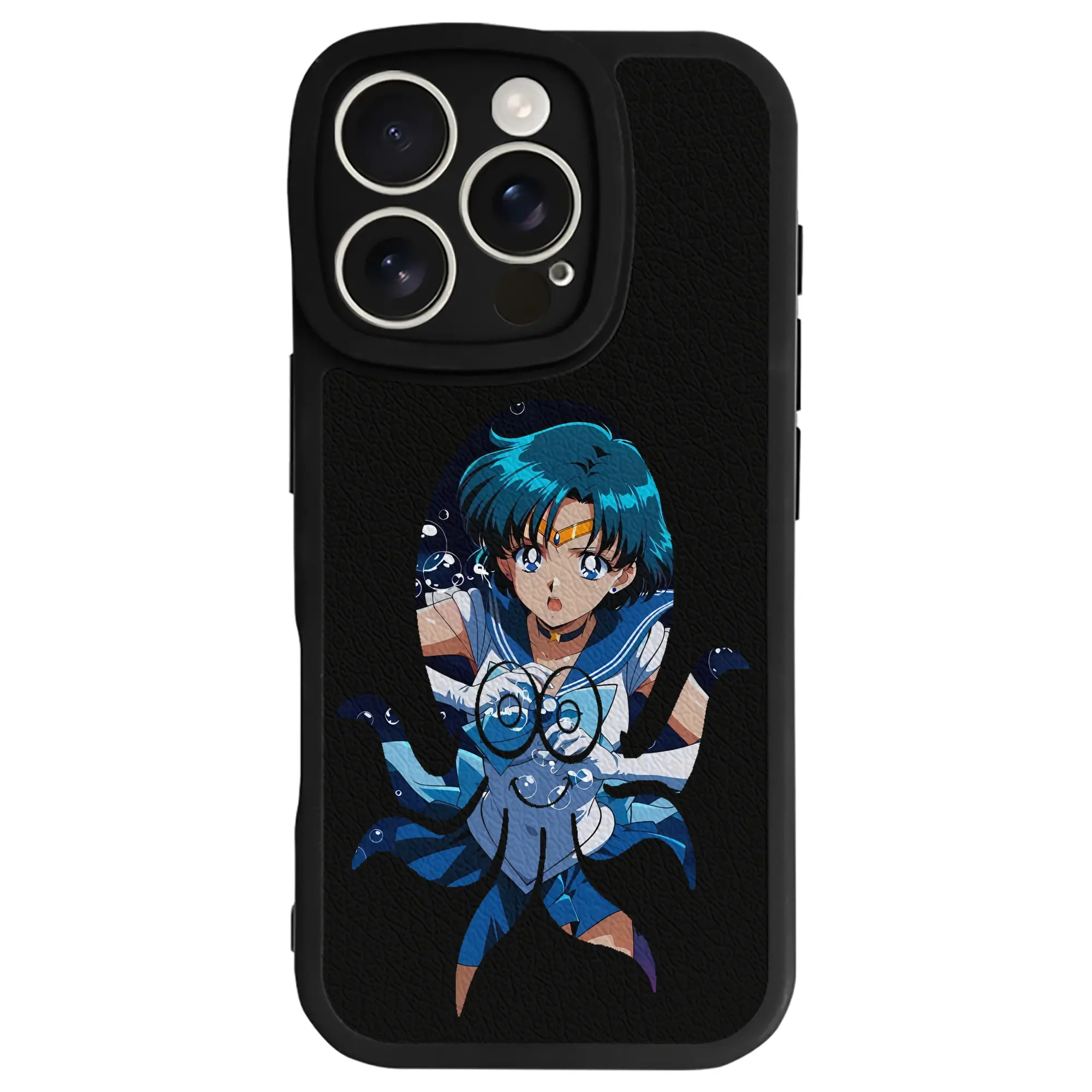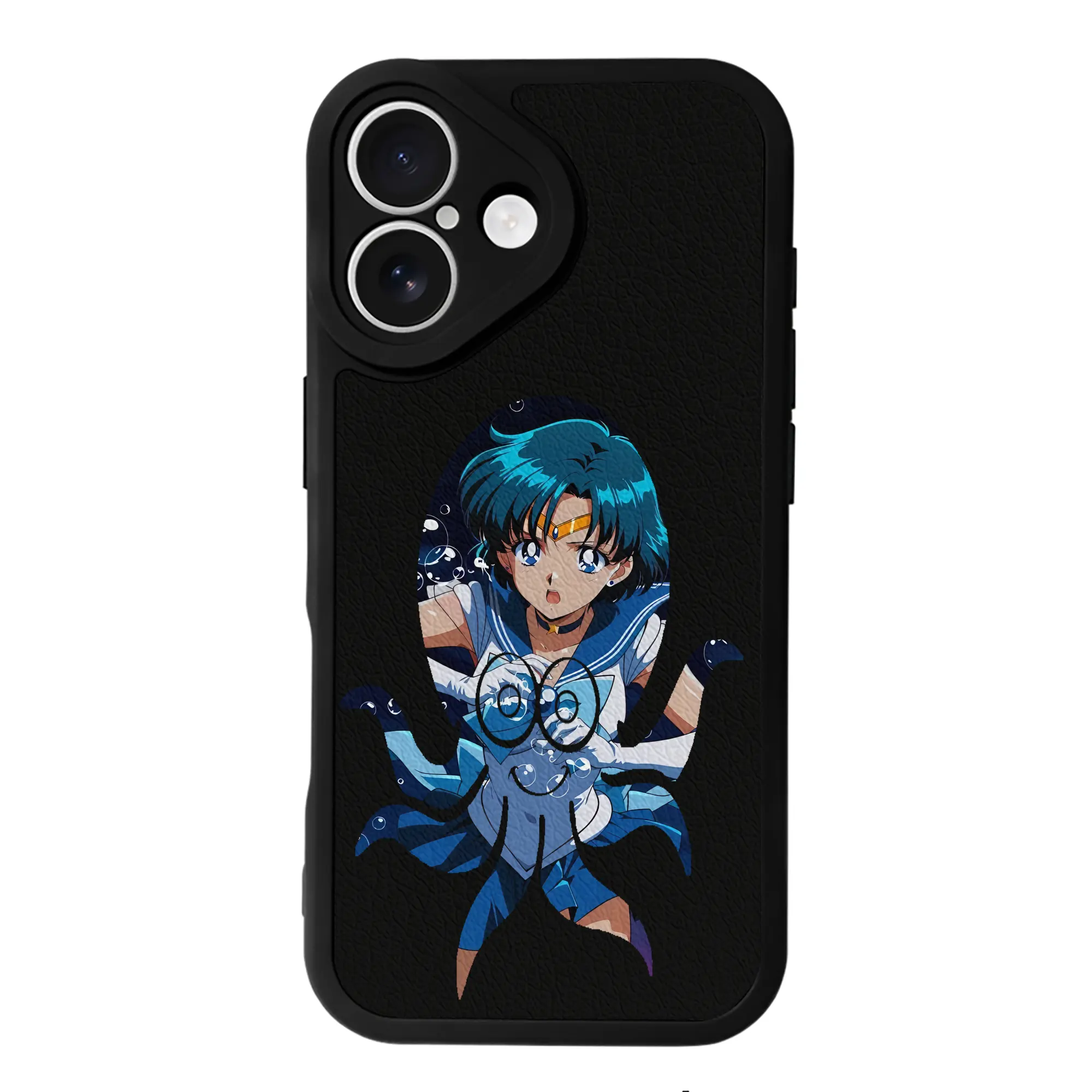 美少女戦士セーラームーン グッズ 水野 亜美 - IPhone 16シリーズ対応 ・ シリコンスマホケース ・ レザー調 ・ 高精度フィット ・ 耐衝撃 ・ ワイヤレス充電対応 ・ 精密カット