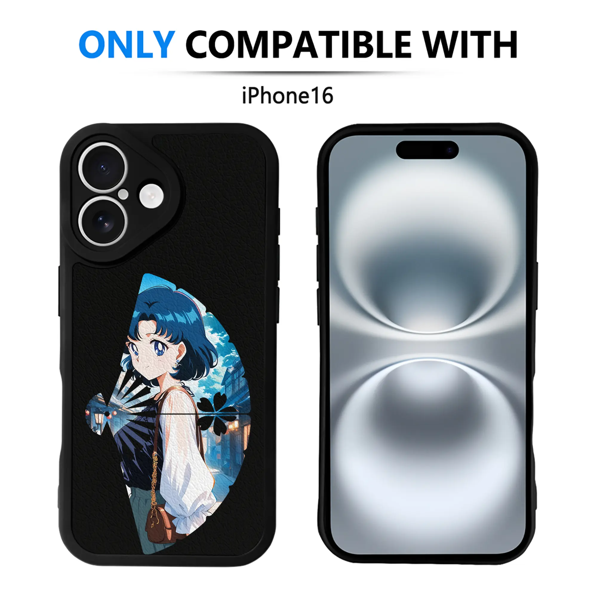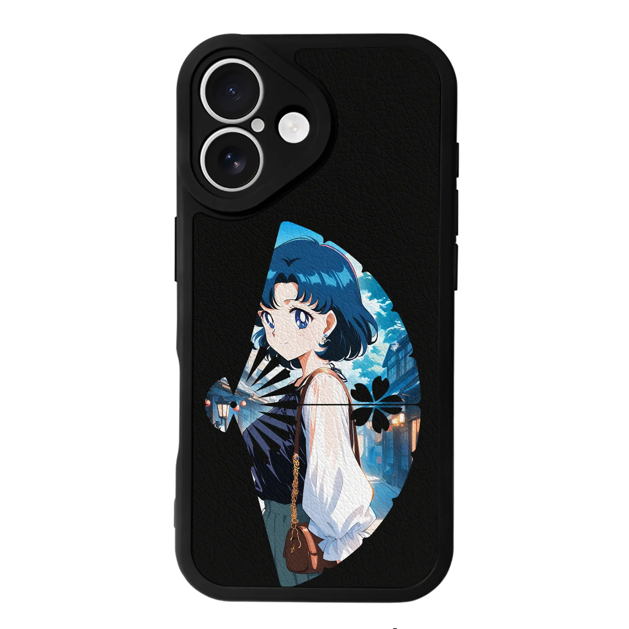美少女戦士セーラームーン グッズ 水野 亜美 - IPhone 16シリーズ対応 ・ シリコンスマホケース ・ レザー調 ・ 高精度フィット ・ 耐衝撃 ・ ワイヤレス充電対応 ・ 精密カット