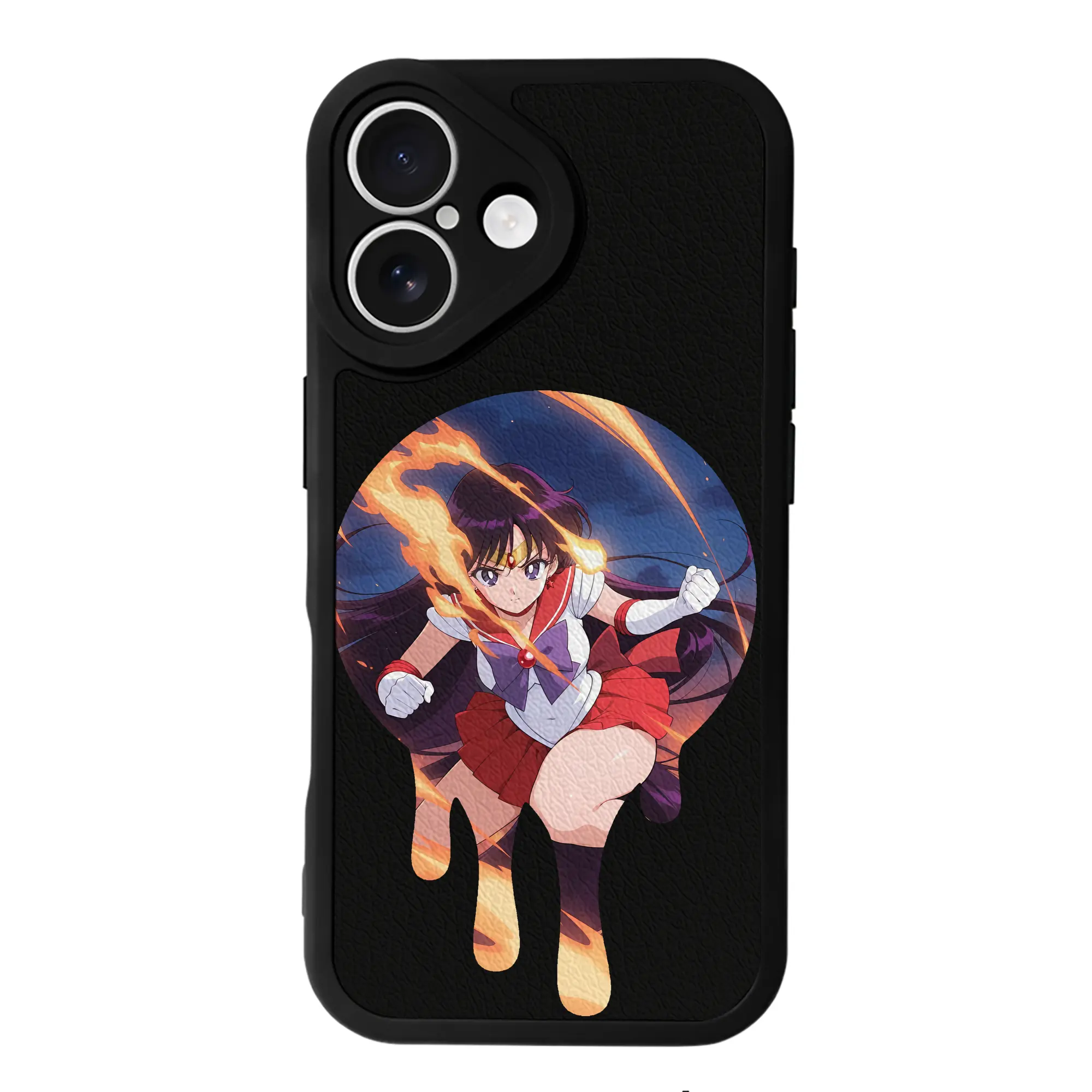 美少女戦士セーラームーン グッズ 火野 レイ - IPhone 16シリーズ対応 ・ シリコンスマホケース ・ レザー調 ・ 高精度フィット ・ 耐衝撃 ・ ワイヤレス充電対応 ・ 精密カット