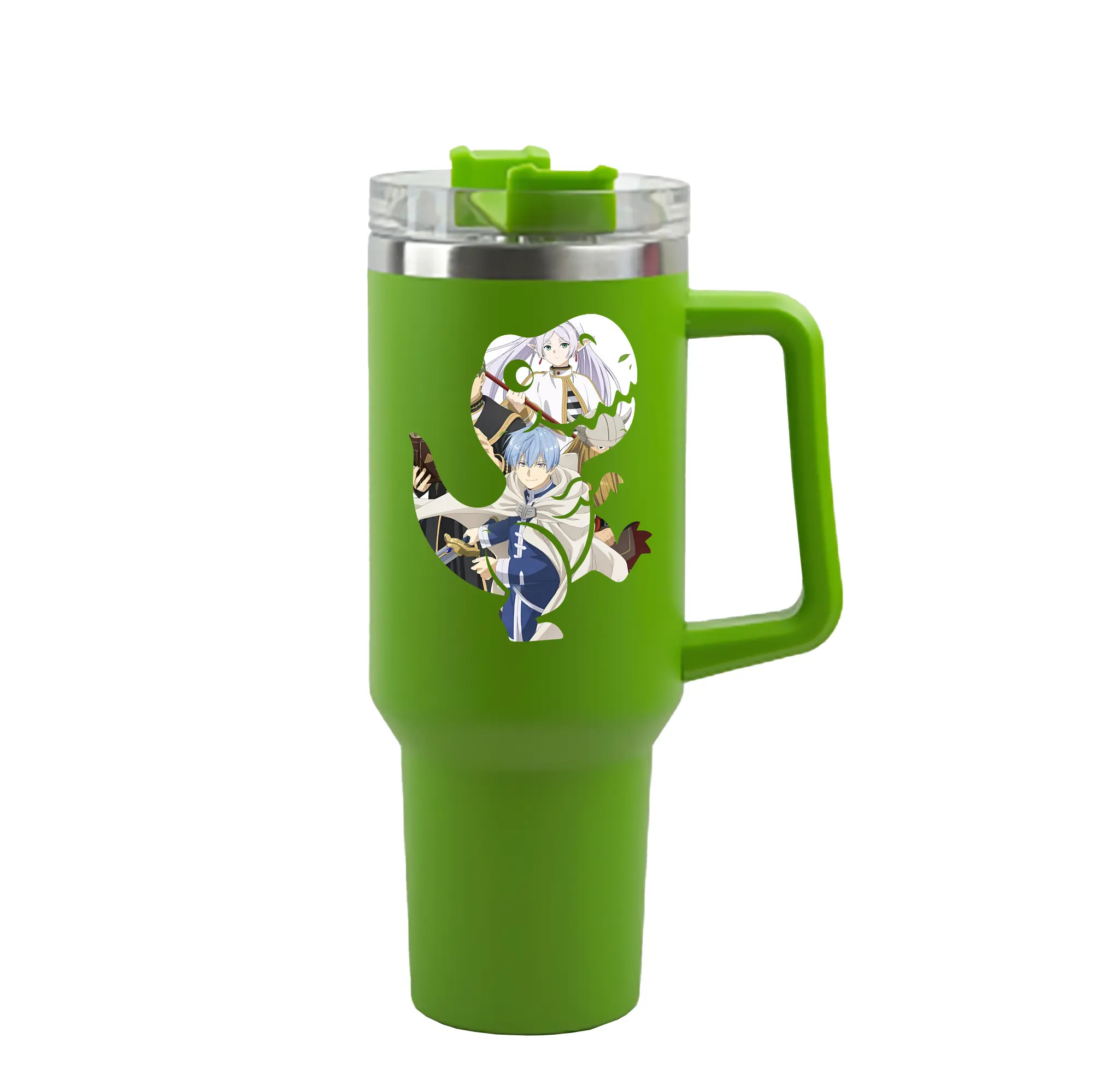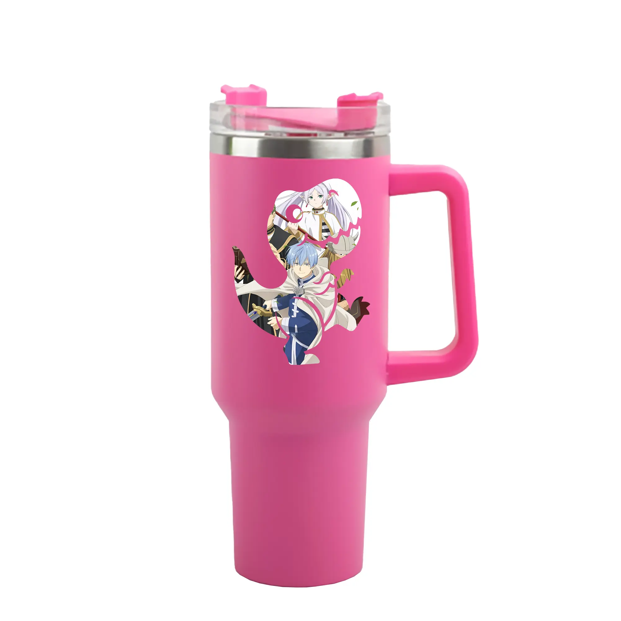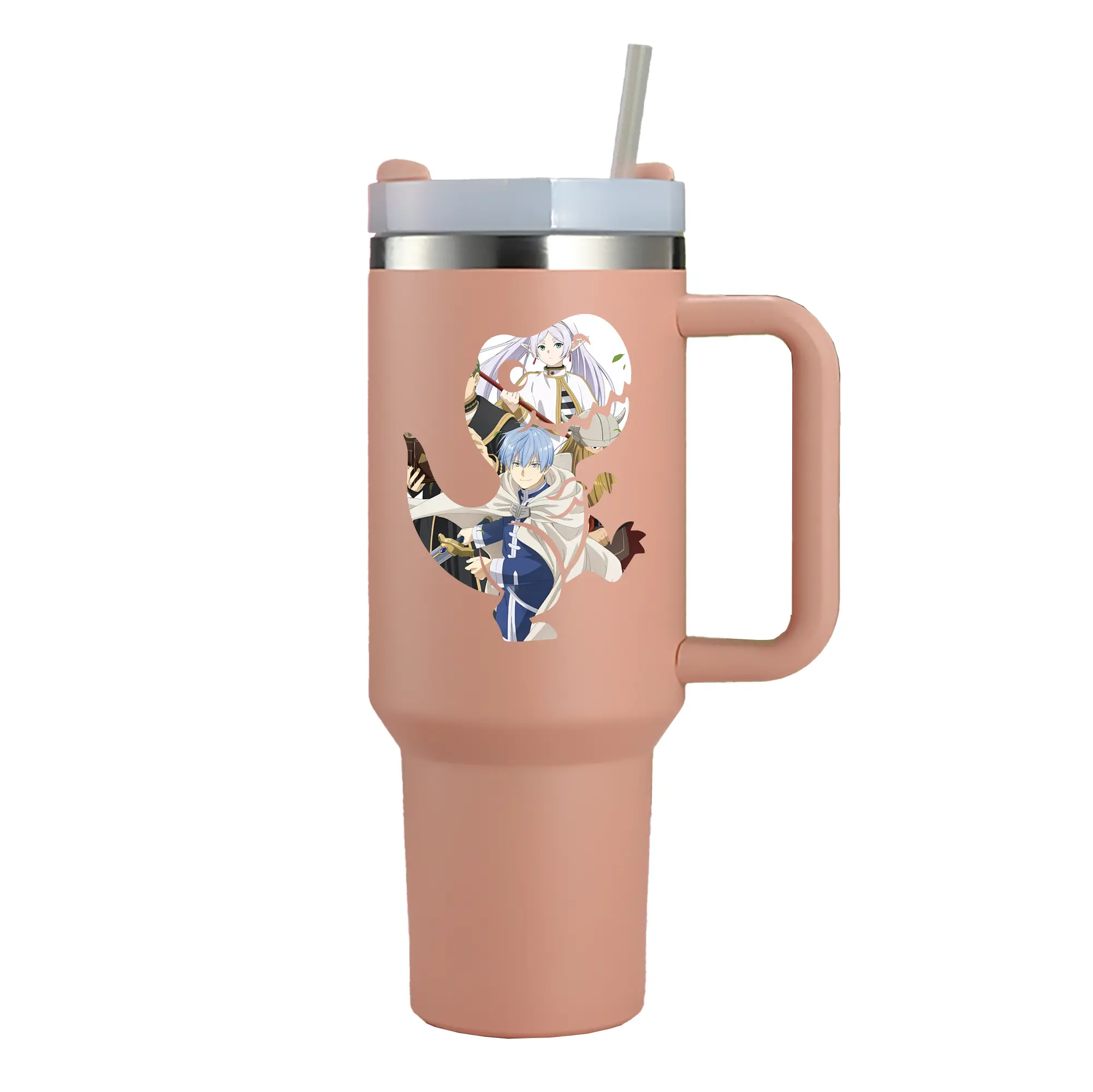 葬送のフリーレン(Frieren) グッズ,ヒンメル(Himmel) - 1200mL 車用タンブラー ・ クリスタルステッカー ・ 304ステンレス 内側 ・ 201ステンレス 外側 ・ 保温 保冷 ・ ハンドル&ストロー付き ・ 通勤 ドライブ アウトドア用