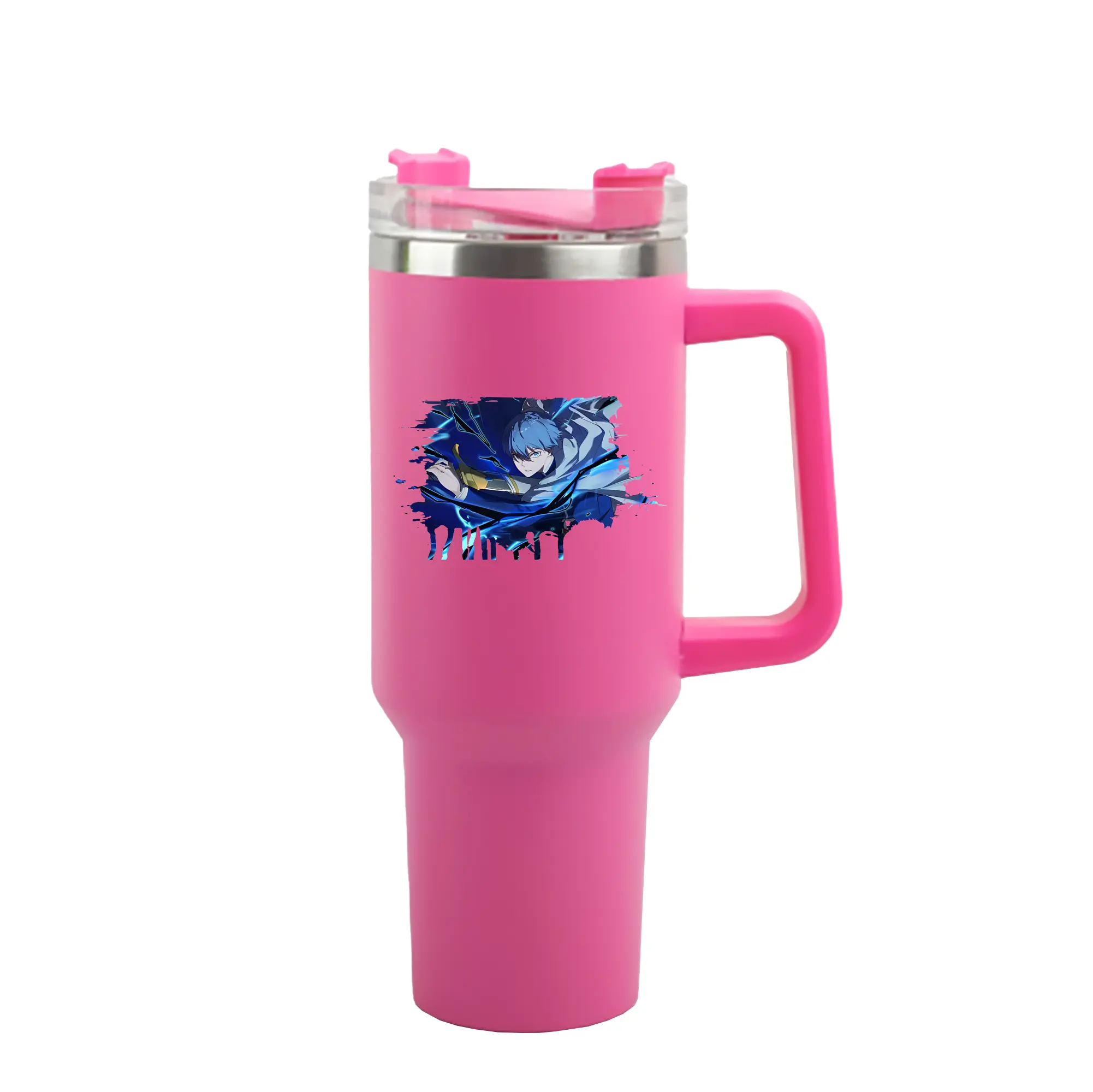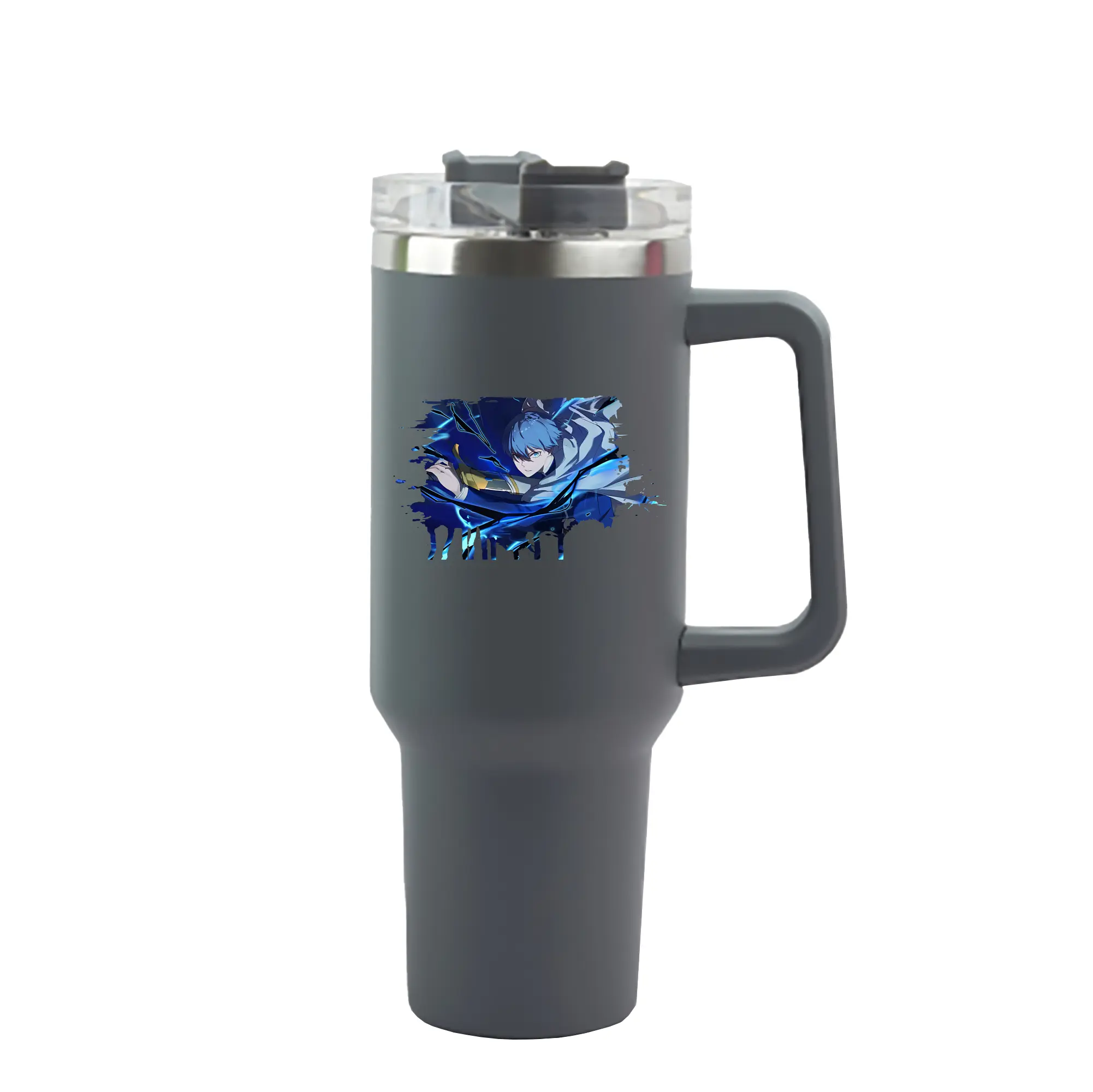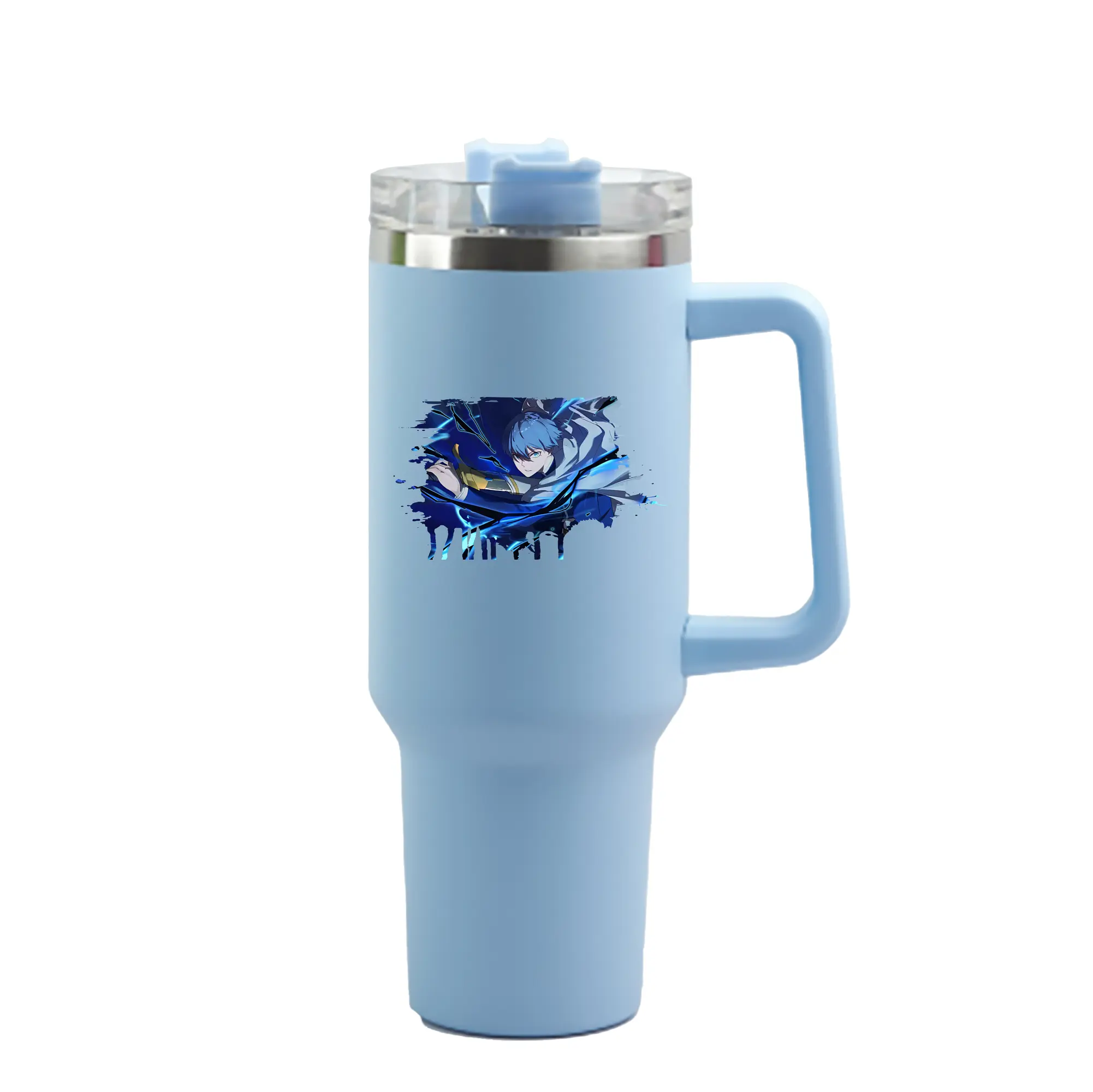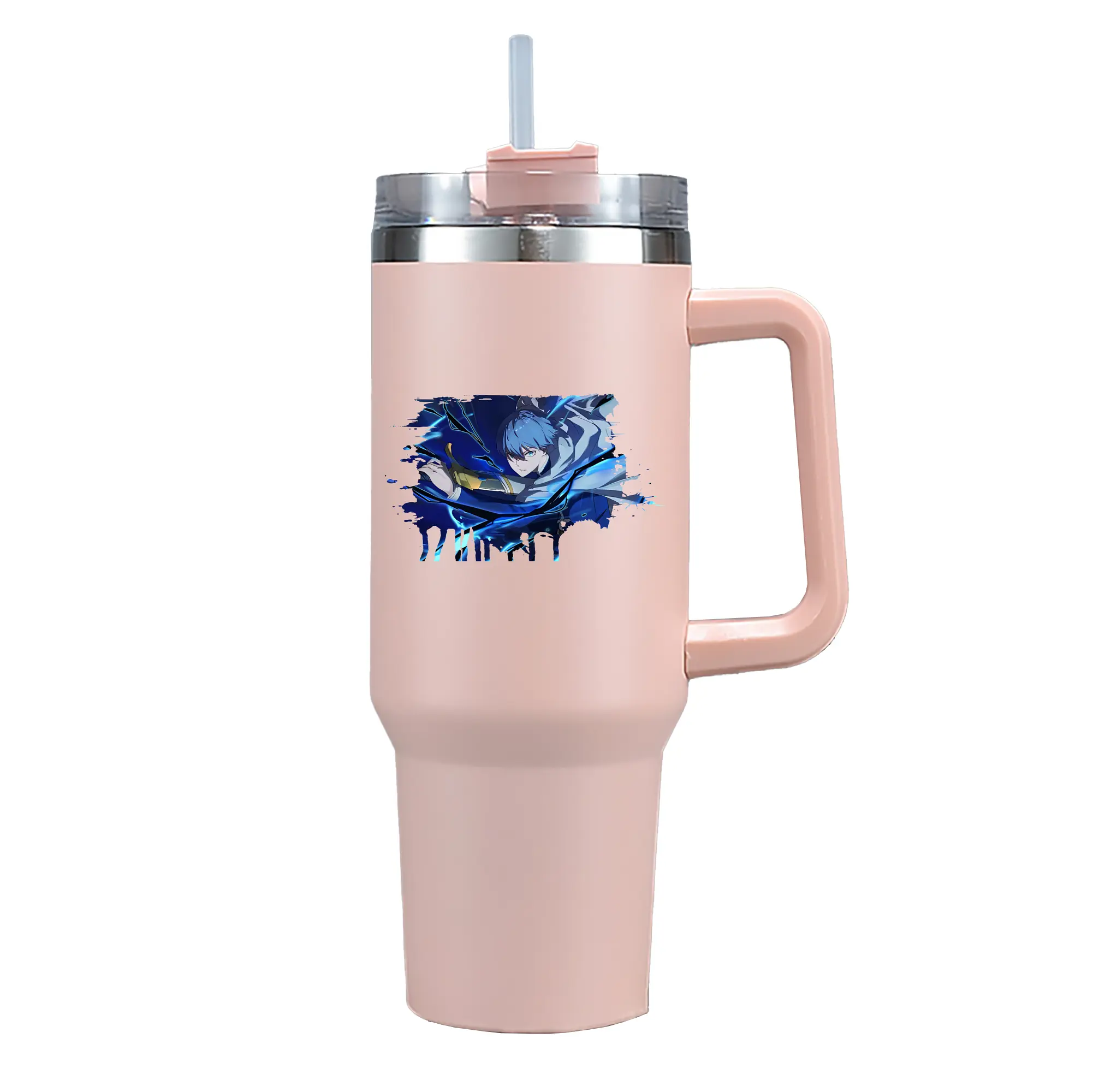 葬送のフリーレン(Frieren) グッズ,ヒンメル(Himmel) - 1200mL 車用タンブラー ・ クリスタルステッカー ・ 304ステンレス 内側 ・ 201ステンレス 外側 ・ 保温 保冷 ・ ハンドル&ストロー付き ・ 通勤 ドライブ アウトドア用