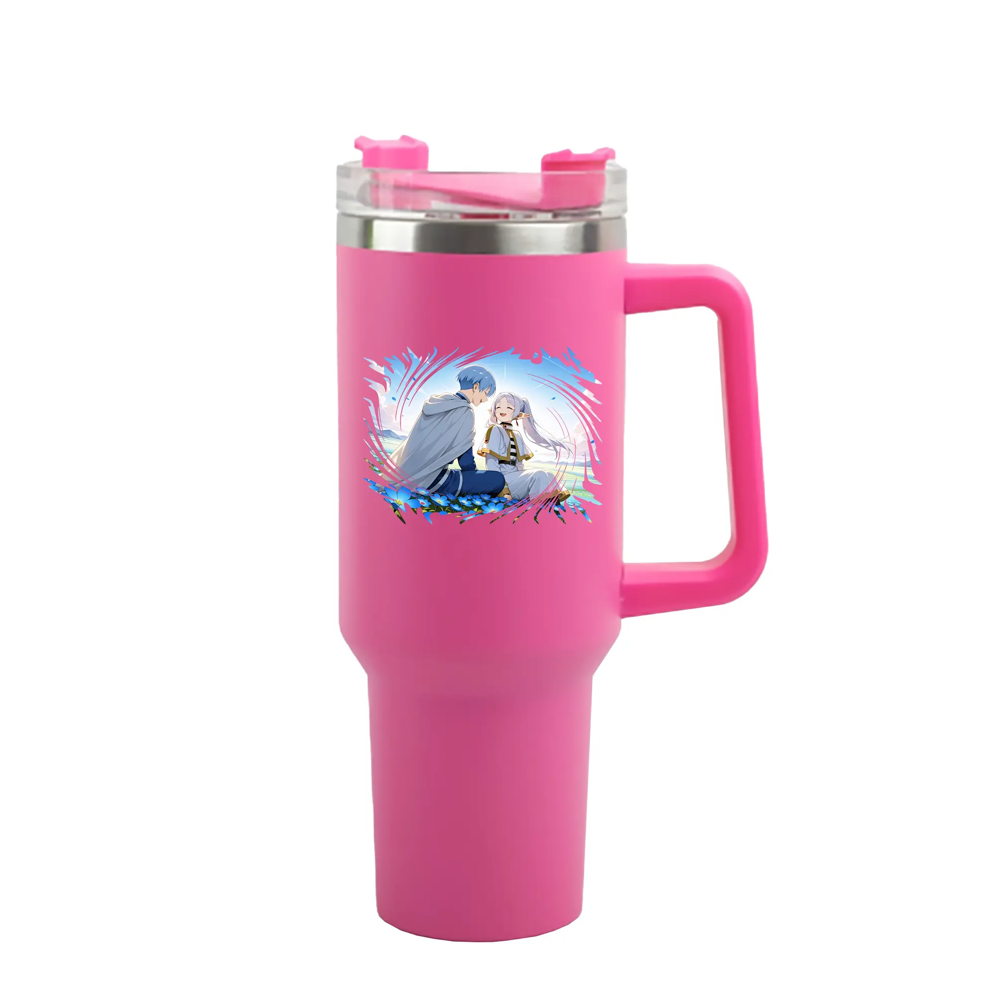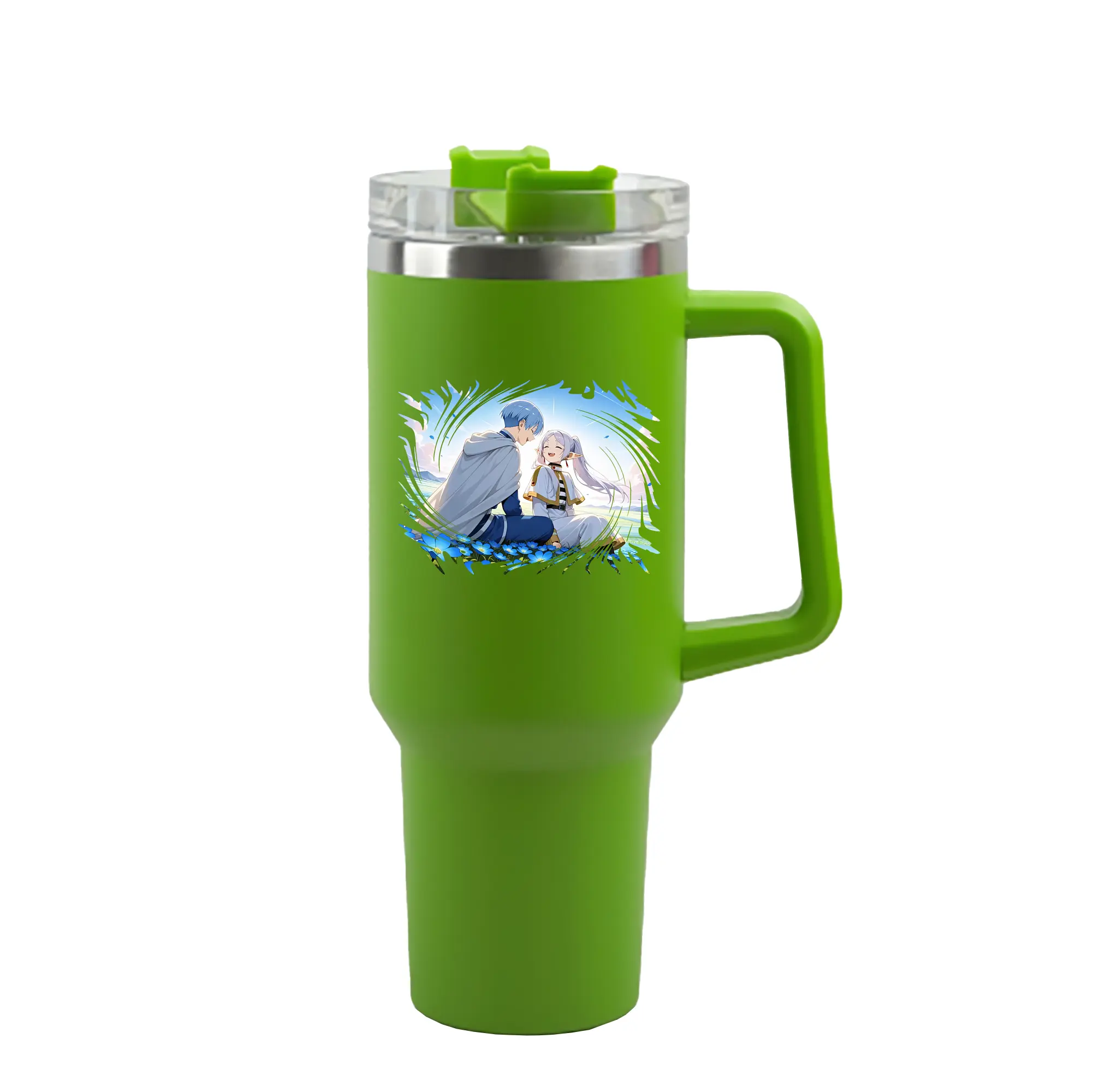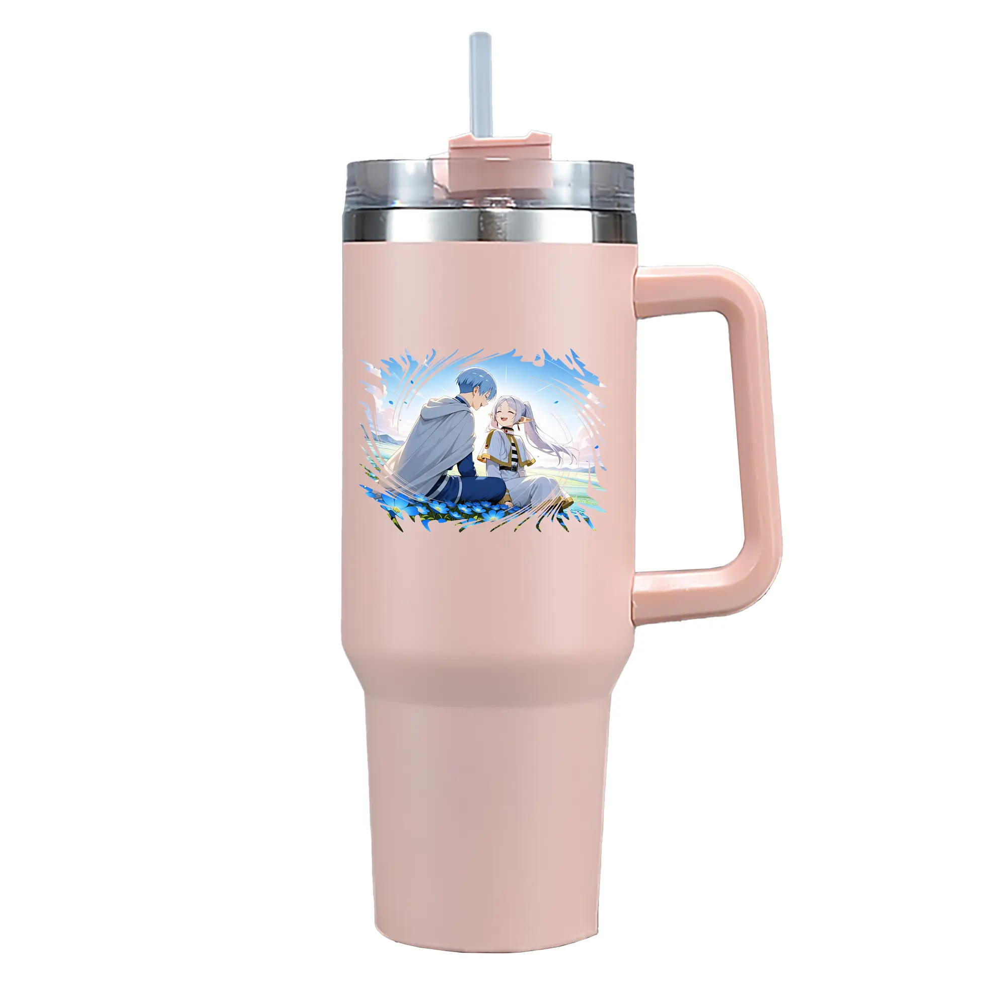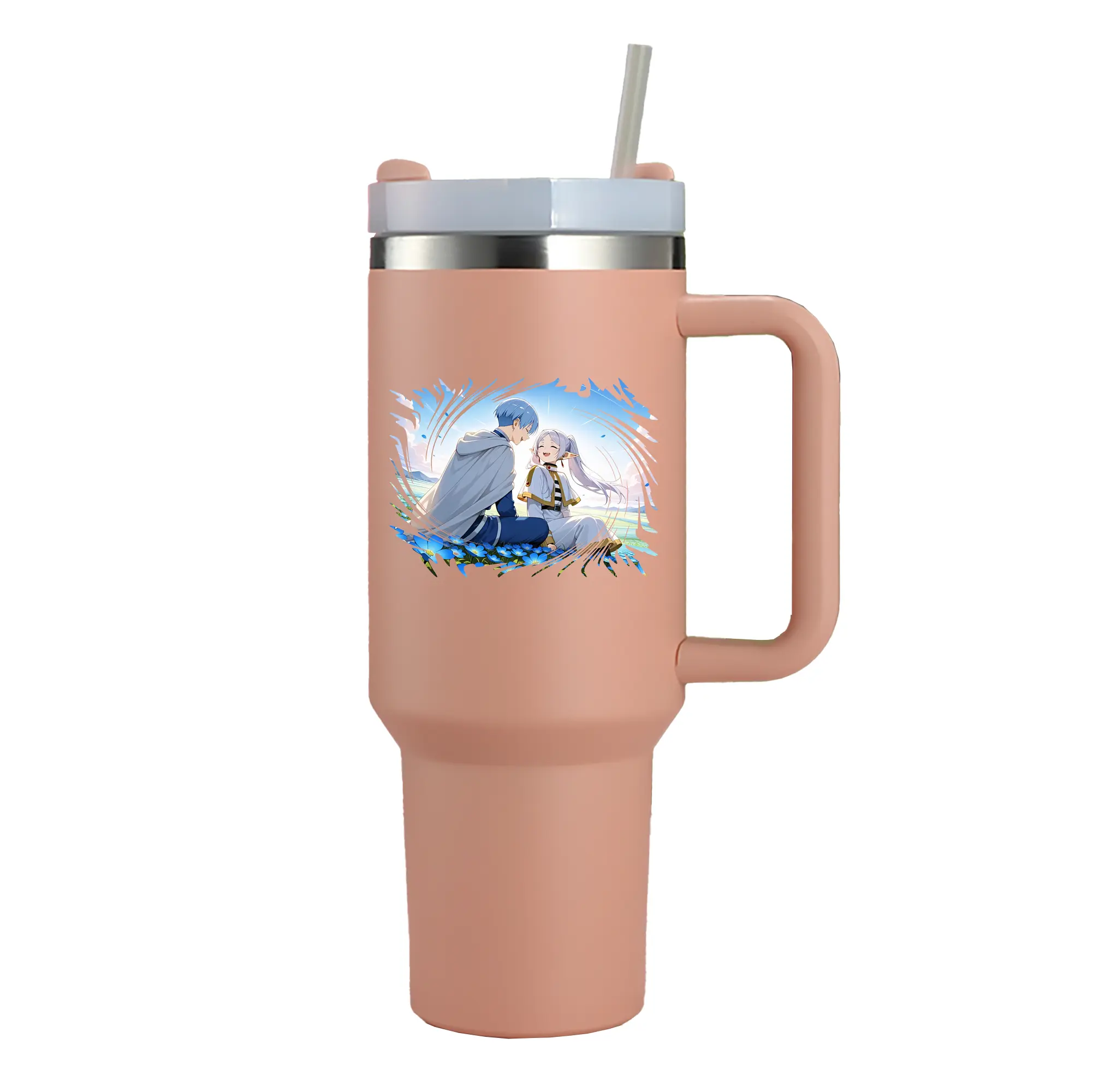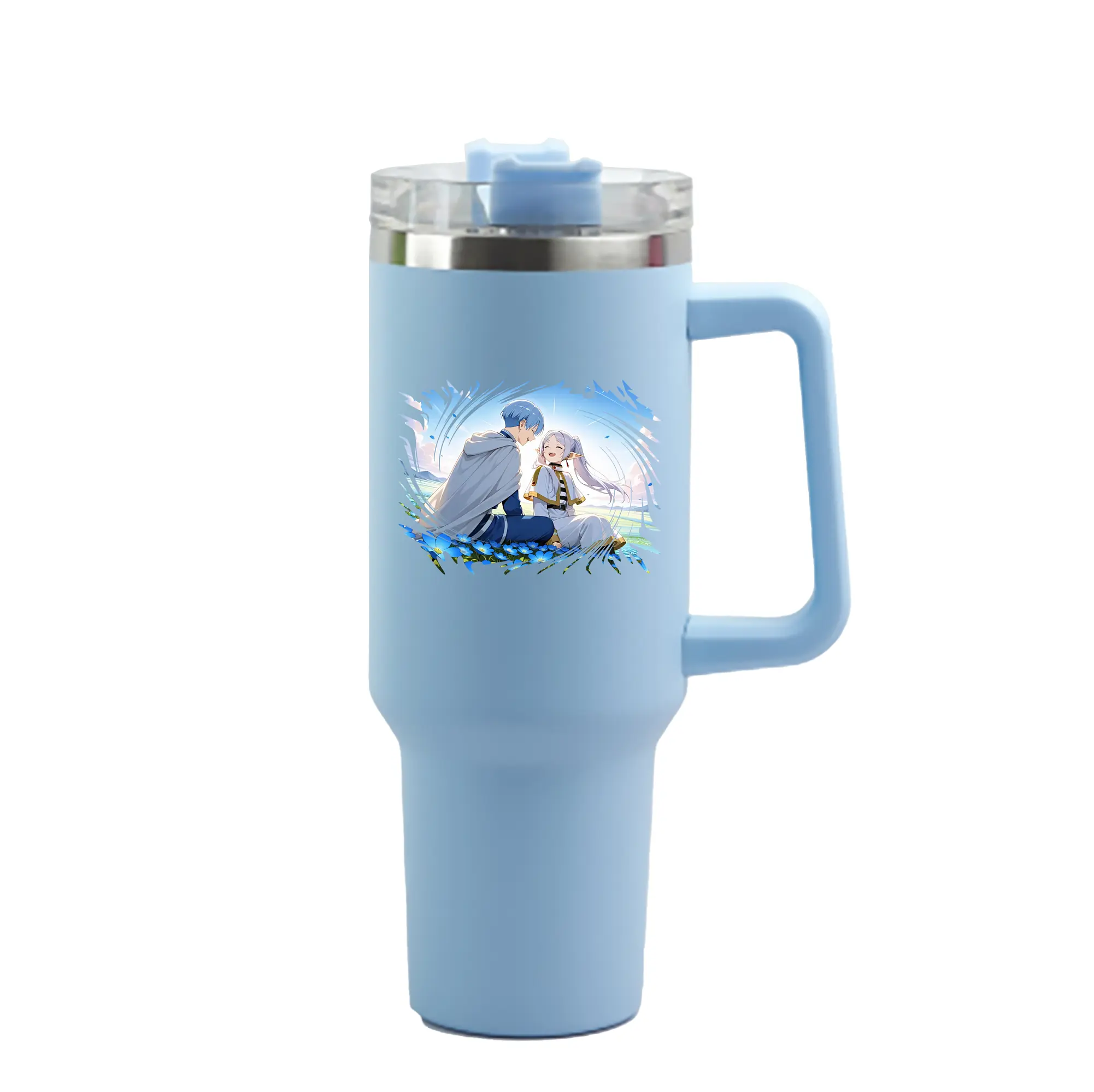 葬送のフリーレン(Frieren) グッズ,ヒンメル(Himmel) - 1200mL 車用タンブラー ・ クリスタルステッカー ・ 304ステンレス 内側 ・ 201ステンレス 外側 ・ 保温 保冷 ・ ハンドル&ストロー付き ・ 通勤 ドライブ アウトドア用