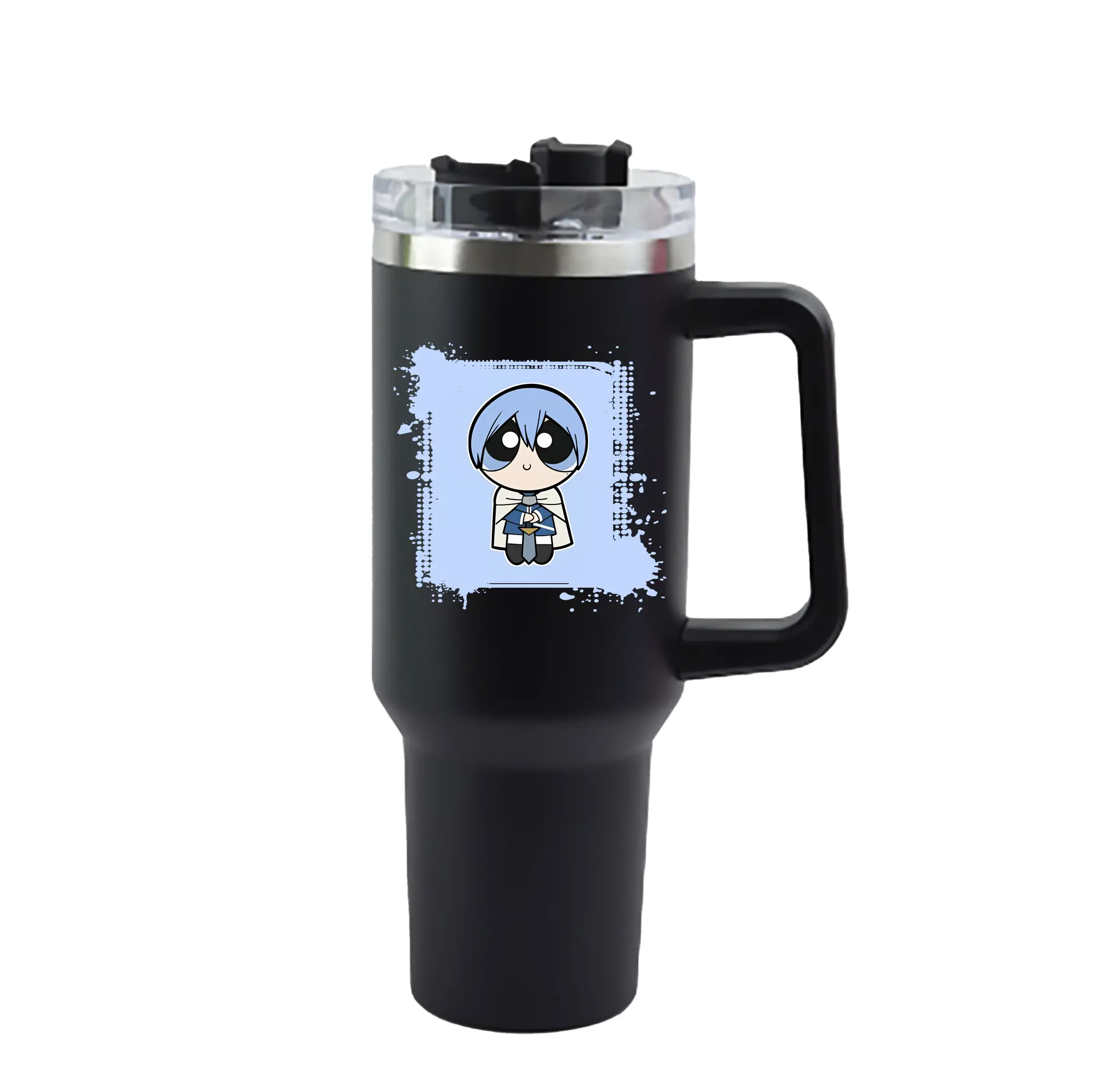 葬送のフリーレン(Frieren) グッズ,ヒンメル(Himmel) - 1200mL 車用タンブラー ・ クリスタルステッカー ・ 304ステンレス 内側 ・ 201ステンレス 外側 ・ 保温 保冷 ・ ハンドル&ストロー付き ・ 通勤 ドライブ アウトドア用