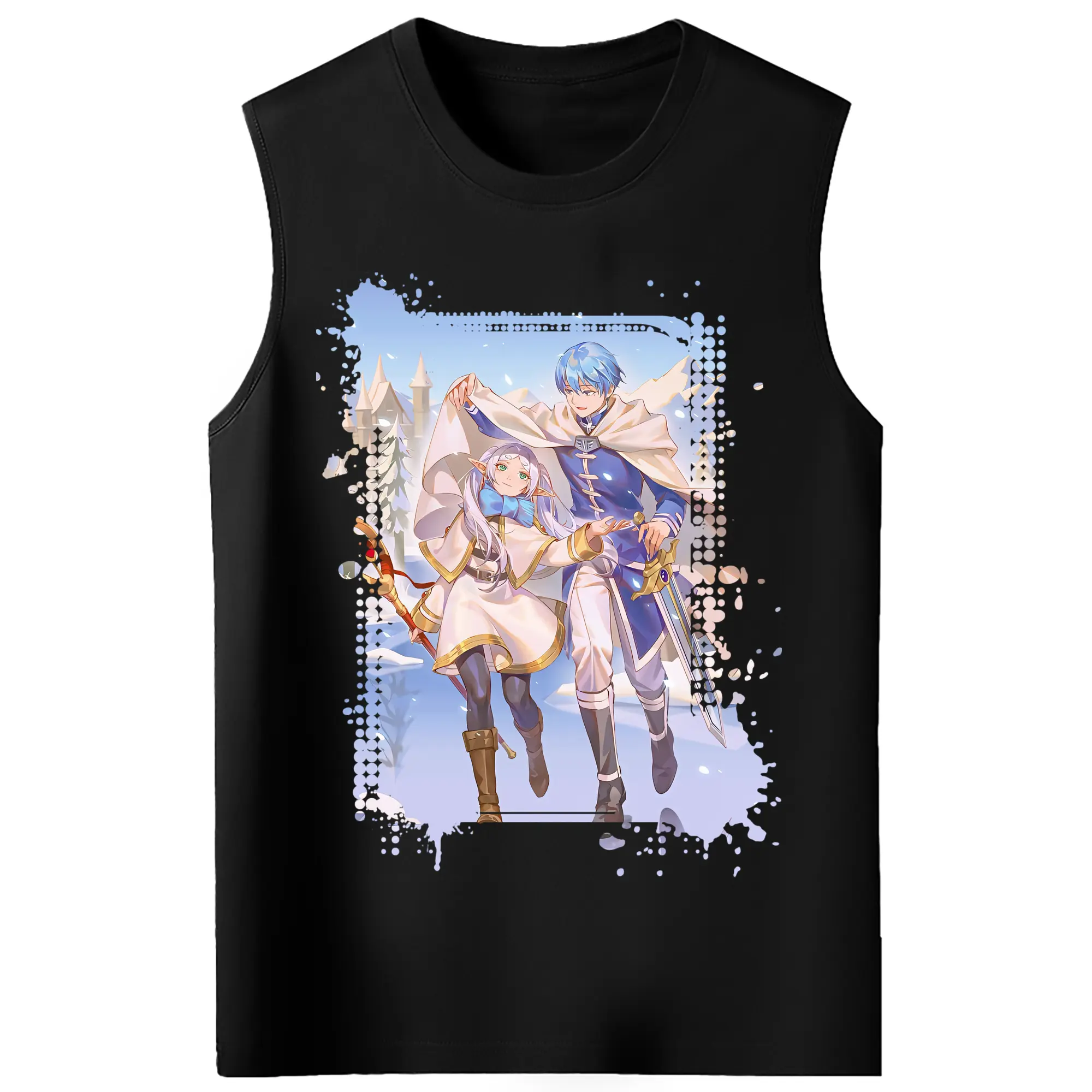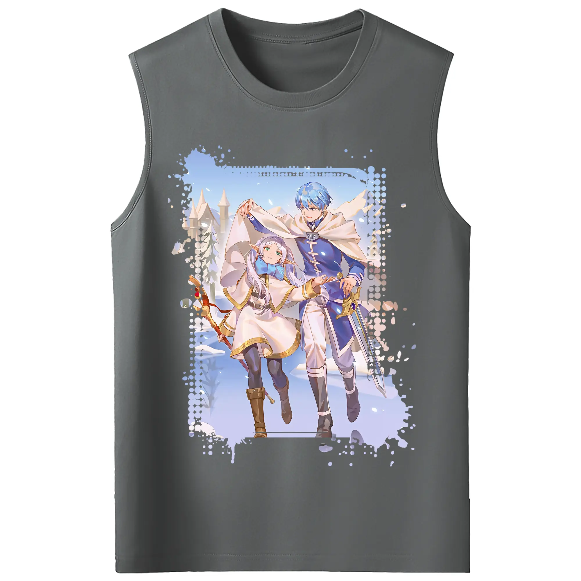 葬送のフリーレン(Frieren) グッズ,ヒンメル(Himmel) - コットン100% タンクトップ ・ フロントプリント ・ タイトフィット ・ 快適 通気性 ・ スポーツ カジュアル 散歩用