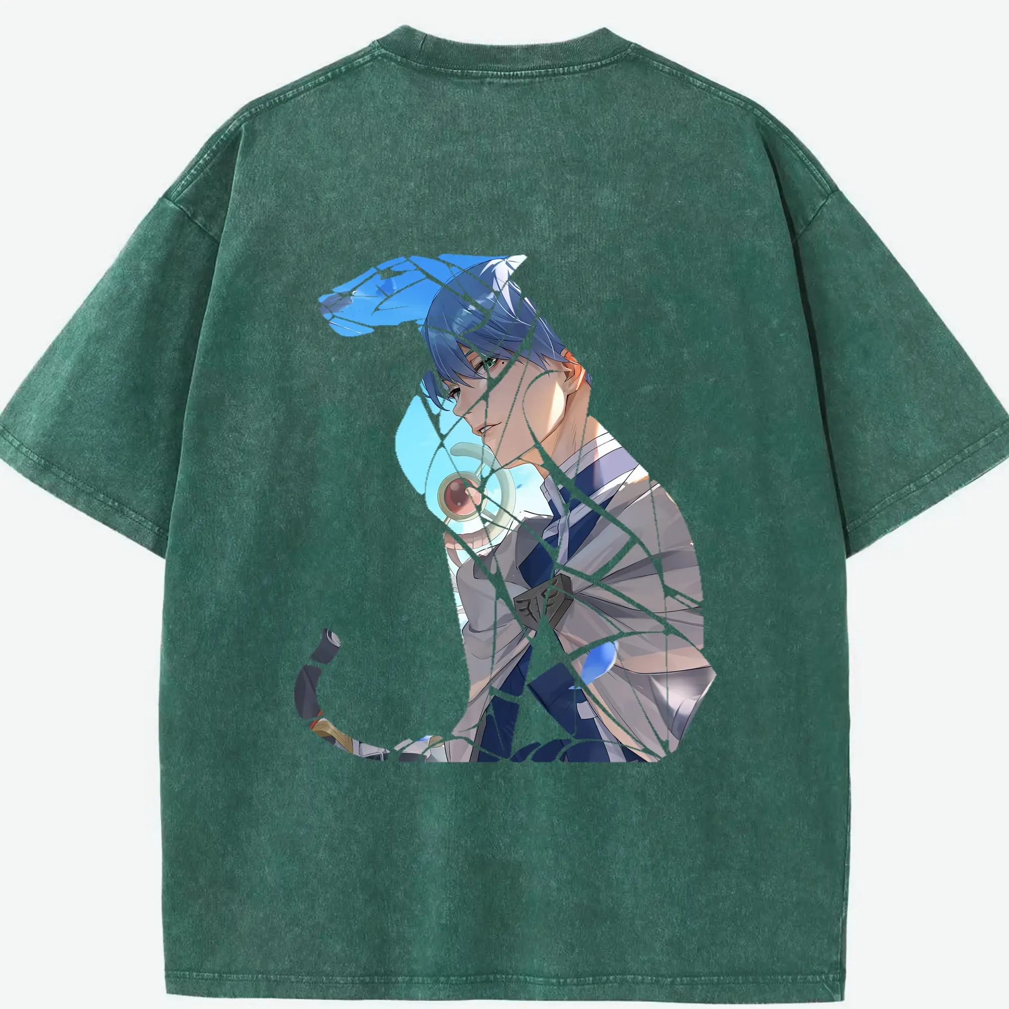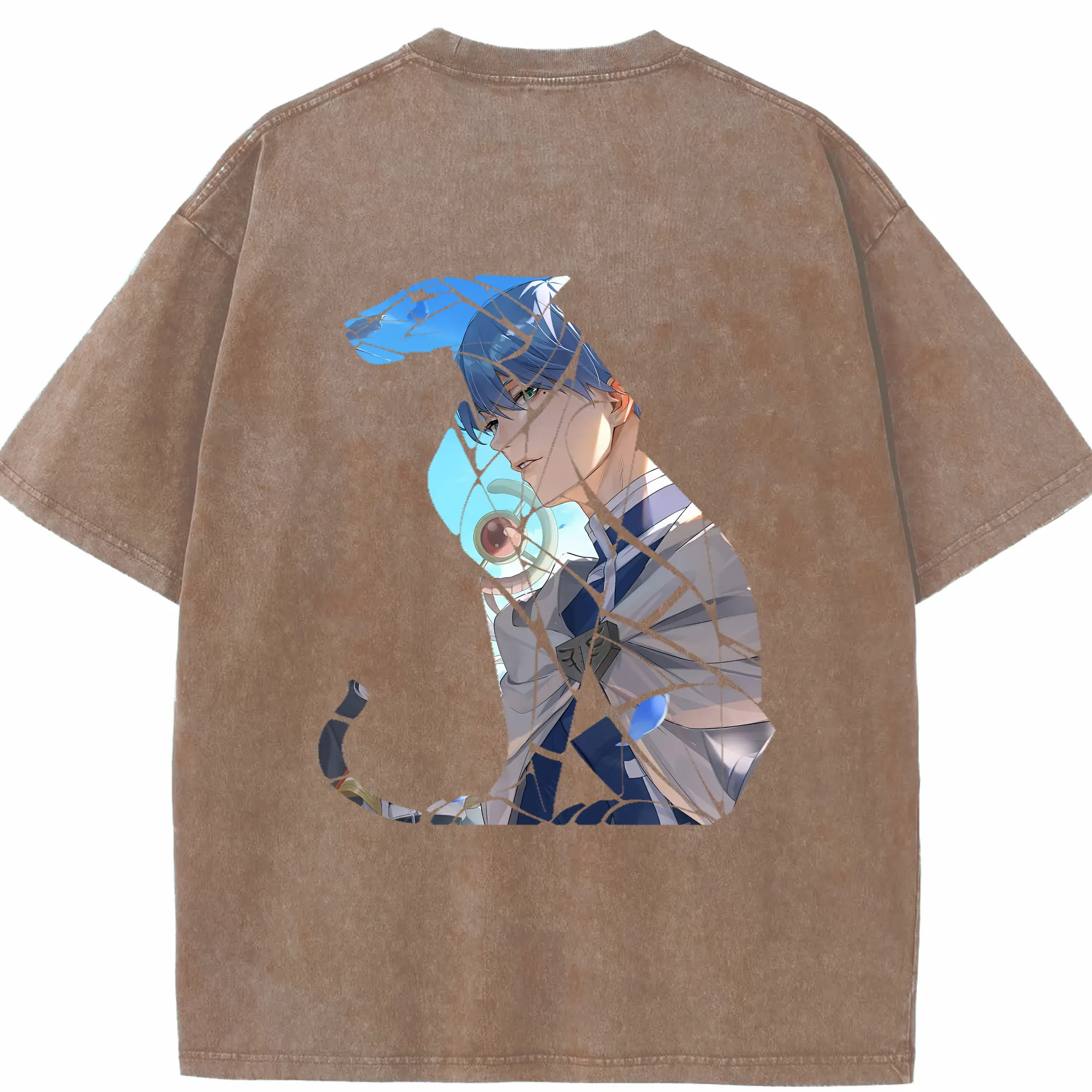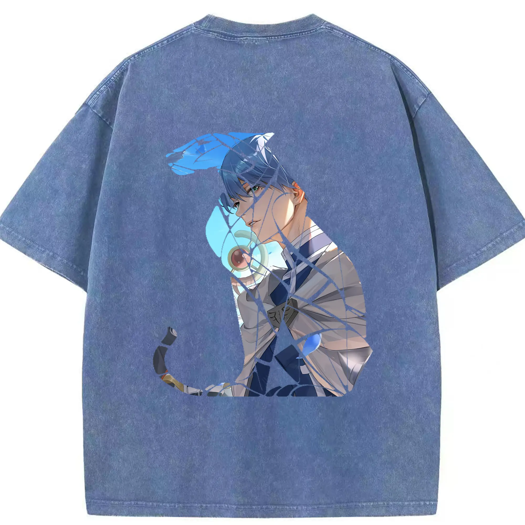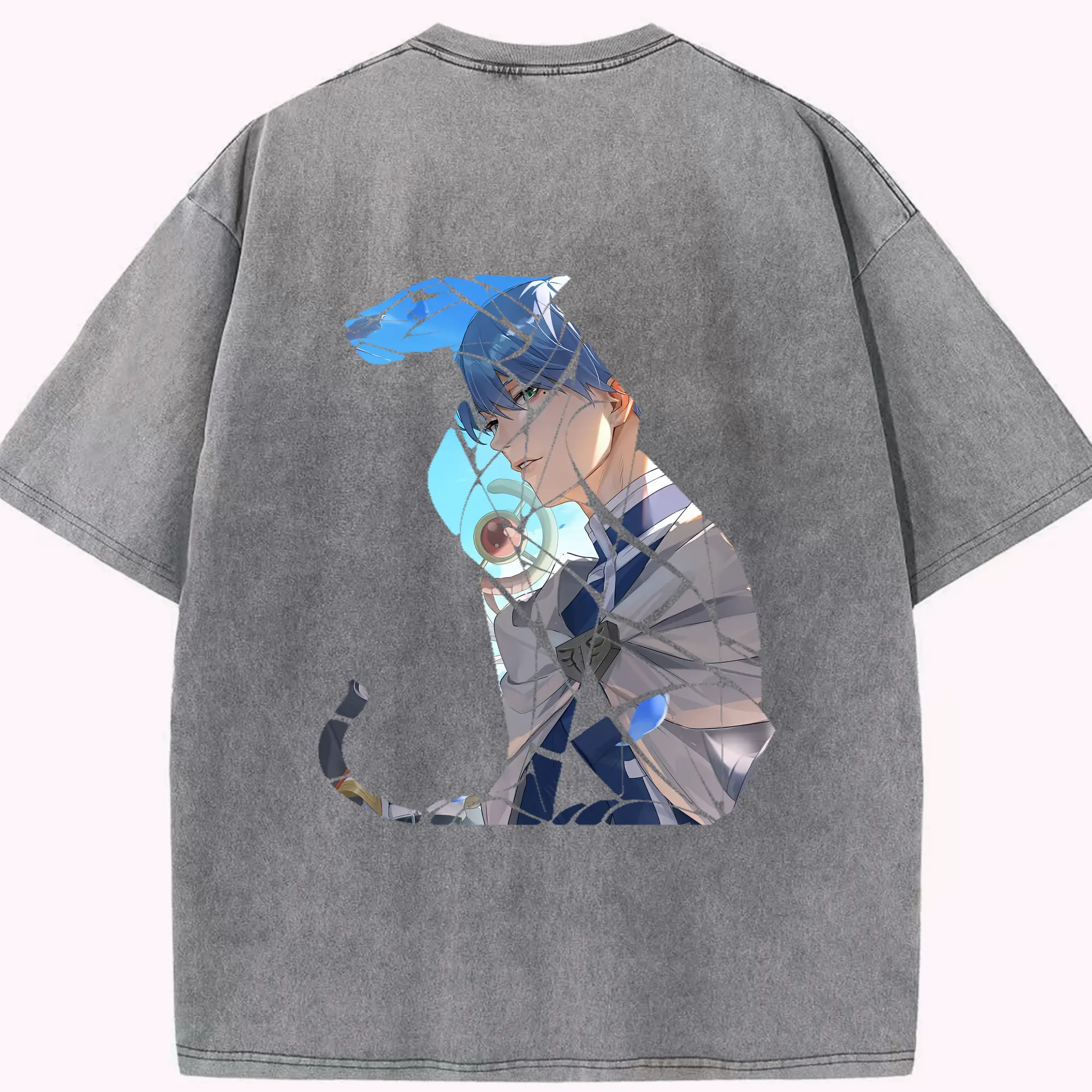 崩壊:スターレイル グッズ 白露 - 綿100% ヴィンテージ風 半袖Tシャツ ・ 背面プリント ・ 柔らか肌触り ・ 通気性 快適 ・ スポーツ カジュアル 外出用