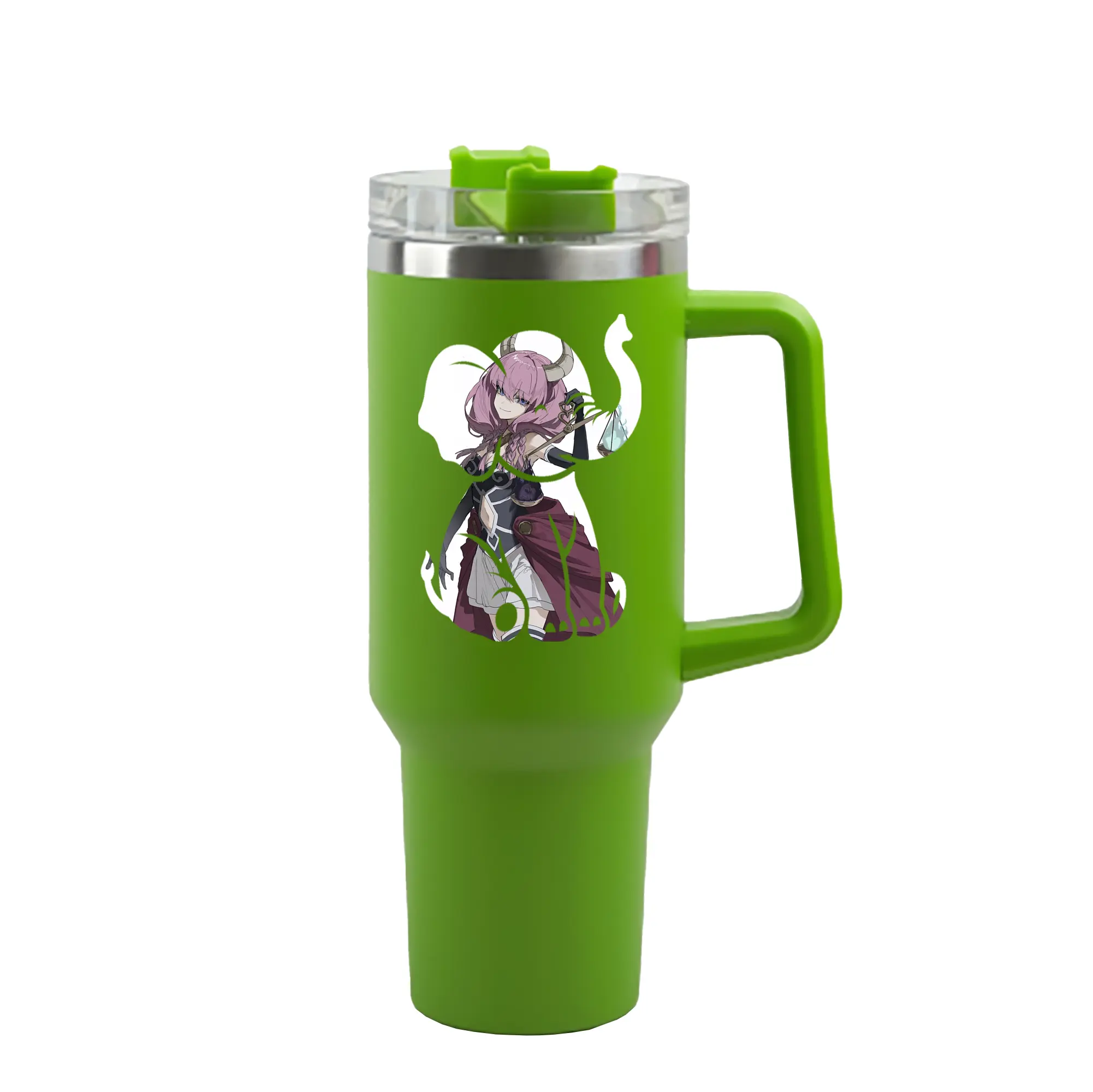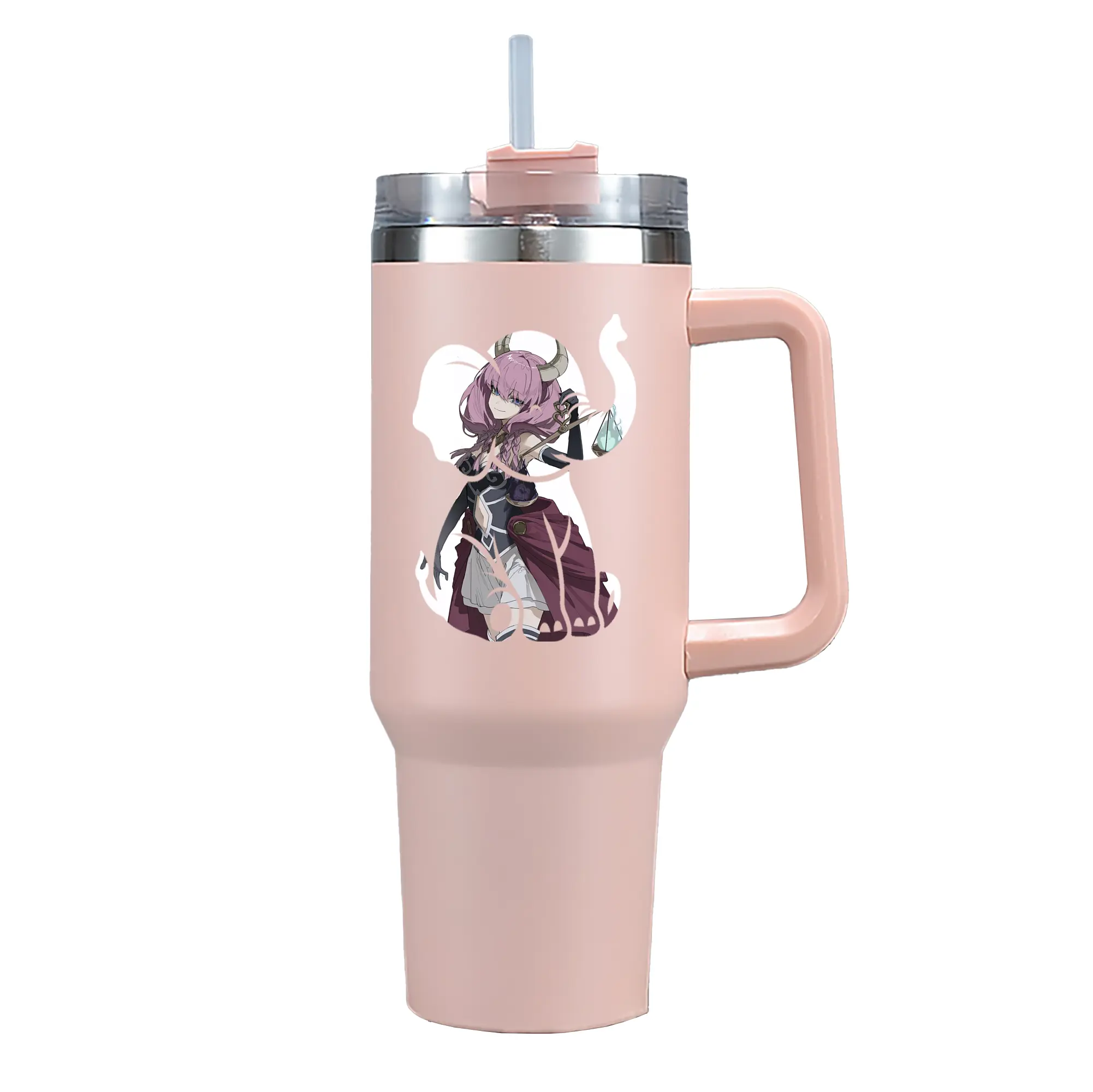葬送のフリーレン(Frieren) グッズ,アウラ(Aura) - 1200mL 車用タンブラー ・ クリスタルステッカー ・ 304ステンレス 内側 ・ 201ステンレス 外側 ・ 保温 保冷 ・ ハンドル&ストロー付き ・ 通勤 ドライブ アウトドア用