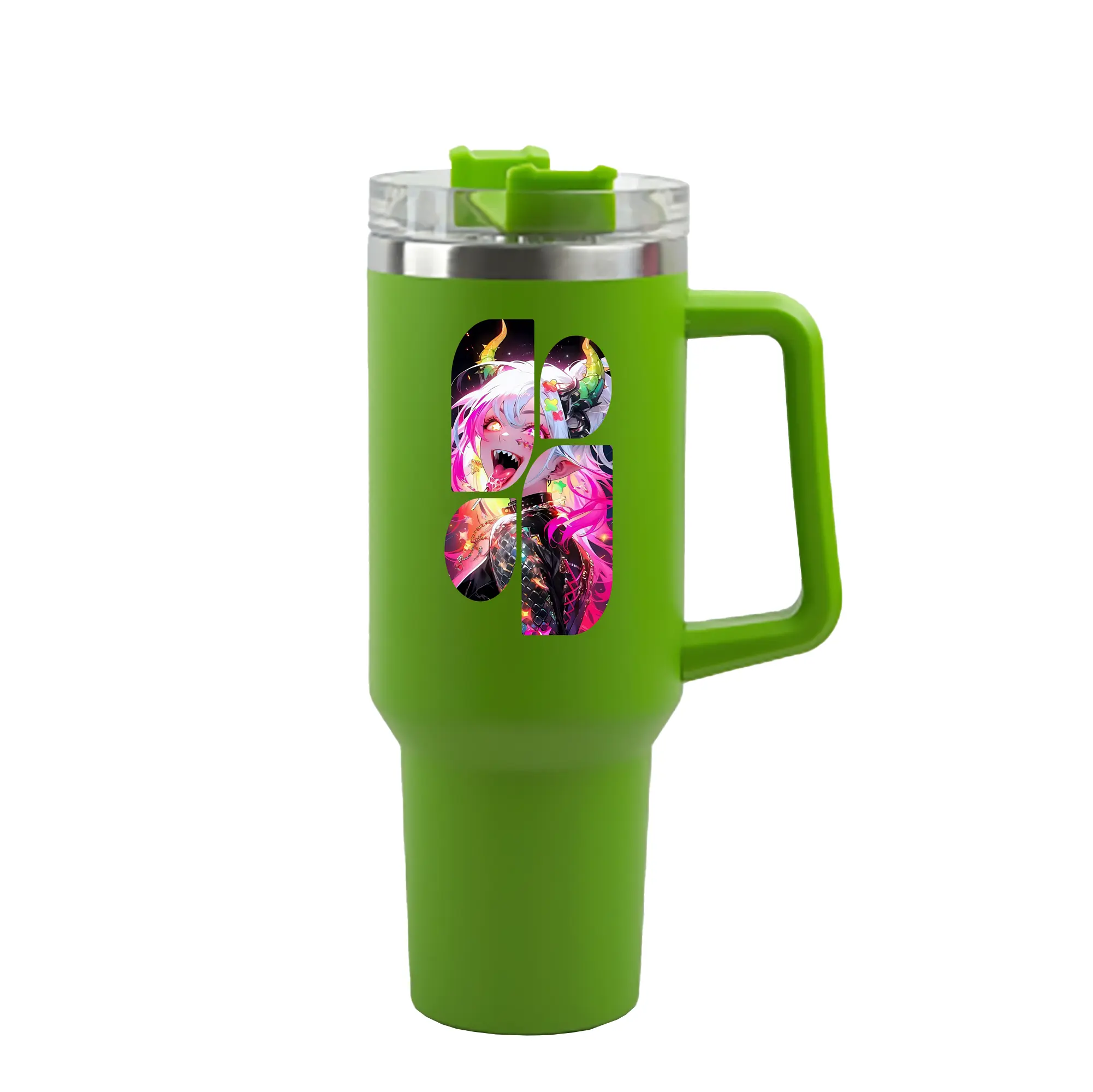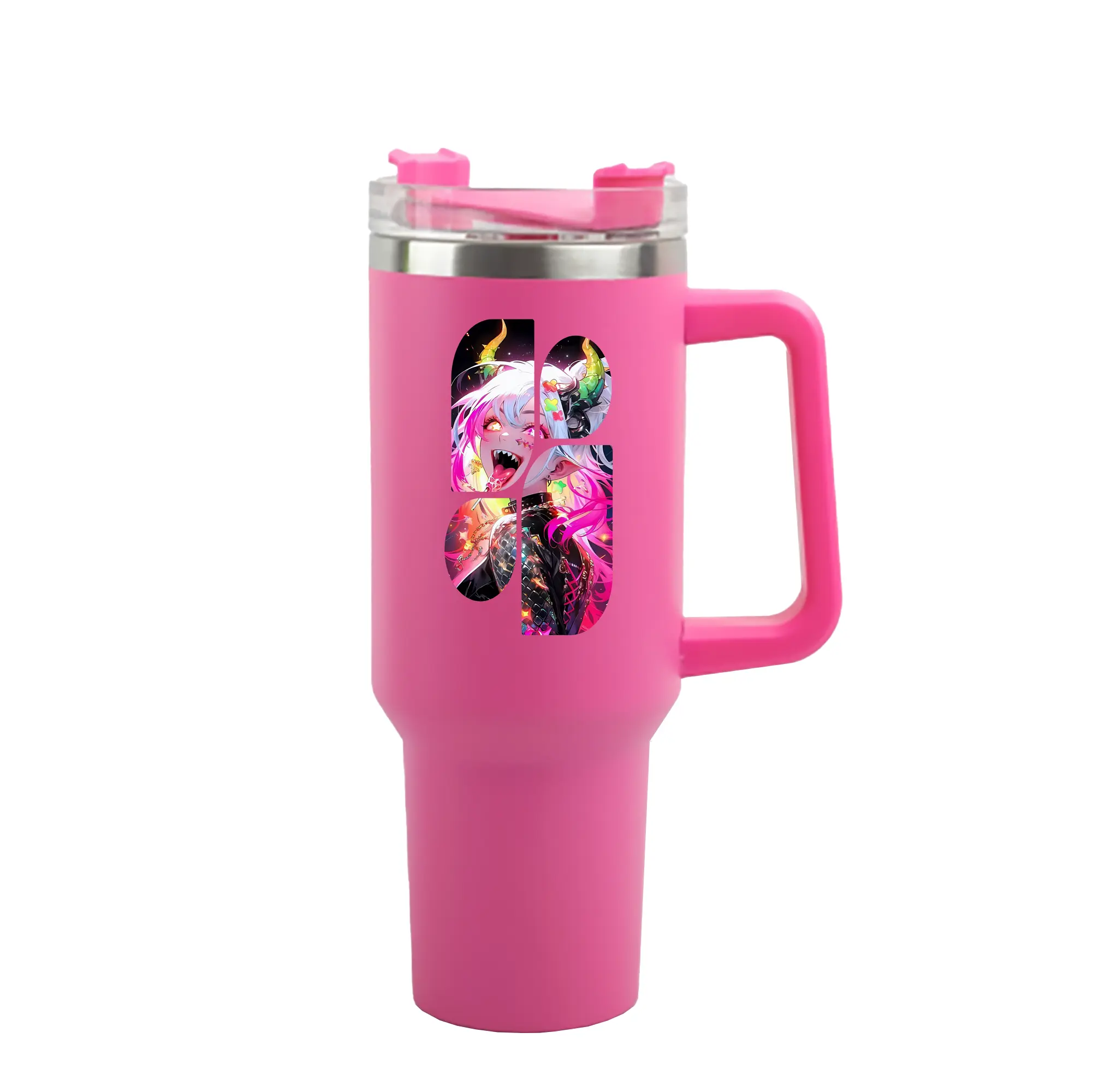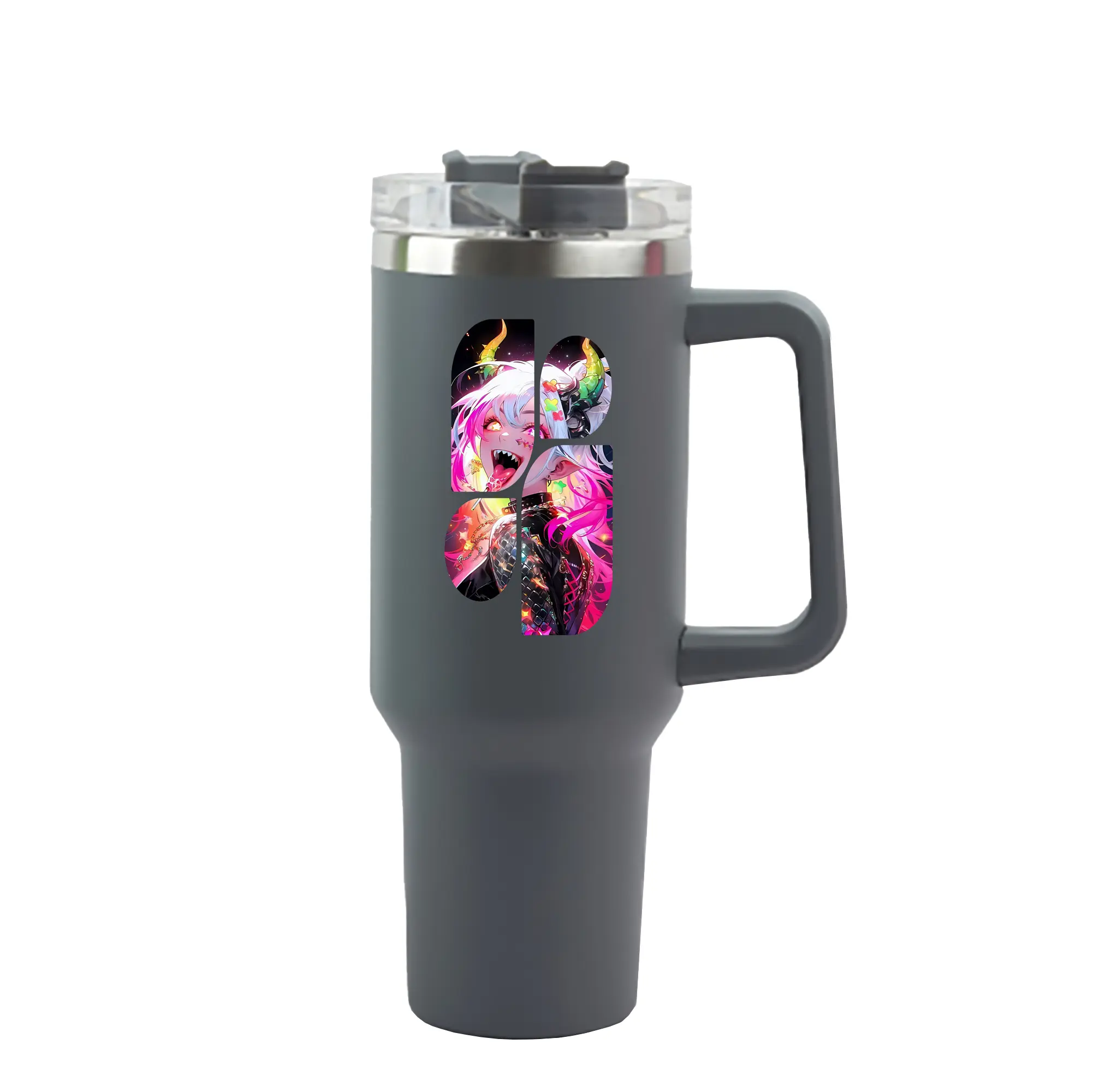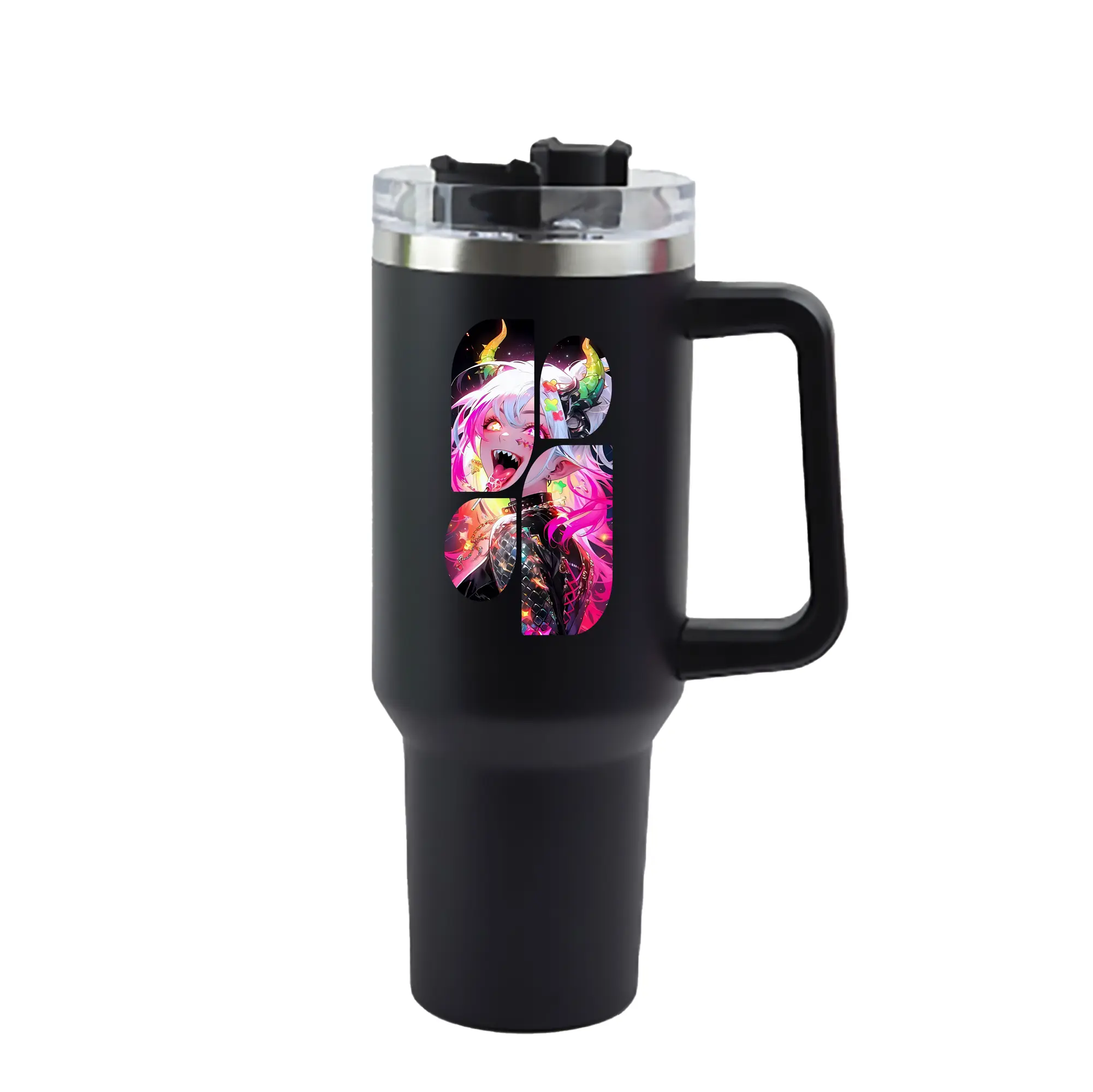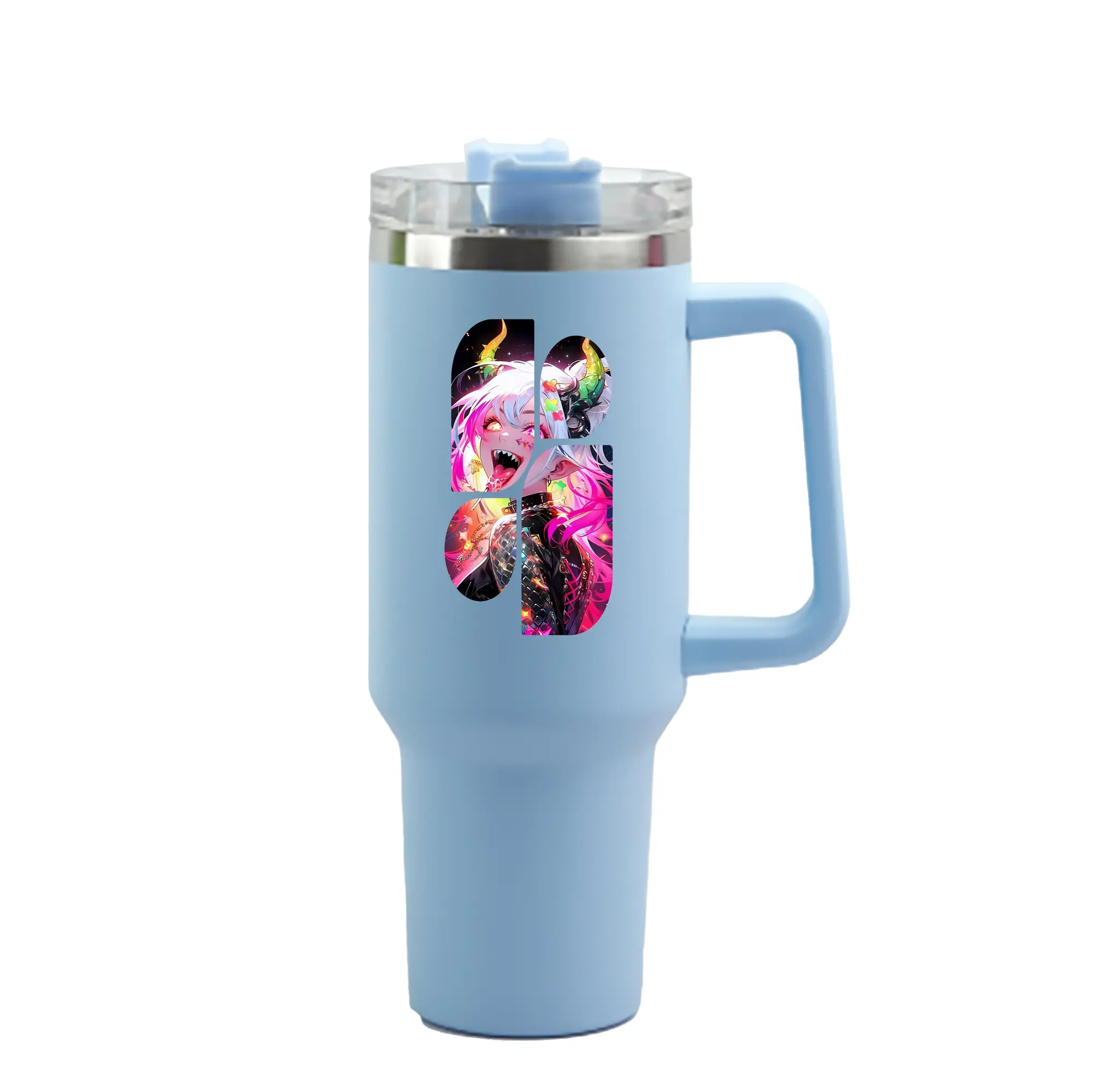 葬送のフリーレン(Frieren) グッズ,アウラ(Aura) - 1200mL 車用タンブラー ・ クリスタルステッカー ・ 304ステンレス 内側 ・ 201ステンレス 外側 ・ 保温 保冷 ・ ハンドル&ストロー付き ・ 通勤 ドライブ アウトドア用