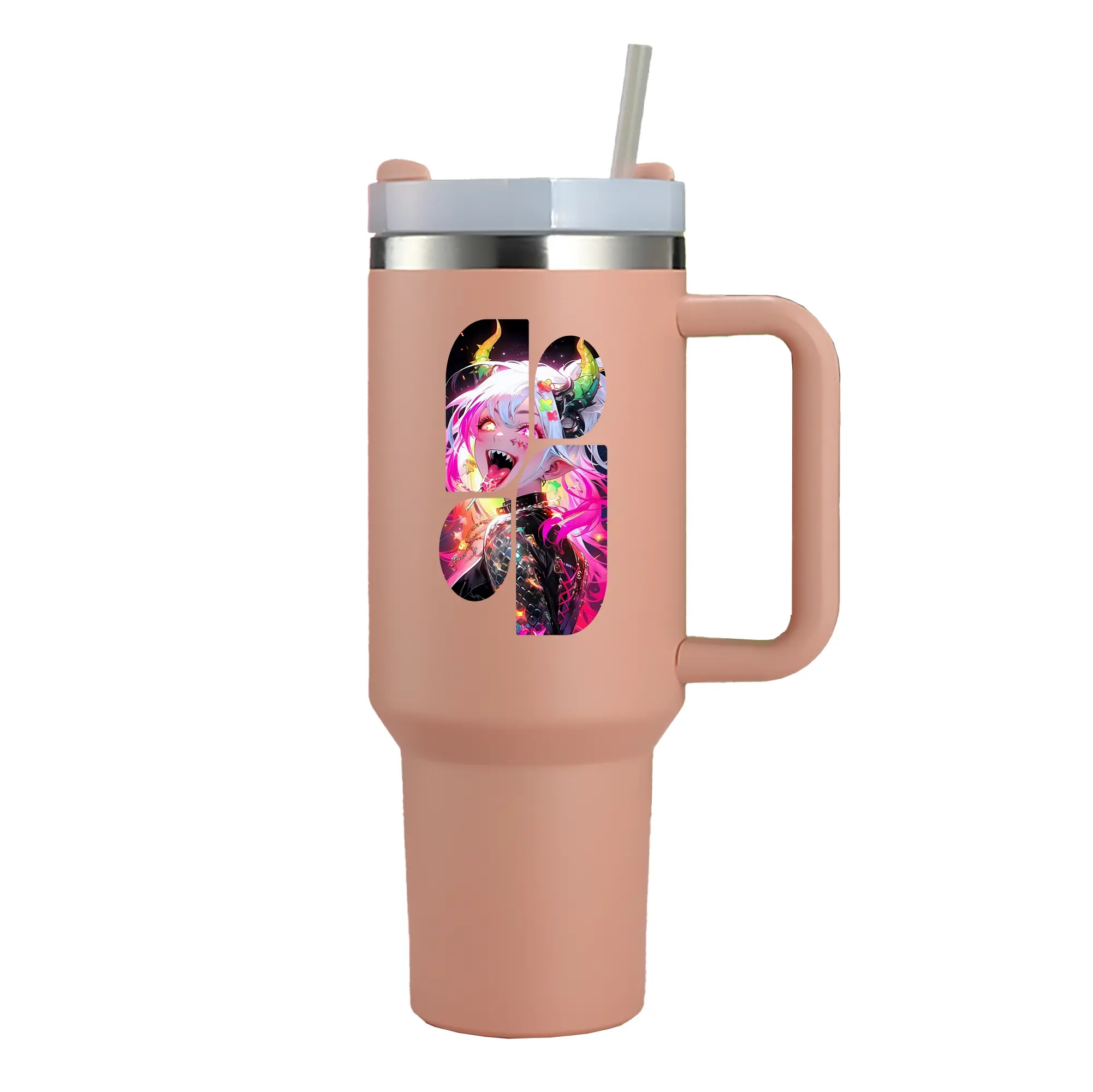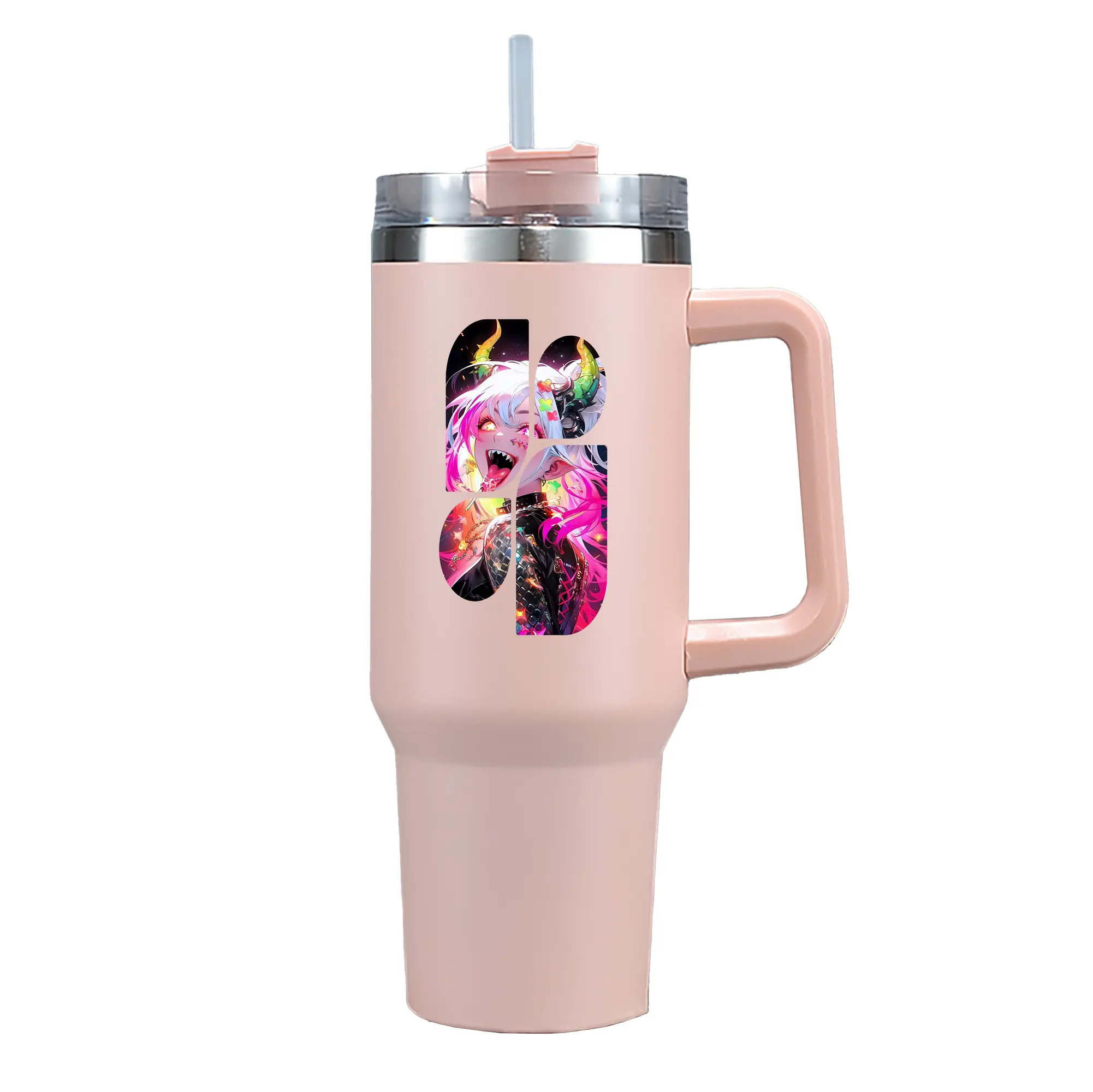 1200mL(40オンス)の大容量ハンドル付きカータンブラー。キラキラと輝くクリスタルステッカーデザインが、毎日の使用に華やかさをプラスします。食品グレード304ステンレスの内側と頑丈な201ステンレスの外側を採用し、耐久性・耐腐食性・安全性を兼ね備えています。