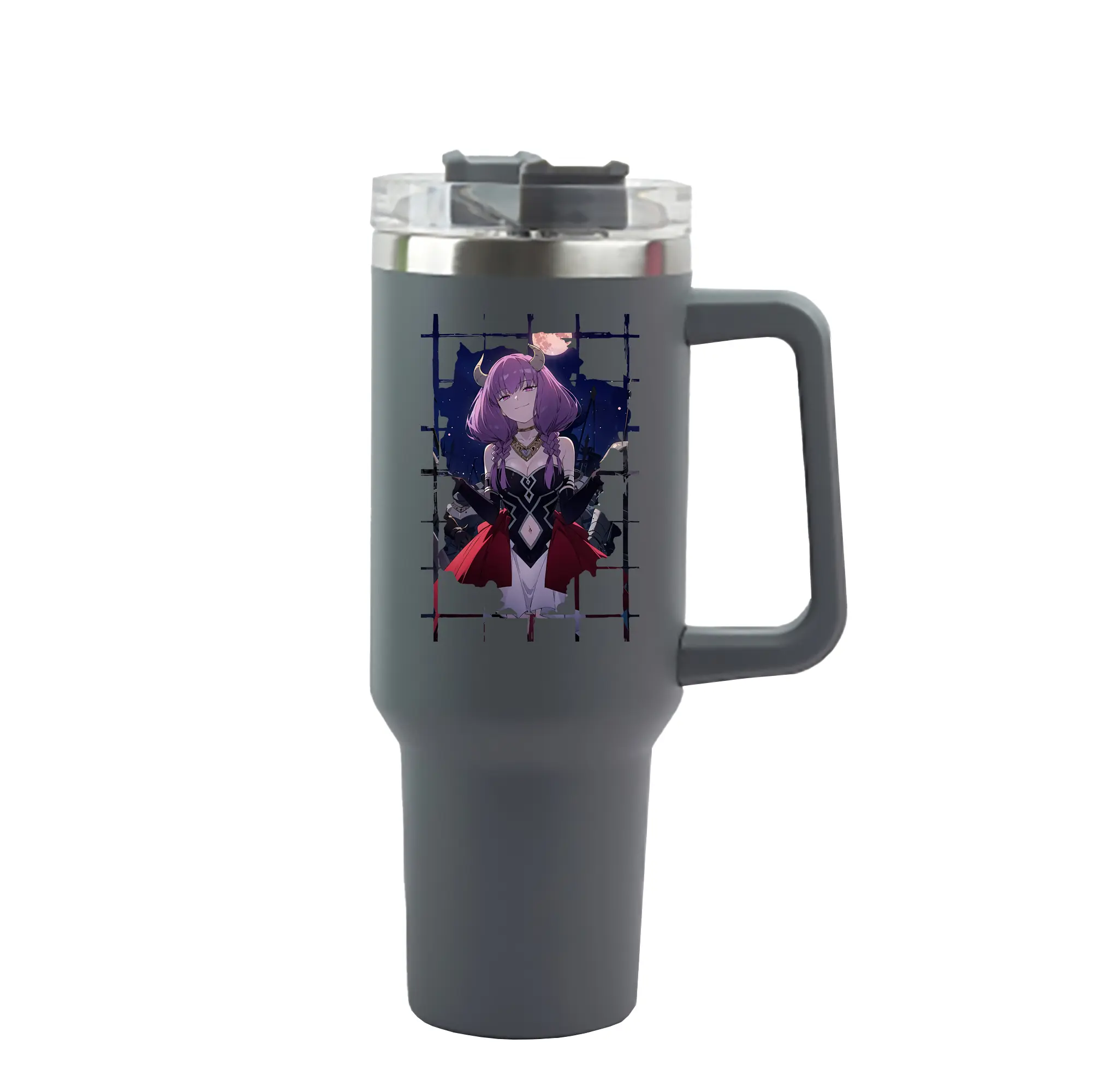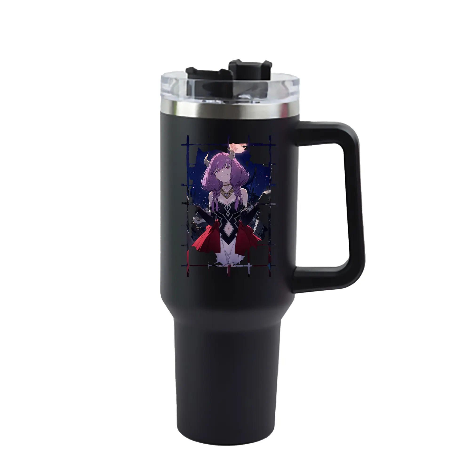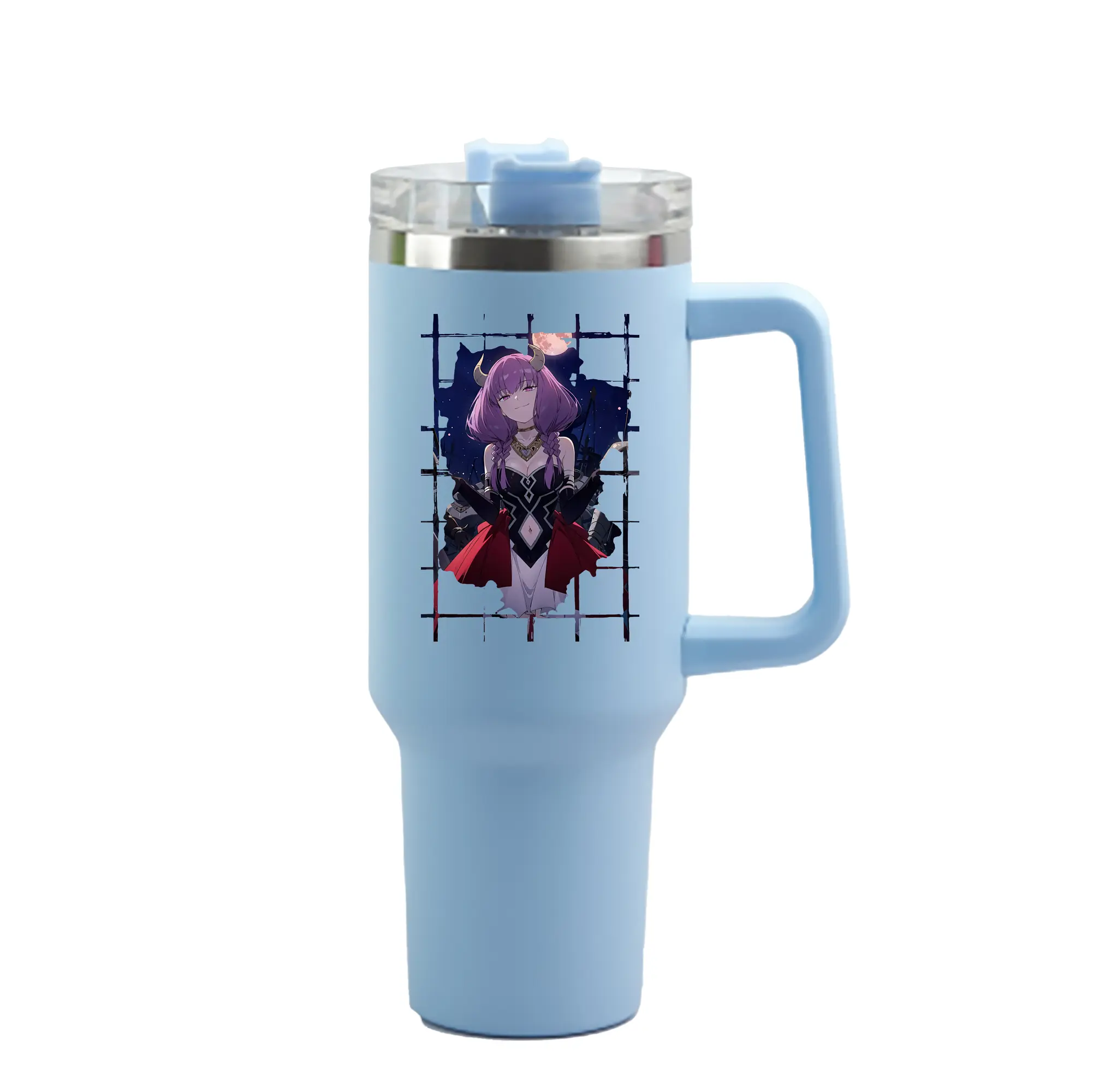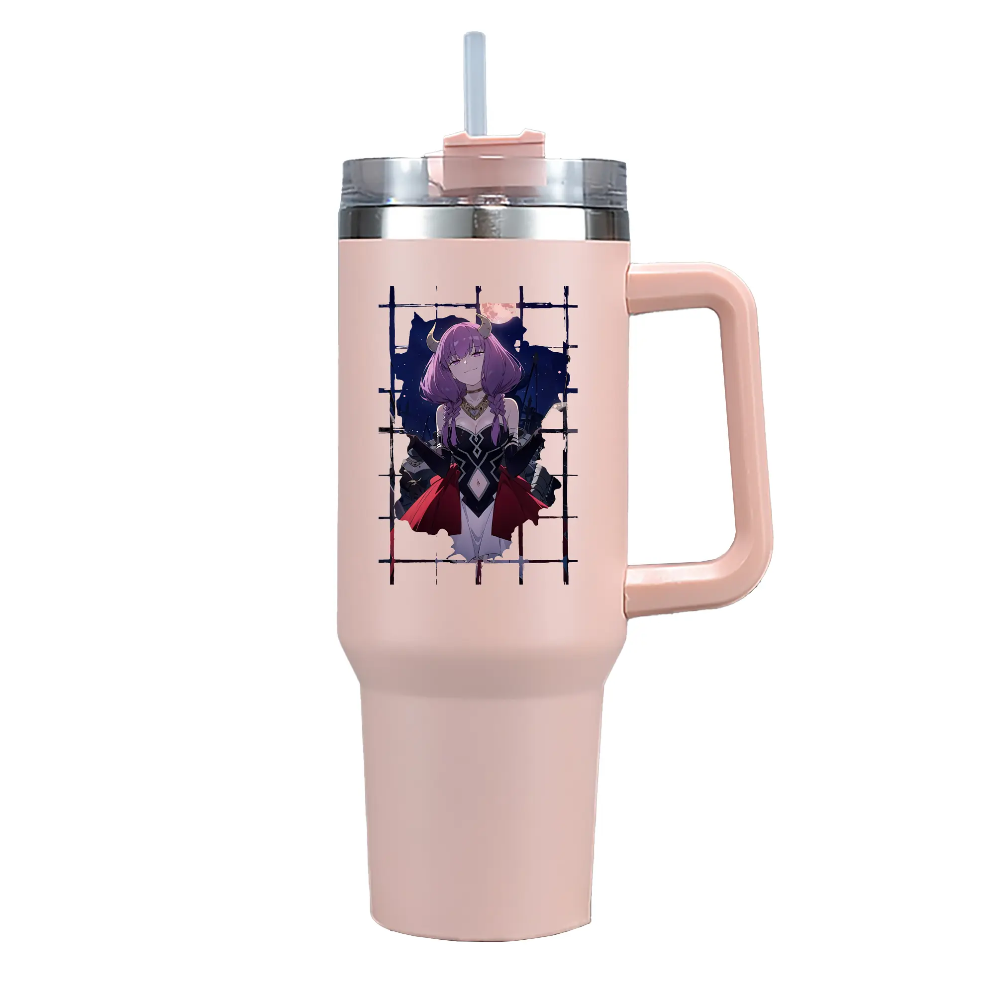 葬送のフリーレン(Frieren) グッズ,アウラ(Aura) - 1200mL 車用タンブラー ・ クリスタルステッカー ・ 304ステンレス 内側 ・ 201ステンレス 外側 ・ 保温 保冷 ・ ハンドル&ストロー付き ・ 通勤 ドライブ アウトドア用