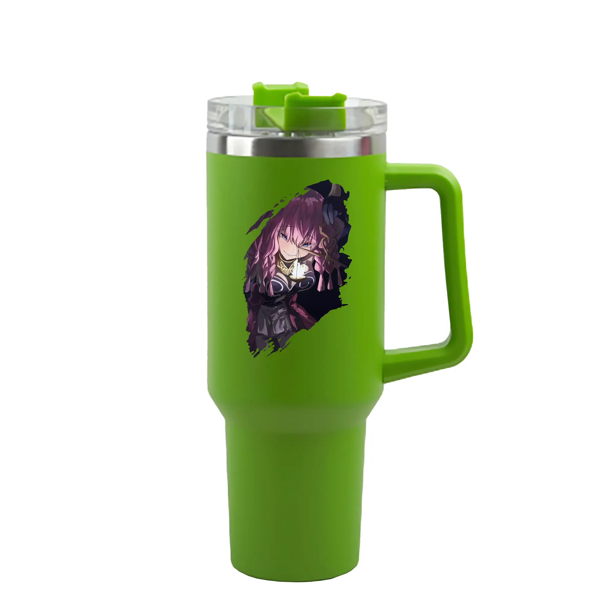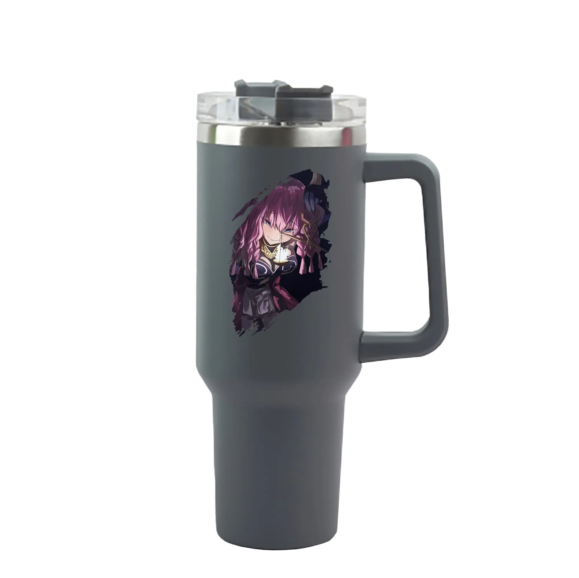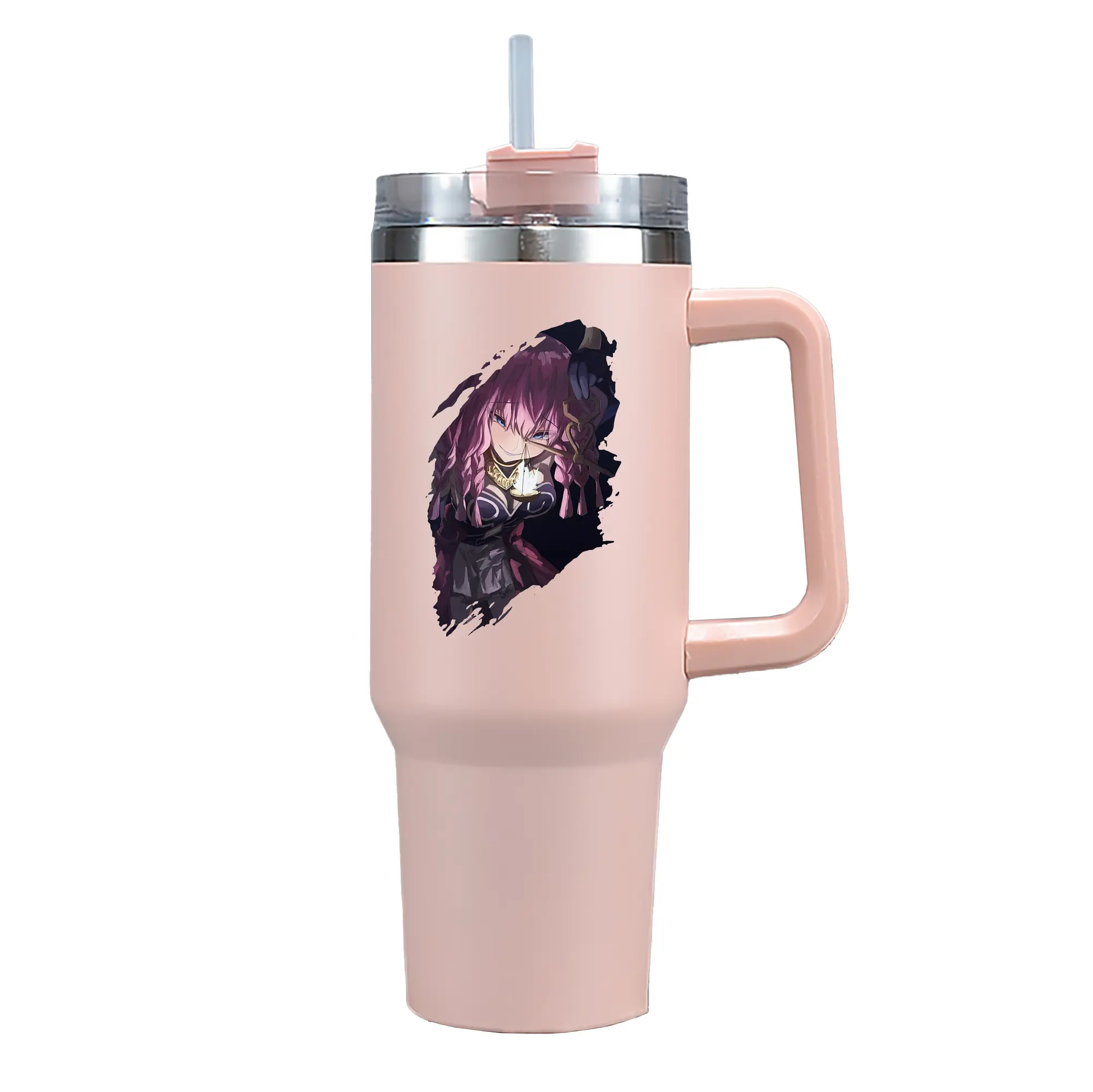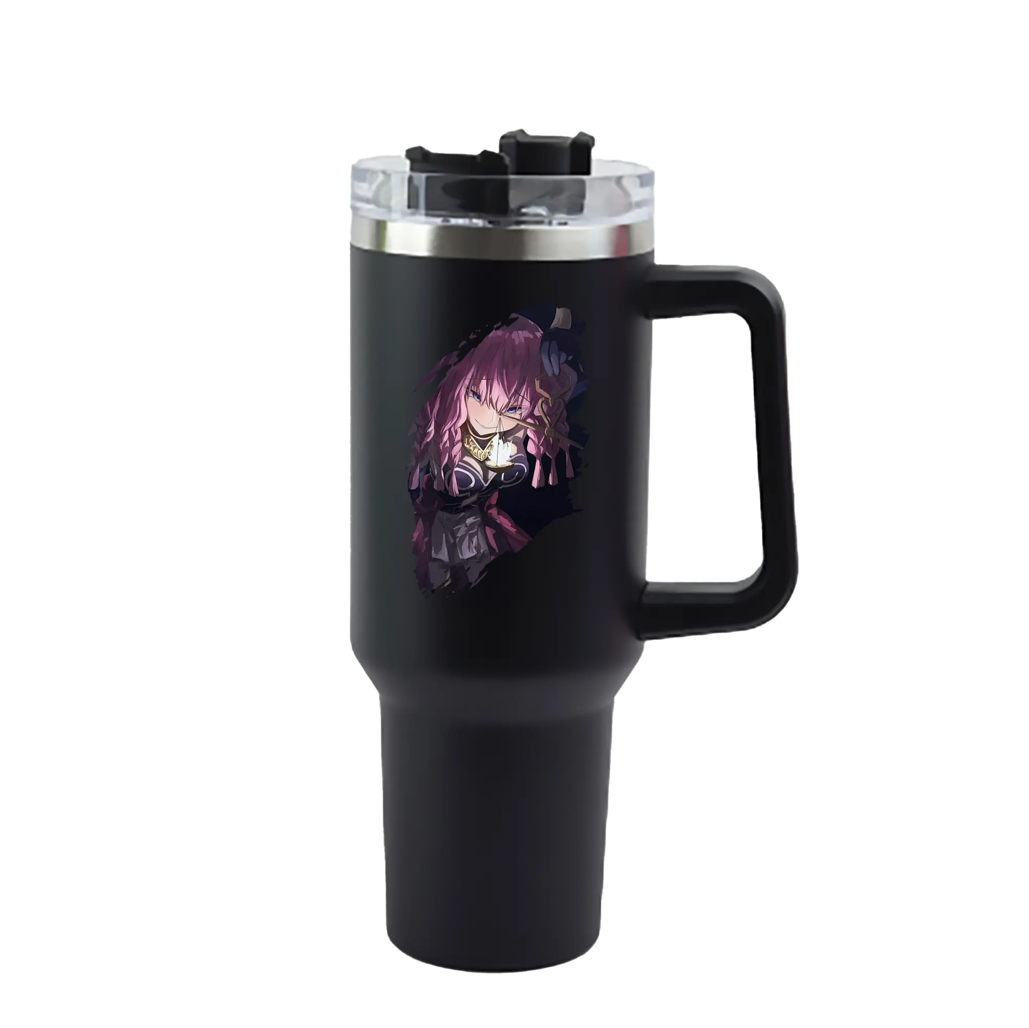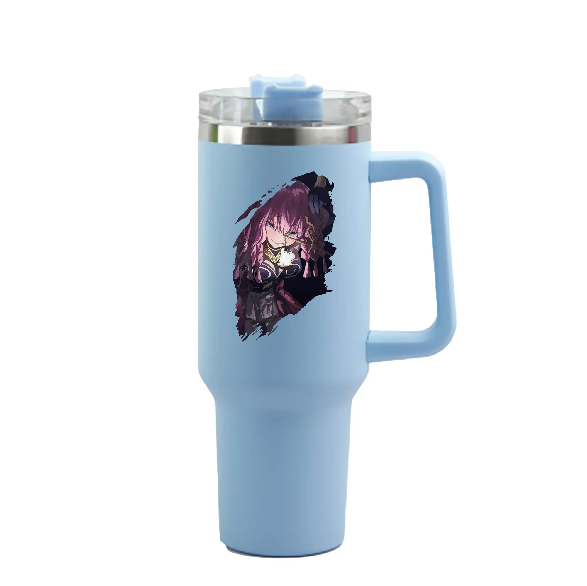 葬送のフリーレン(Frieren) グッズ,アウラ(Aura) - 1200mL 車用タンブラー ・ クリスタルステッカー ・ 304ステンレス 内側 ・ 201ステンレス 外側 ・ 保温 保冷 ・ ハンドル&ストロー付き ・ 通勤 ドライブ アウトドア用