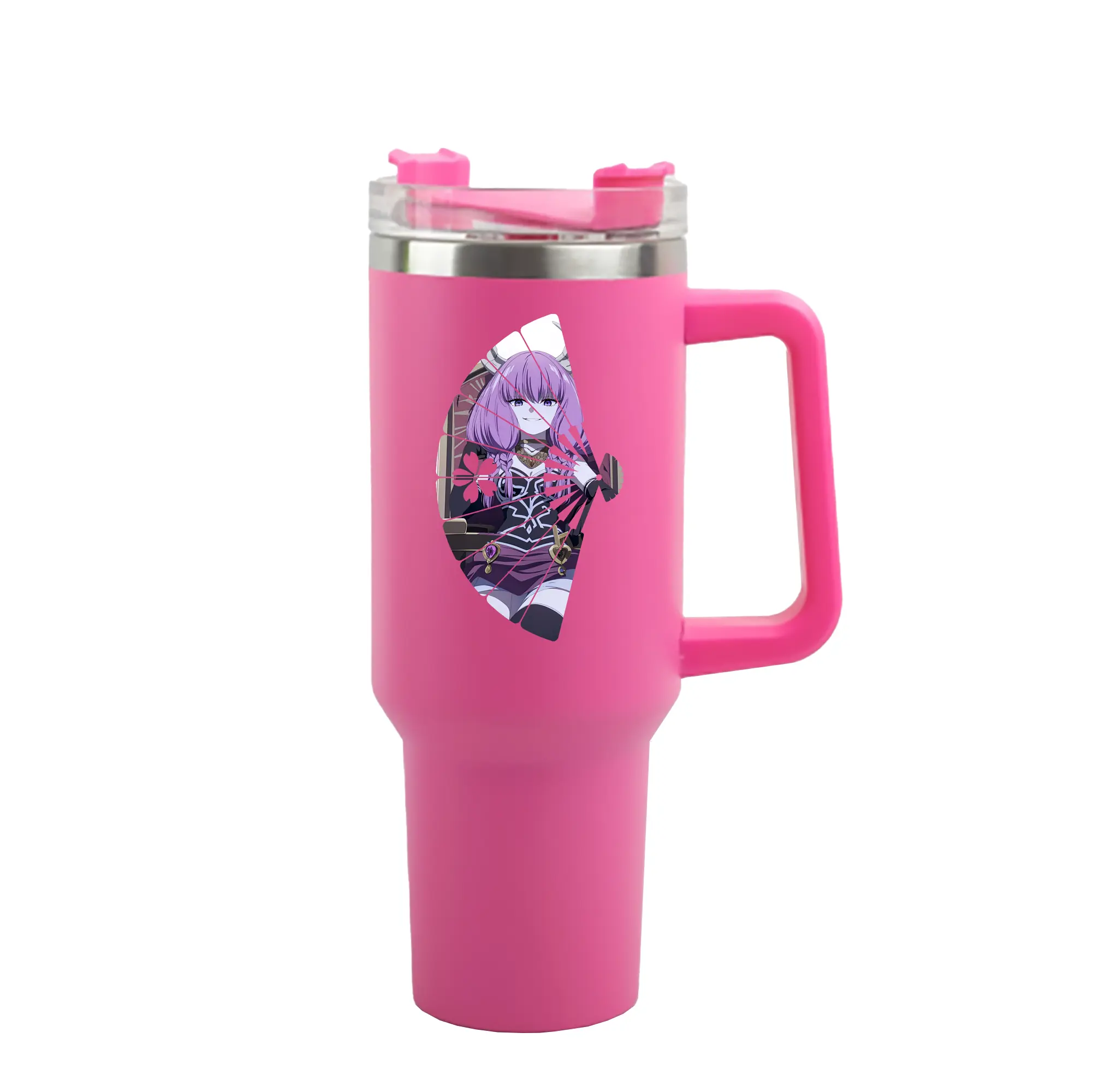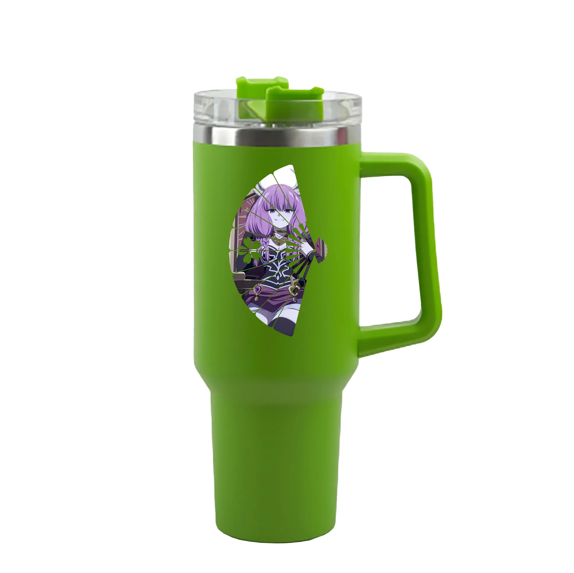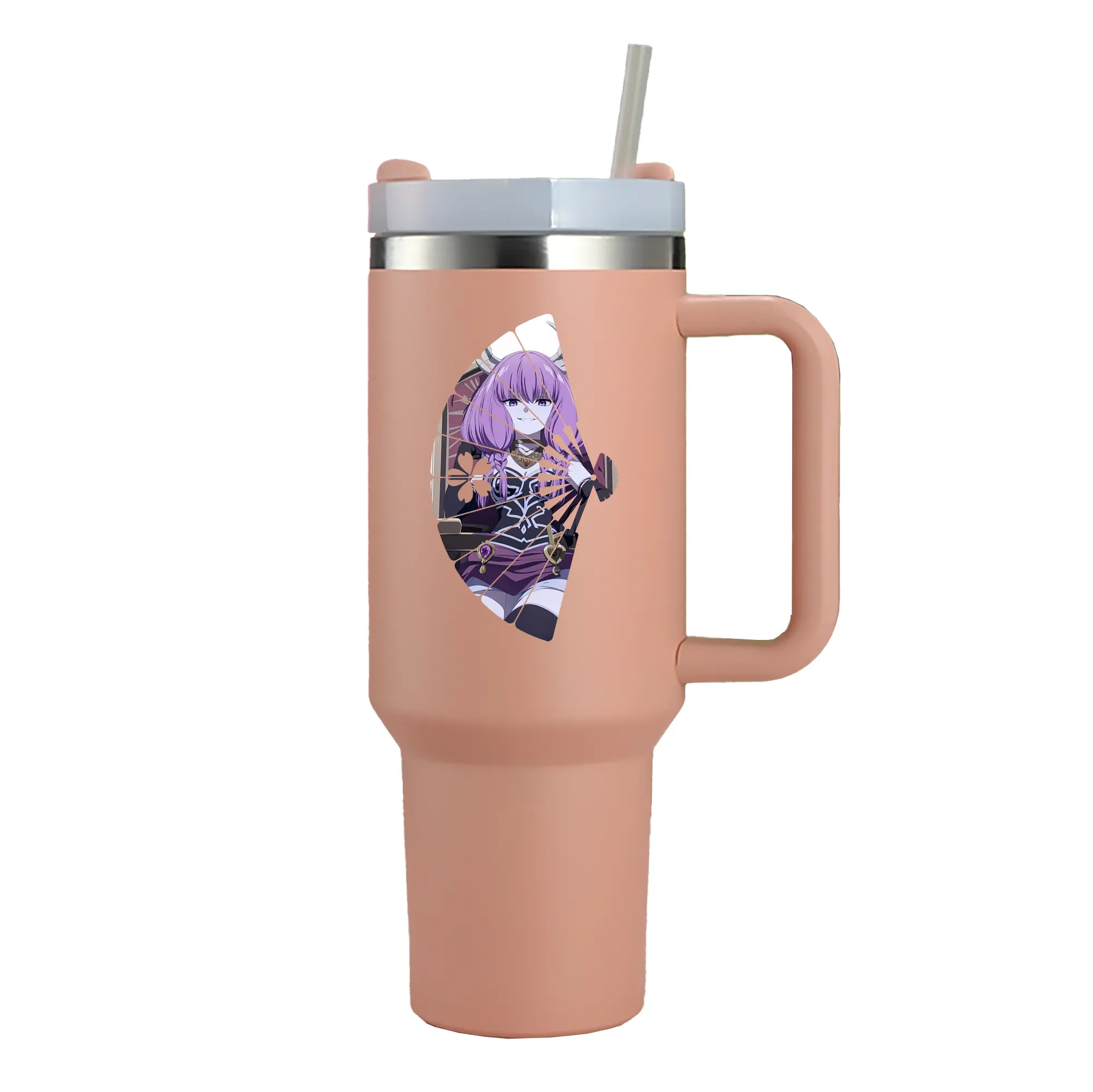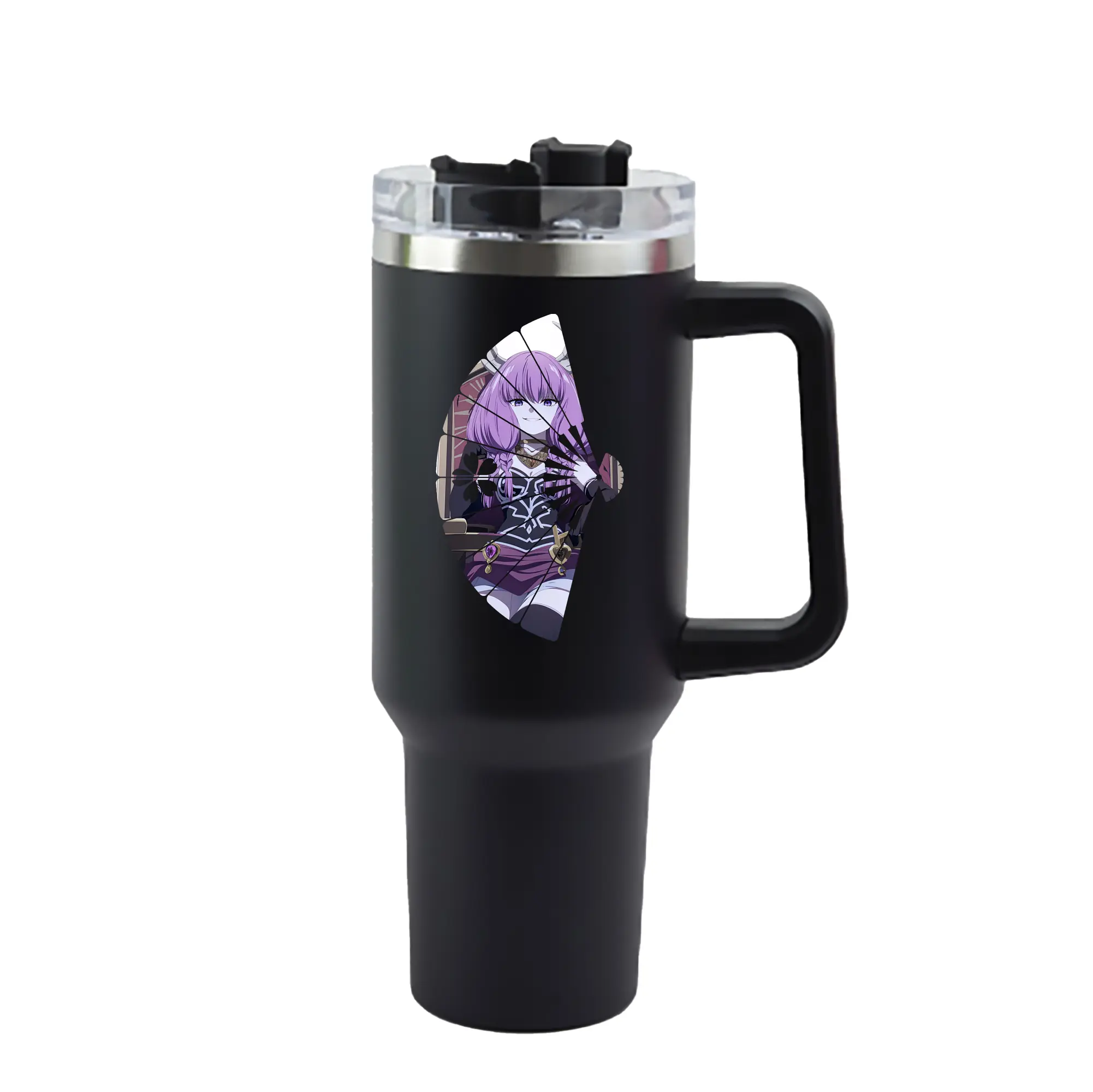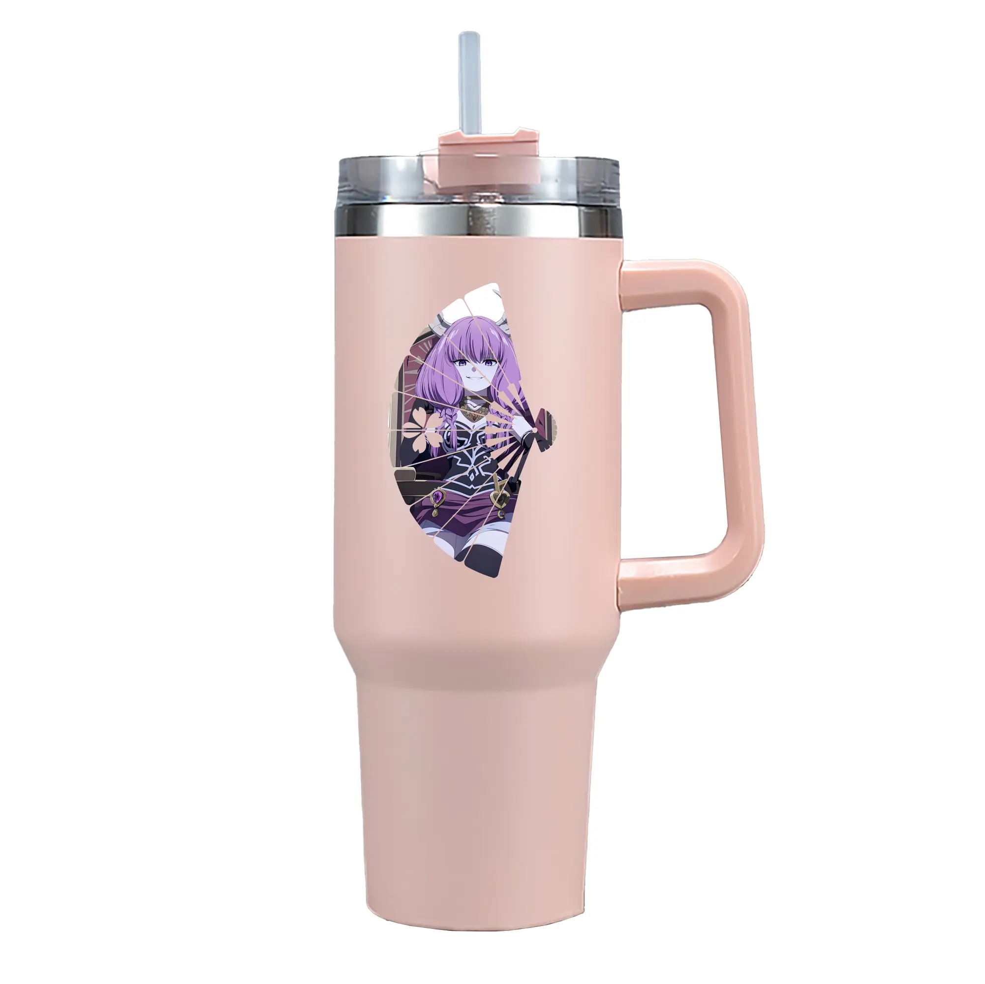 葬送のフリーレン(Frieren) グッズ,アウラ(Aura) - 1200mL 車用タンブラー ・ クリスタルステッカー ・ 304ステンレス 内側 ・ 201ステンレス 外側 ・ 保温 保冷 ・ ハンドル&ストロー付き ・ 通勤 ドライブ アウトドア用
