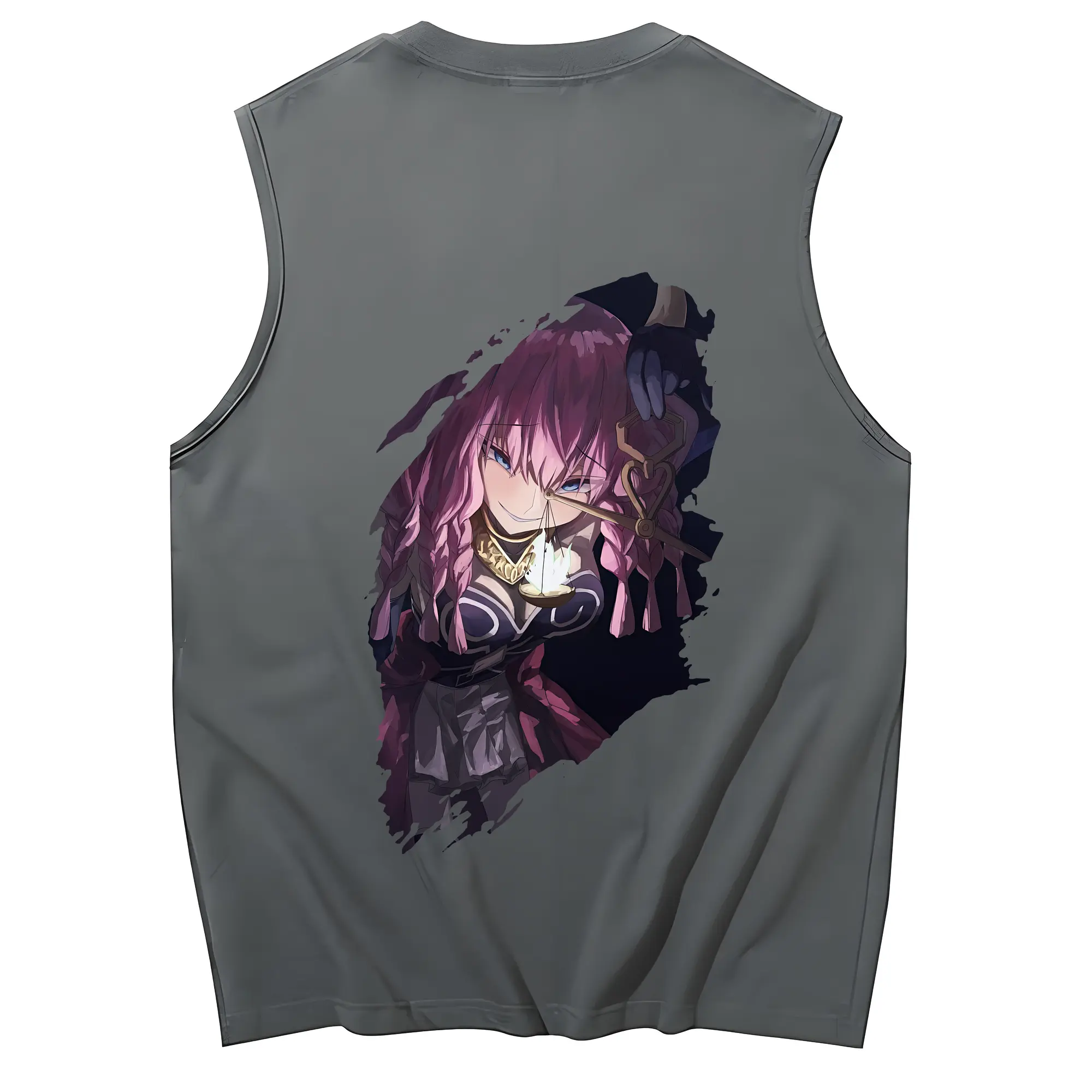 葬送のフリーレン(Frieren) グッズ,アウラ(Aura) - コットン100% タンクトップ ・ 背面プリント ・ タイトシルエット ・ 快適 通気性 ・ スポーツ カジュアル 散歩用