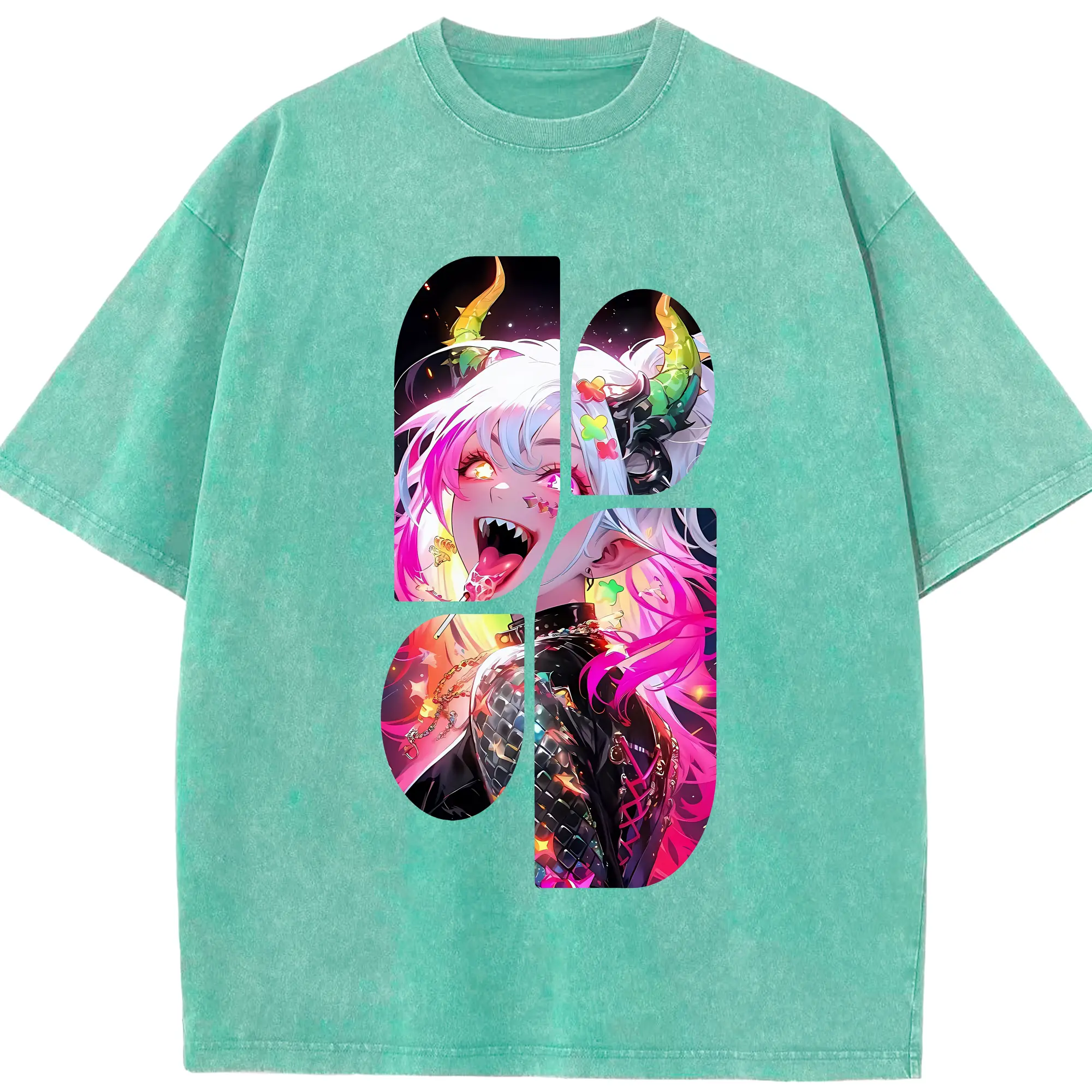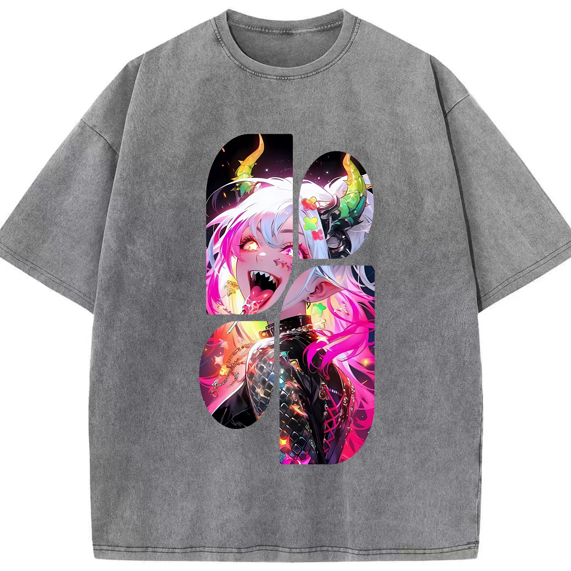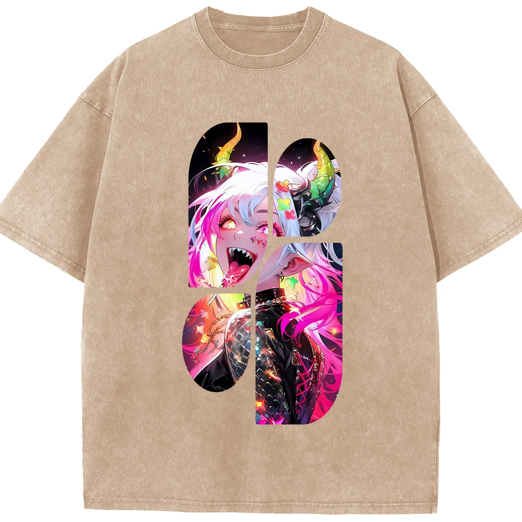鳴潮 グッズ ザンニー - 綿100% ヴィンテージ風 半袖Tシャツ ・ フロントプリント ・ 柔らか肌触り ・ 通気性 快適 ・ スポーツ カジュアル 外出用