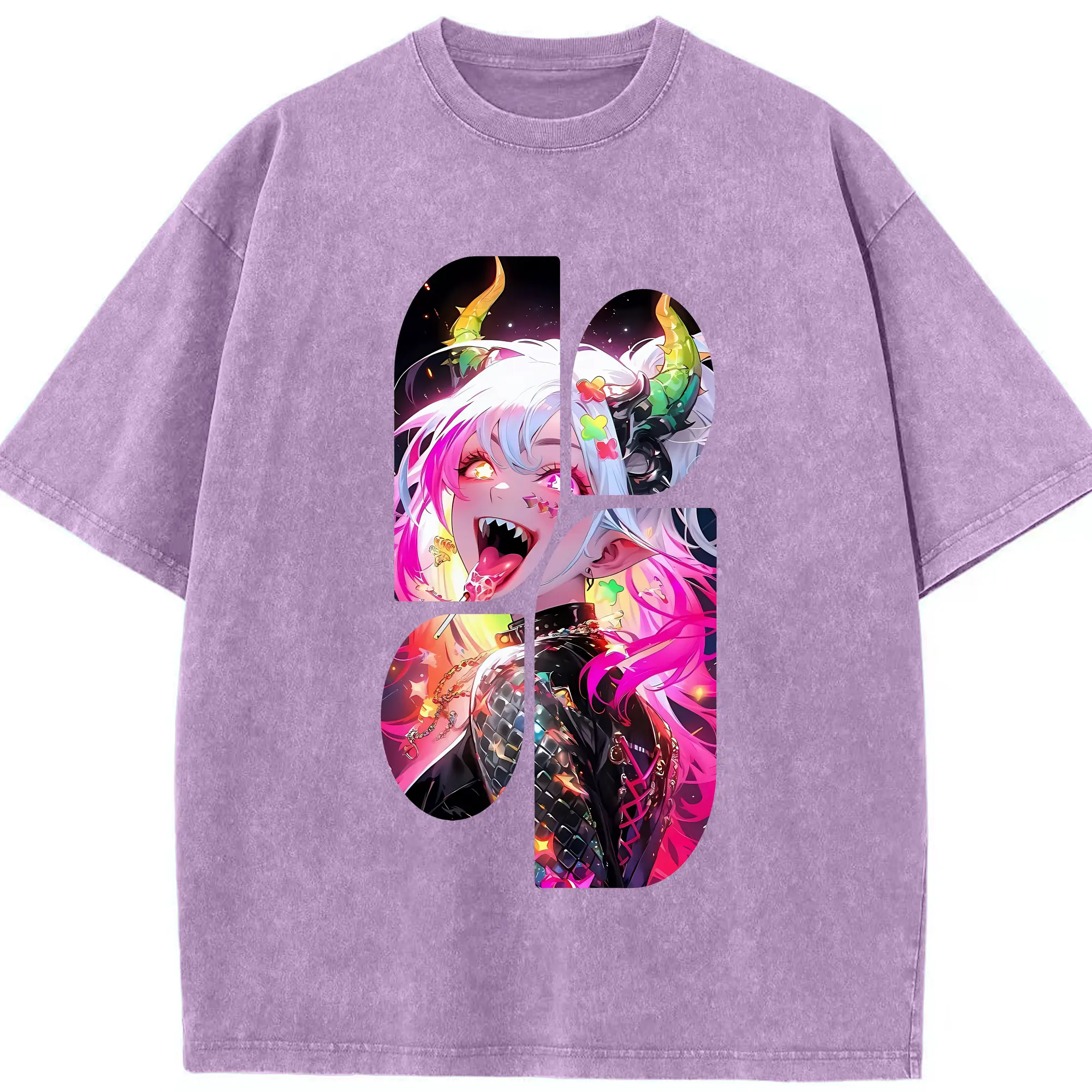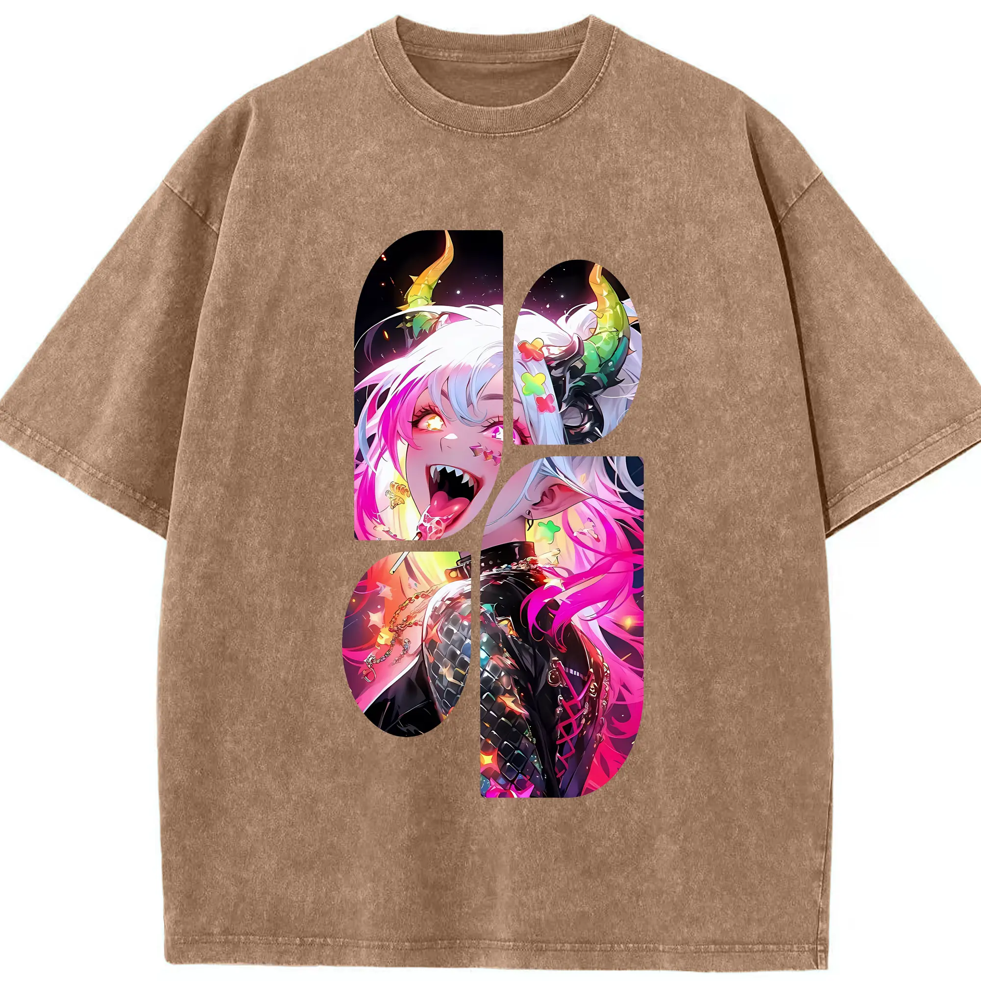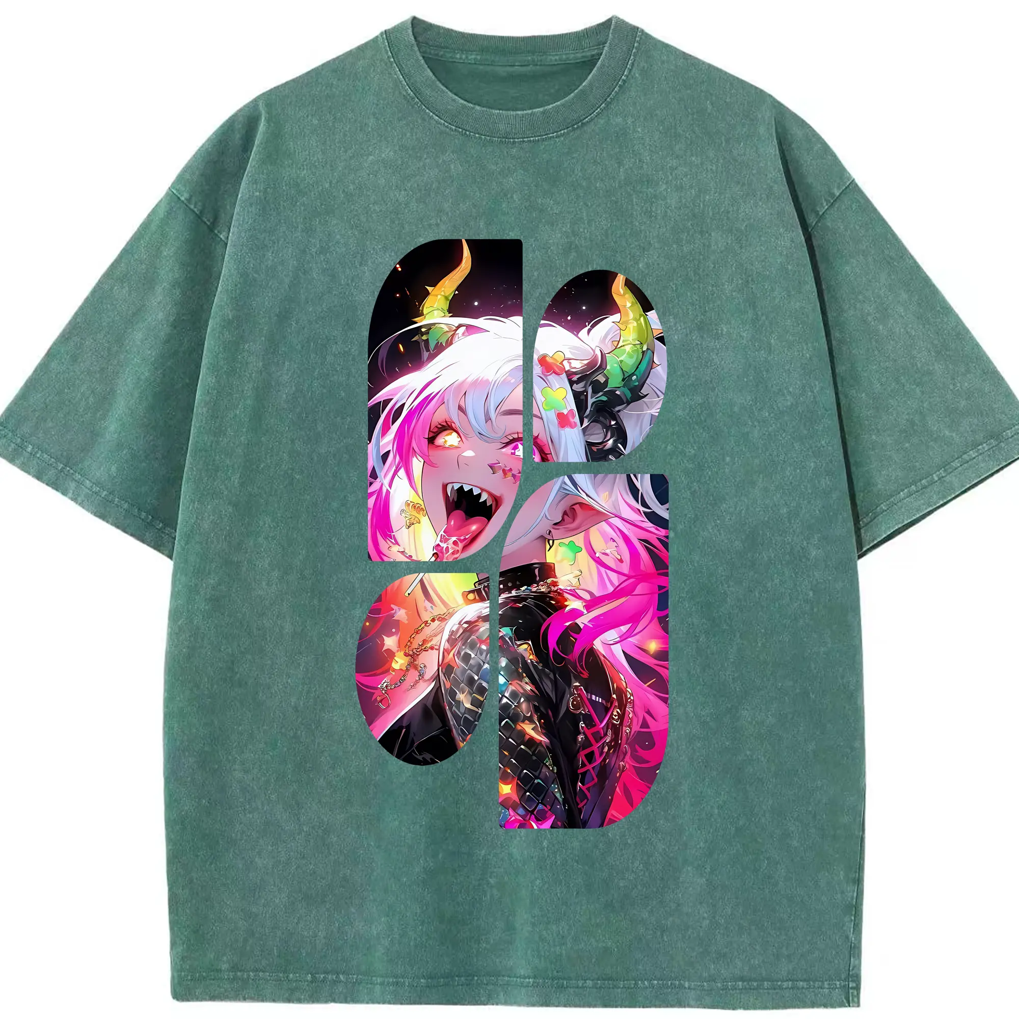 鳴潮 グッズ ザンニー - 綿100% ヴィンテージ風 半袖Tシャツ ・ フロントプリント ・ 柔らか肌触り ・ 通気性 快適 ・ スポーツ カジュアル 外出用