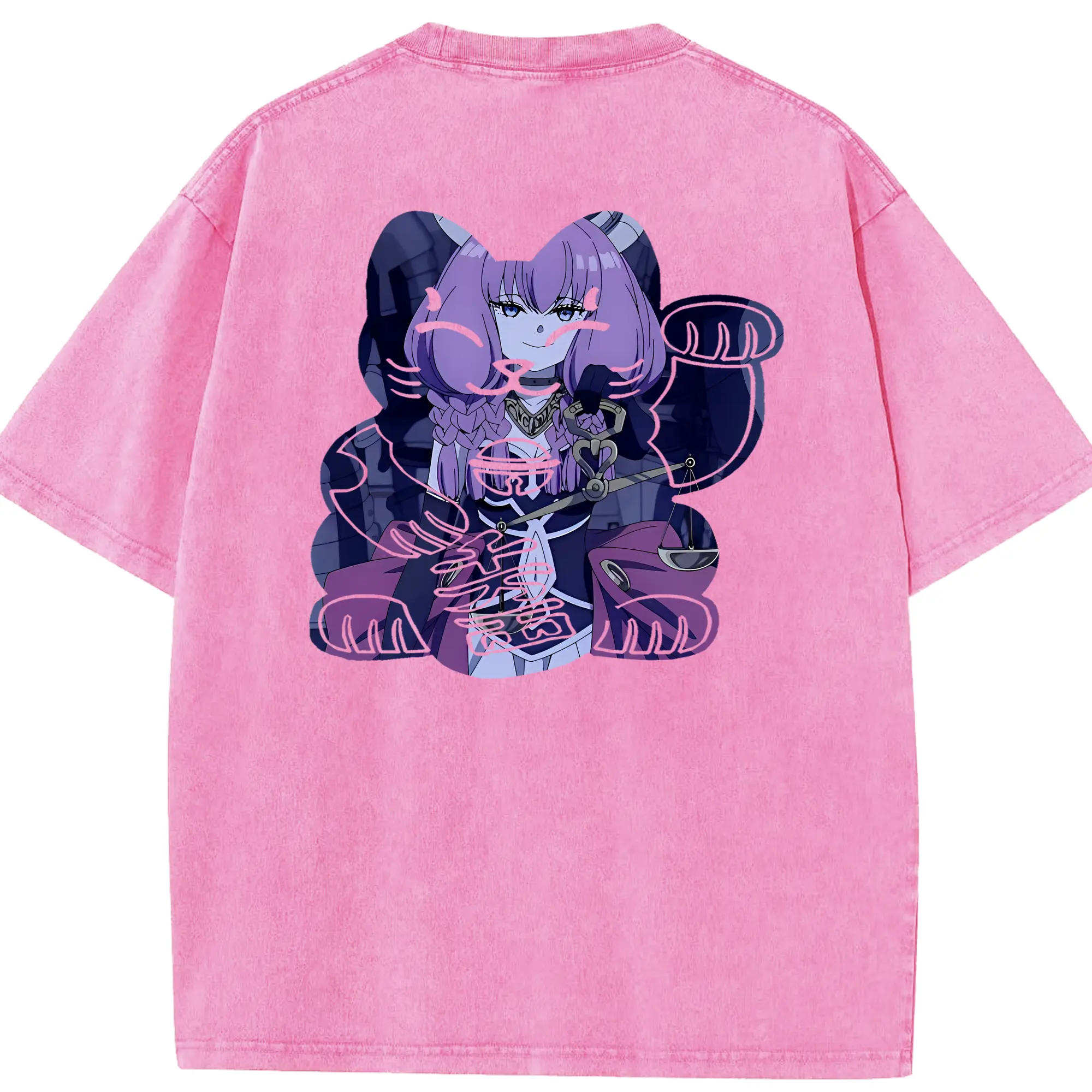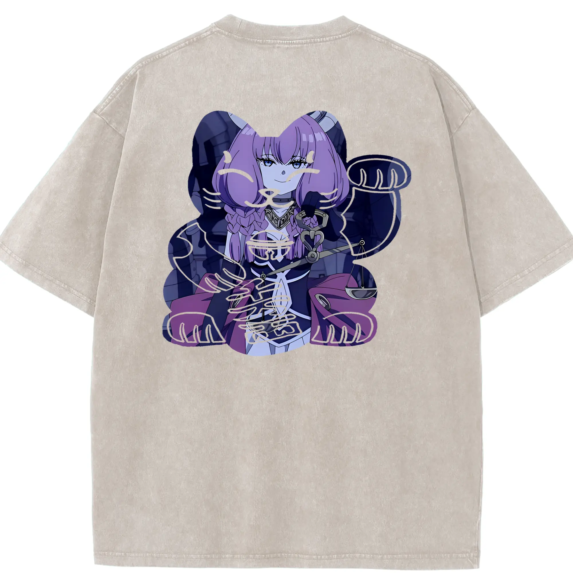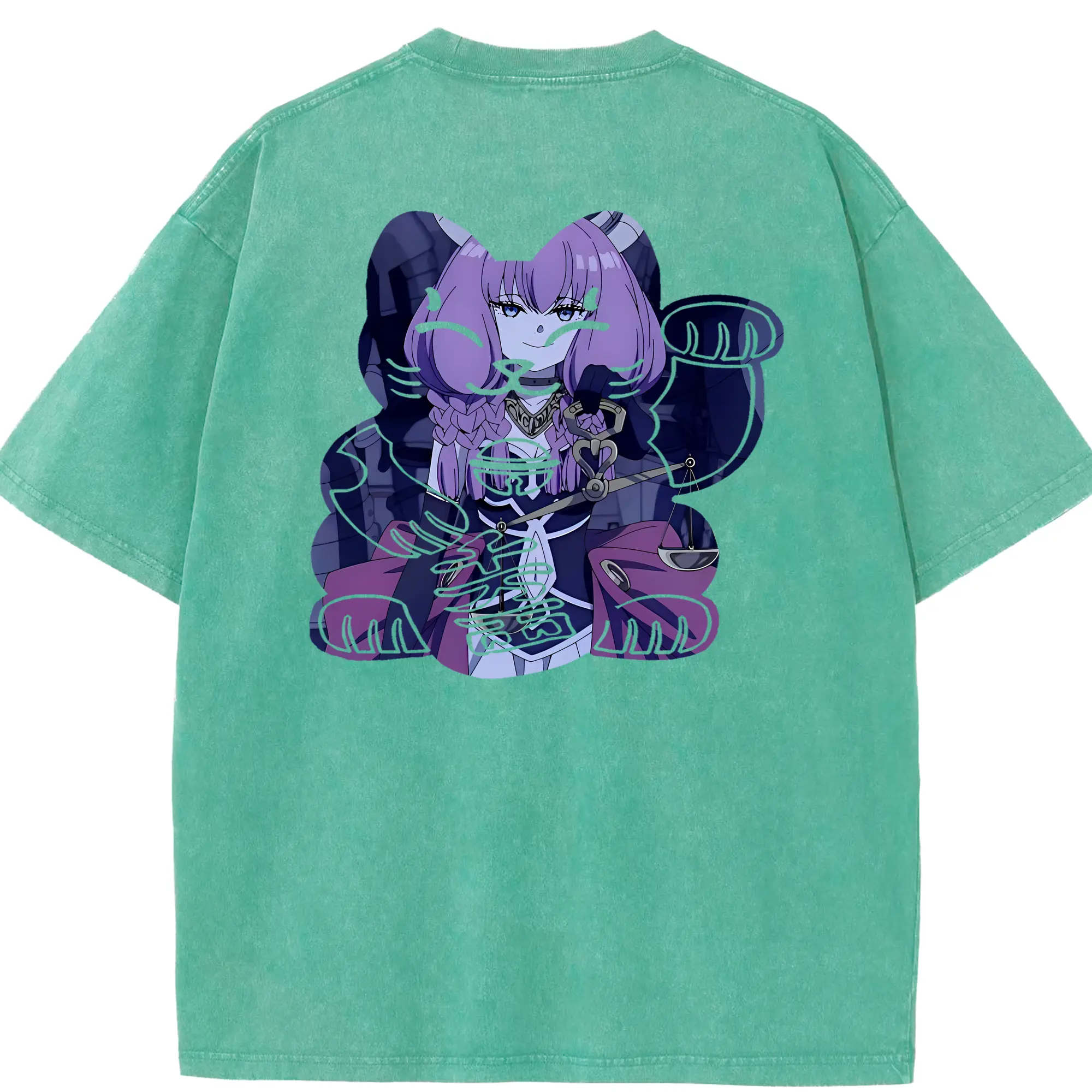 原 神 グッズ フリーナ - 綿100% ヴィンテージ風 半袖Tシャツ ・ 背面プリント ・ 柔らか肌触り ・ 通気性 快適 ・ スポーツ カジュアル 外出用