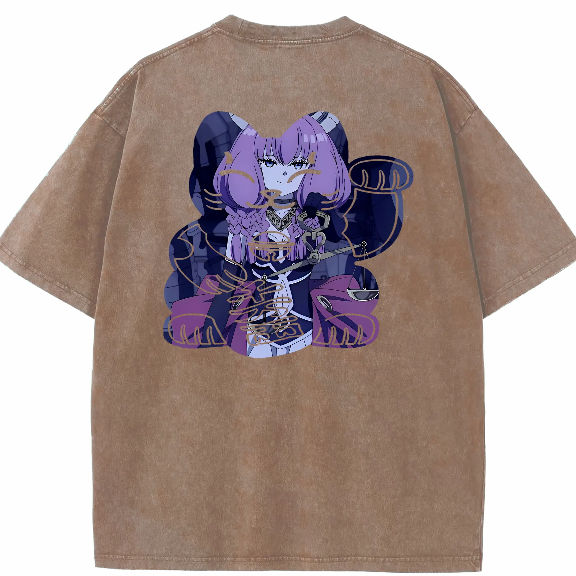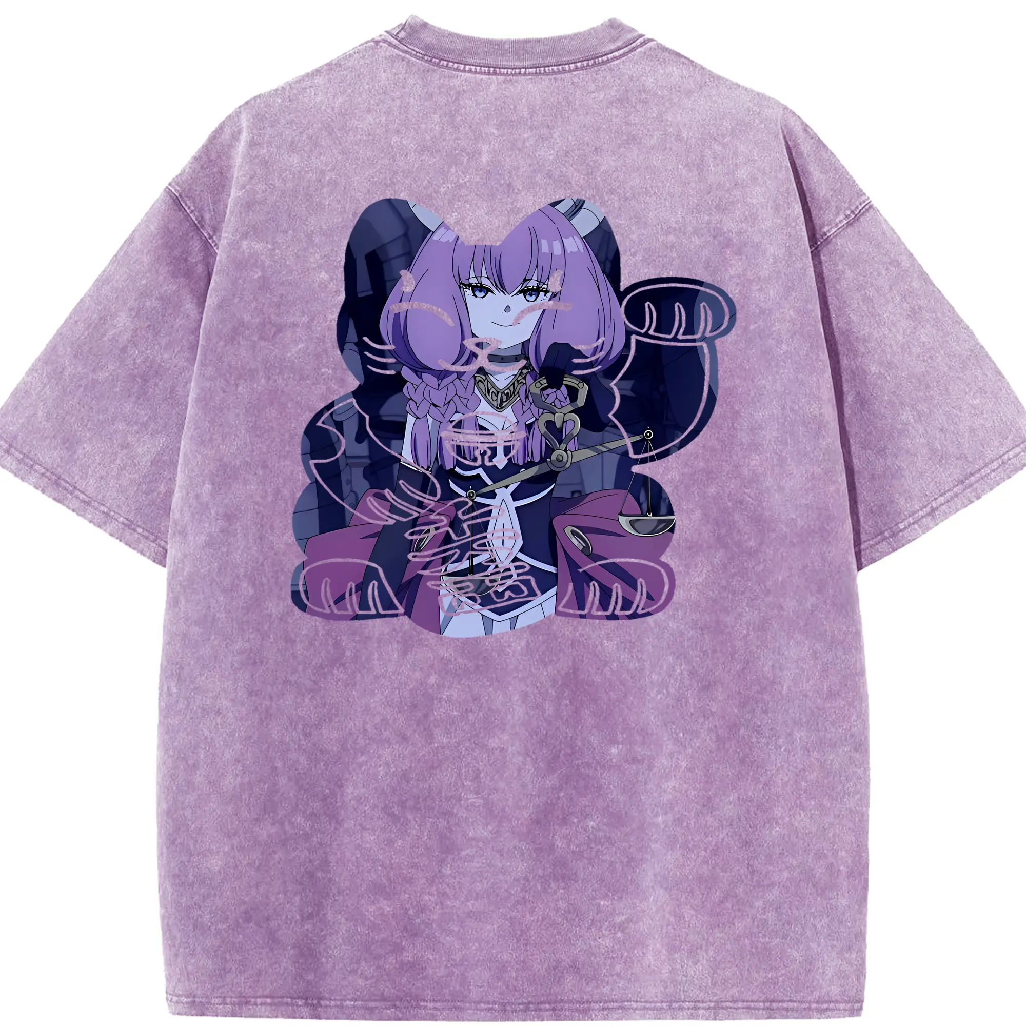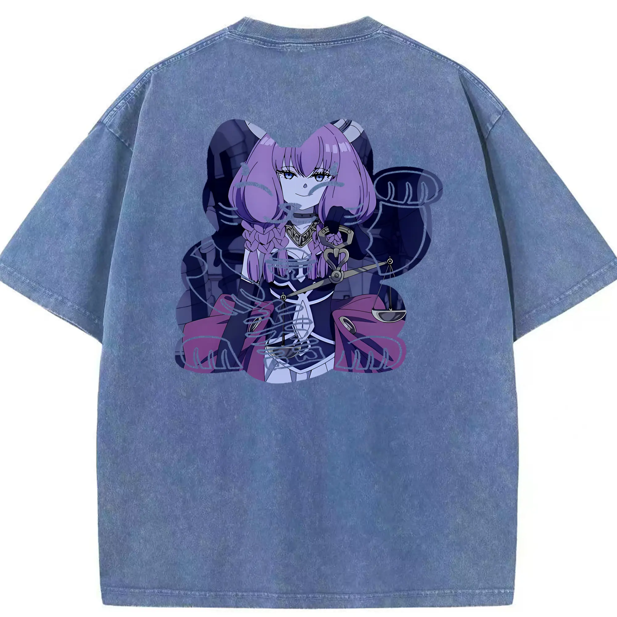 原 神 グッズ フリーナ - 綿100% ヴィンテージ風 半袖Tシャツ ・ 背面プリント ・ 柔らか肌触り ・ 通気性 快適 ・ スポーツ カジュアル 外出用