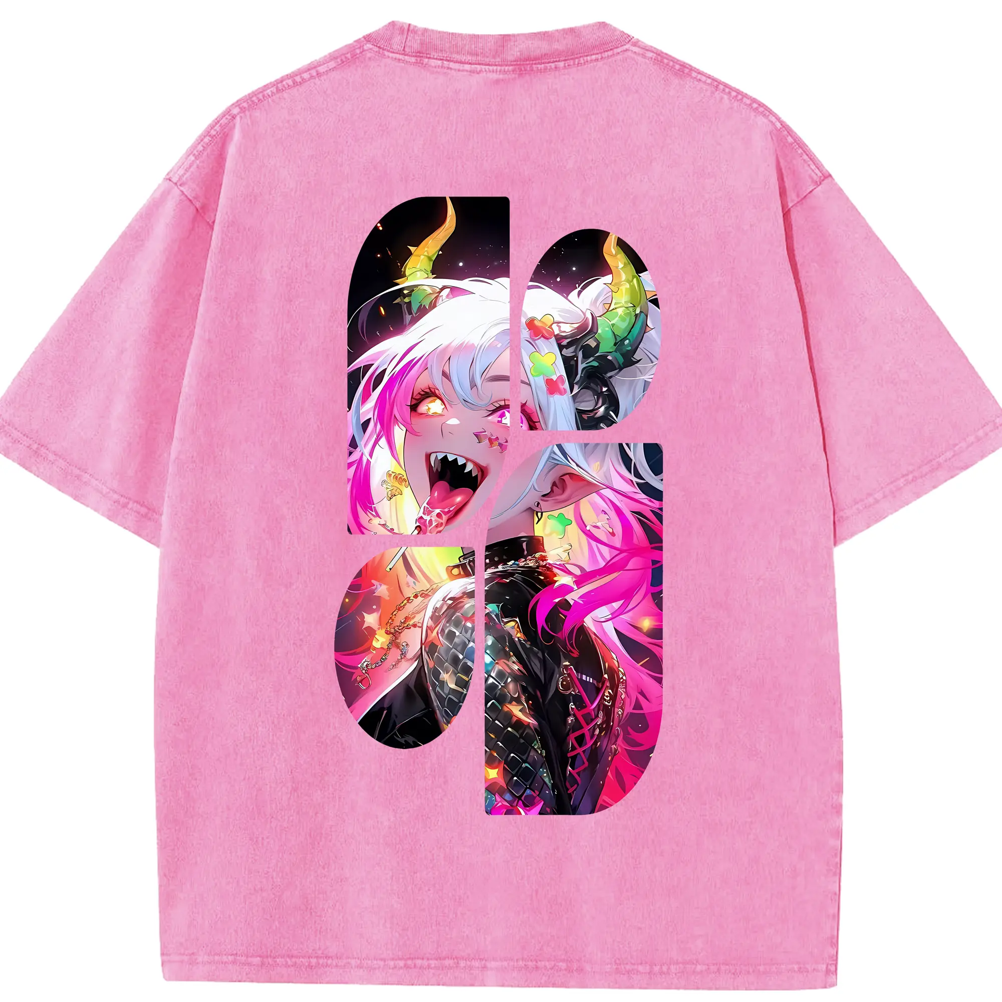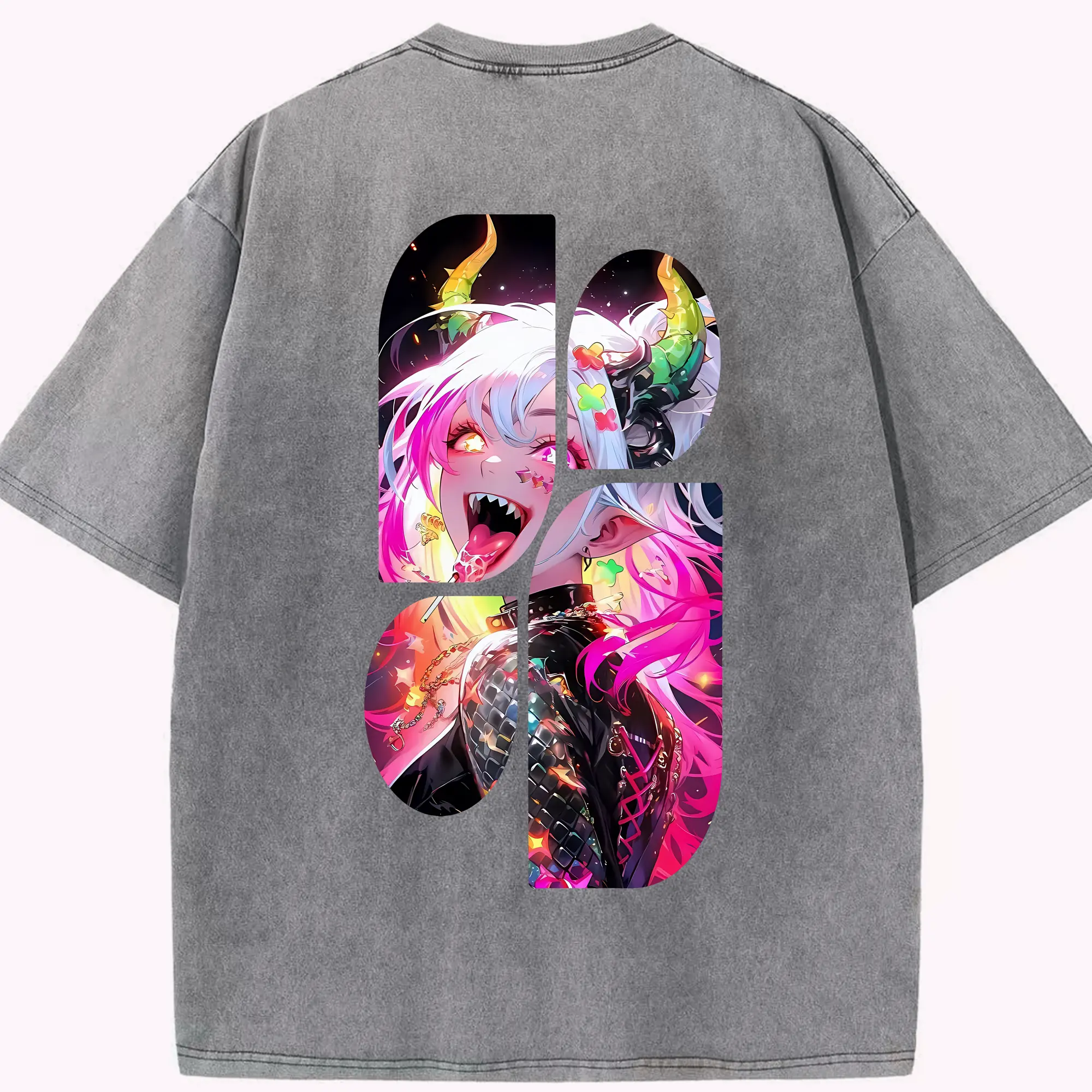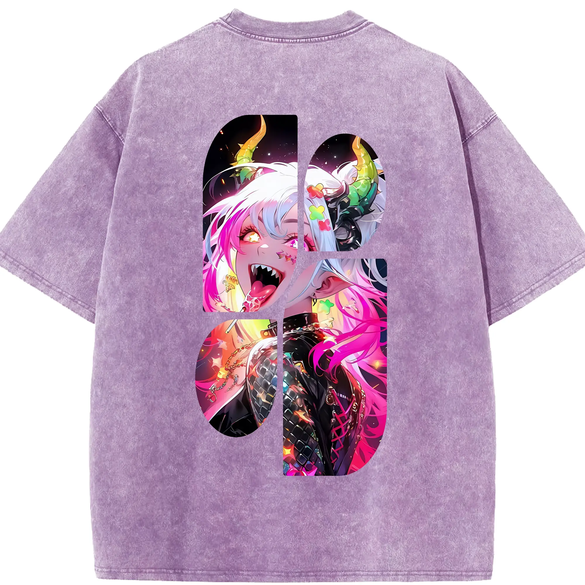 アイカツ グッズ 紫吹 蘭 - 綿100% ヴィンテージ風 半袖Tシャツ ・ 背面プリント ・ 柔らか肌触り ・ 通気性 快適 ・ スポーツ カジュアル 外出用