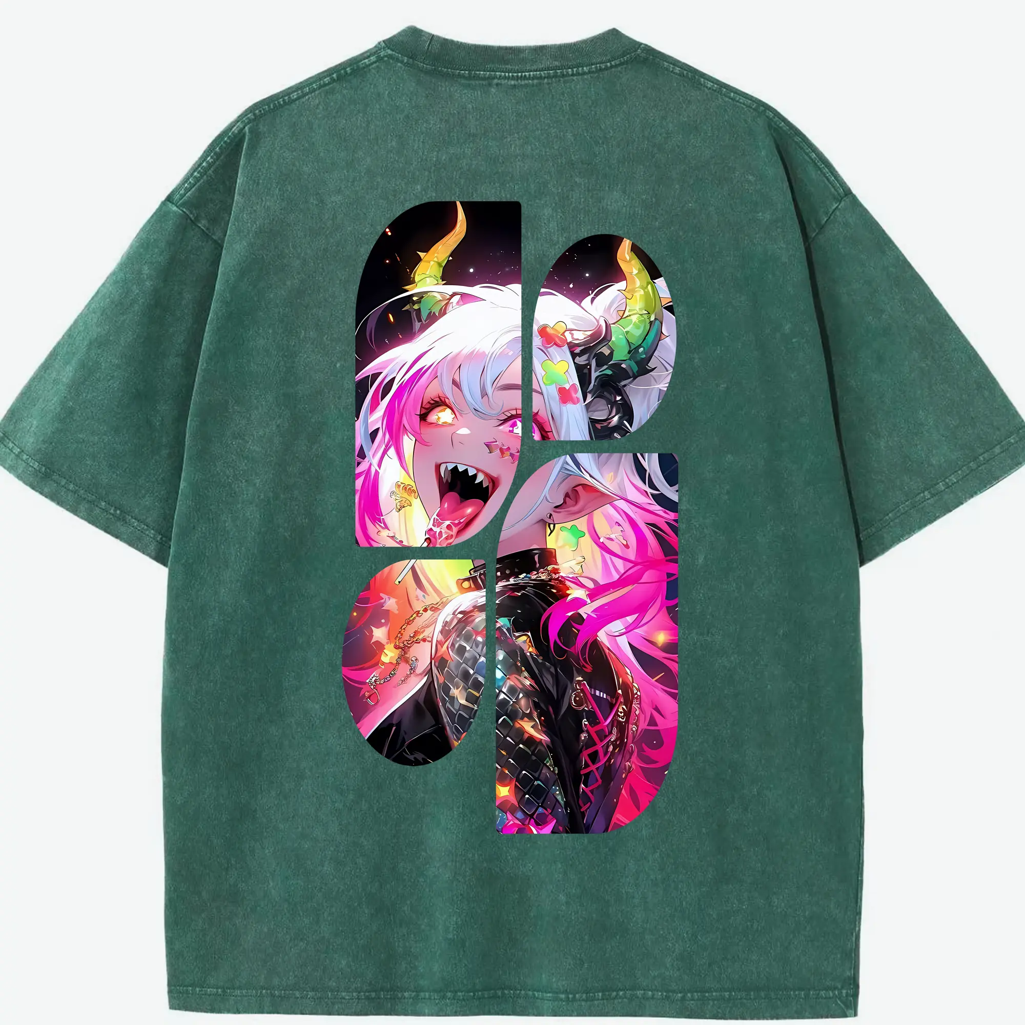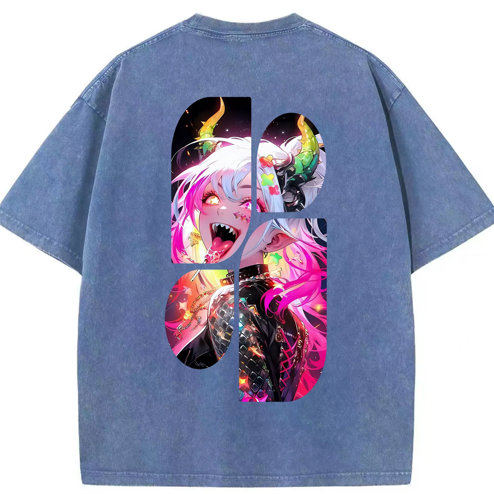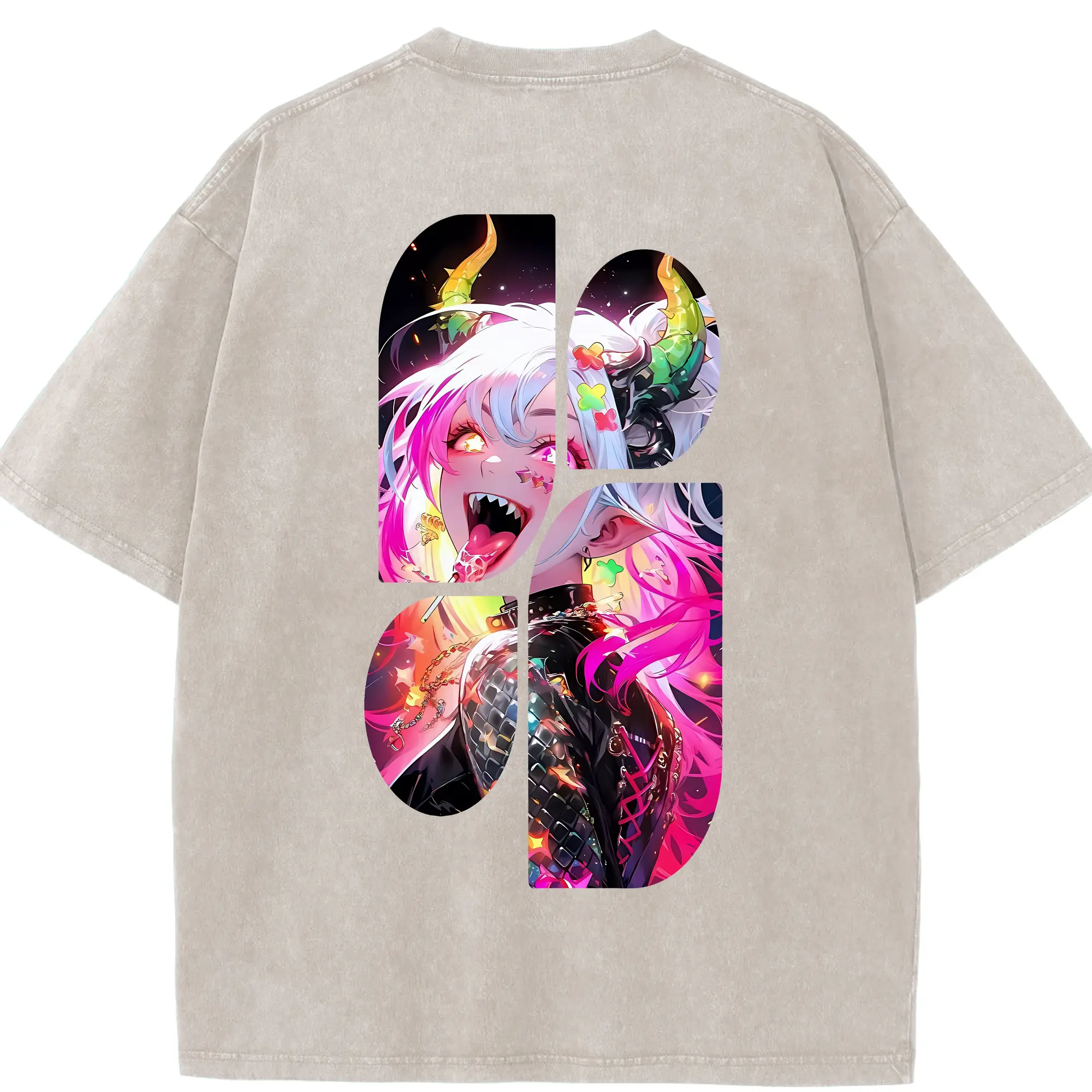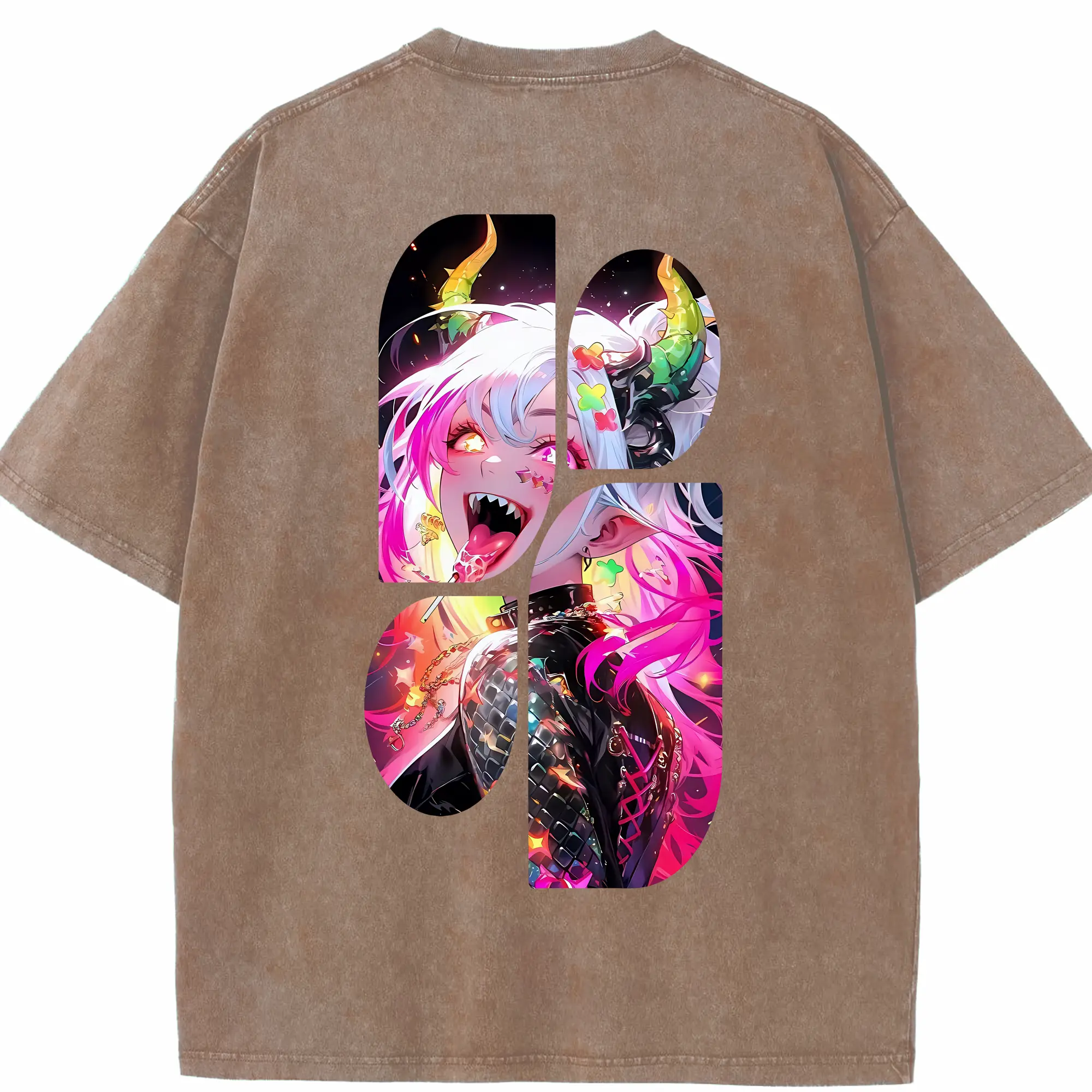 アイカツ グッズ 紫吹 蘭 - 綿100% ヴィンテージ風 半袖Tシャツ ・ 背面プリント ・ 柔らか肌触り ・ 通気性 快適 ・ スポーツ カジュアル 外出用
