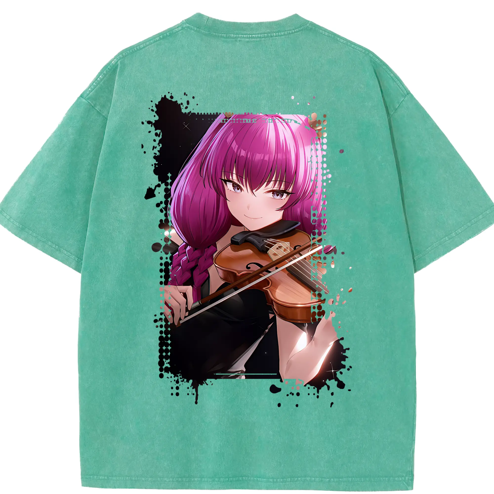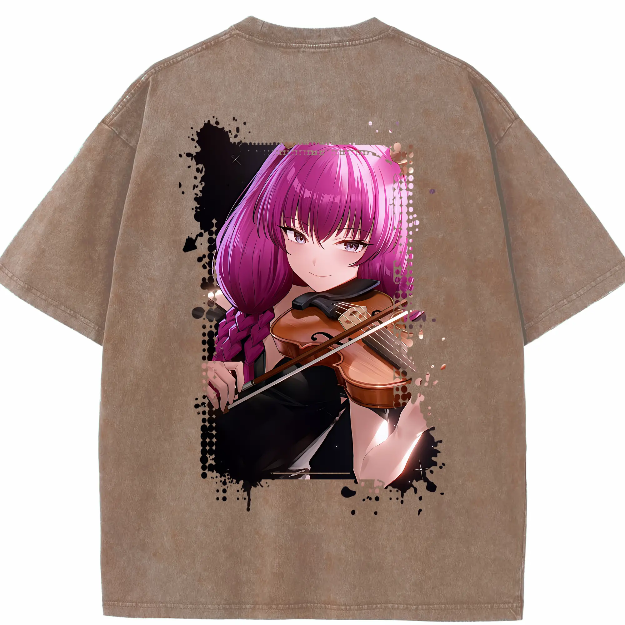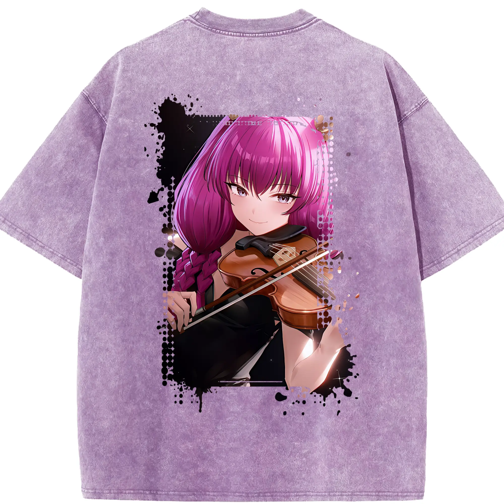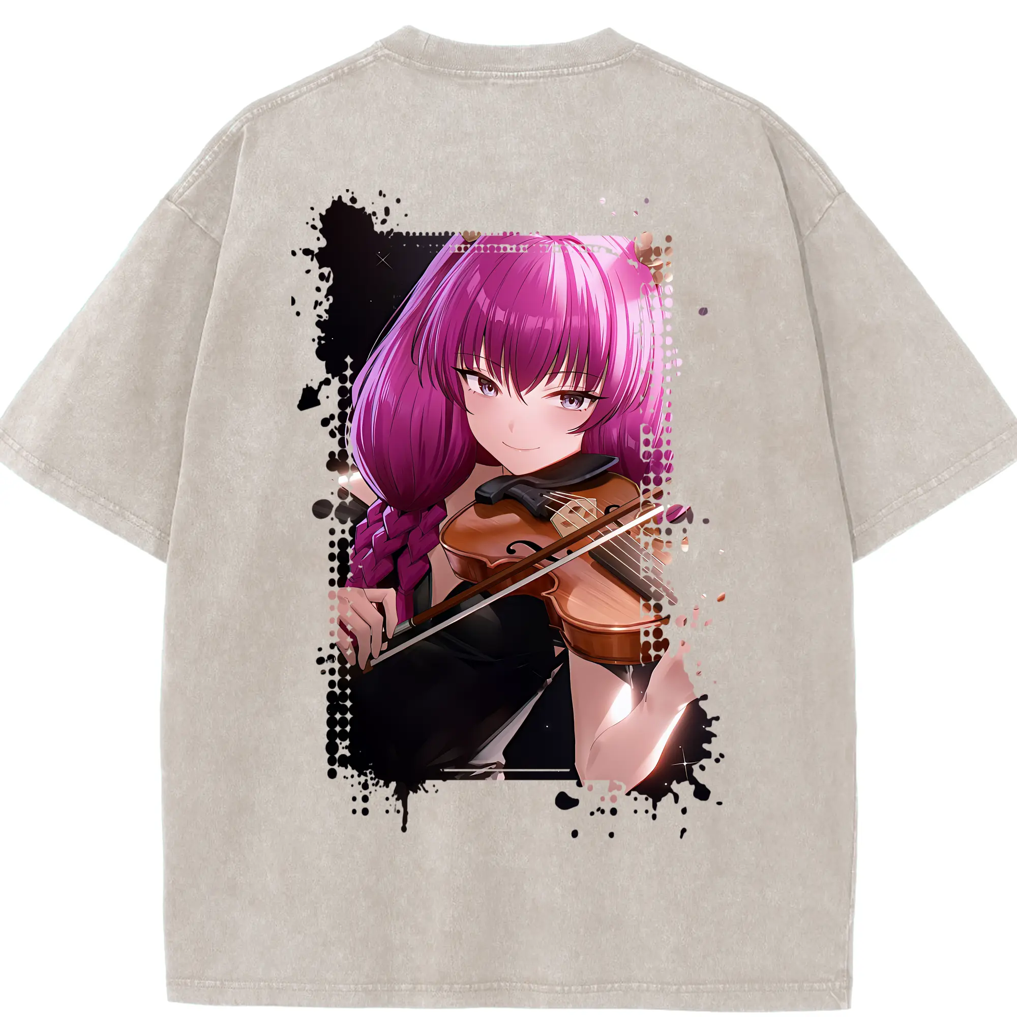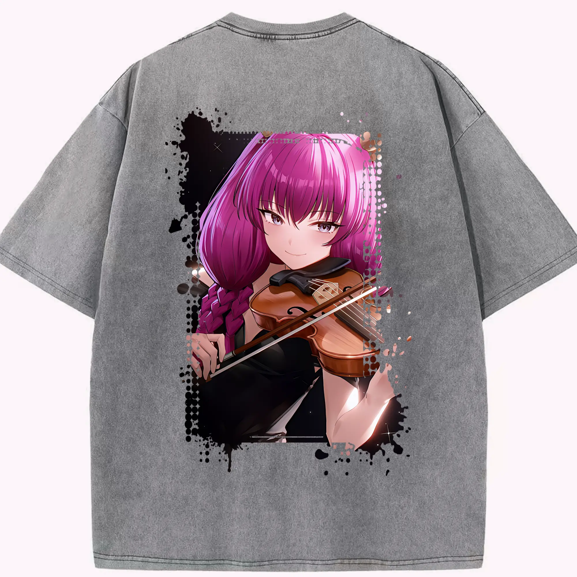 FGO グッズ,オベロン - 綿100% ヴィンテージ風 半袖Tシャツ ・ 背面プリント ・ 柔らか肌触り ・ 通気性 快適 ・ スポーツ カジュアル 外出用
