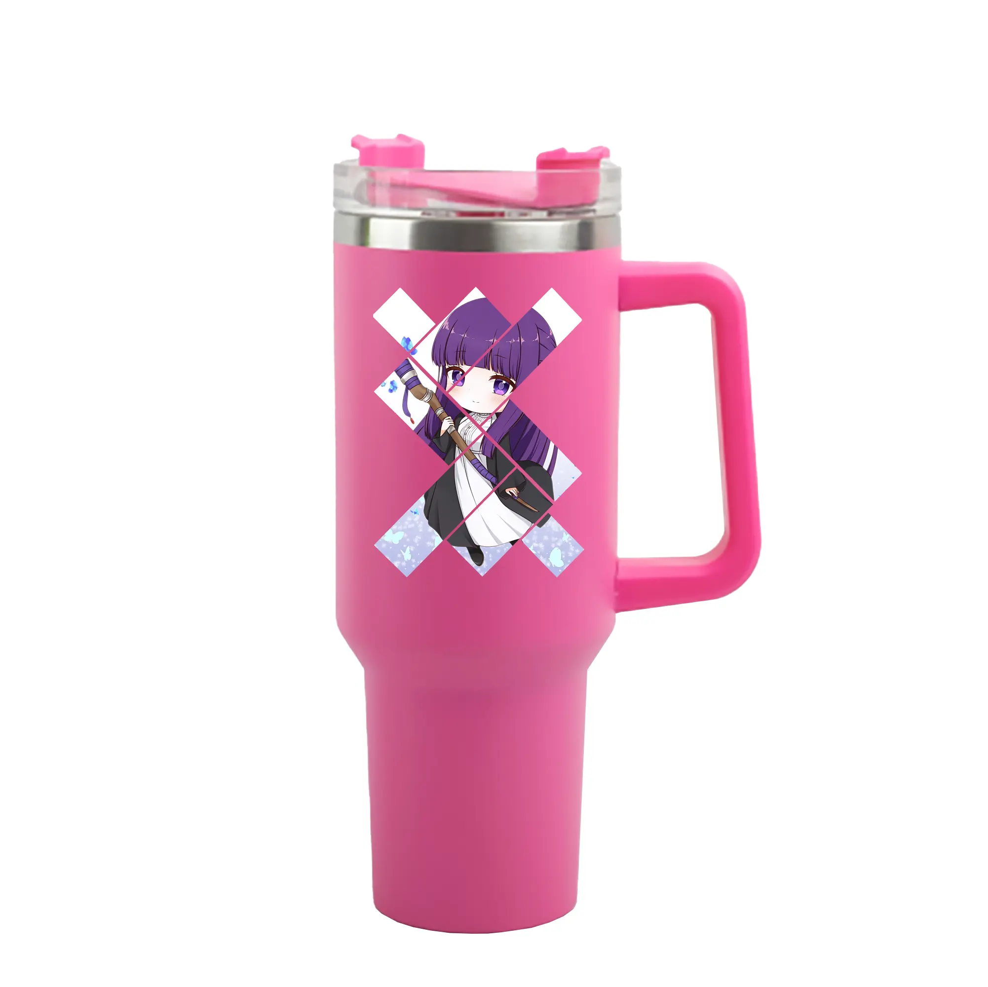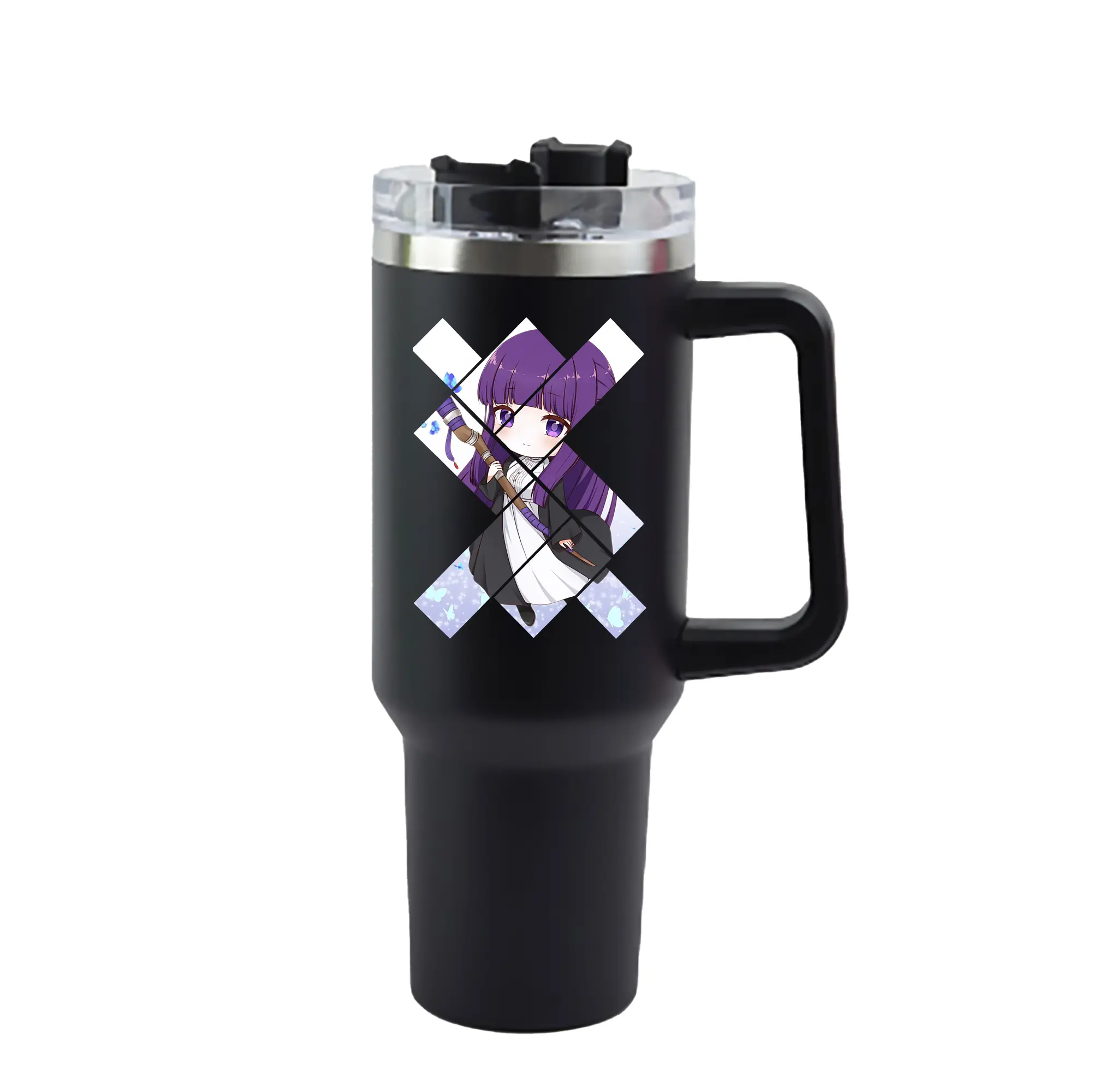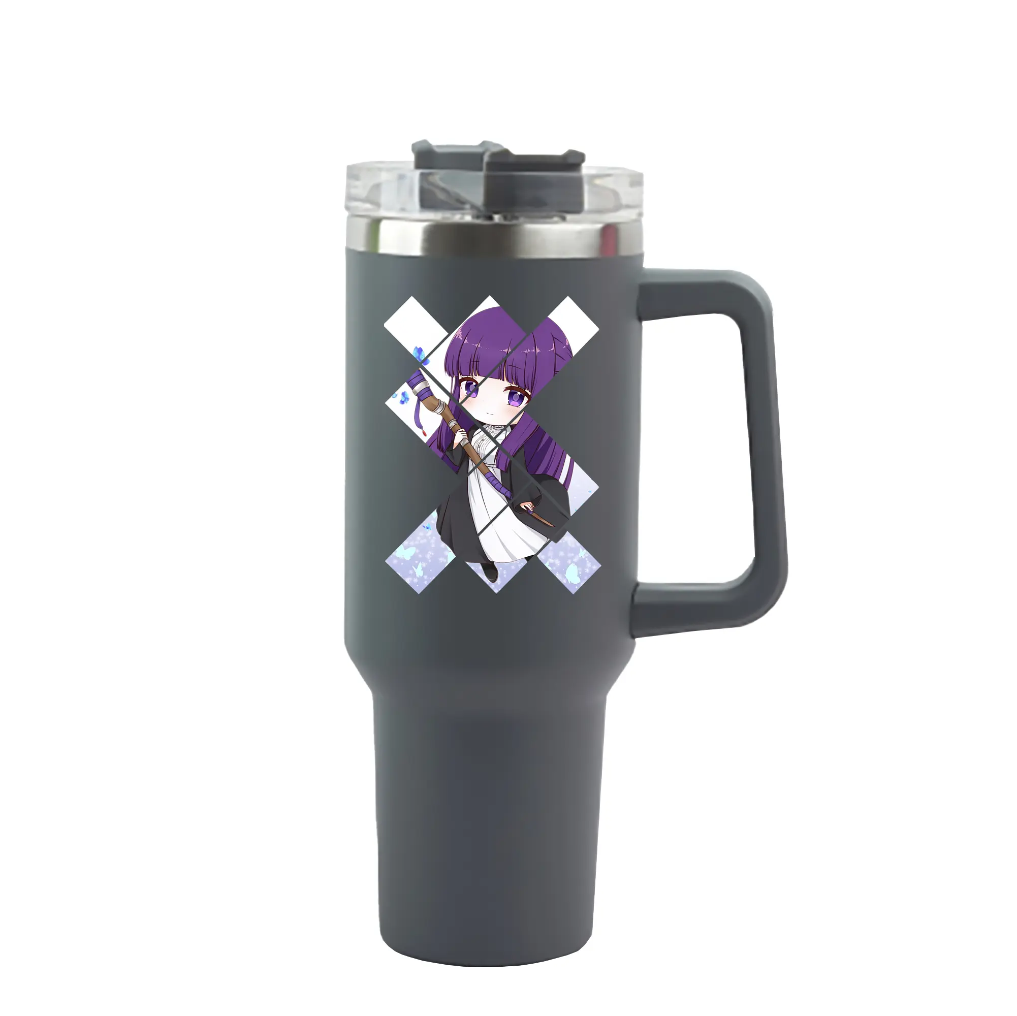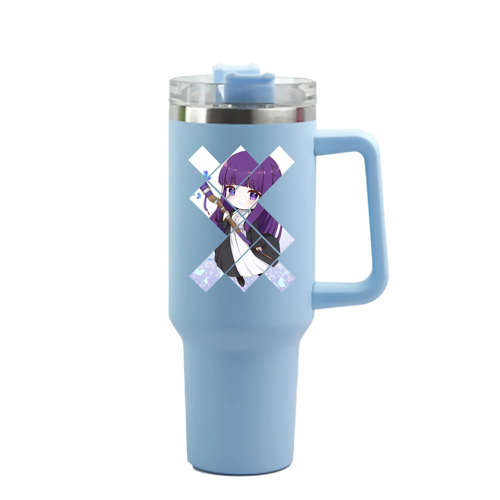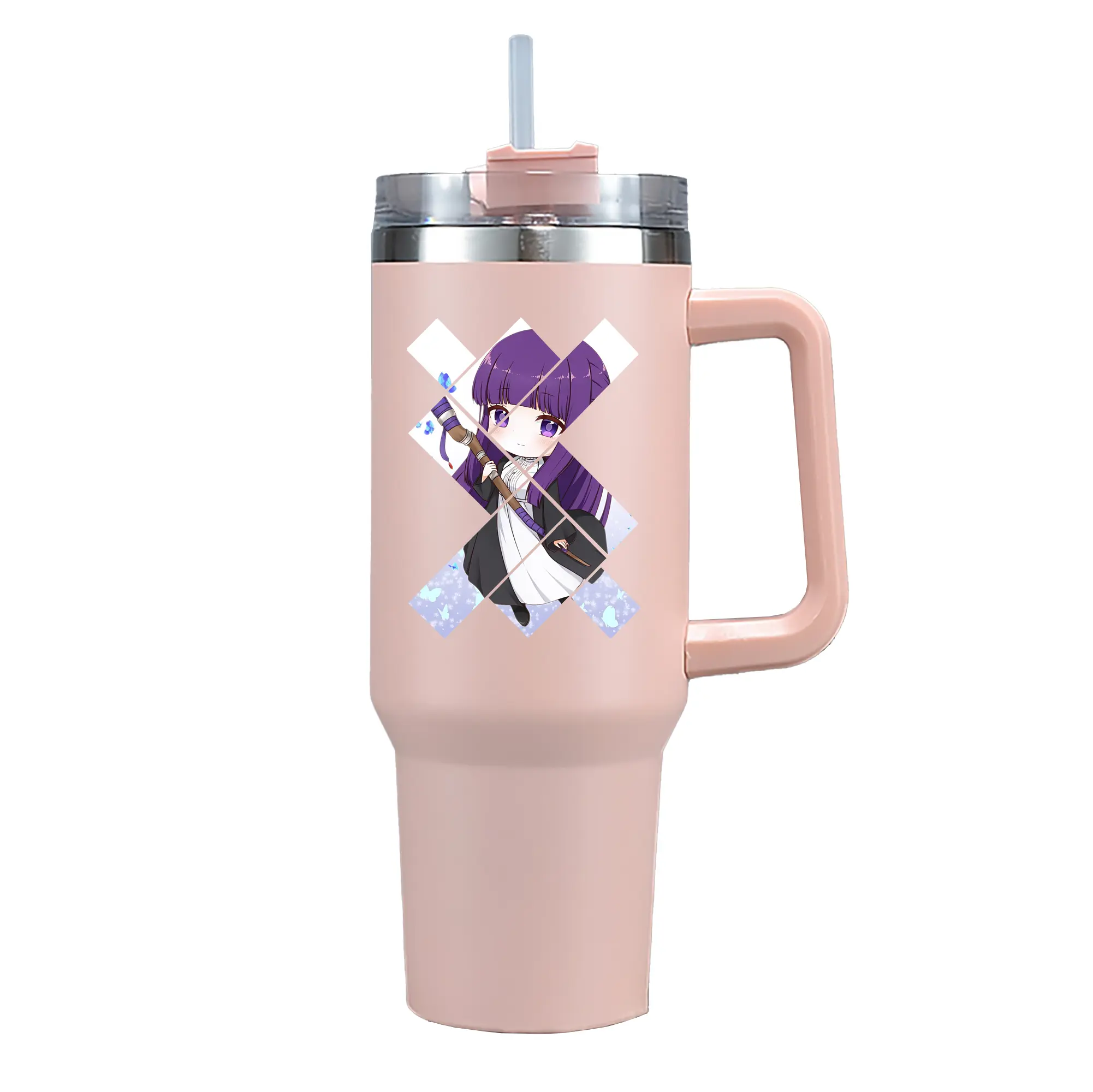 葬送のフリーレン(Frieren) グッズ,フェルン(Fern) - 1200mL 車用タンブラー ・ クリスタルステッカー ・ 304ステンレス 内側 ・ 201ステンレス 外側 ・ 保温 保冷 ・ ハンドル&ストロー付き ・ 通勤 ドライブ アウトドア用