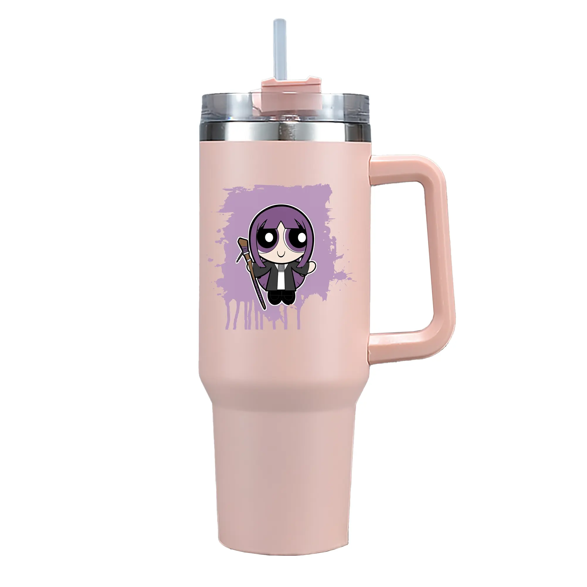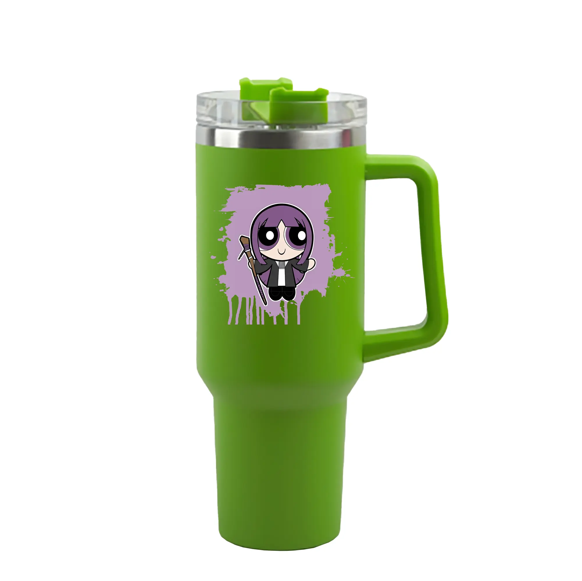 葬送のフリーレン(Frieren) グッズ,フェルン(Fern) - 1200mL 車用タンブラー ・ クリスタルステッカー ・ 304ステンレス 内側 ・ 201ステンレス 外側 ・ 保温 保冷 ・ ハンドル&ストロー付き ・ 通勤 ドライブ アウトドア用