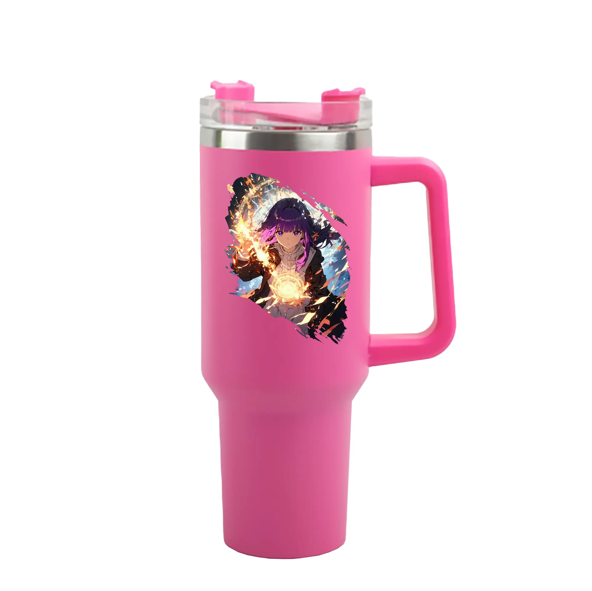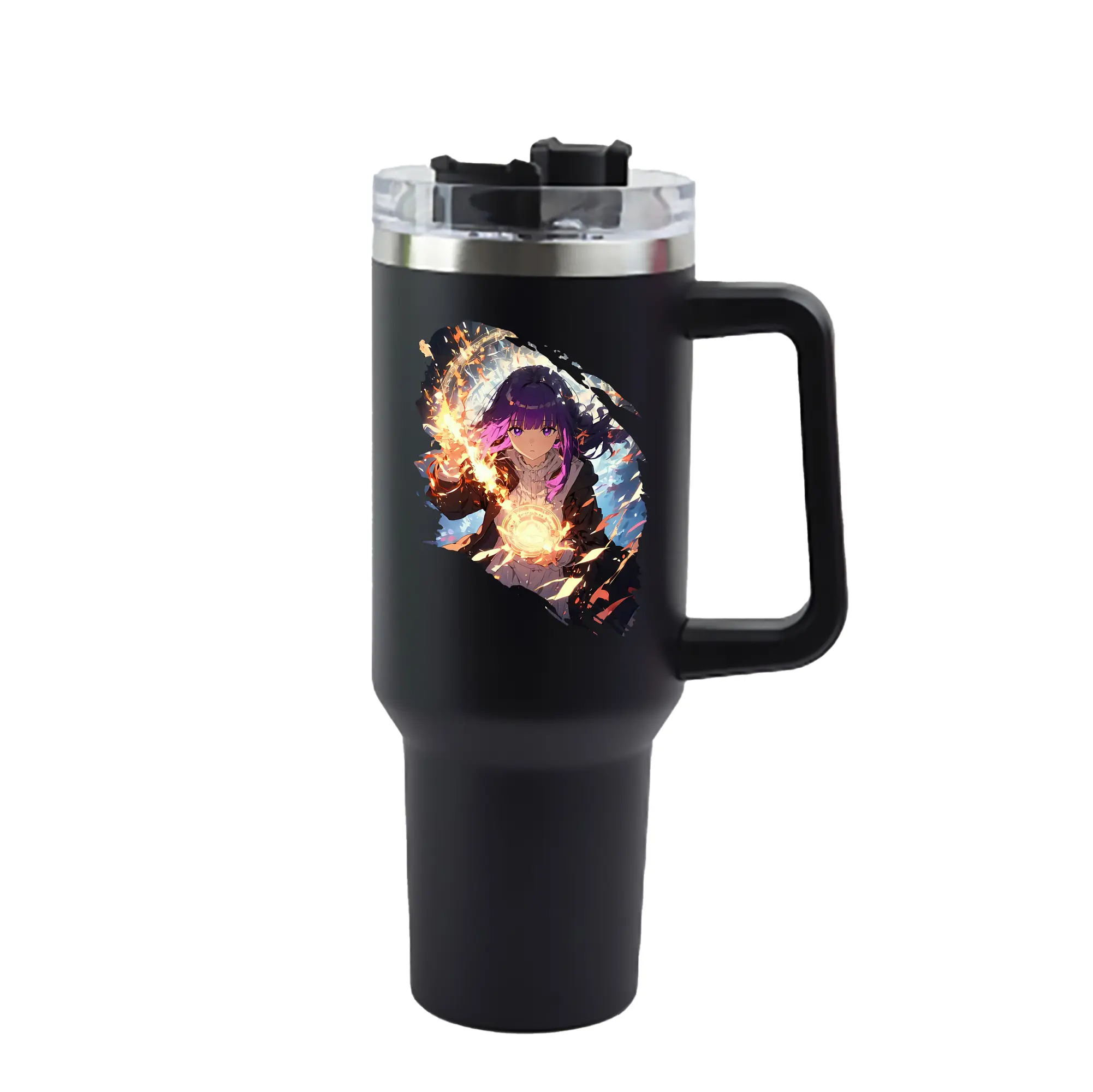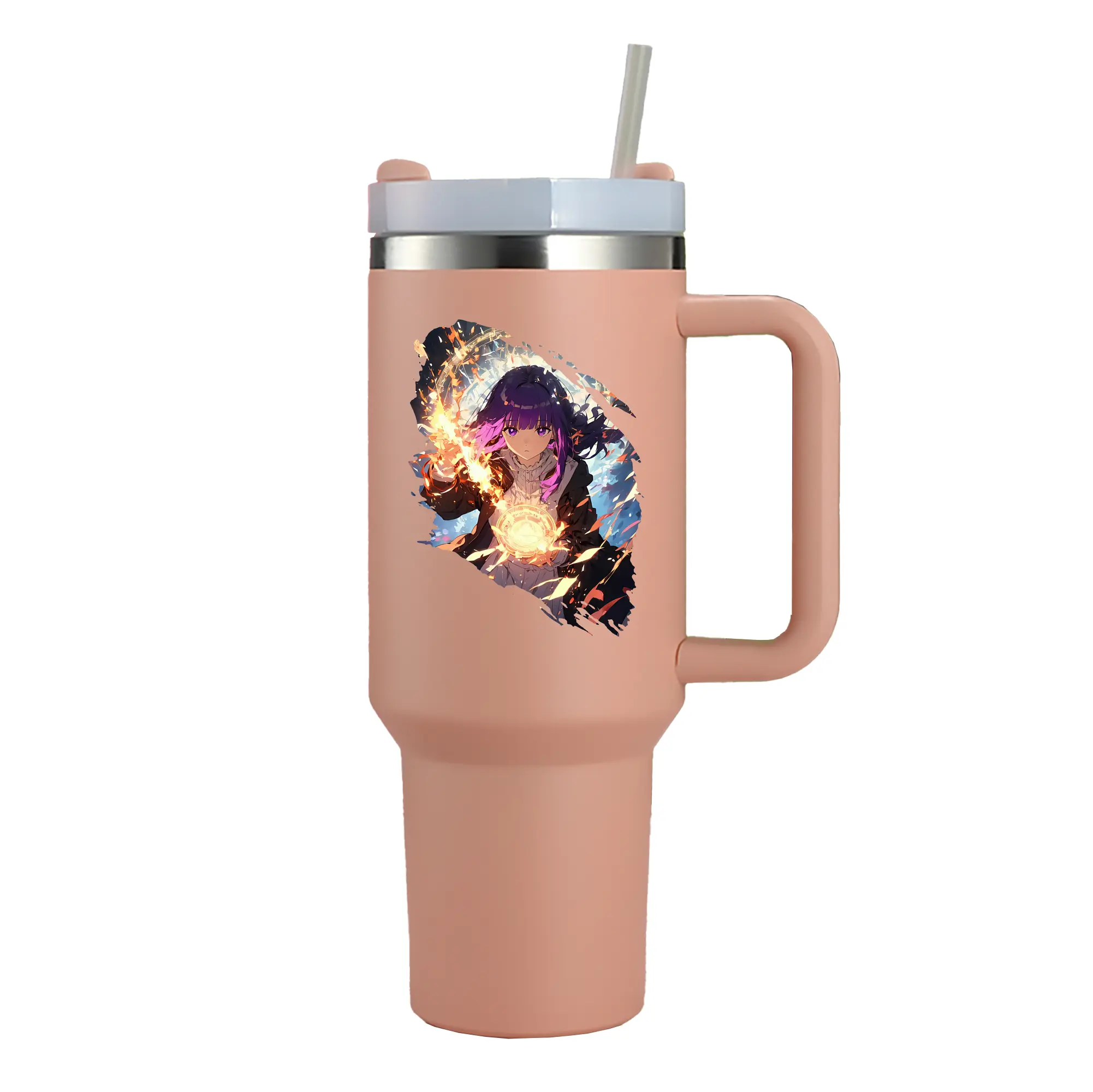 葬送のフリーレン(Frieren) グッズ,フェルン(Fern) - 1200mL 車用タンブラー ・ クリスタルステッカー ・ 304ステンレス 内側 ・ 201ステンレス 外側 ・ 保温 保冷 ・ ハンドル&ストロー付き ・ 通勤 ドライブ アウトドア用