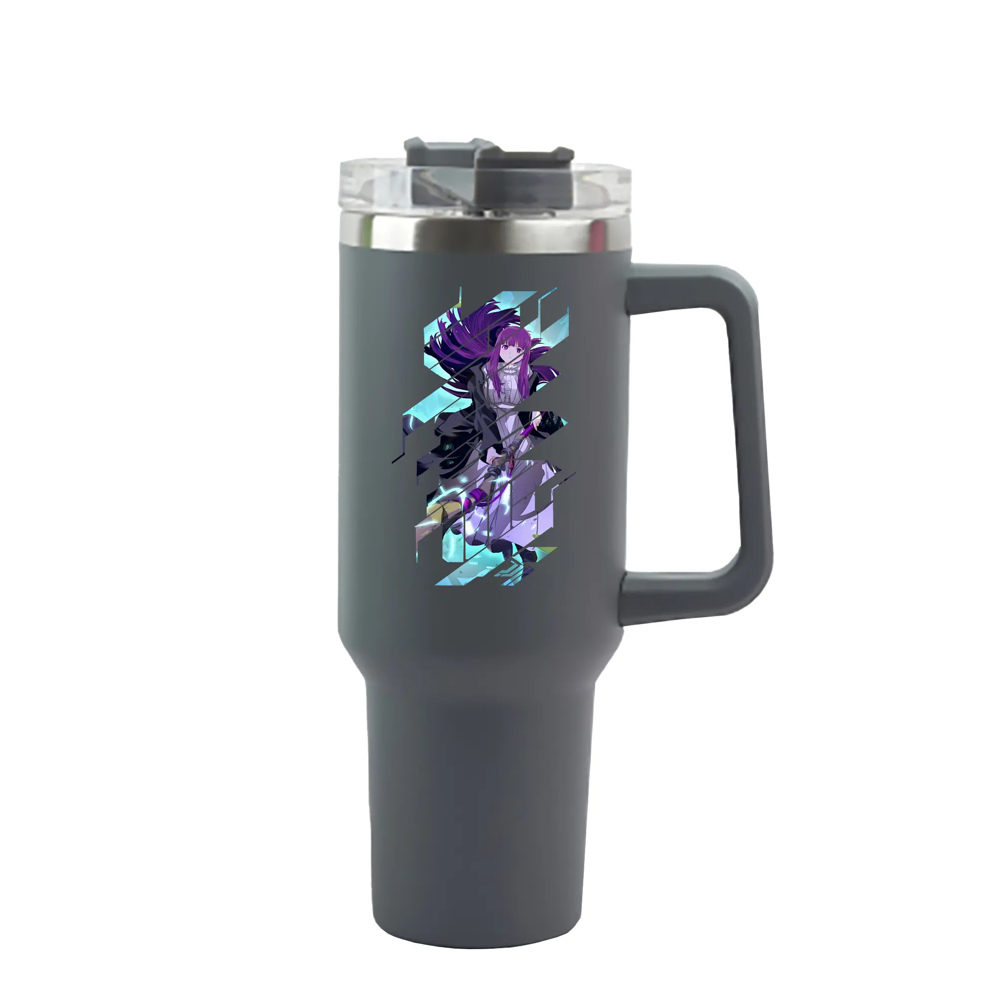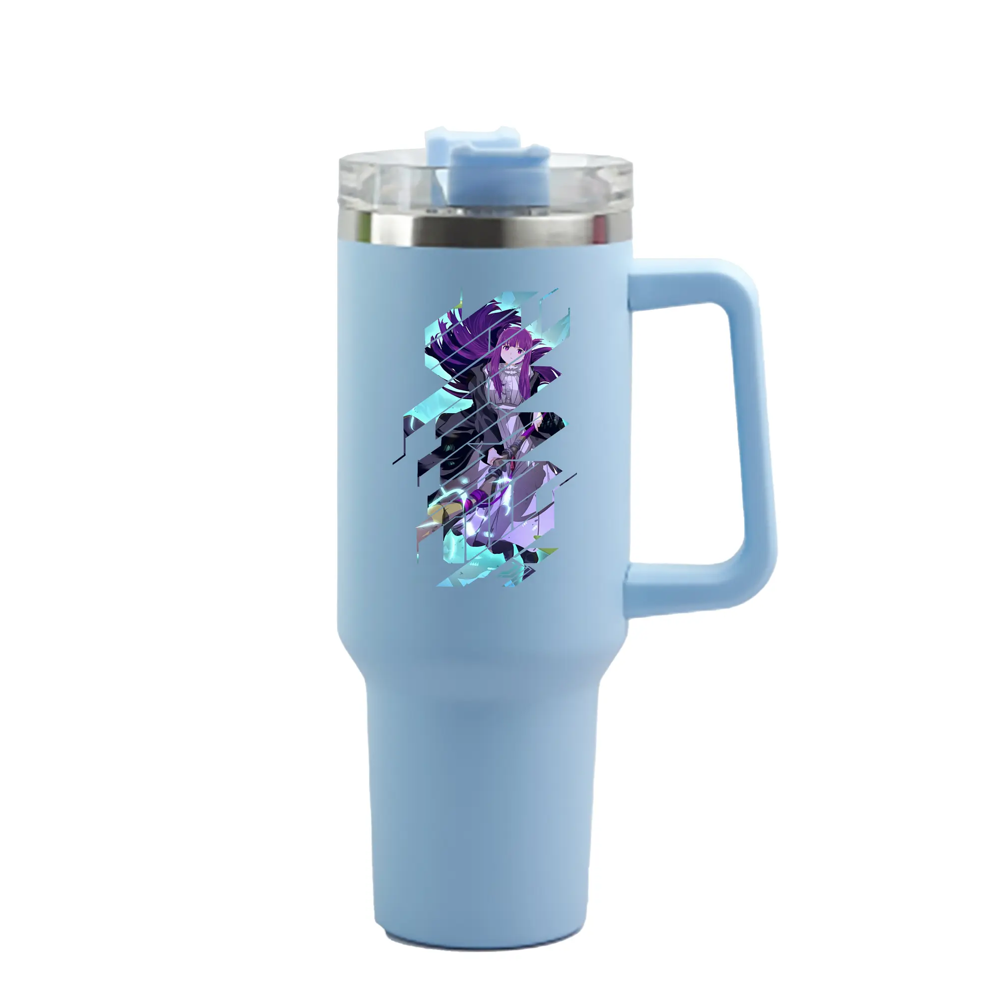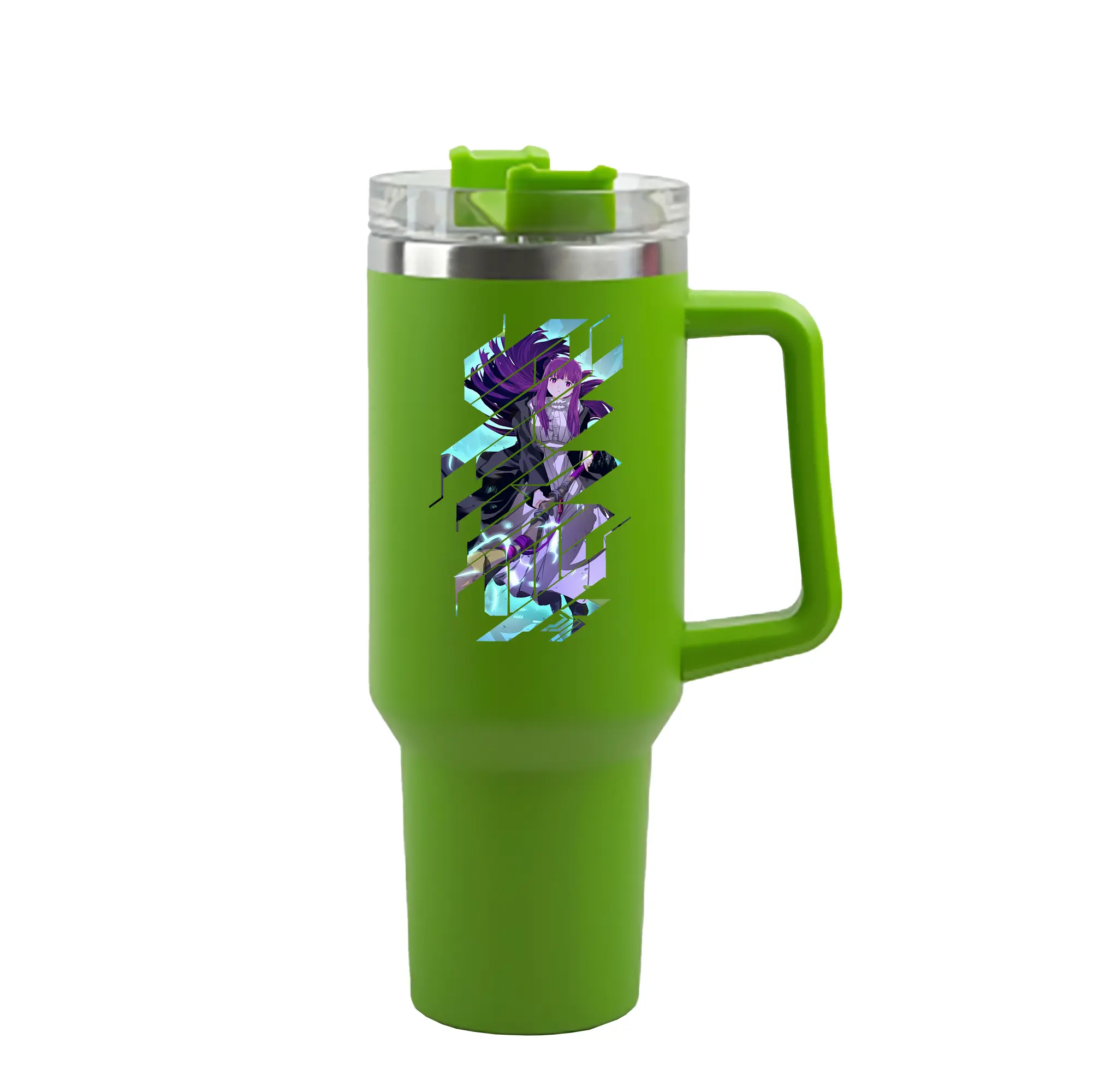 葬送のフリーレン(Frieren) グッズ,フェルン(Fern) - 1200mL 車用タンブラー ・ クリスタルステッカー ・ 304ステンレス 内側 ・ 201ステンレス 外側 ・ 保温 保冷 ・ ハンドル&ストロー付き ・ 通勤 ドライブ アウトドア用