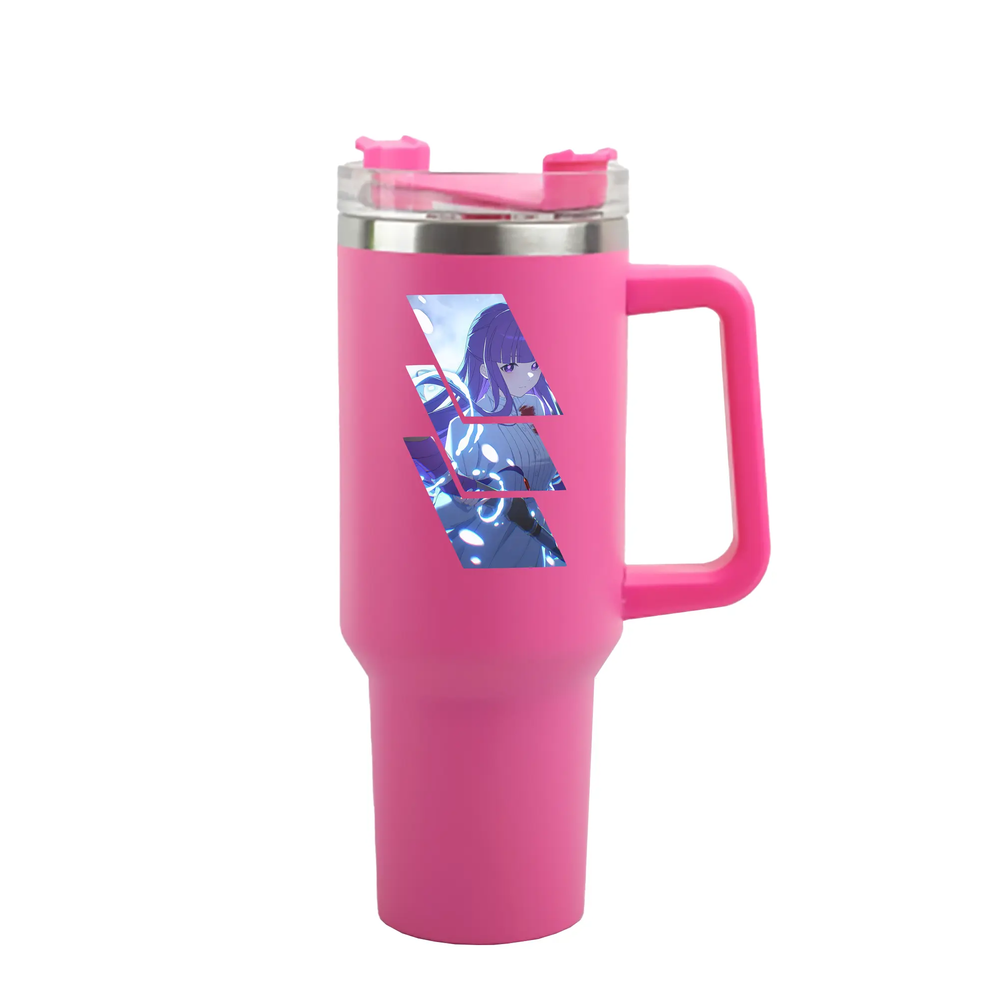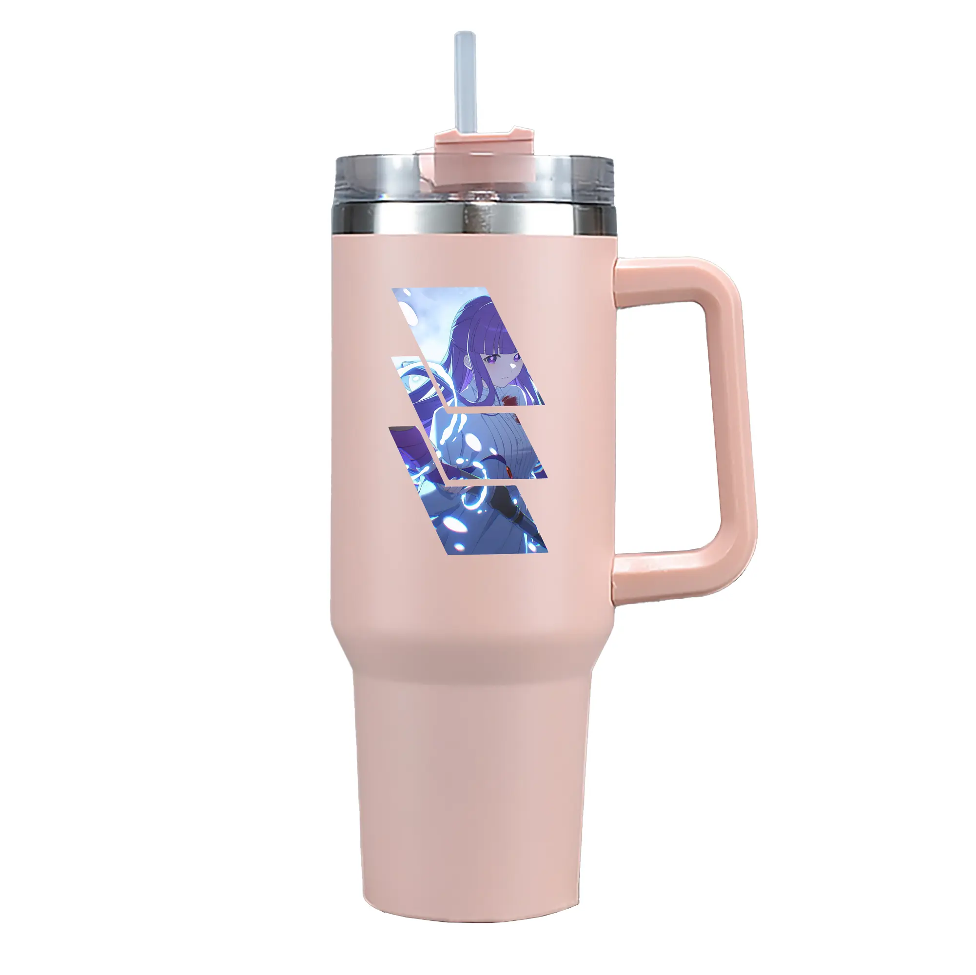 葬送のフリーレン(Frieren) グッズ,フェルン(Fern) - 1200mL 車用タンブラー ・ クリスタルステッカー ・ 304ステンレス 内側 ・ 201ステンレス 外側 ・ 保温 保冷 ・ ハンドル&ストロー付き ・ 通勤 ドライブ アウトドア用