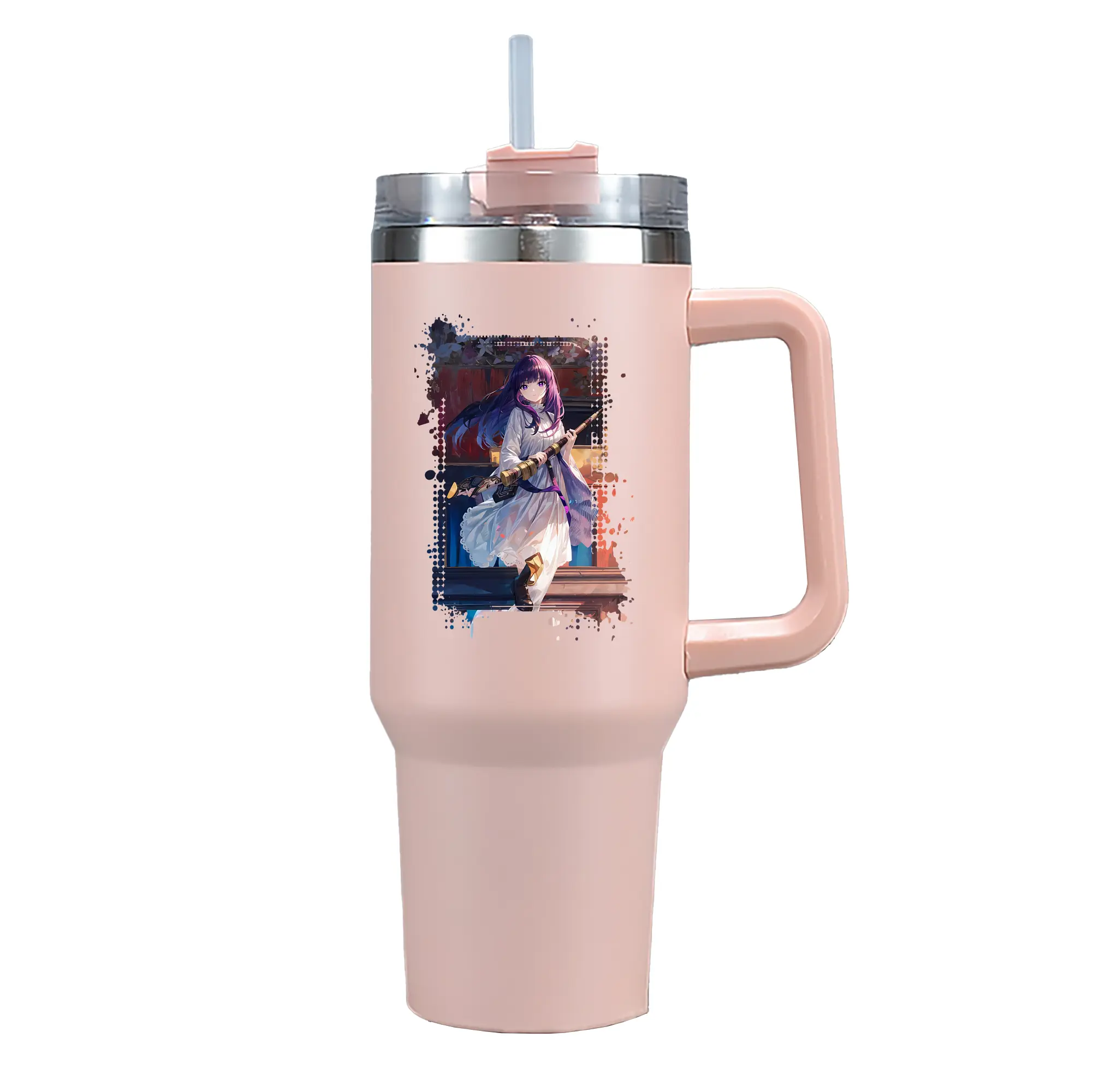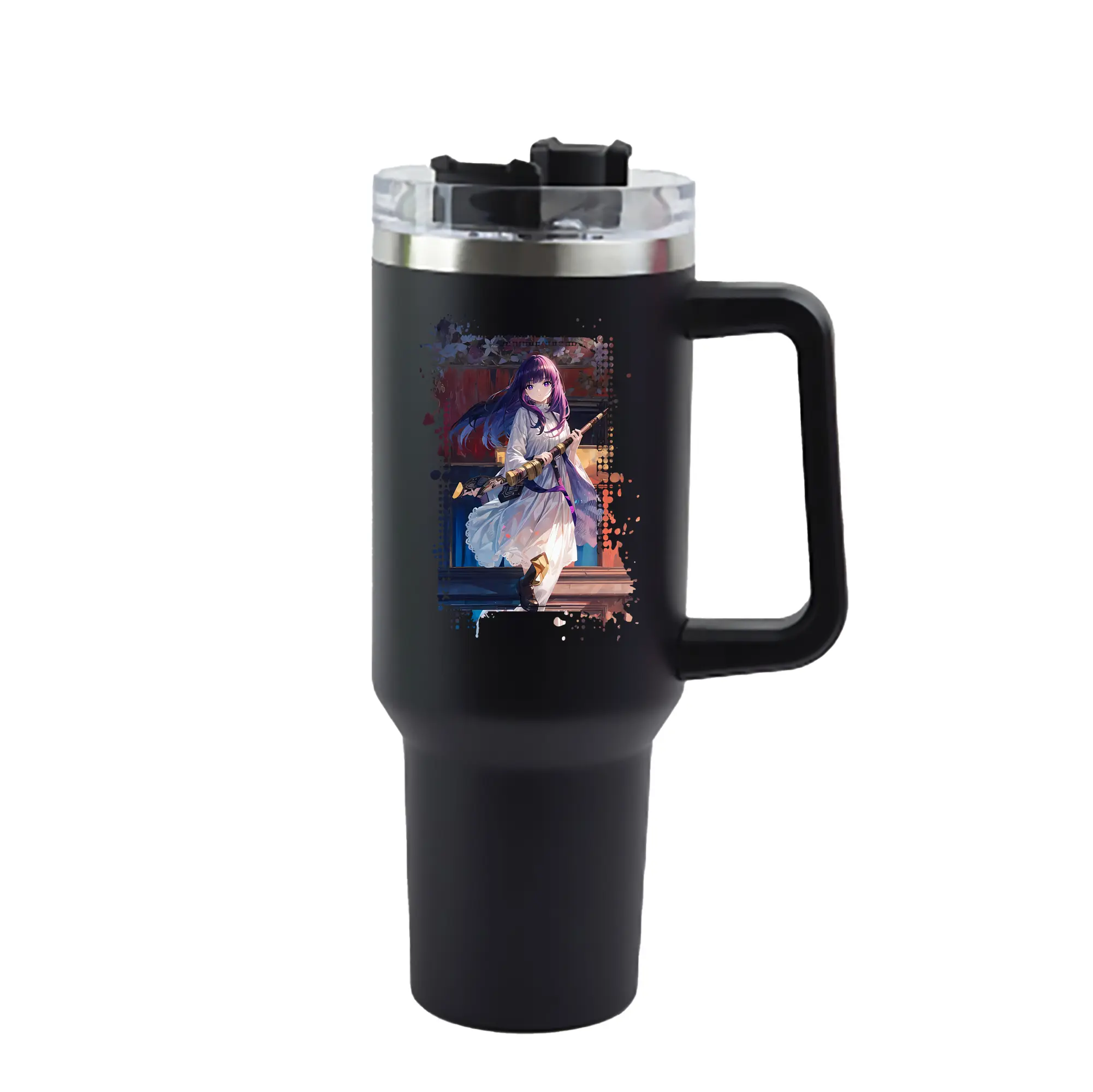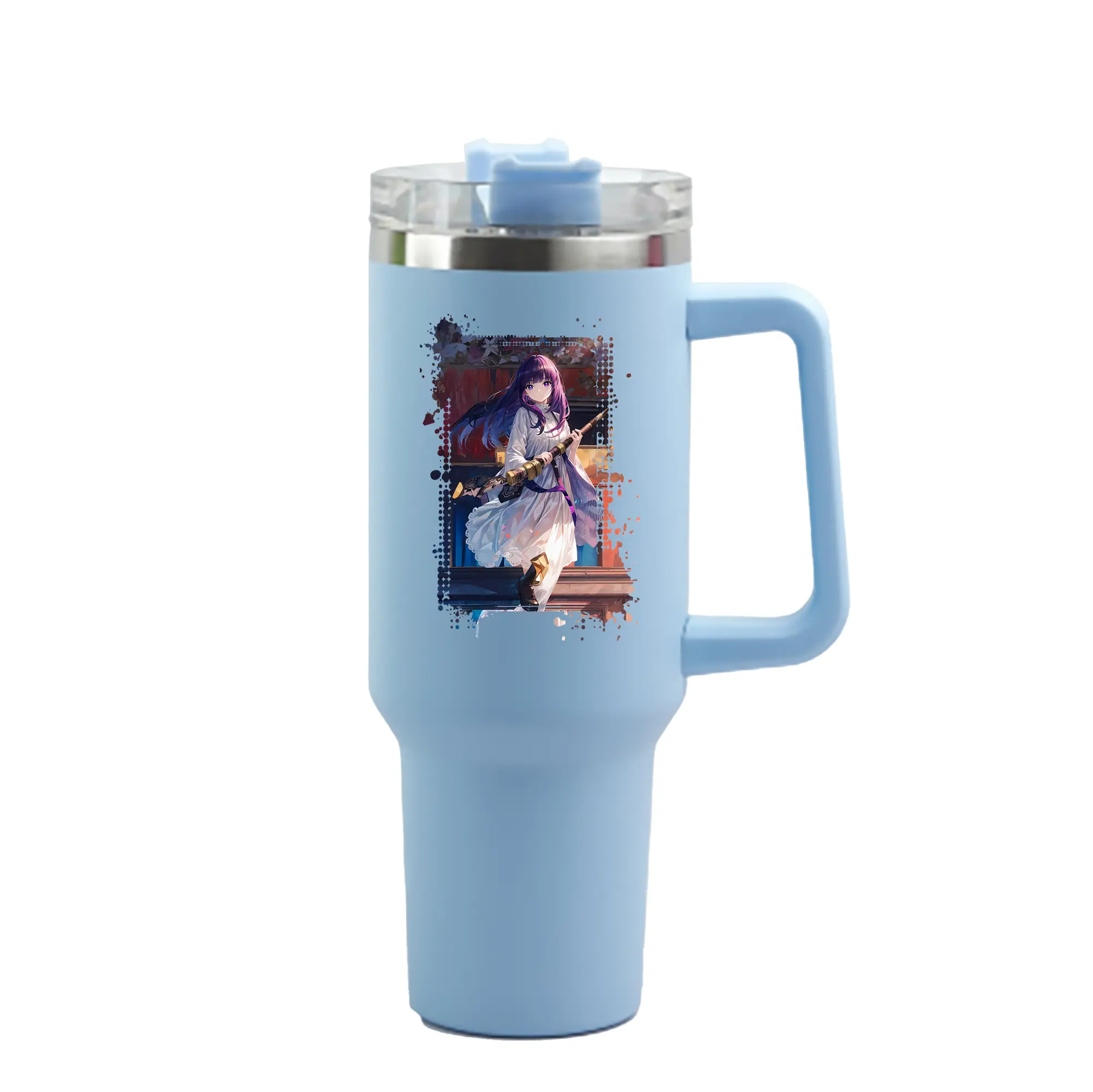 葬送のフリーレン(Frieren) グッズ,フェルン(Fern) - 1200mL 車用タンブラー ・ クリスタルステッカー ・ 304ステンレス 内側 ・ 201ステンレス 外側 ・ 保温 保冷 ・ ハンドル&ストロー付き ・ 通勤 ドライブ アウトドア用