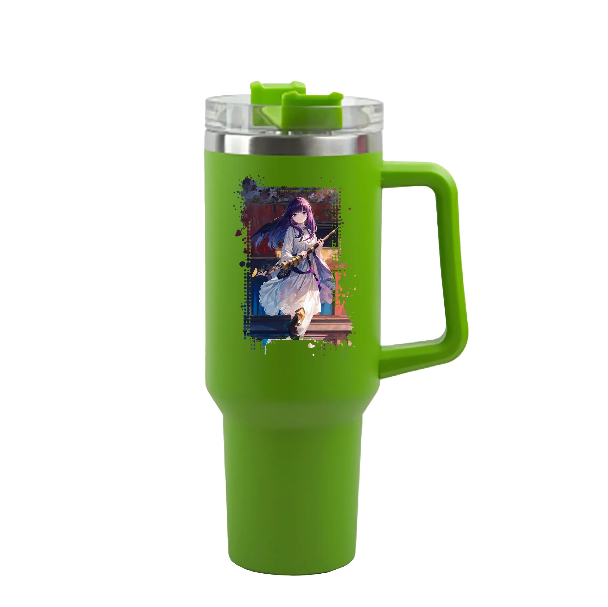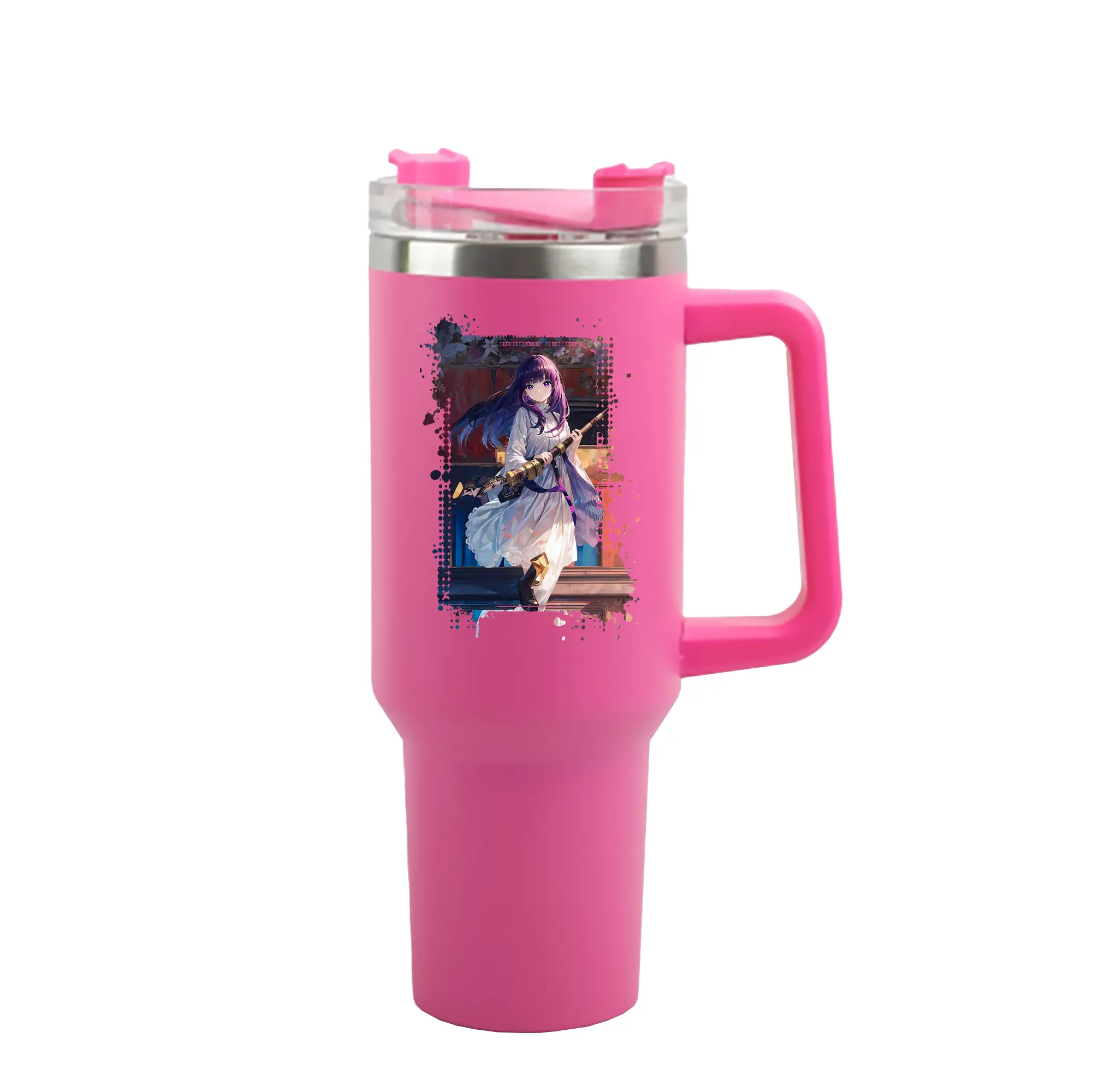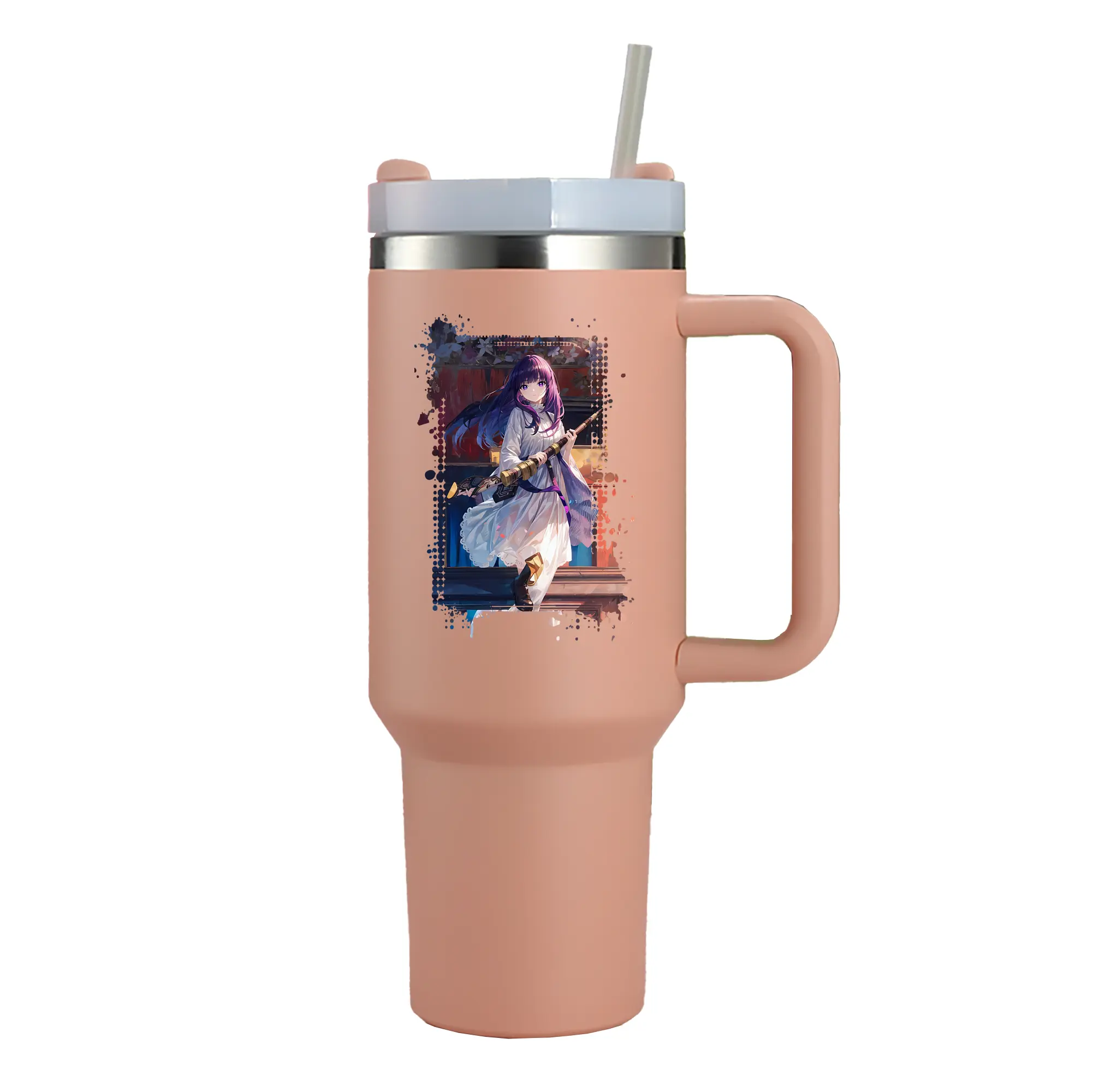 葬送のフリーレン(Frieren) グッズ,フェルン(Fern) - 1200mL 車用タンブラー ・ クリスタルステッカー ・ 304ステンレス 内側 ・ 201ステンレス 外側 ・ 保温 保冷 ・ ハンドル&ストロー付き ・ 通勤 ドライブ アウトドア用