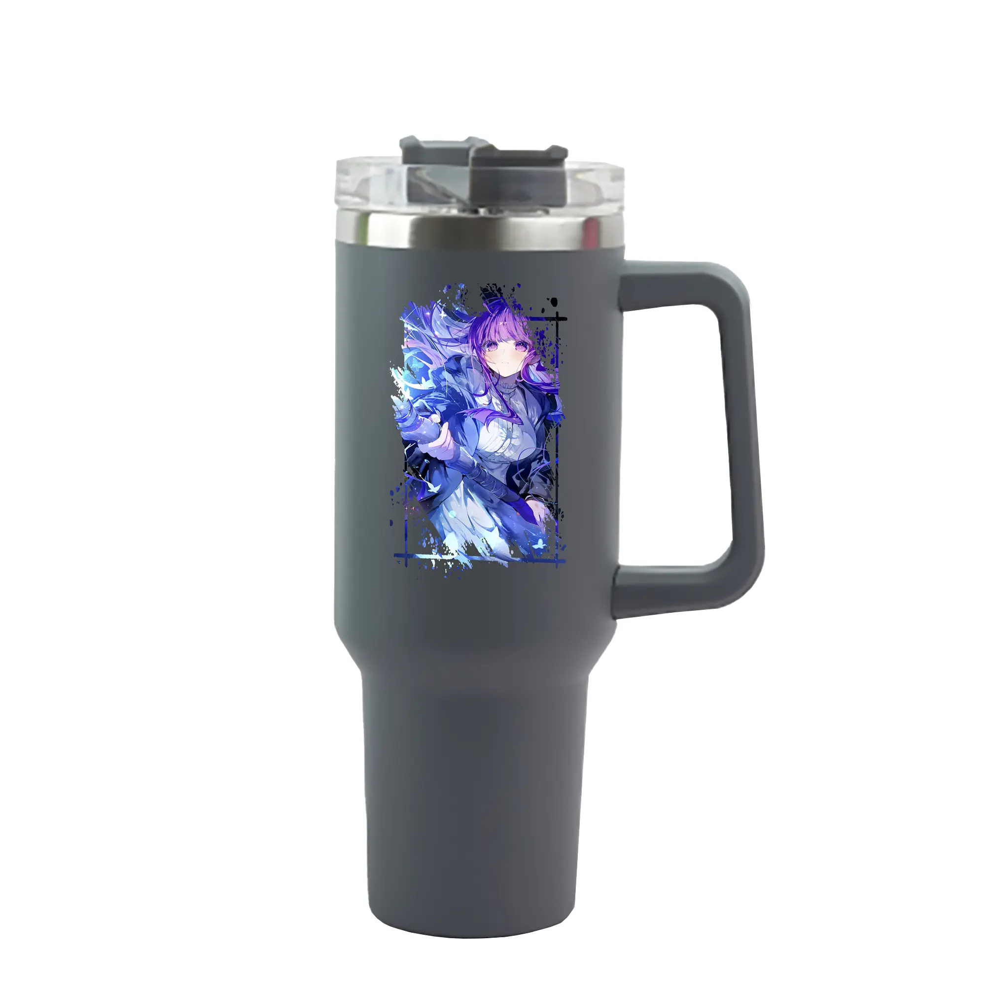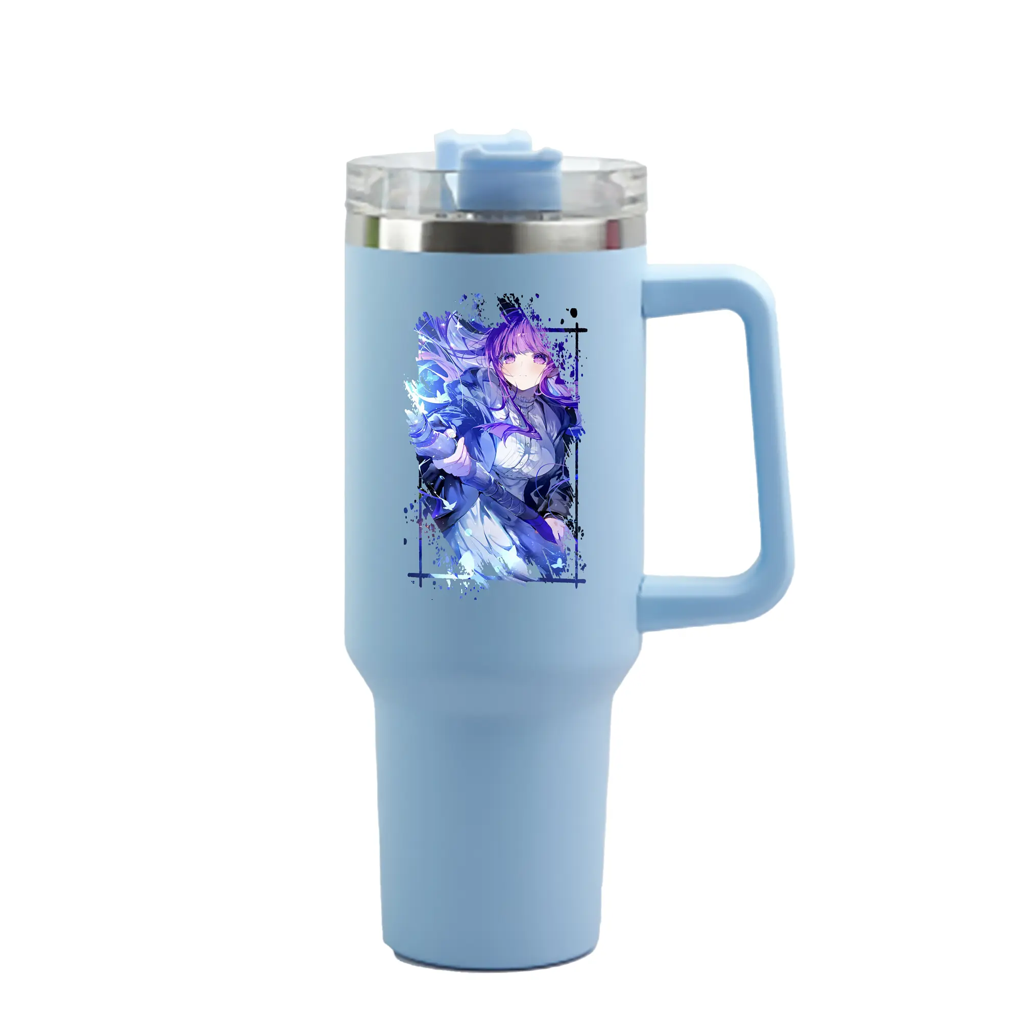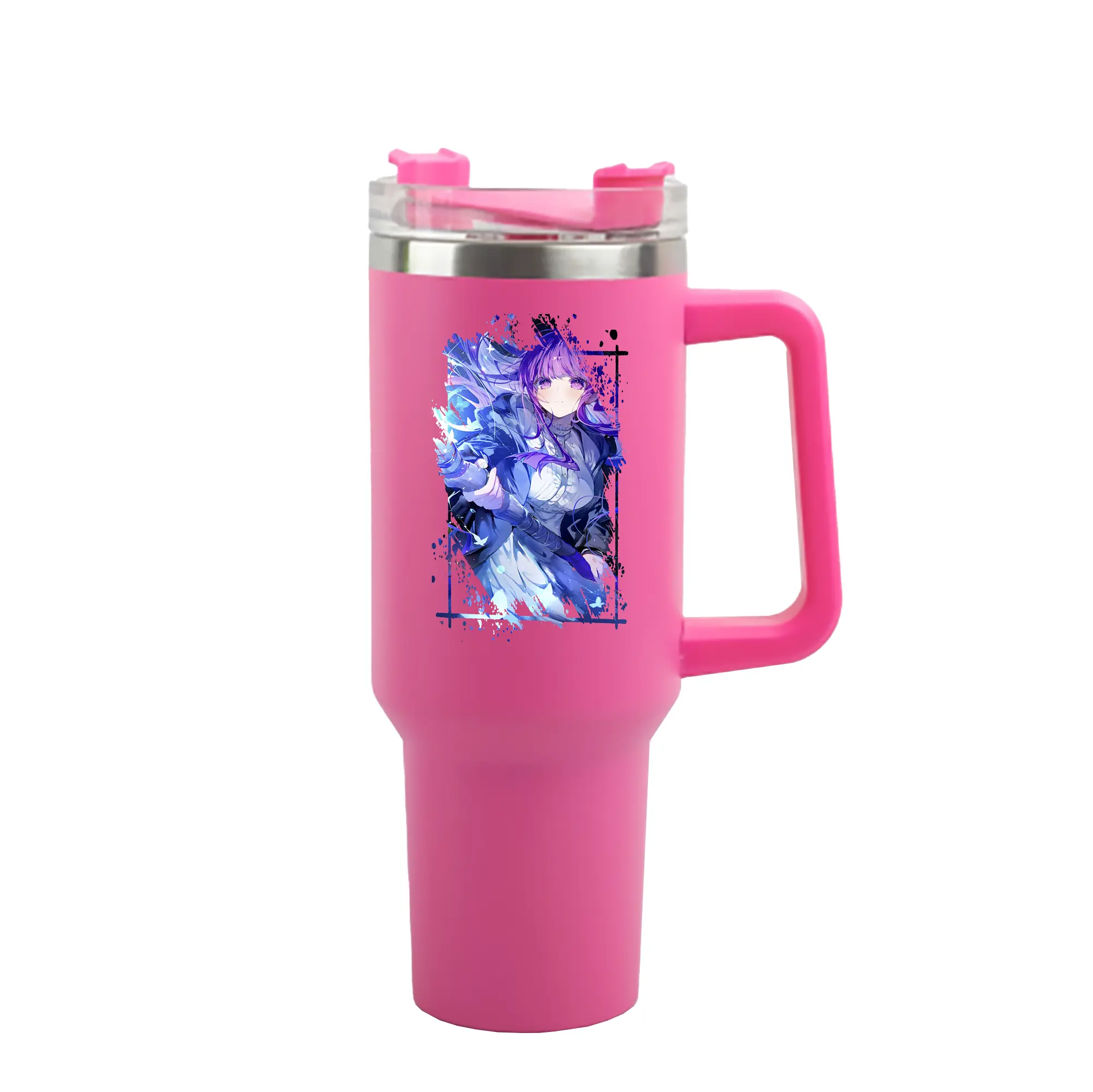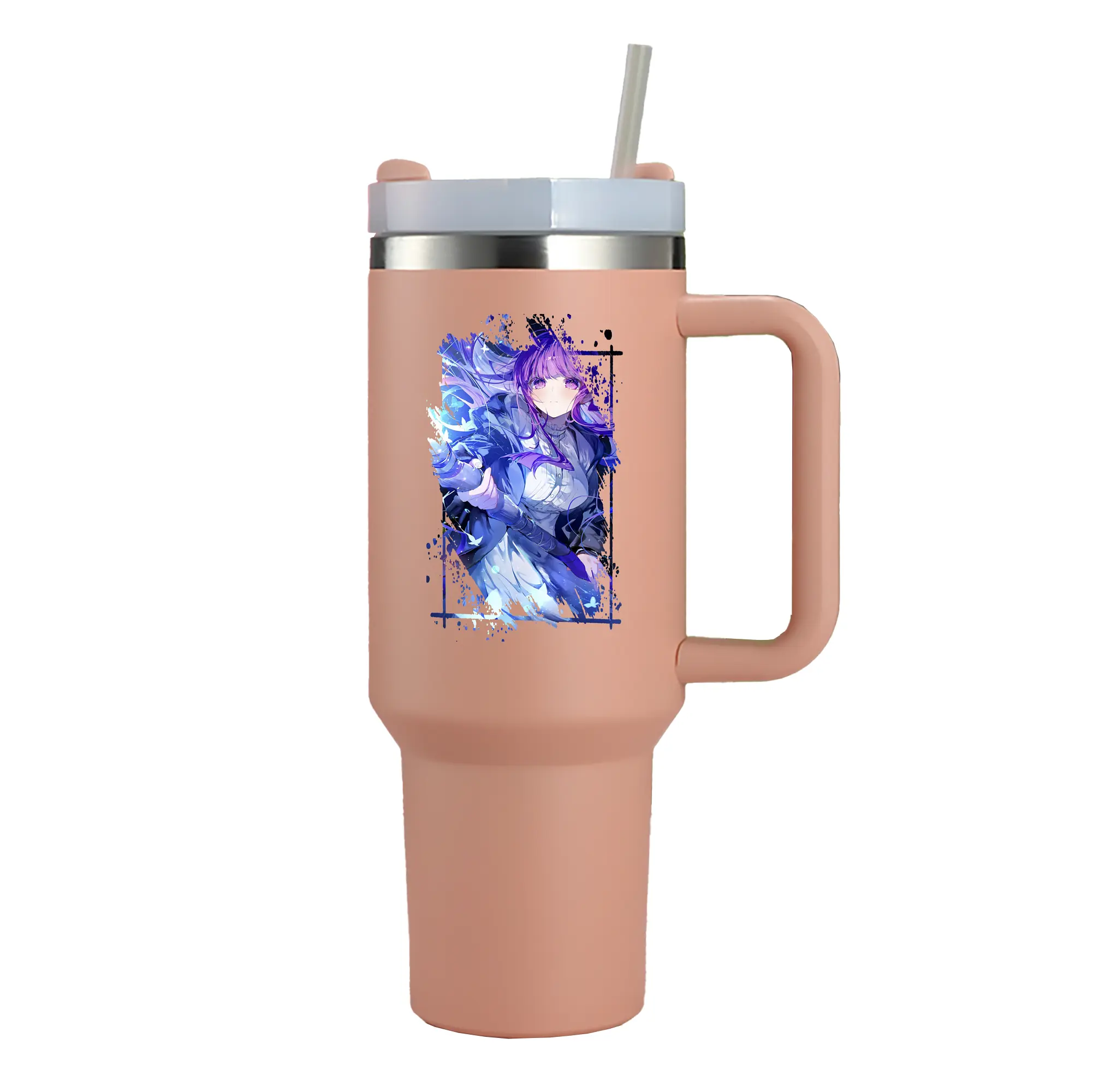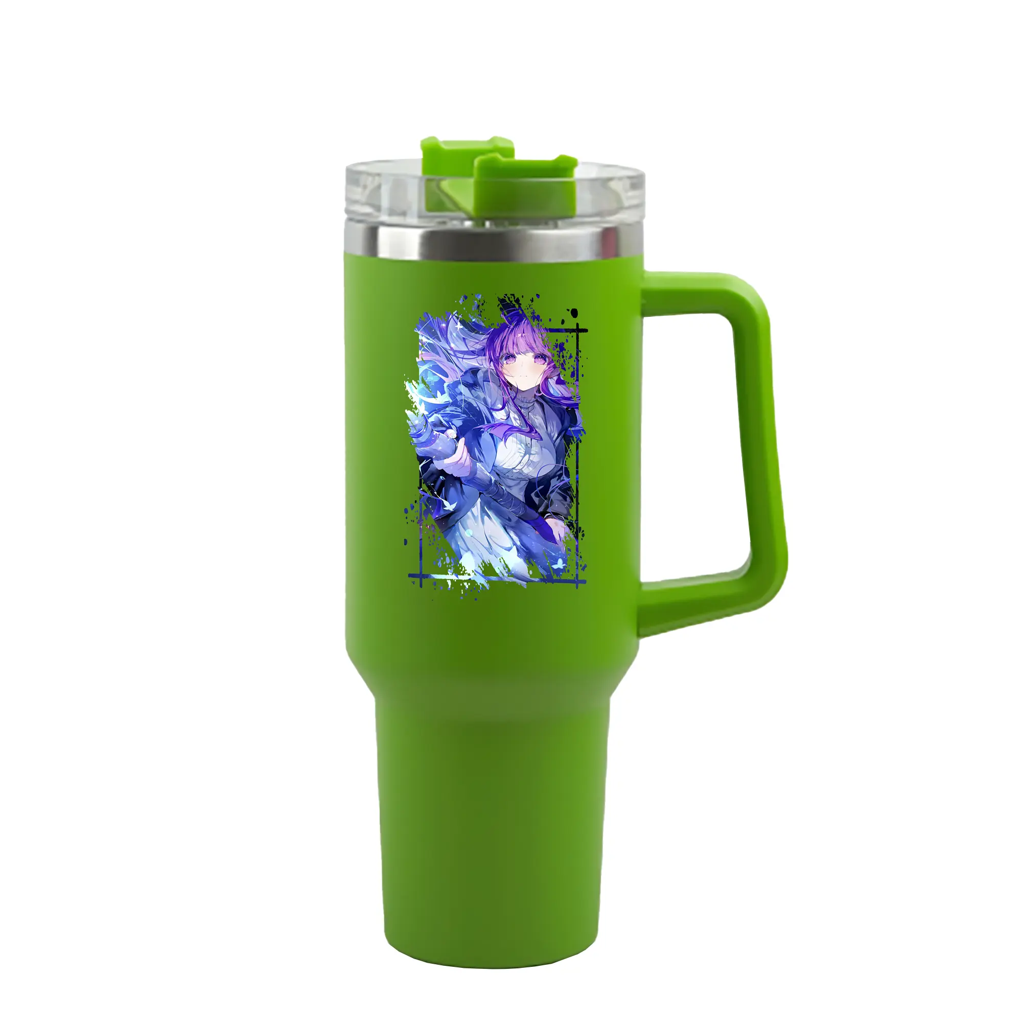 葬送のフリーレン(Frieren) グッズ,フェルン(Fern) - 1200mL 車用タンブラー ・ クリスタルステッカー ・ 304ステンレス 内側 ・ 201ステンレス 外側 ・ 保温 保冷 ・ ハンドル&ストロー付き ・ 通勤 ドライブ アウトドア用