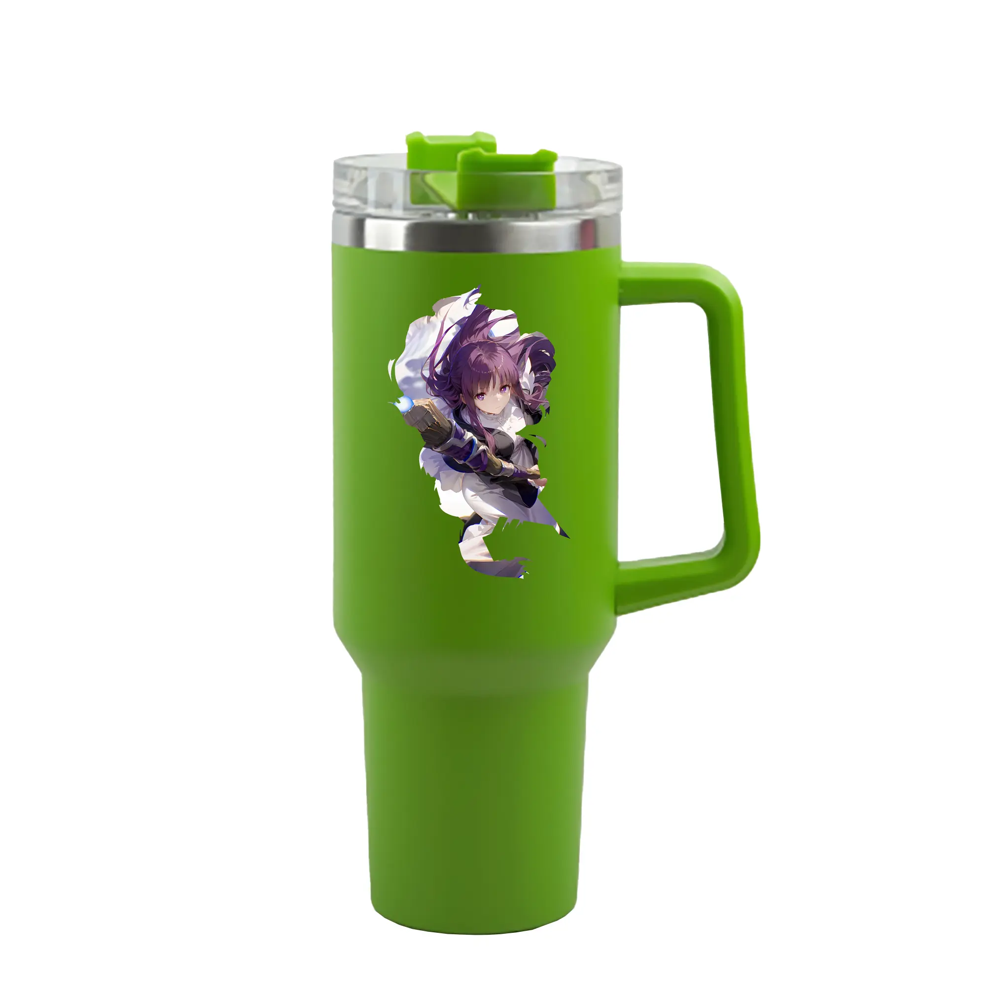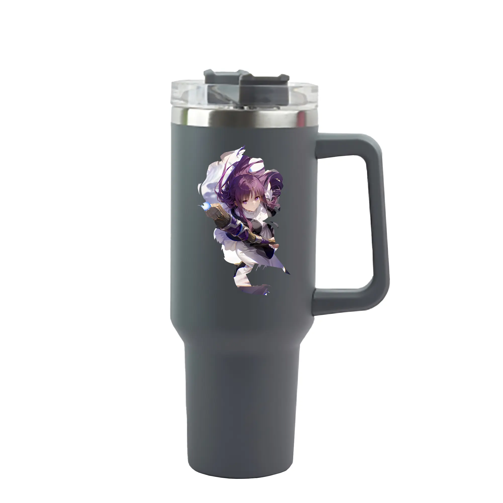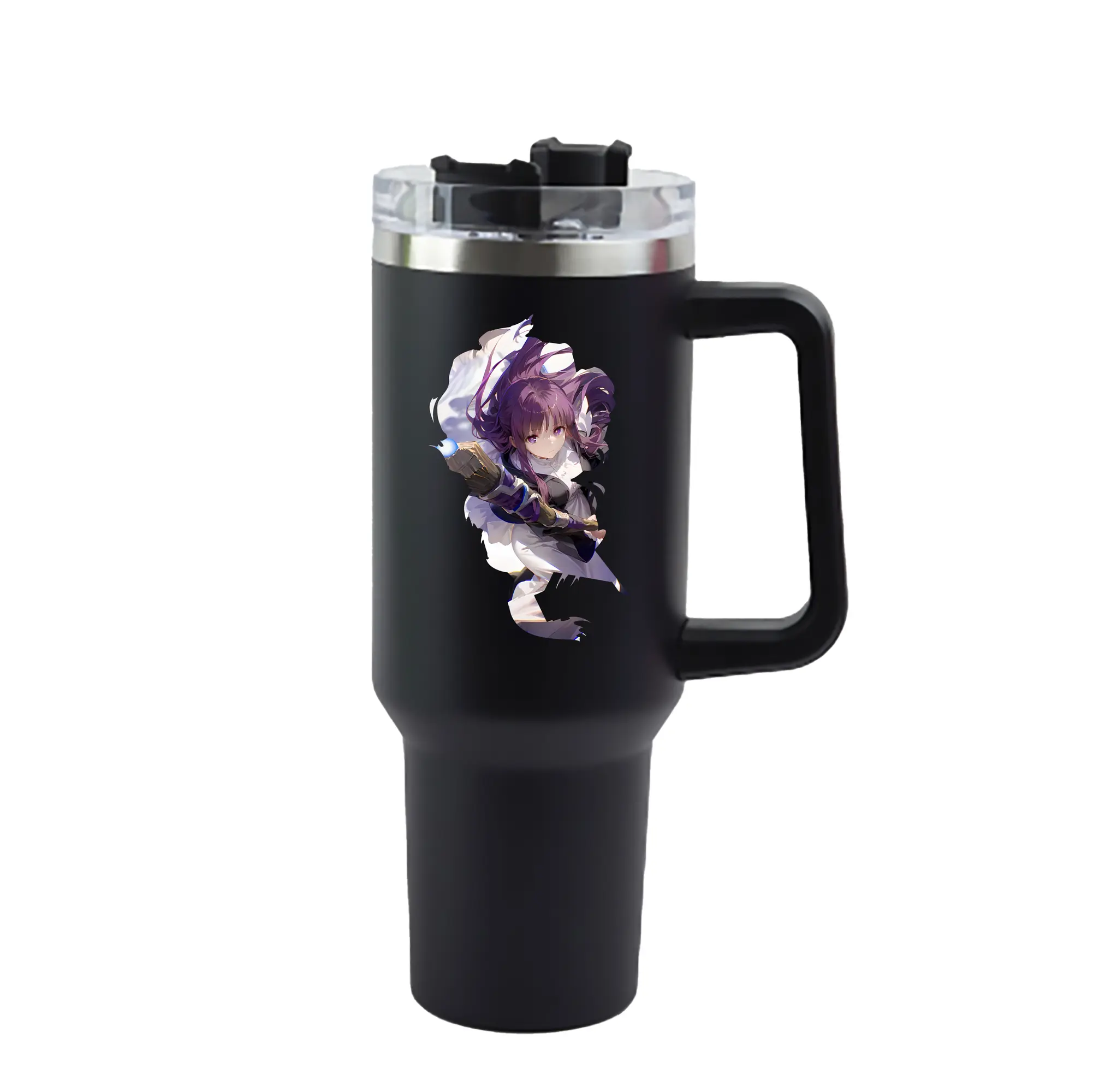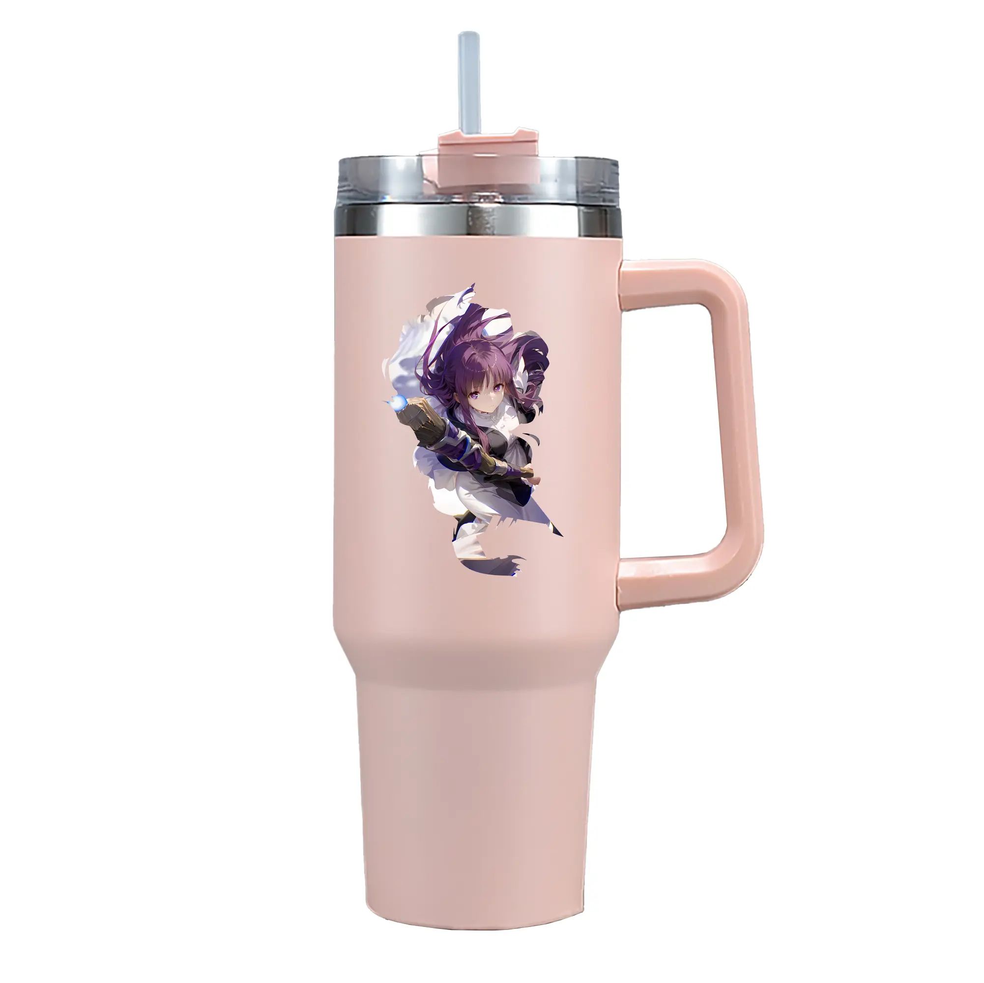 葬送のフリーレン(Frieren) グッズ,フェルン(Fern) - 1200mL 車用タンブラー ・ クリスタルステッカー ・ 304ステンレス 内側 ・ 201ステンレス 外側 ・ 保温 保冷 ・ ハンドル&ストロー付き ・ 通勤 ドライブ アウトドア用