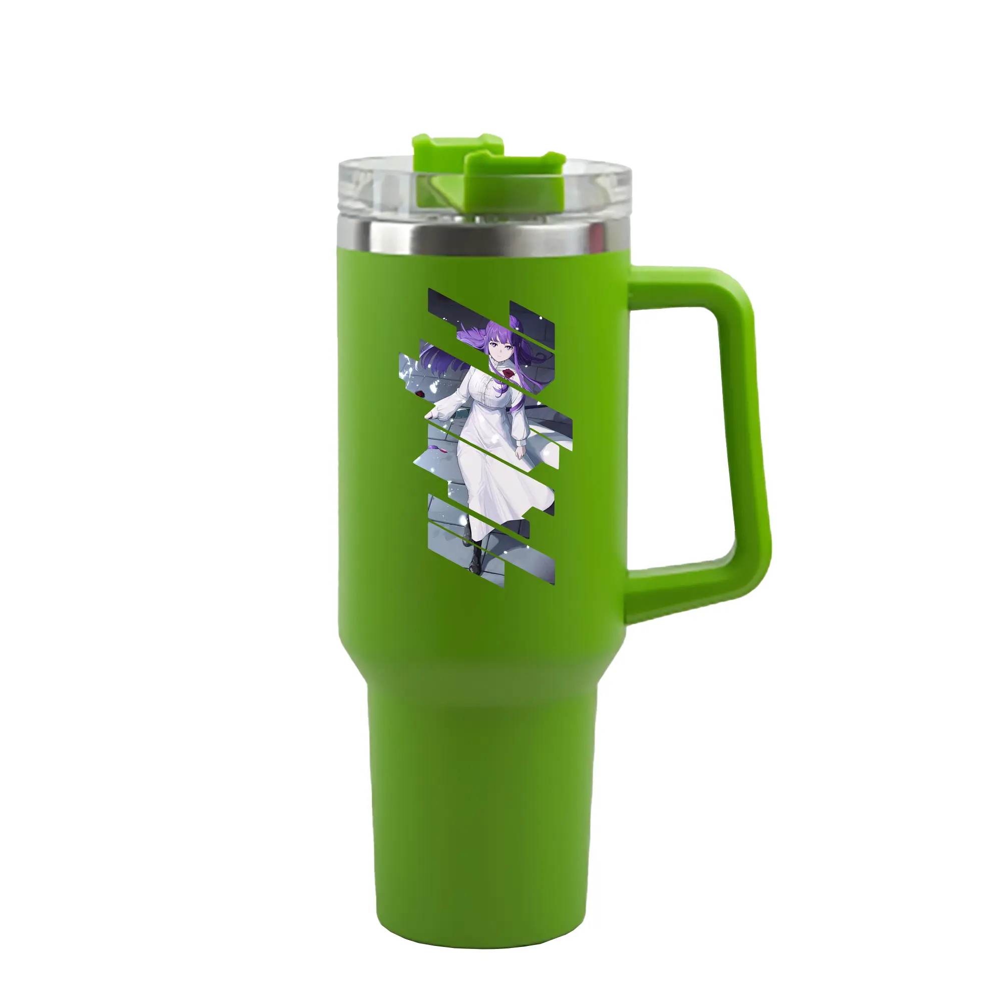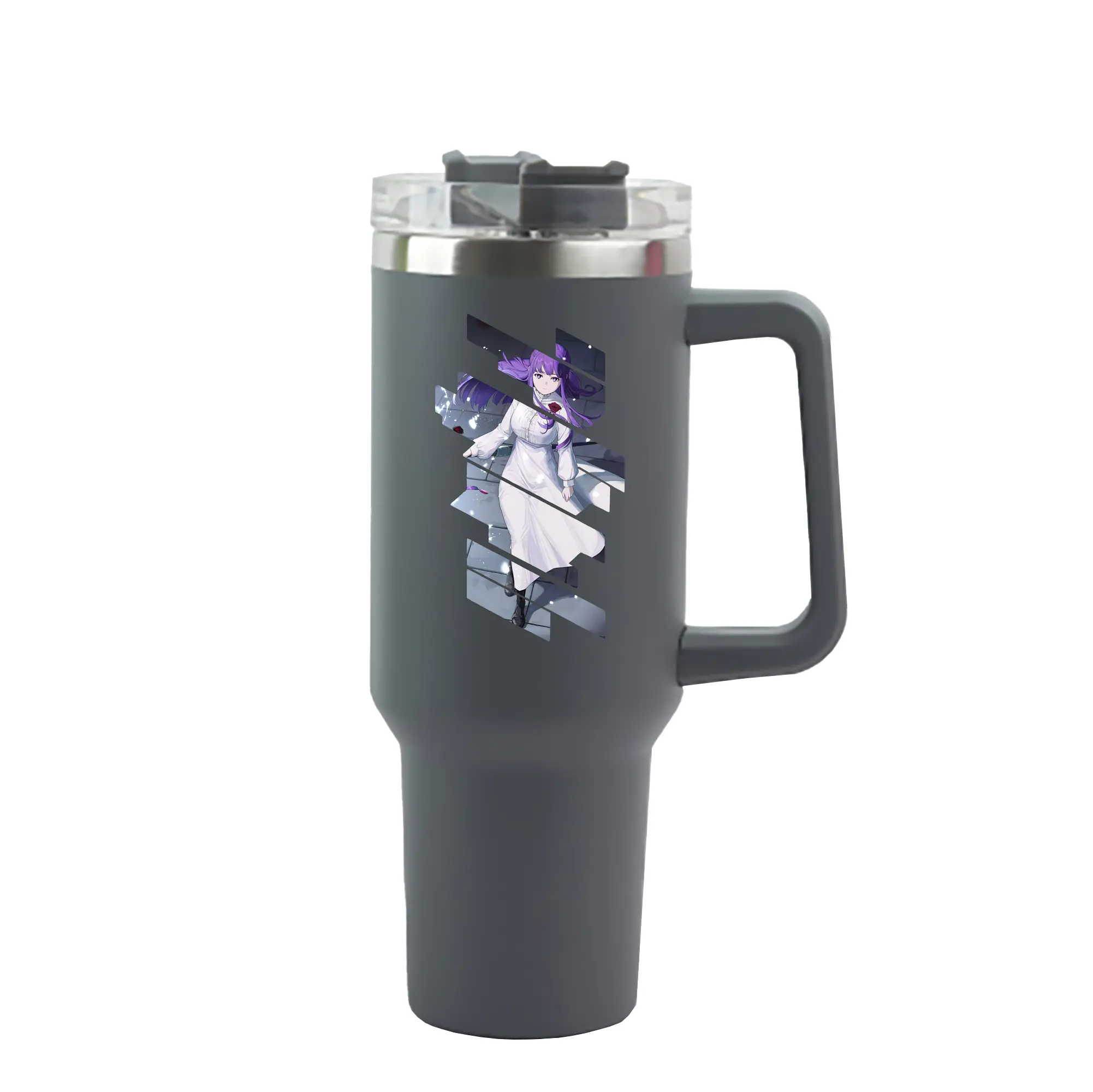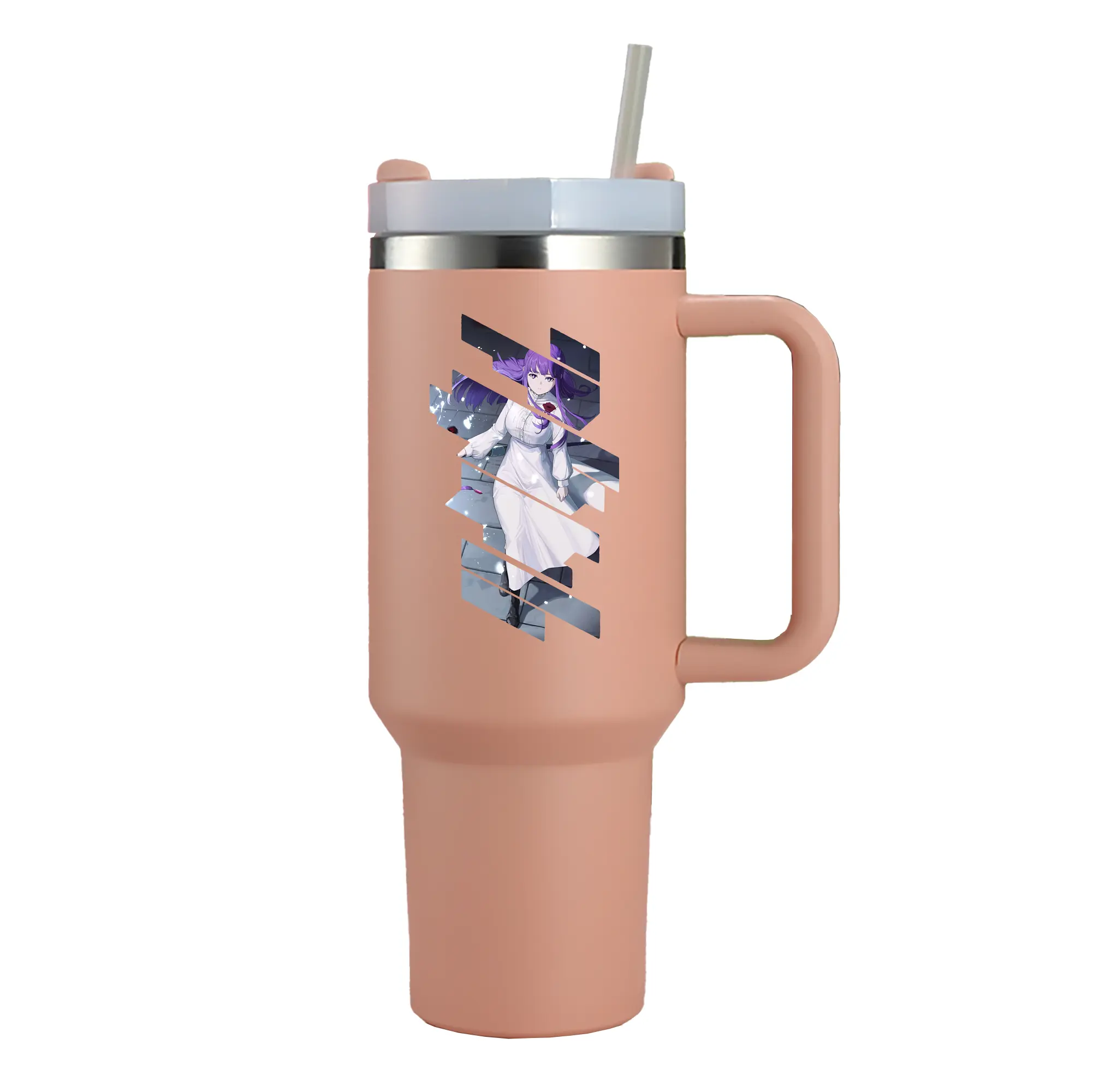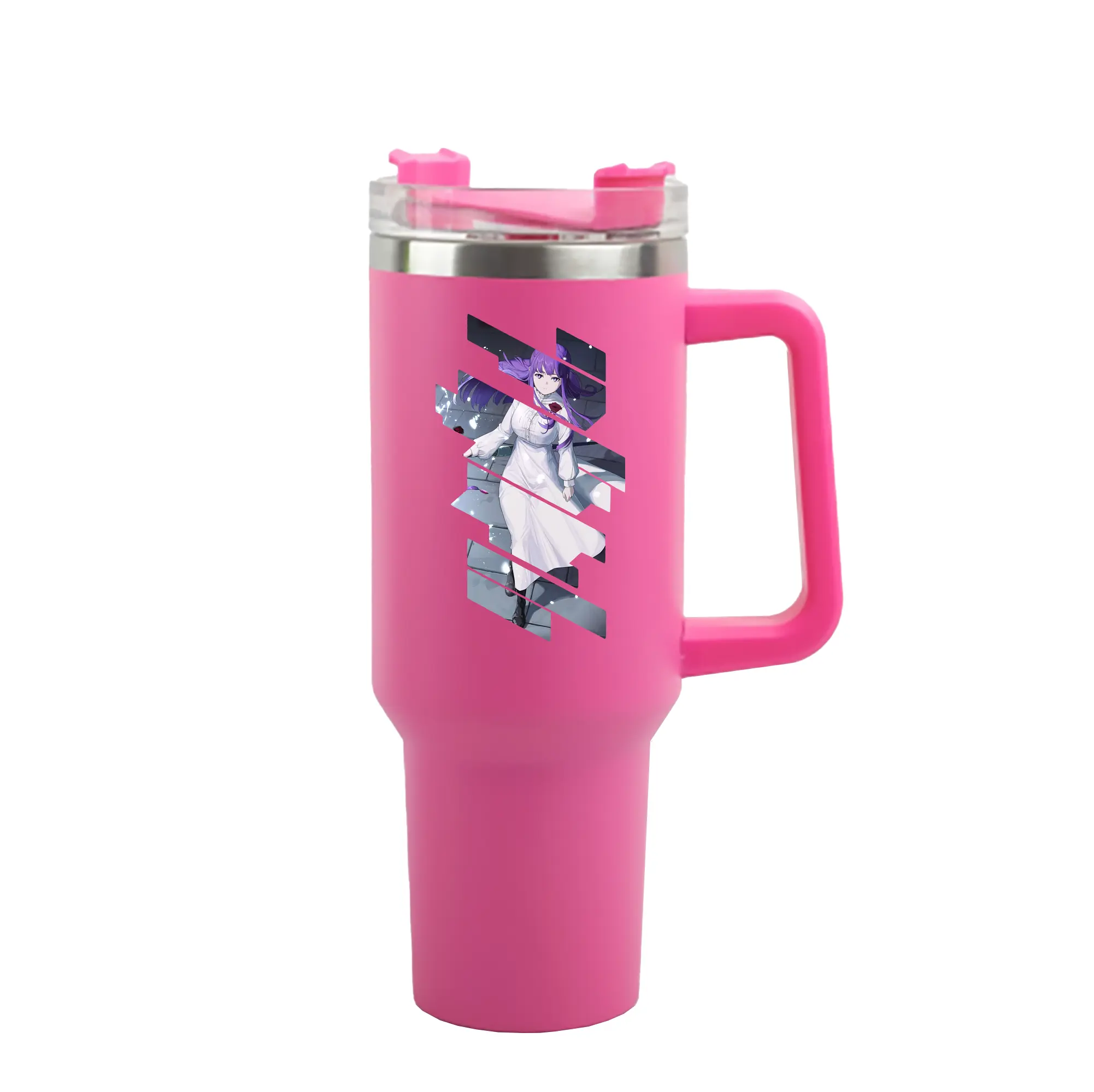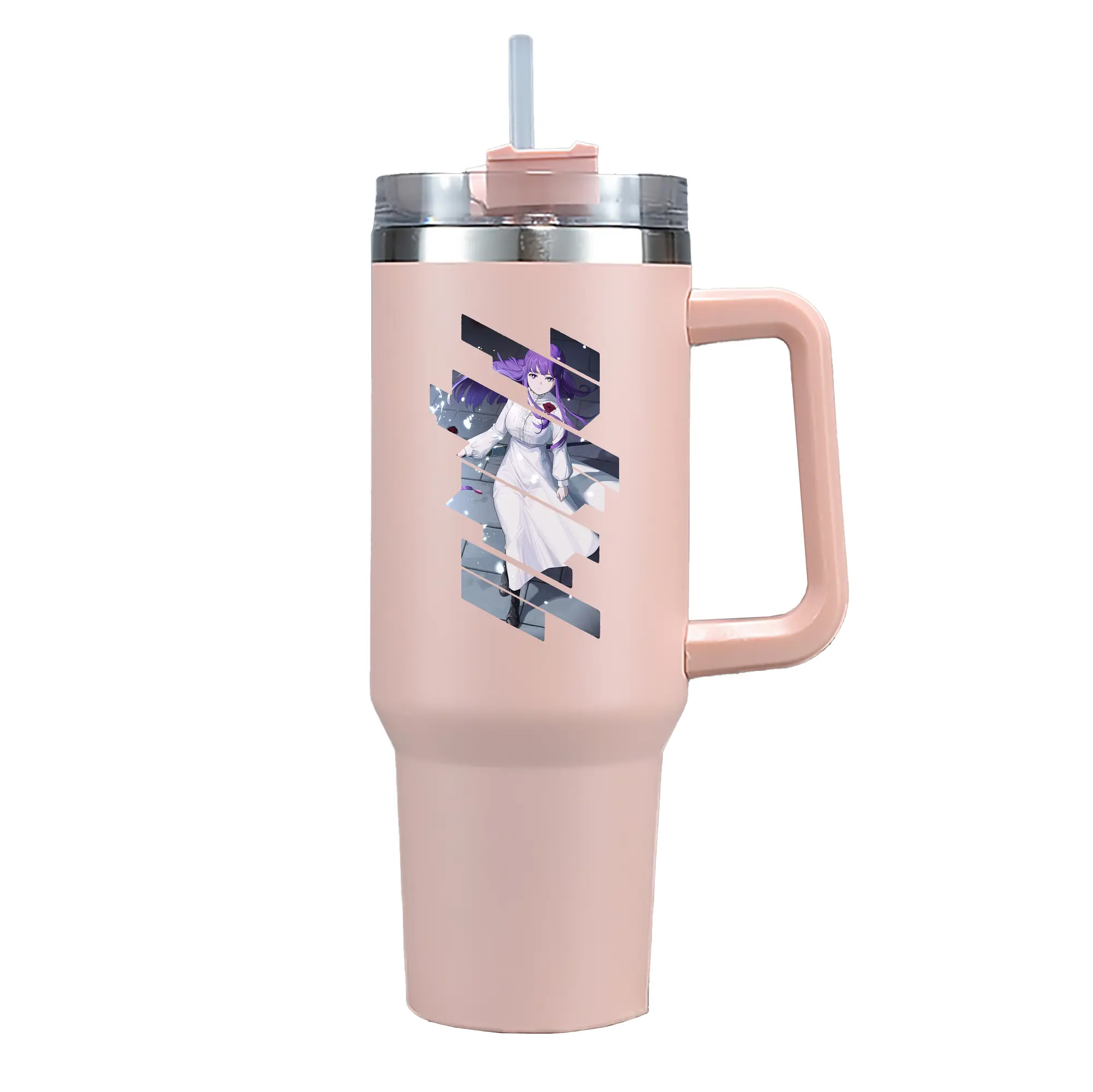 葬送のフリーレン(Frieren) グッズ,フェルン(Fern) - 1200mL 車用タンブラー ・ クリスタルステッカー ・ 304ステンレス 内側 ・ 201ステンレス 外側 ・ 保温 保冷 ・ ハンドル&ストロー付き ・ 通勤 ドライブ アウトドア用