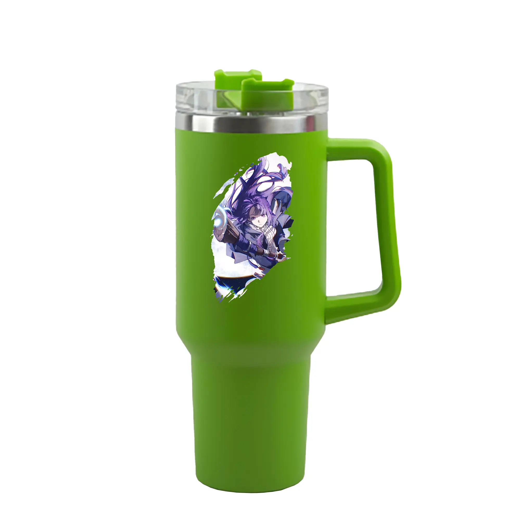 葬送のフリーレン(Frieren) グッズ,フェルン(Fern) - 1200mL 車用タンブラー ・ クリスタルステッカー ・ 304ステンレス 内側 ・ 201ステンレス 外側 ・ 保温 保冷 ・ ハンドル&ストロー付き ・ 通勤 ドライブ アウトドア用