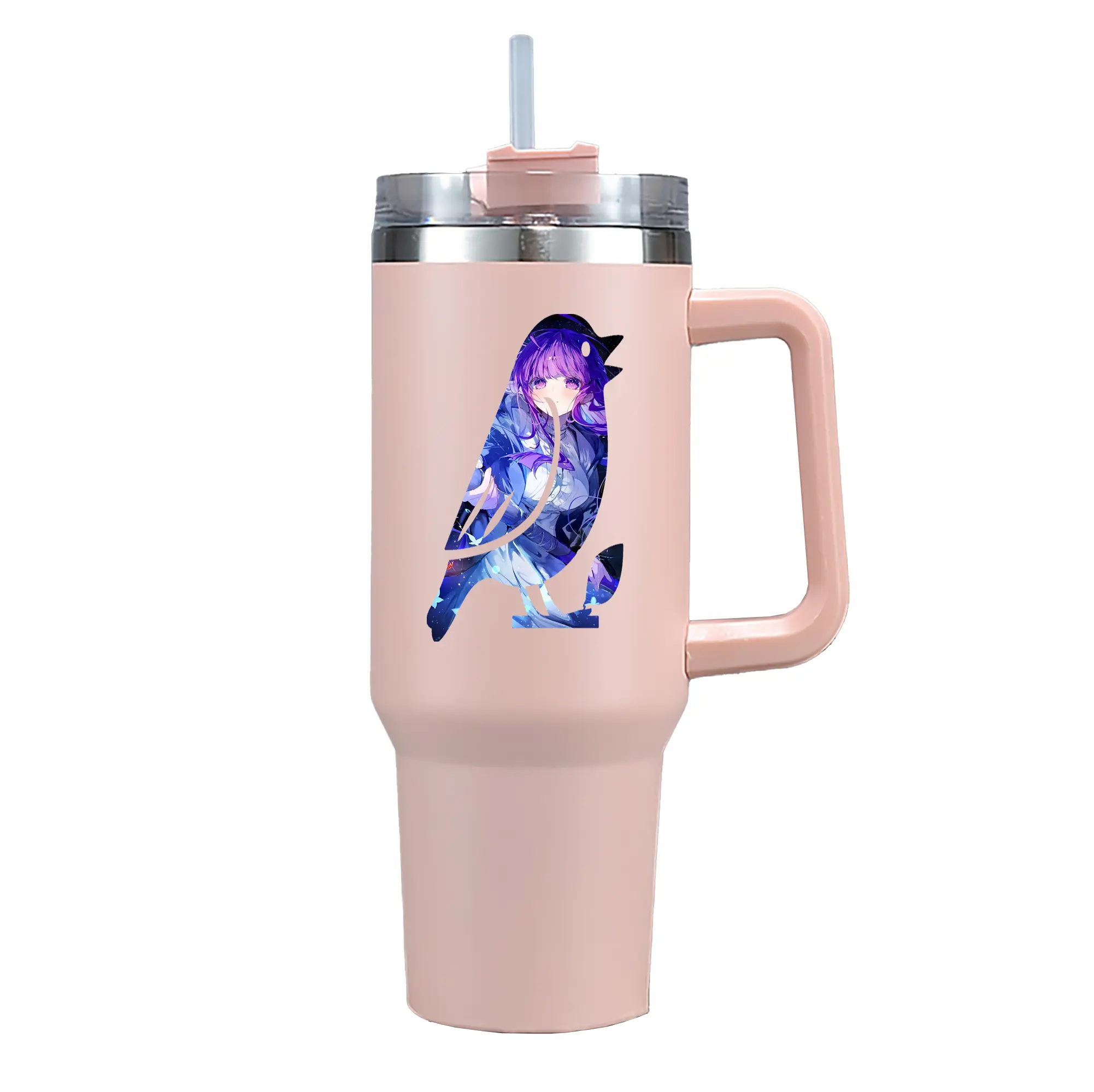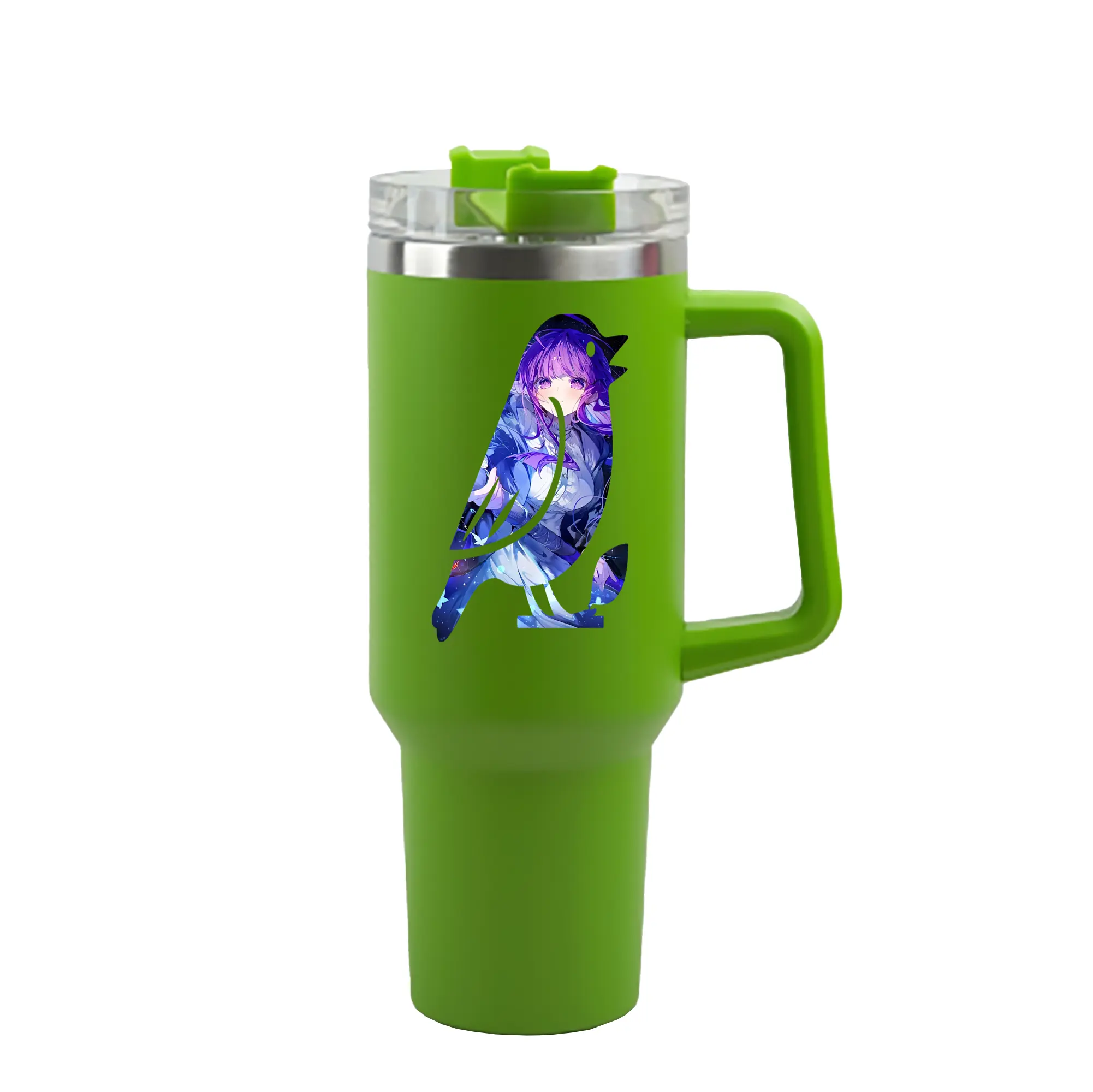 葬送のフリーレン(Frieren) グッズ,フェルン(Fern) - 1200mL 車用タンブラー ・ クリスタルステッカー ・ 304ステンレス 内側 ・ 201ステンレス 外側 ・ 保温 保冷 ・ ハンドル&ストロー付き ・ 通勤 ドライブ アウトドア用