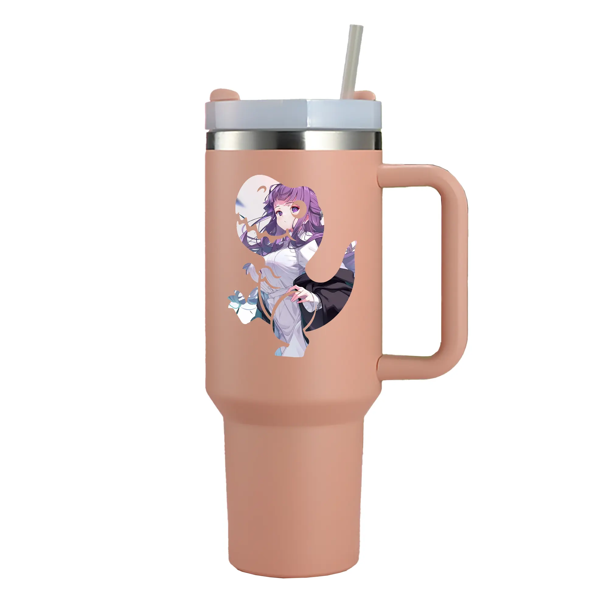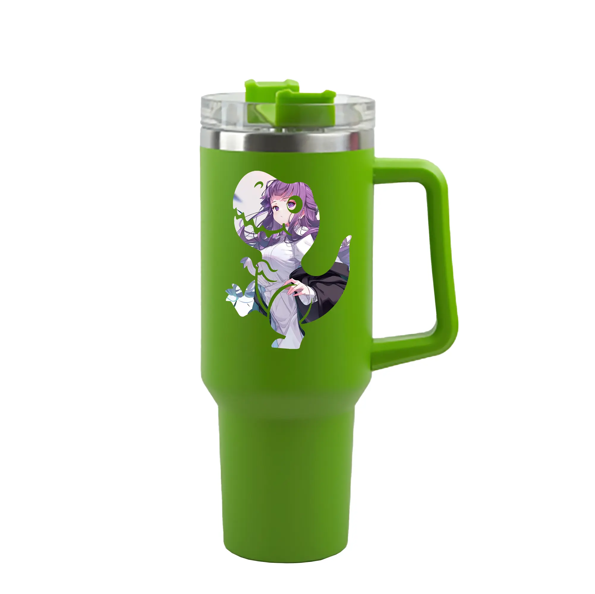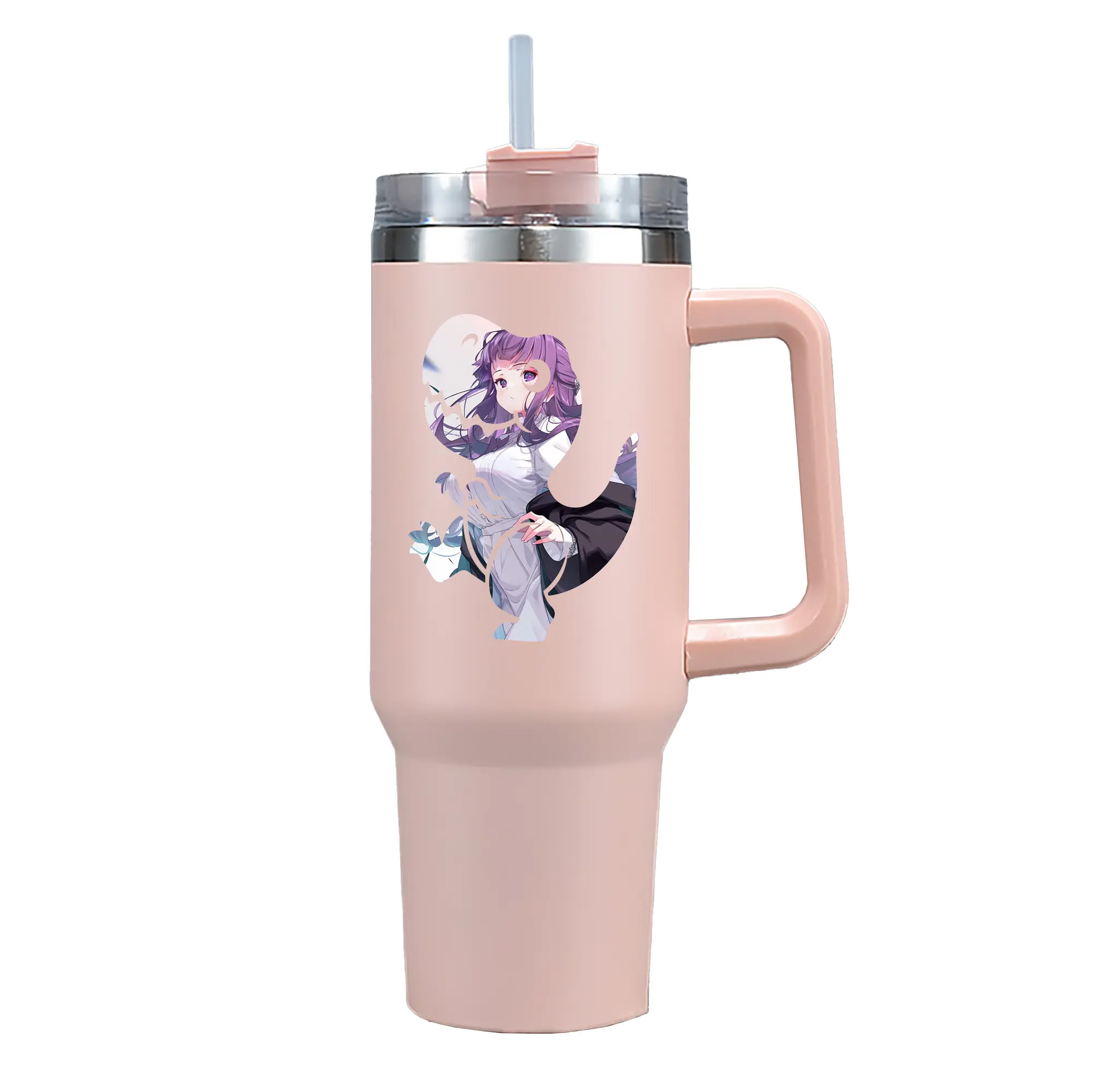 葬送のフリーレン(Frieren) グッズ,フェルン(Fern) - 1200mL 車用タンブラー ・ クリスタルステッカー ・ 304ステンレス 内側 ・ 201ステンレス 外側 ・ 保温 保冷 ・ ハンドル&ストロー付き ・ 通勤 ドライブ アウトドア用