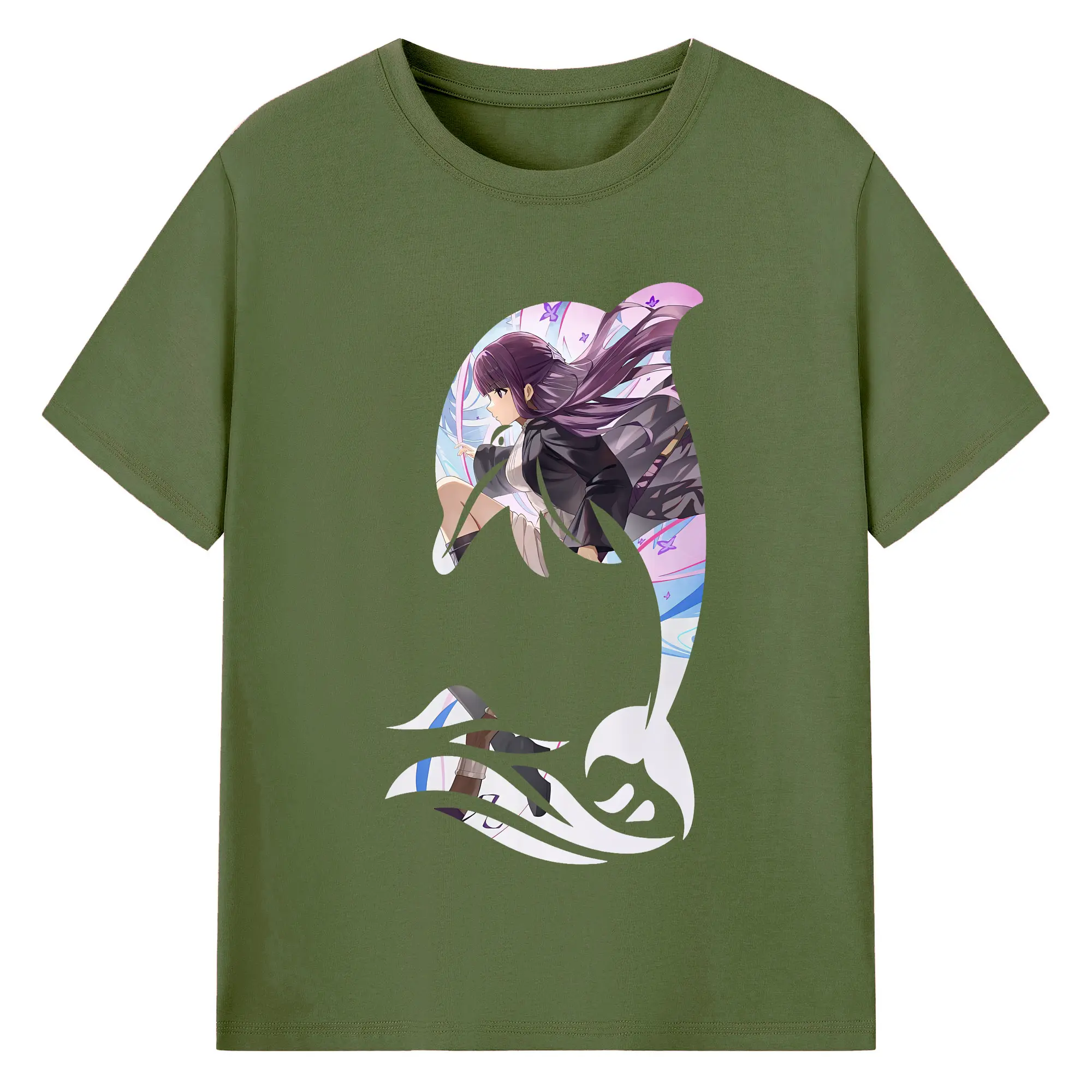 葬送のフリーレン(Frieren) グッズ,フェルン(Fern) - 綿100% 半袖Tシャツ ・ バックプリント ・ 快適 通気性 ・ 日常使い 散歩 スポーツ用