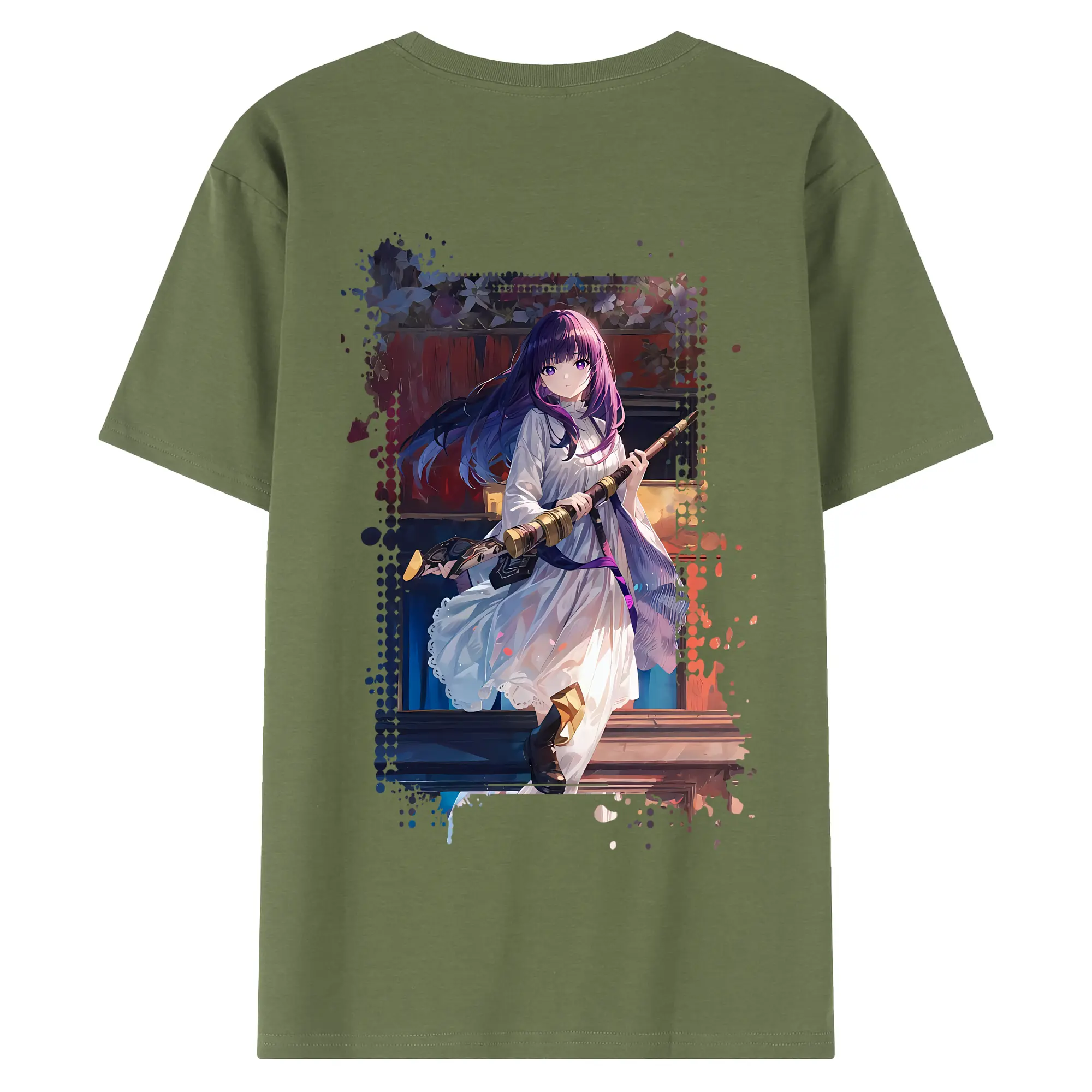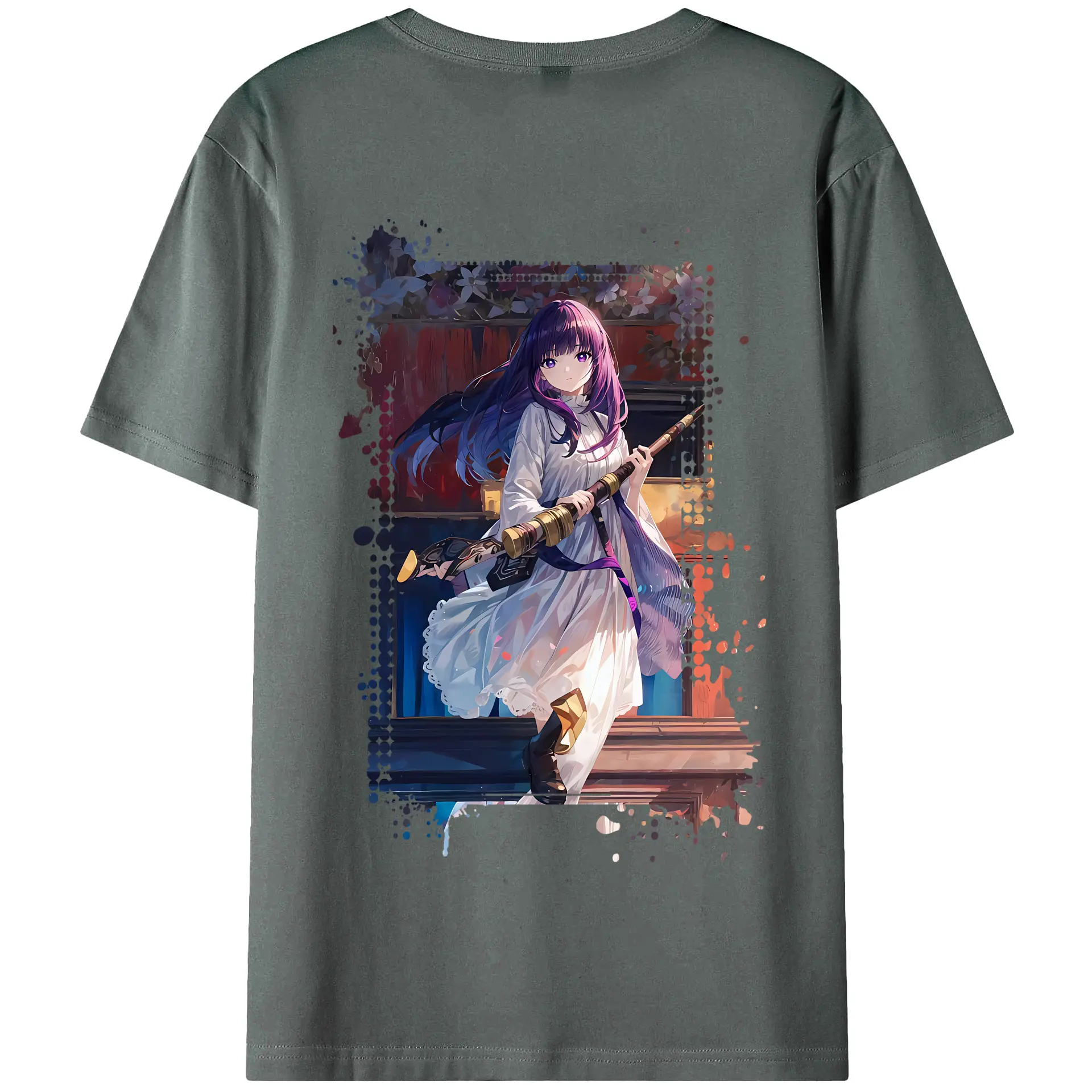 葬送のフリーレン(Frieren) グッズ,フェルン(Fern) - 綿100% 半袖Tシャツ ・ フロントプリント ・ 快適 通気性 ・ 日常使い 散歩 スポーツ用