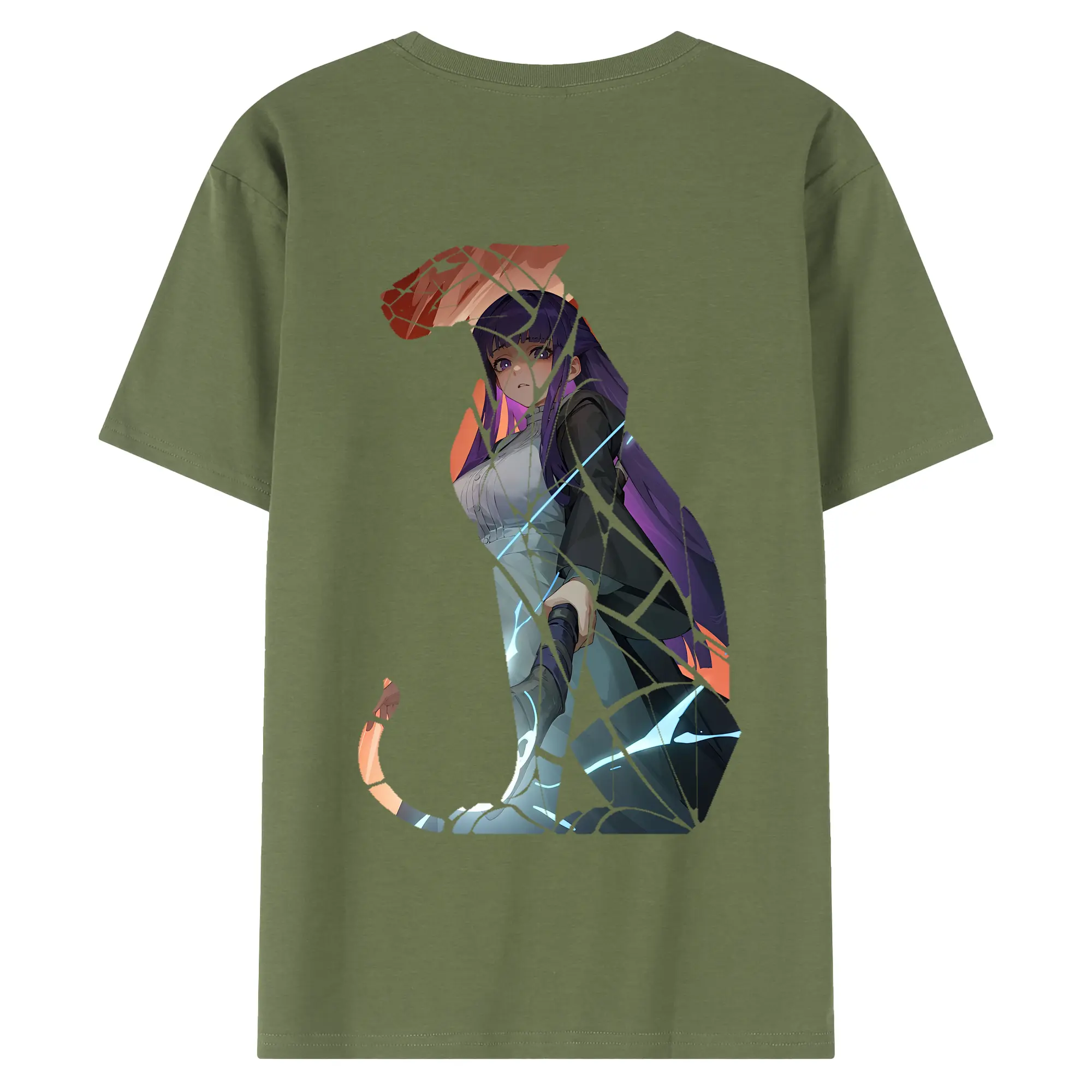 葬送のフリーレン(Frieren) グッズ,フェルン(Fern) - 綿100% 半袖Tシャツ ・ バックプリント ・ 快適 通気性 ・ 日常使い 散歩 スポーツ用