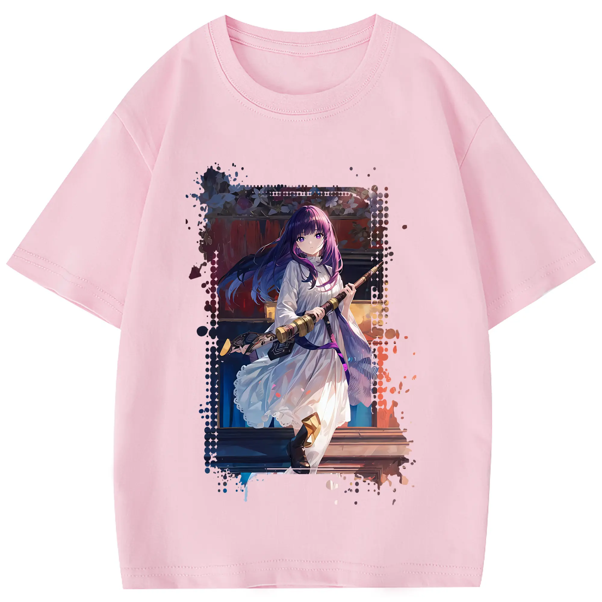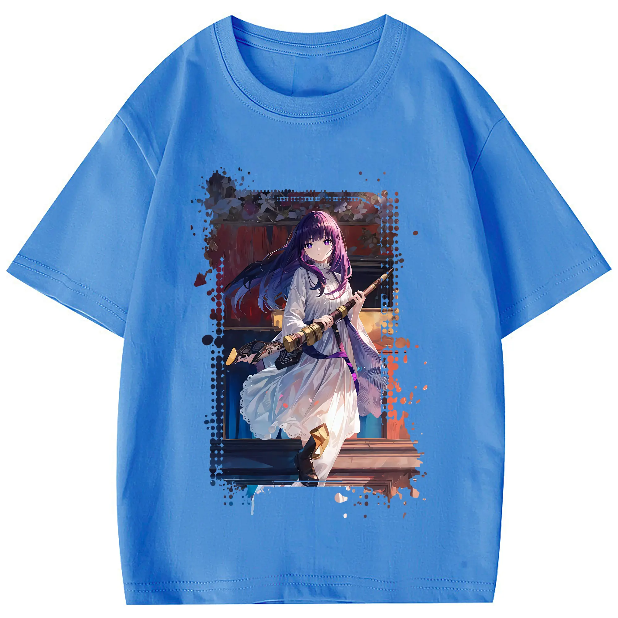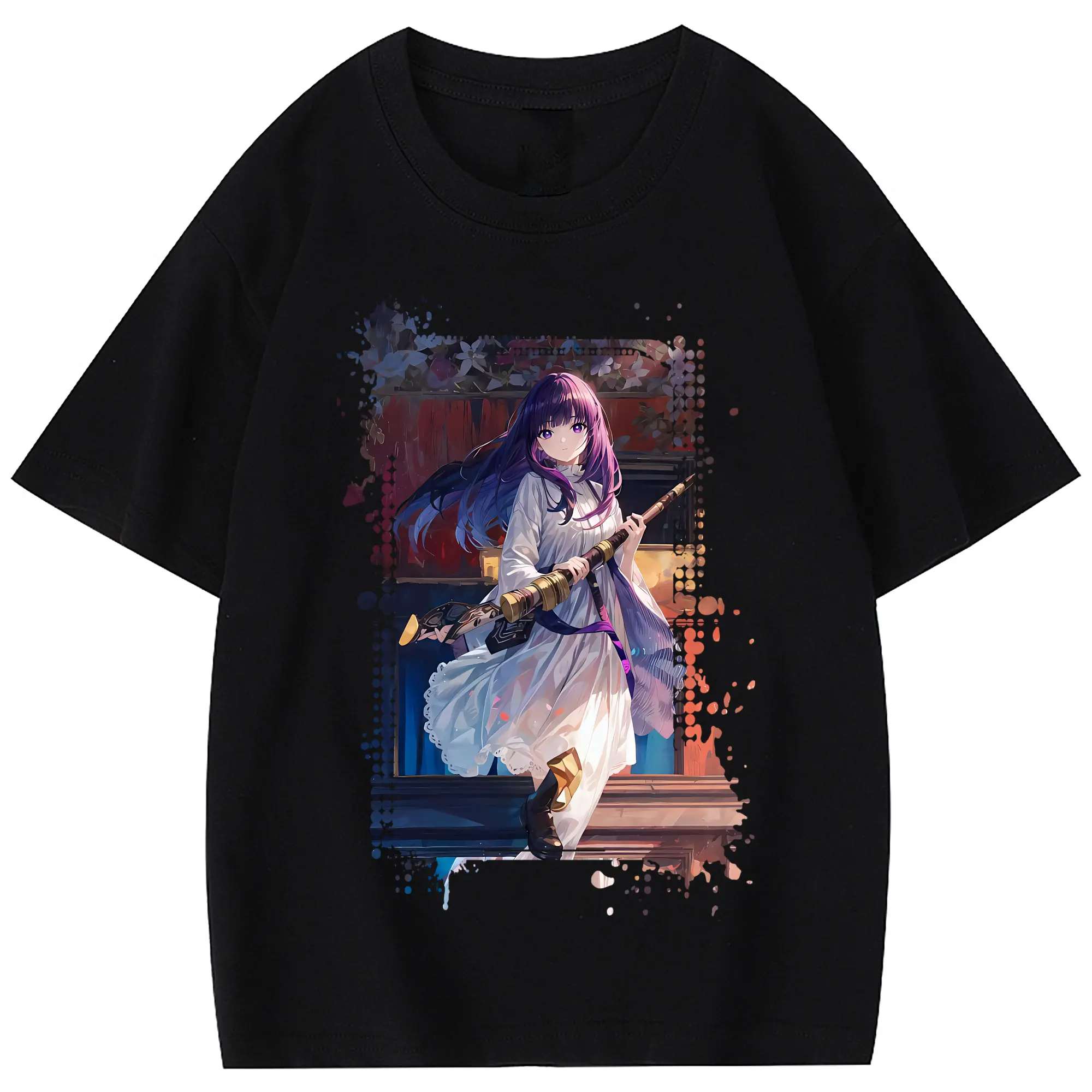葬送のフリーレン(Frieren) グッズ,フェルン(Fern) - 綿100% 半袖Tシャツ ・ フロントプリント ・ 快適 通気性 ・ 日常使い 散歩 スポーツ用
