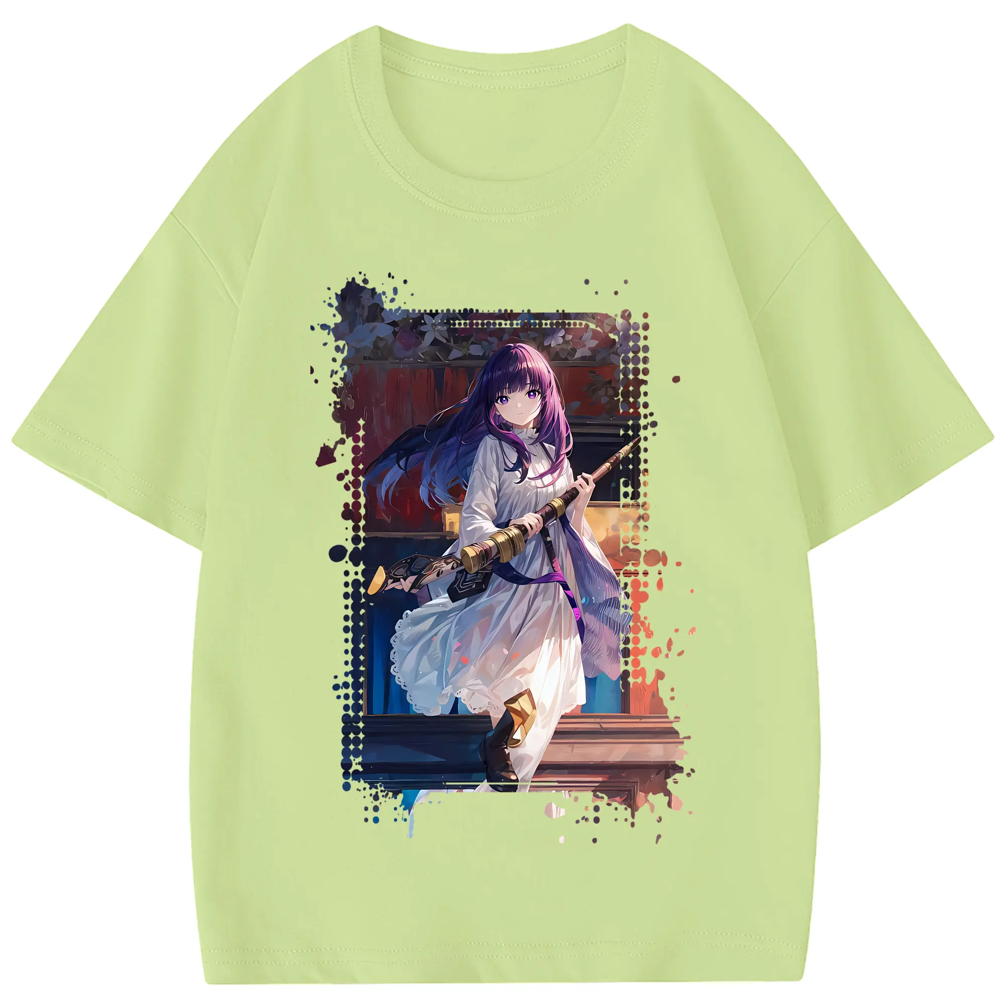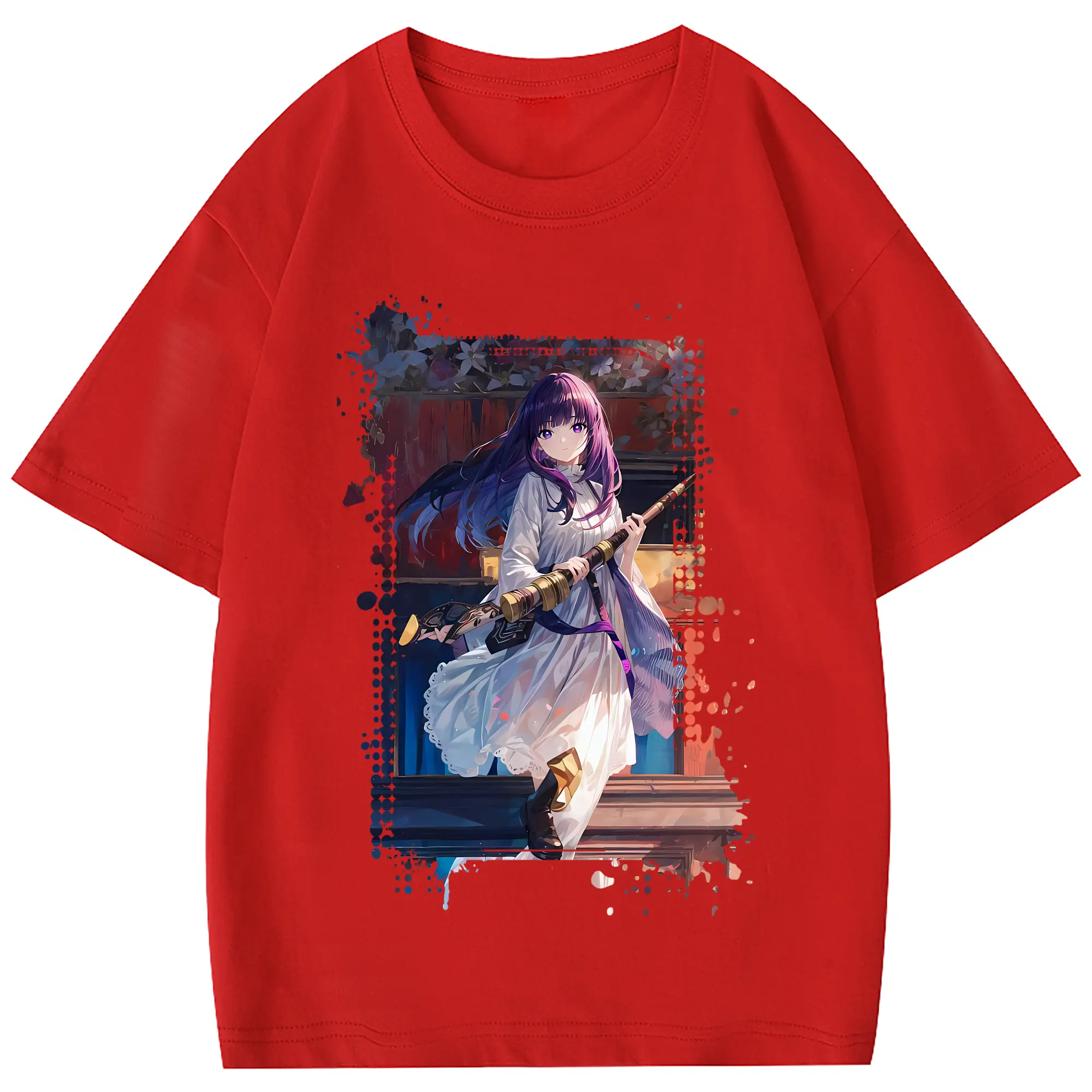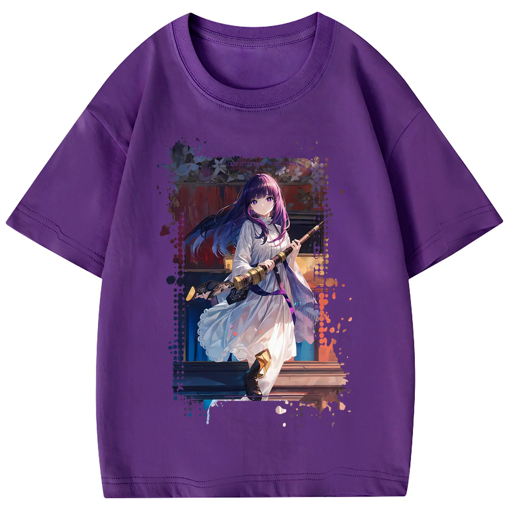 葬送のフリーレン(Frieren) グッズ,フェルン(Fern) - 綿100% 半袖Tシャツ ・ フロントプリント ・ 快適 通気性 ・ 日常使い 散歩 スポーツ用
